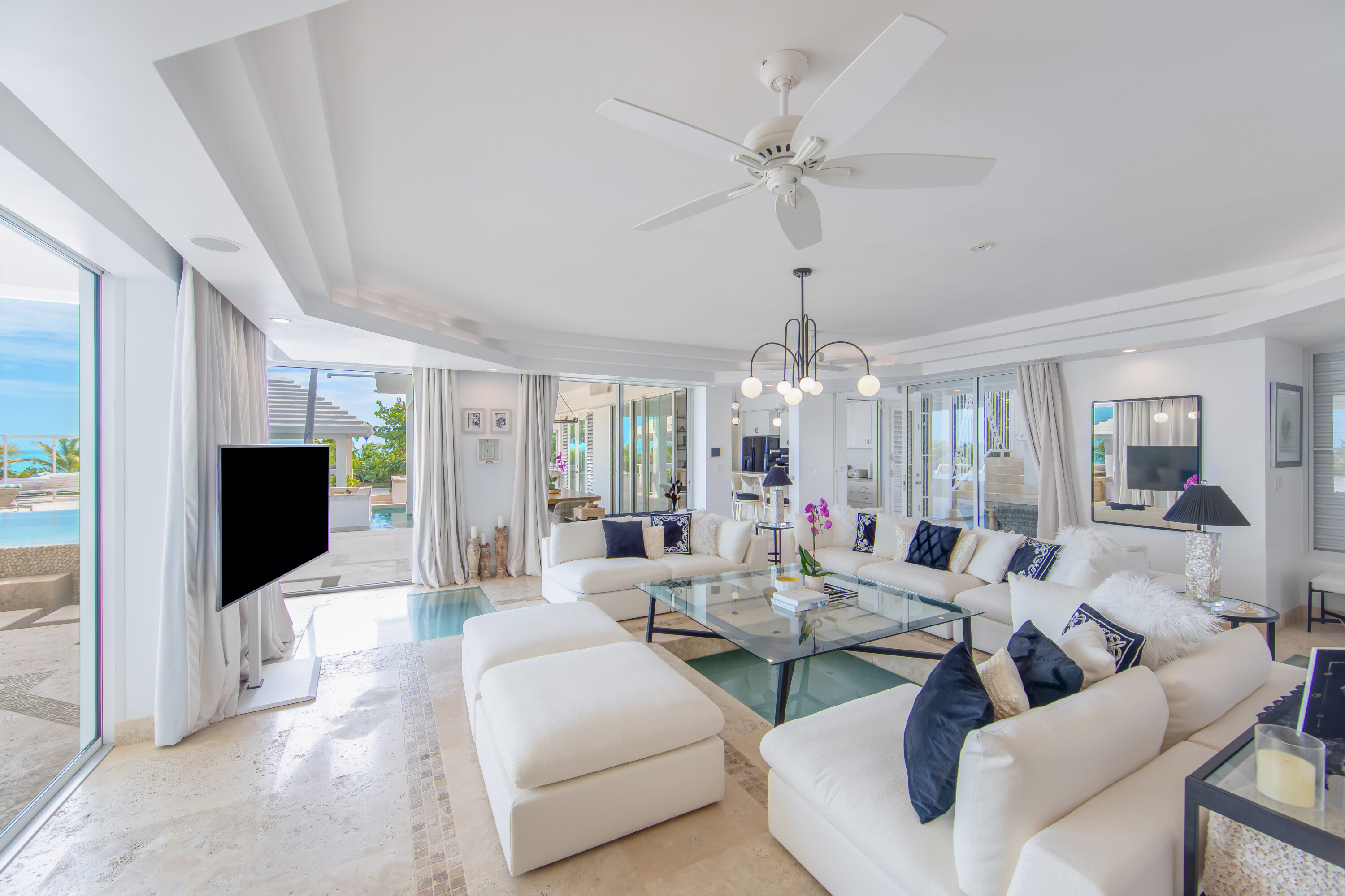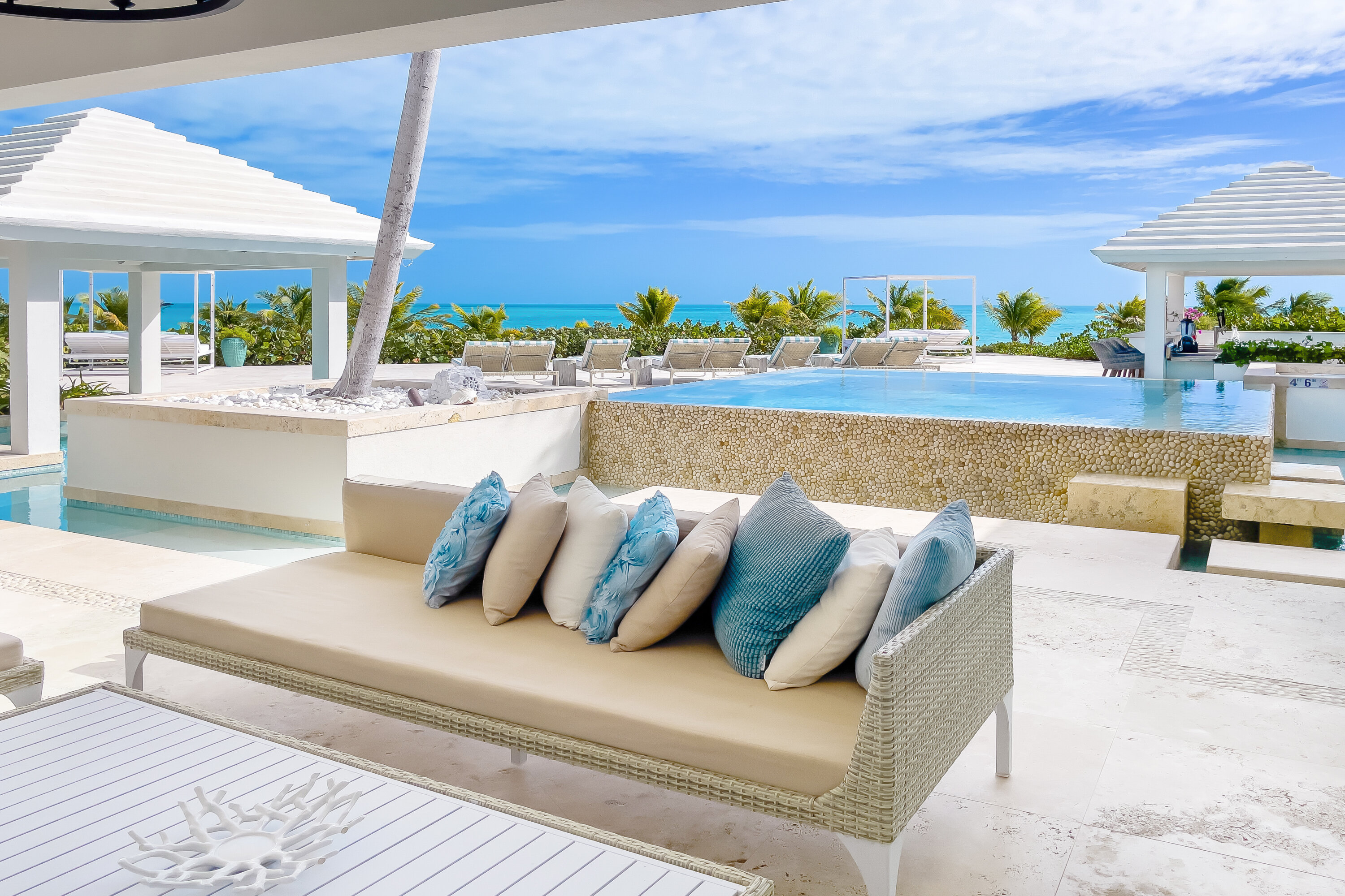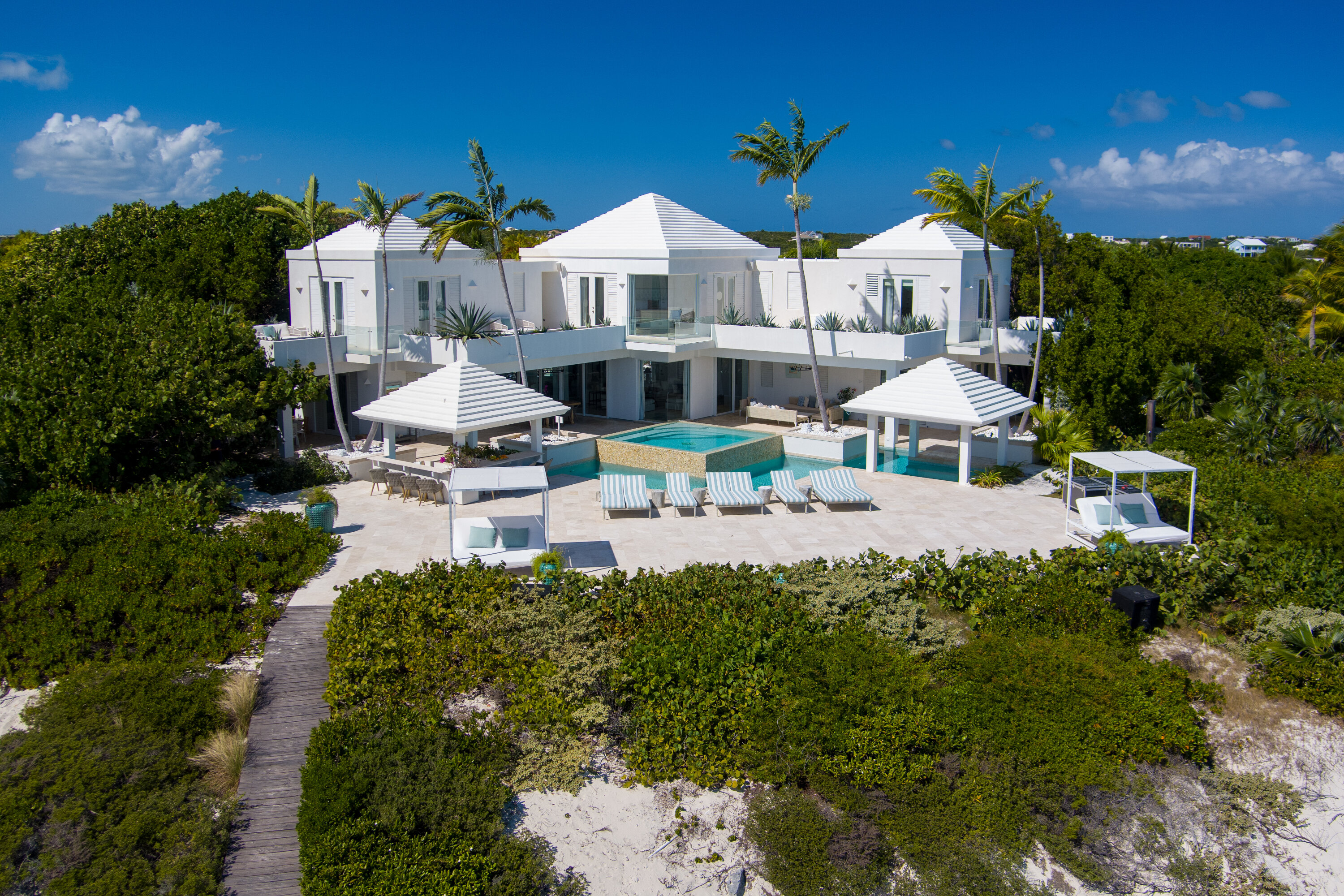 As part of The Pearls of Long Bay Estate, Villa Lidija House sits alongside Villa Pearl East (TC PE) and Villa Pearl West (TC PW). These three magnificent properties combined enjoy 150ft of beachfront, making this one of the most envied properties in Turks and Caicos.