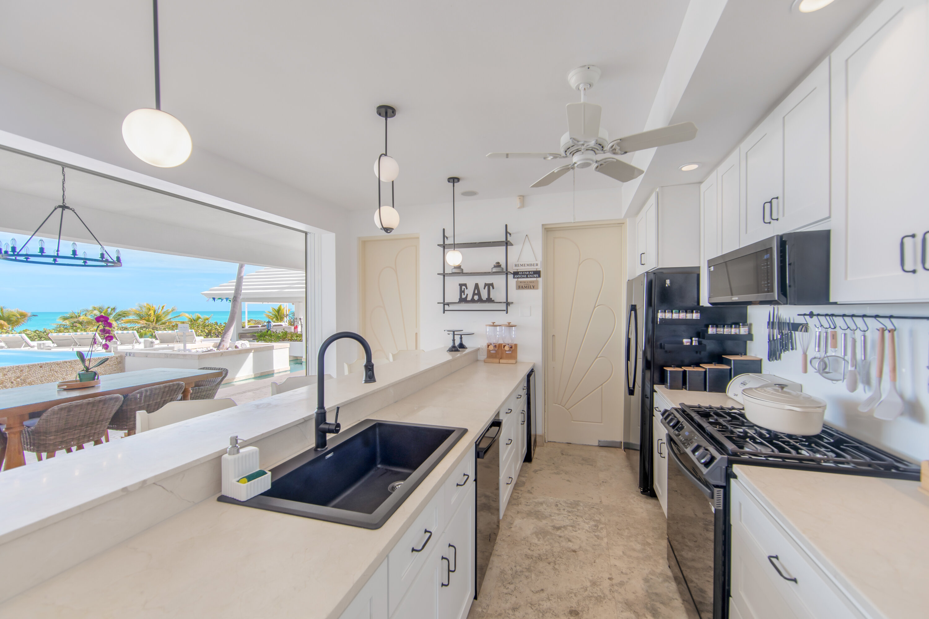Tropical island vibes await at Villa Lidija House at The Pearls (villa code: TC LH), a 7-bedroom villa on Long Bay Beach, Providenciales. Located within steps of the sand, this dreamy beachfront villa makes the most of the Caribbean’s stunning sunsets and ocean views.