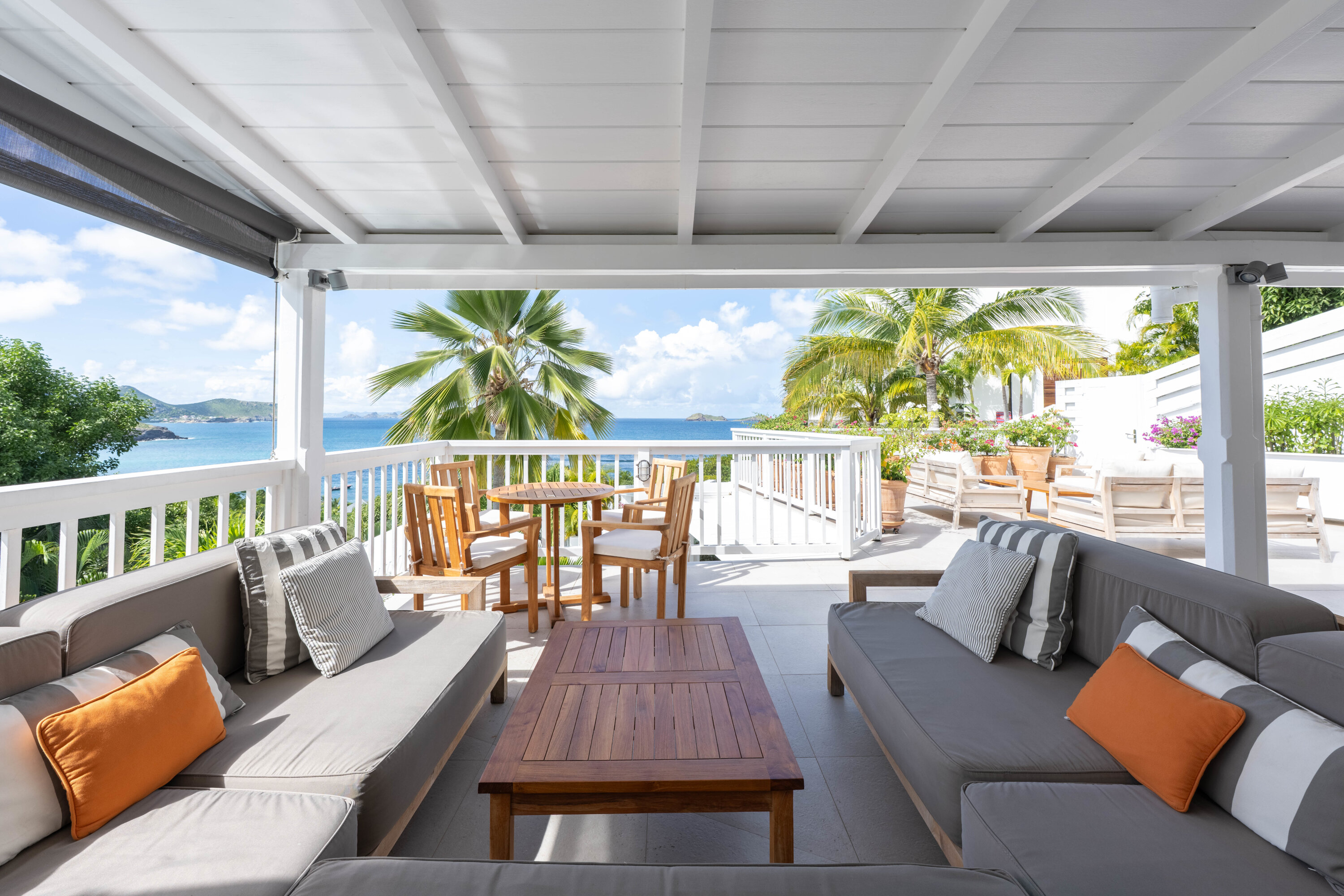 Stepping out from underneath the terrace brings you to a sunny seating area, ideal for cocktails at sunset. From here, the views are outstanding, taking in the bay below and the offshore islands.