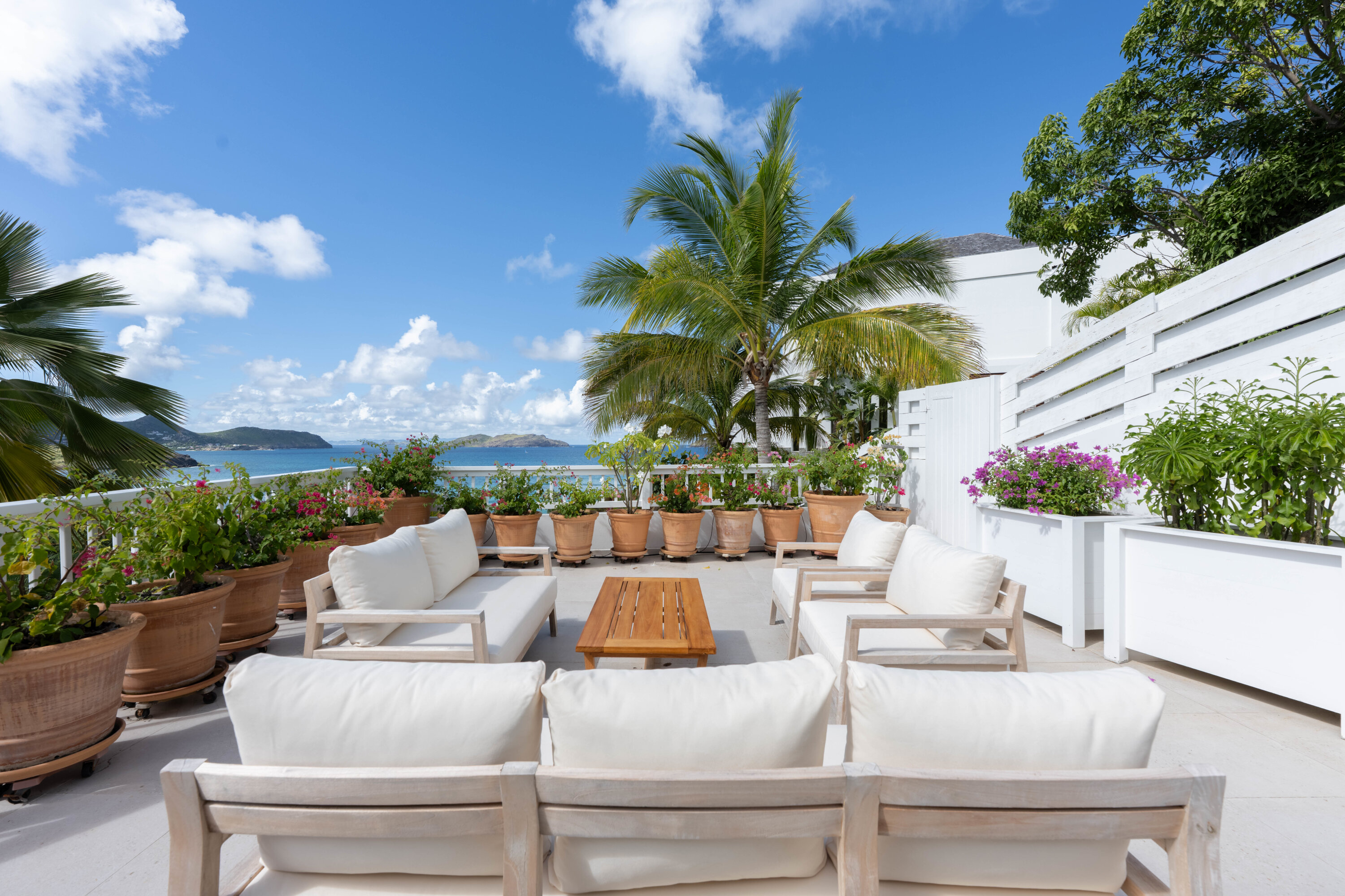 Villa Lilas is spread over three levels, with an open-plan great room at its heart. From there, outdoor terraces in sun and shade spread out in a cascade across the villa, all of it taking in the views of the shimmering blue ocean.