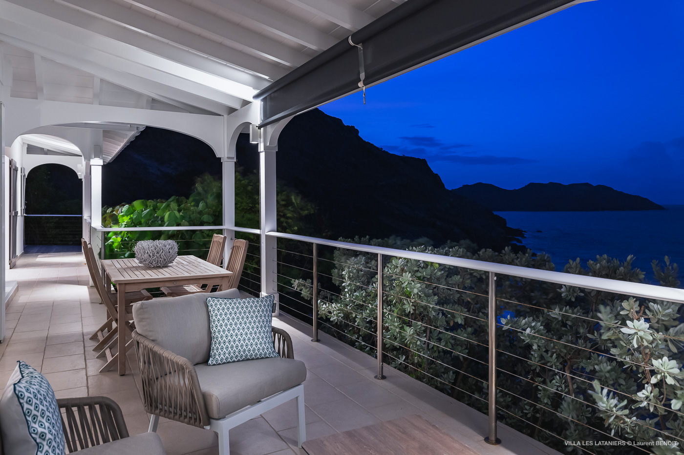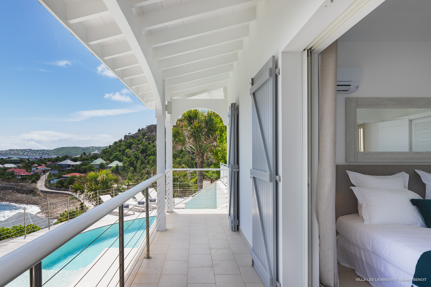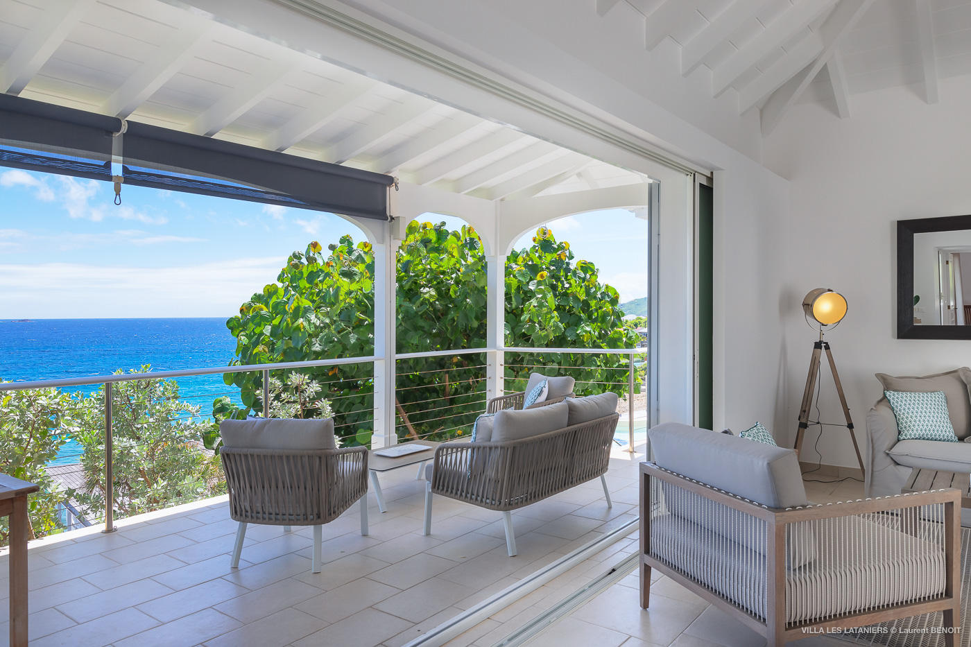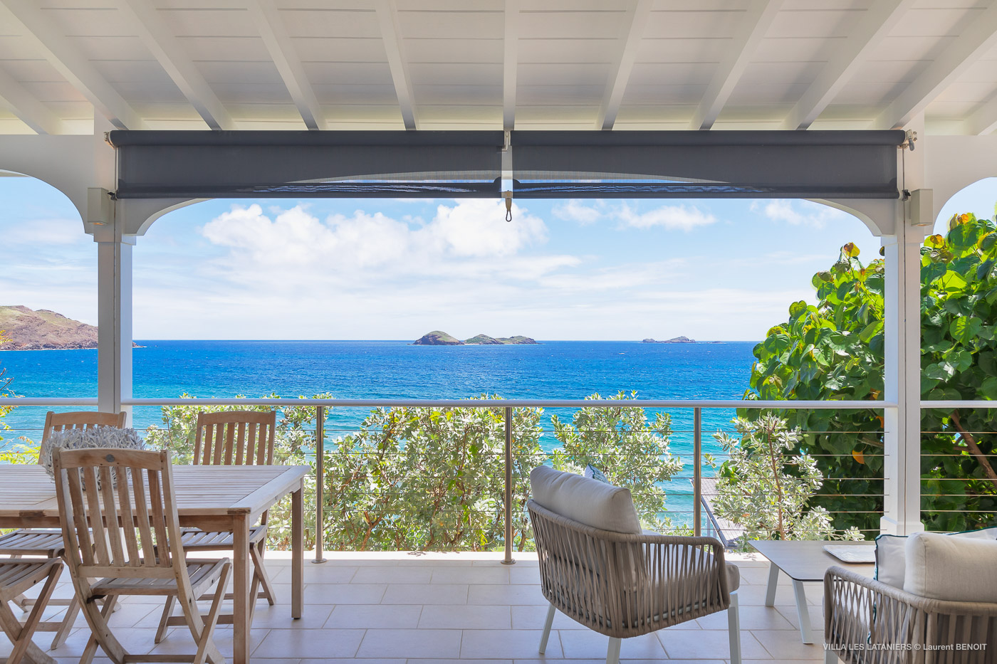 Villa Lo Scoglio (villa code: WV VLL) is a newly-renovated, 2 +2-bedroom villa with gorgeous ocean views, situated at the end of the road in Anse des Lezards. Villa Lo Scoglio is located right next to a nature reserve, just a short drive from Gustavia and St. Jean, yet away from the crowds. Located in a small neighborhood, this villa provides an oasis of calm amid the rugged cliffs and hills of Anse des Cayes, and the constant sounds of the sea below. The villa has an open floor plan, with the pool on the lower level. The cozy open-style main room has a modern kitchen and living room. It opens up to the generous terrace, which offers ample seating, as well as the outdoor dining setting with the ocean as a backdrop. The large heated pool is accessed from the entrance. It has a waterfall feature and a deck that offers lounging and seating in the sun. Two bedrooms offer ocean views and are open to the main room as well as the terrace. Each comes complete with closet space. The master bedroom has a four-poster bed and a slightly larger ensuite bathroom that can be opened up to the outside. The guest bedroom is on the other side of the main room. While this bedroom also has an ensuite bathroom, it has a separate toilet in the hallway by the living room. Situated to the left of the entrance in a separate unit on the second level. There is also a small studio with an ensuite bathroom and kitchenette, best for teens. Behind the guest bedroom by the entrance, is an additional small bedroom and a small queen bed which can only be accessed from the outside. It has no bathroom and is therefore only suitable for a teenager or perhaps a nanny. Villa Lo Scoglio is a great choice for a family with children, but can also be a good option for two couples traveling together. It’s also the sister villa of Villa Lataniers, situated just below, and both villas can be rented together to add extra bedrooms for a large group. During the December holidays, the villa rents at full occupancy rates regardless of how many bedrooms are used.Please fill out the form to begin your inquiry and we will connect you with a seasoned villa rental specialist.