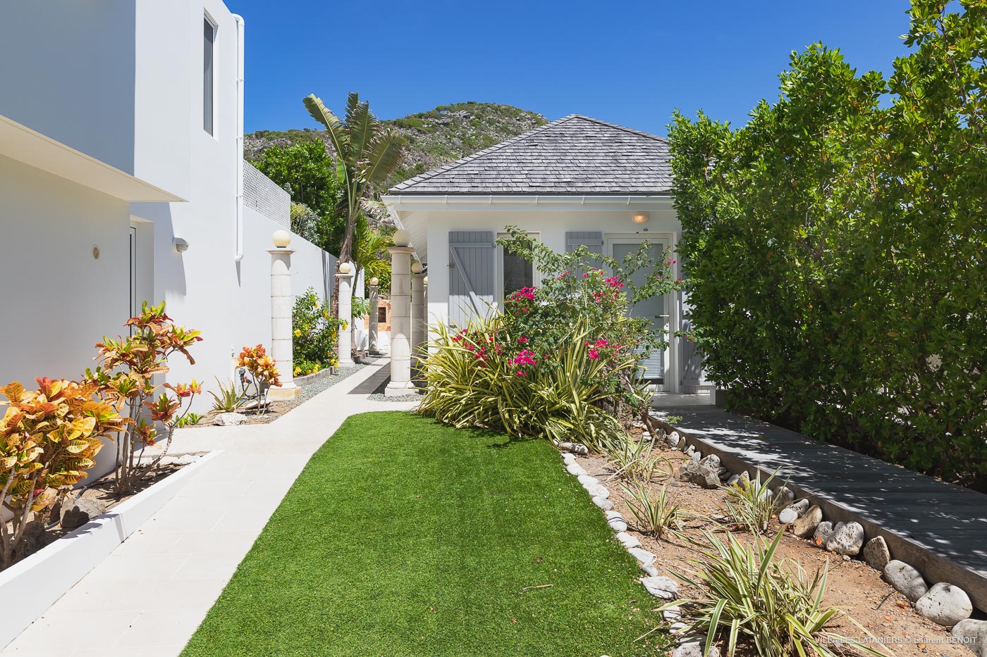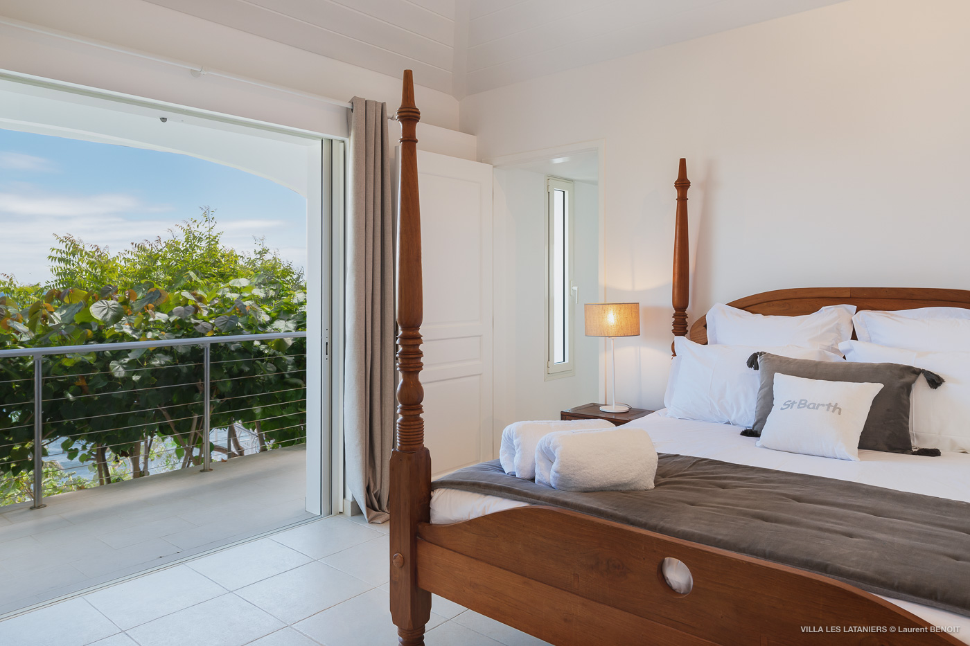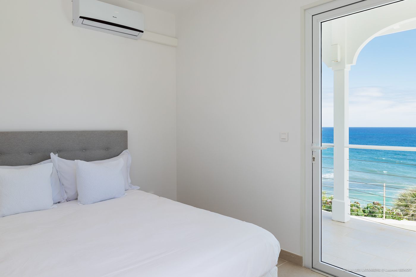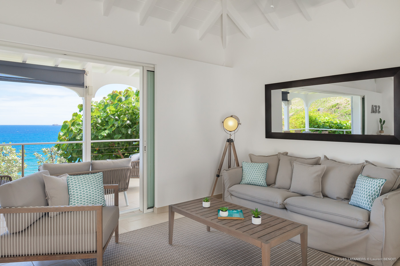 Villa Lo Scoglio (villa code: WV VLL) is a newly-renovated, 2 +2-bedroom villa with gorgeous ocean views, situated at the end of the road in Anse des Lezards. Villa Lo Scoglio is located right next to a nature reserve, just a short drive from Gustavia and St. Jean, yet away from the crowds. Located in a small neighborhood, this villa provides an oasis of calm amid the rugged cliffs and hills of Anse des Cayes, and the constant sounds of the sea below. The villa has an open floor plan, with the pool on the lower level. The cozy open-style main room has a modern kitchen and living room. It opens up to the generous terrace, which offers ample seating, as well as the outdoor dining setting with the ocean as a backdrop. The large heated pool is accessed from the entrance. It has a waterfall feature and a deck that offers lounging and seating in the sun. Two bedrooms offer ocean views and are open to the main room as well as the terrace. Each comes complete with closet space. The master bedroom has a four-poster bed and a slightly larger ensuite bathroom that can be opened up to the outside. The guest bedroom is on the other side of the main room. While this bedroom also has an ensuite bathroom, it has a separate toilet in the hallway by the living room. Situated to the left of the entrance in a separate unit on the second level. There is also a small studio with an ensuite bathroom and kitchenette, best for teens. Behind the guest bedroom by the entrance, is an additional small bedroom and a small queen bed which can only be accessed from the outside. It has no bathroom and is therefore only suitable for a teenager or perhaps a nanny. Villa Lo Scoglio is a great choice for a family with children, but can also be a good option for two couples traveling together. It’s also the sister villa of Villa Lataniers, situated just below, and both villas can be rented together to add extra bedrooms for a large group. During the December holidays, the villa rents at full occupancy rates regardless of how many bedrooms are used.Please fill out the form to begin your inquiry and we will connect you with a seasoned villa rental specialist.