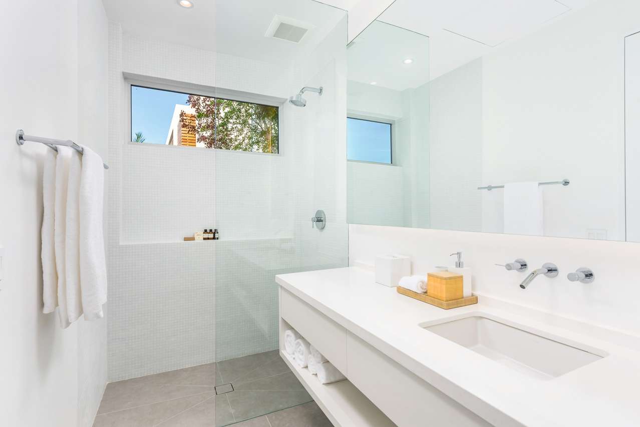 Each bedroom is luxuriously appointed with premium bedding and linens for a restful sleep. Several bedrooms feature private terraces with comfortable seating, perfect for enjoying panoramic views or curling up with a good book. All bedrooms are equipped with en-suite bathrooms, and some even offer outdoor showers for a refreshing start to the day. The master suite boasts a deep standalone bathtub, inviting guests to unwind and soothe tired muscles in its warm waters.