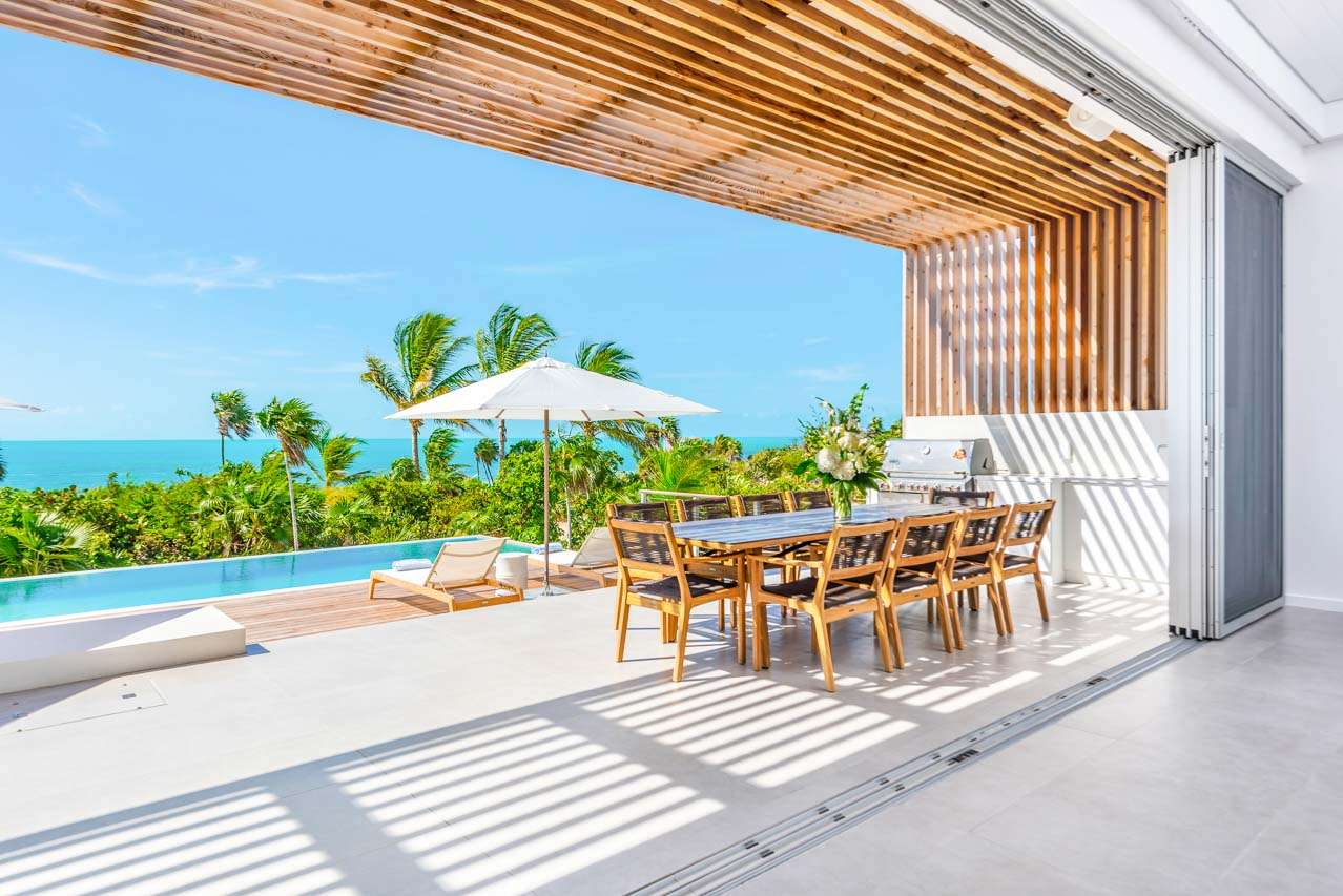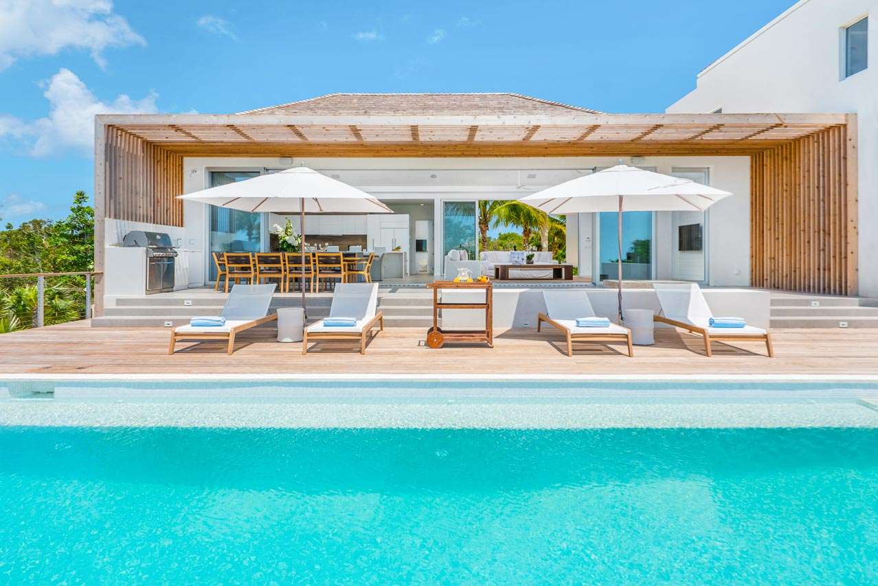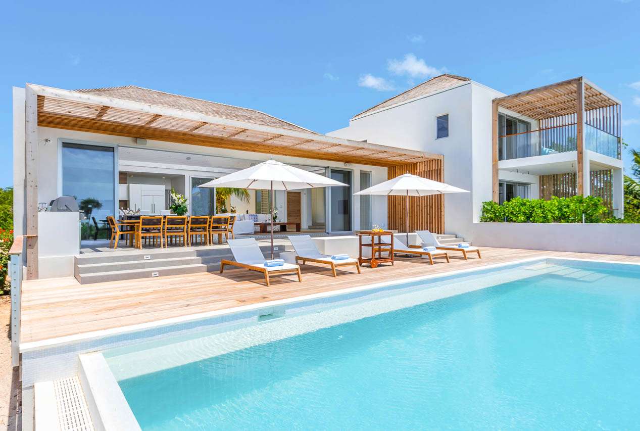 Welcome to Beach Enclave Long Bay beach (villa code: TC BLM), a stunning 5-bedroom villa situated at the tip of Long Bay Beach in Turks and Caicos.