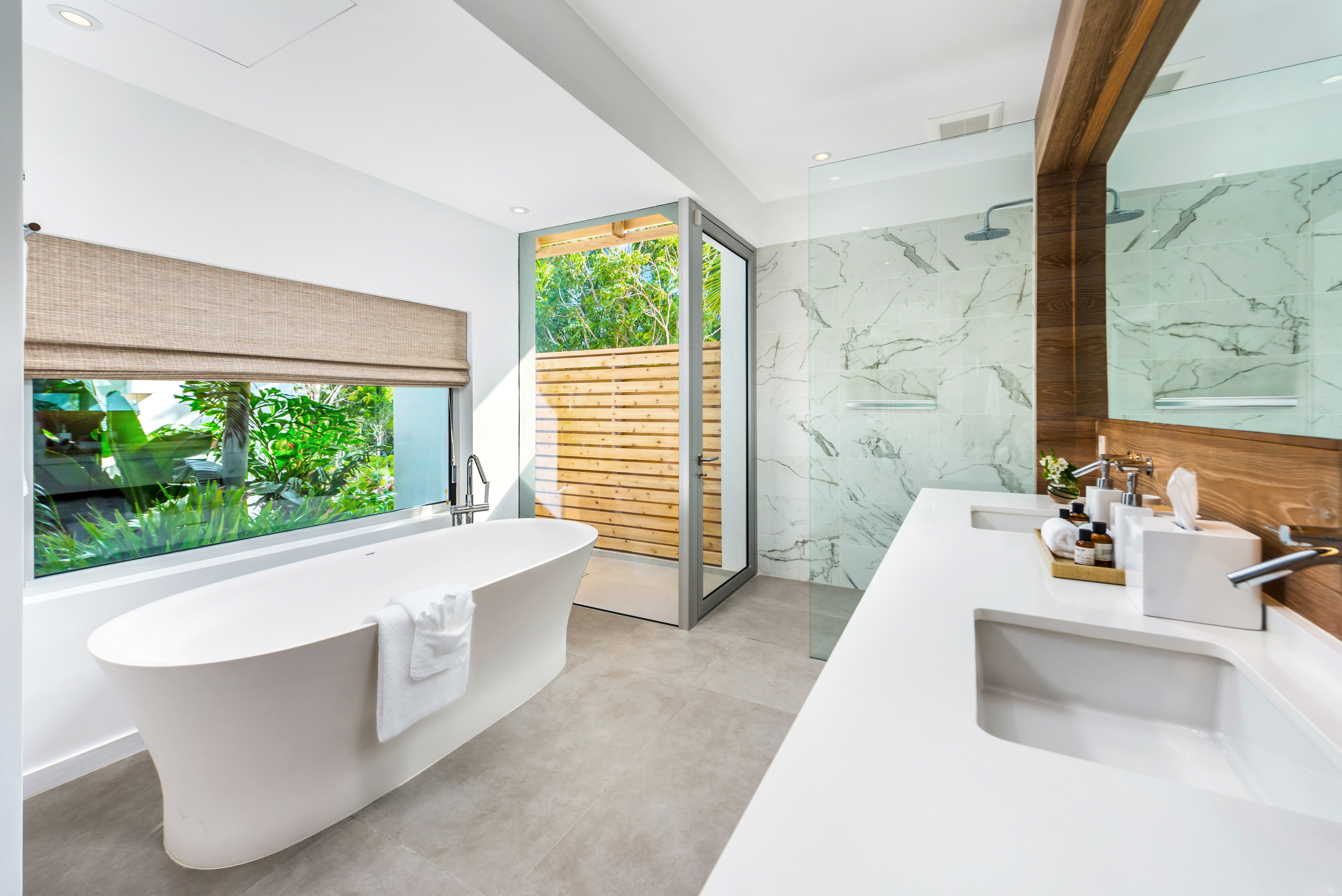 Bedrooms: The 5 contemporary bedrooms in this Beach Enclave Long Bay Villa each come with a king-sized bed and ensuite bathroom. Contemporary design, ocean views, and a soft neutral color palette bring the most out of the island décor.
