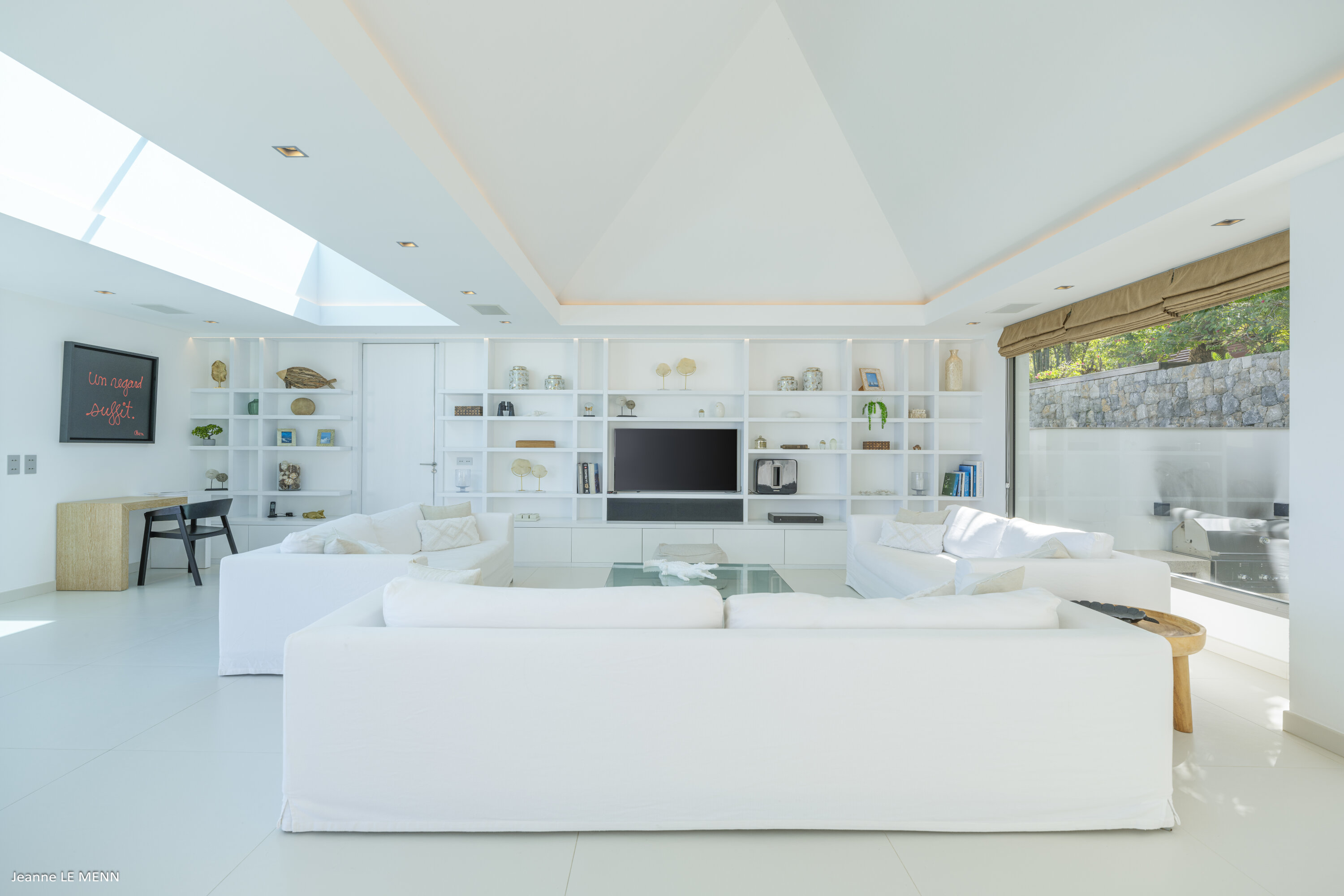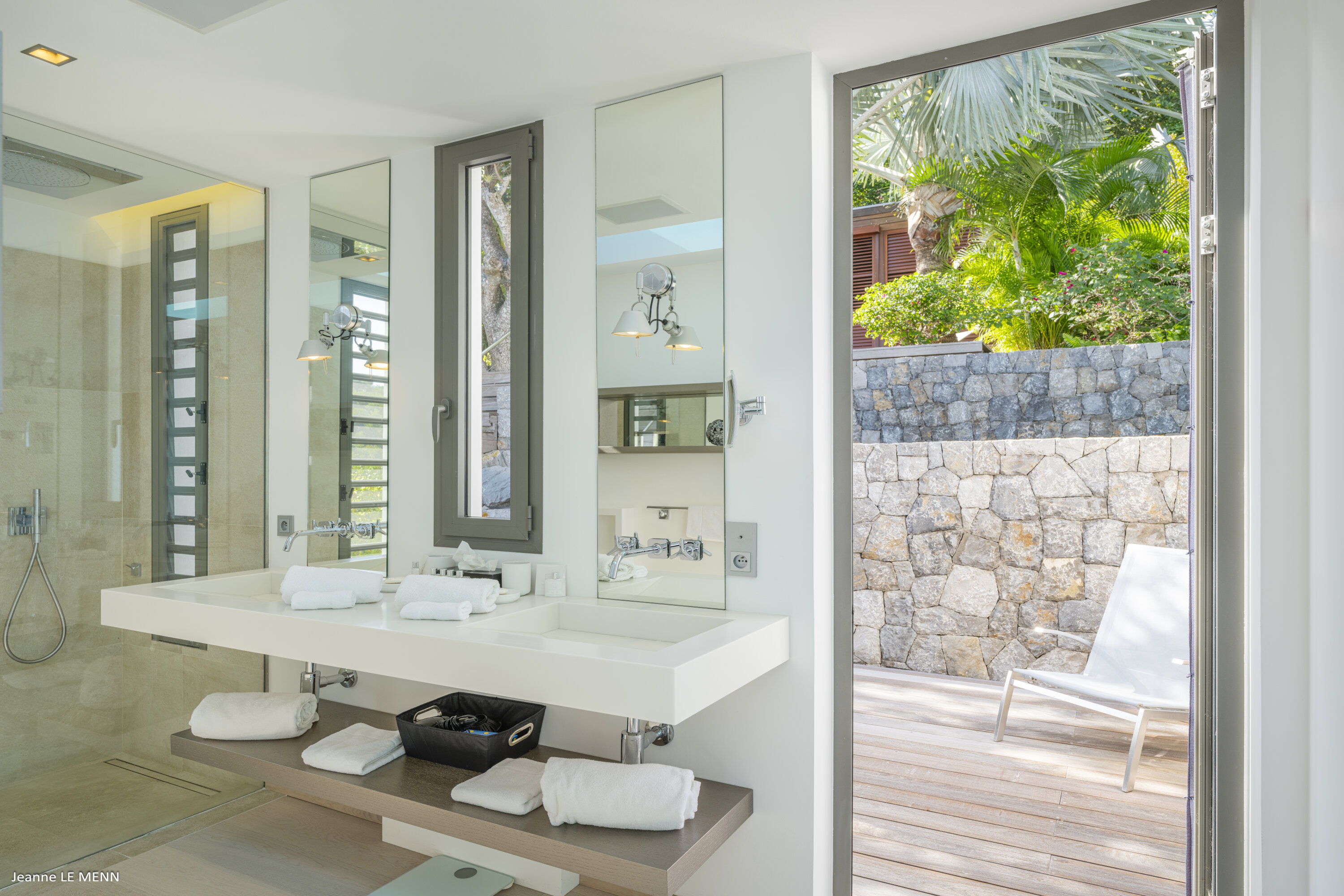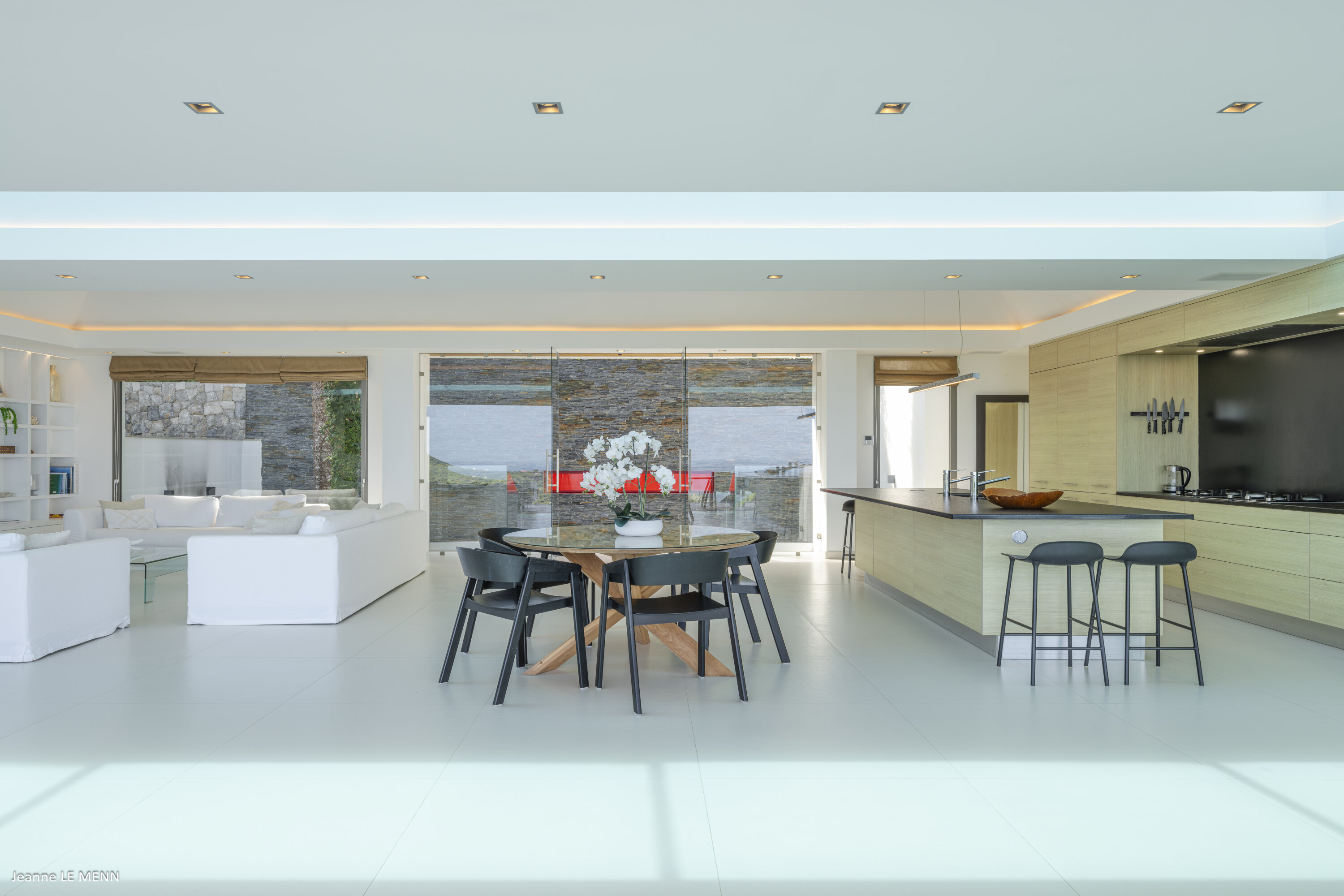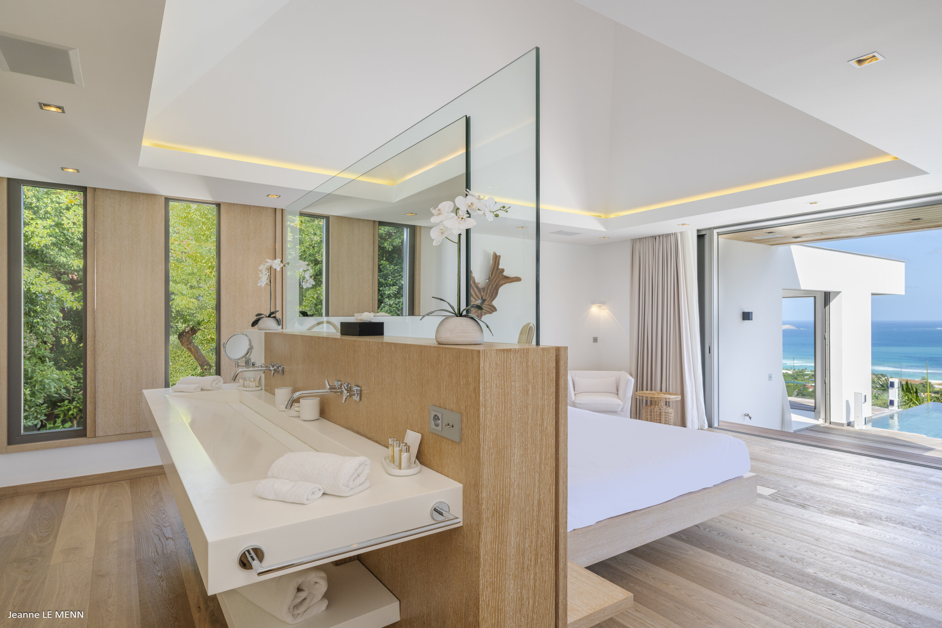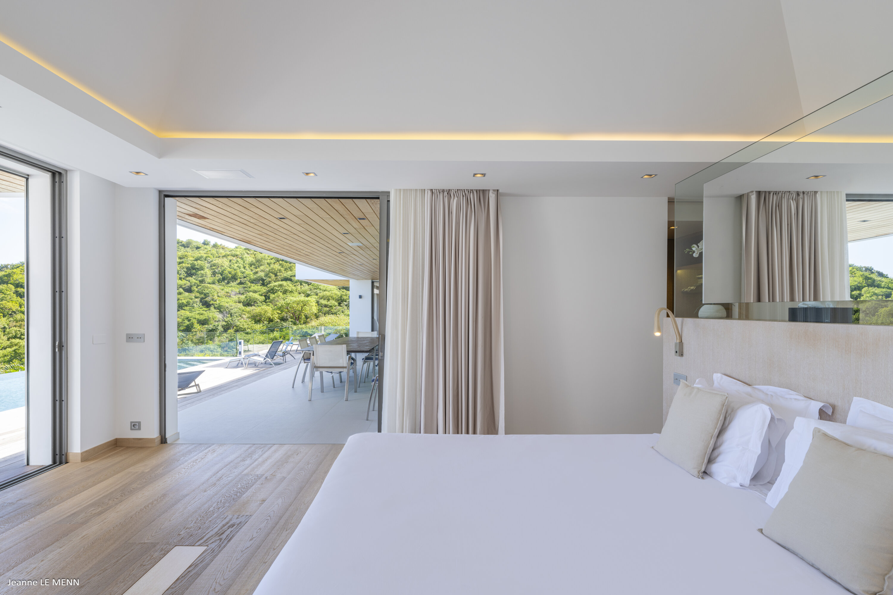 Villa Loukoko, (villa code: WV LOU) is a contemporary, 4-bedroom villa in Lurin, offering panoramic ocean views. High in the hills of Lurin, and just a short drive from Gustavia, villa Loukoko is located in a small gated community. It overlooks the St. Jean area including the airport, the bay, and the ocean. The breathtaking views can be enjoyed from nearly every corner of the villa, including the large terrace and its heated infinity pool. Its dominating position also allows for cooling breezes, but the villa can be fully air-conditioned. The main room with the living room and fully-equipped kitchen has windows on both sides, as well as a skylight overhead, which brings in plenty of light. The space opens up onto the terrace with a covered area for lounging and dining, and there is an outdoor TV hidden on the floor, perfect to watch a movie or game outdoors. One bedroom is directly accessed from the living room. The second room has access just outside the living room, and the third is behind the second. The lower bedroom is accessed near the entrance of the house. Each has a European king-sized bed, ample closet space, Smart TVs, and an ensuite bathroom with shower. On the lower level are both outdoor parking and a parking garage, which doubles as a game room with a ping pong table, a fuss ball, and a pool table. Villa Loukoko is a great choice for couples vacationing together, but will also suit families. During the December holidays, the villa rents at the full occupancy rate regardless of how many bedrooms are used.Please fill out the form to begin your inquiry and we will connect you with a seasoned villa rental specialist.