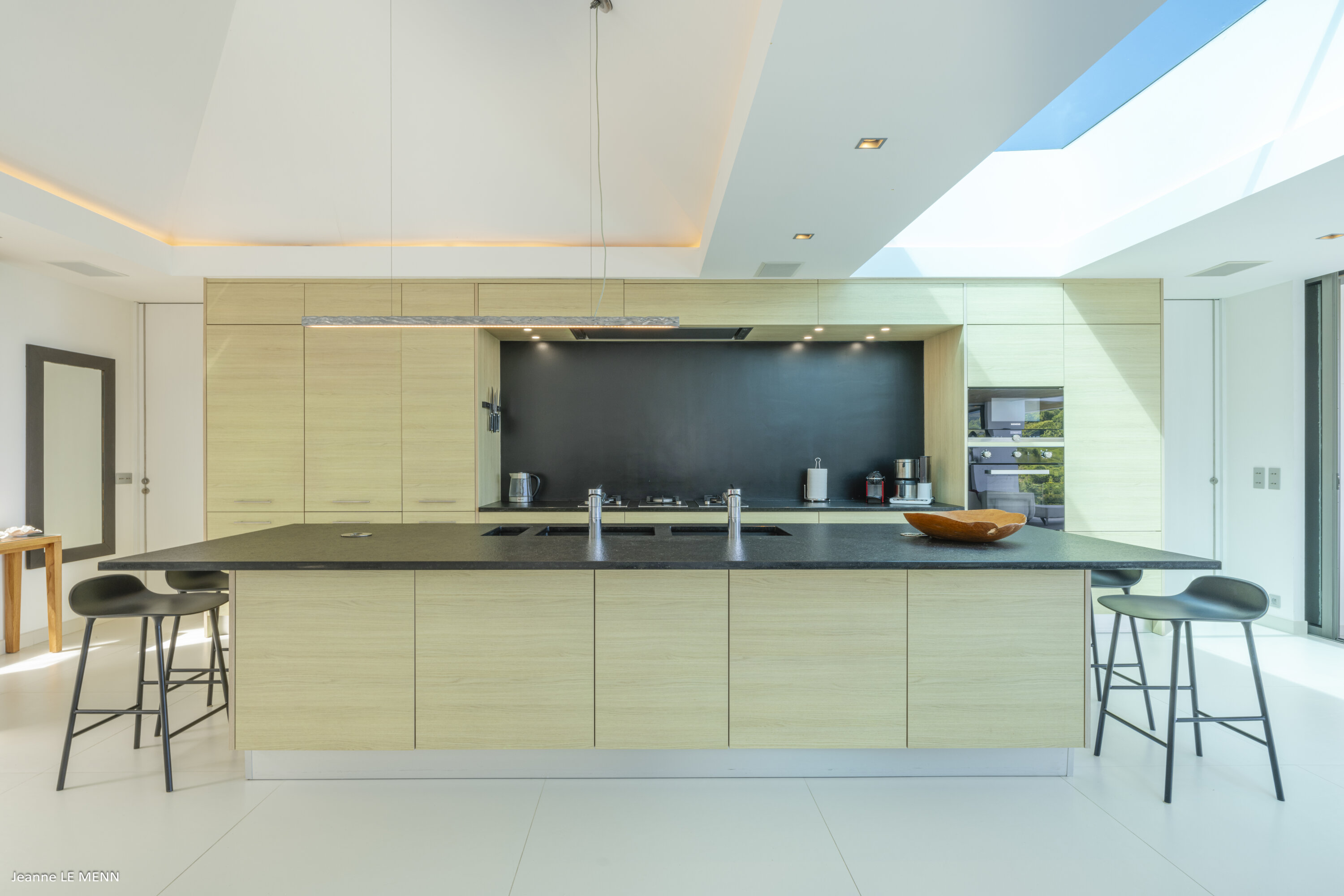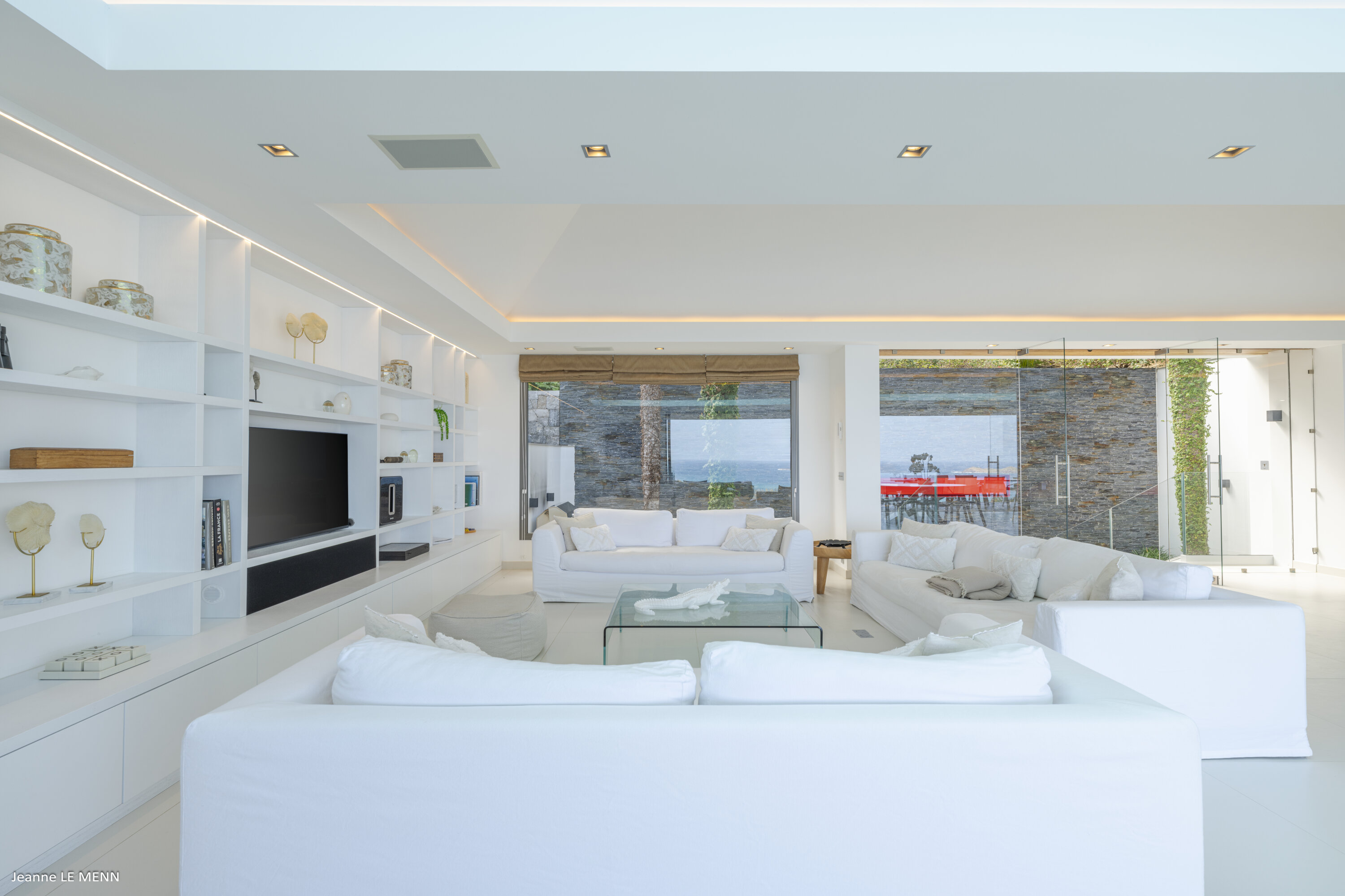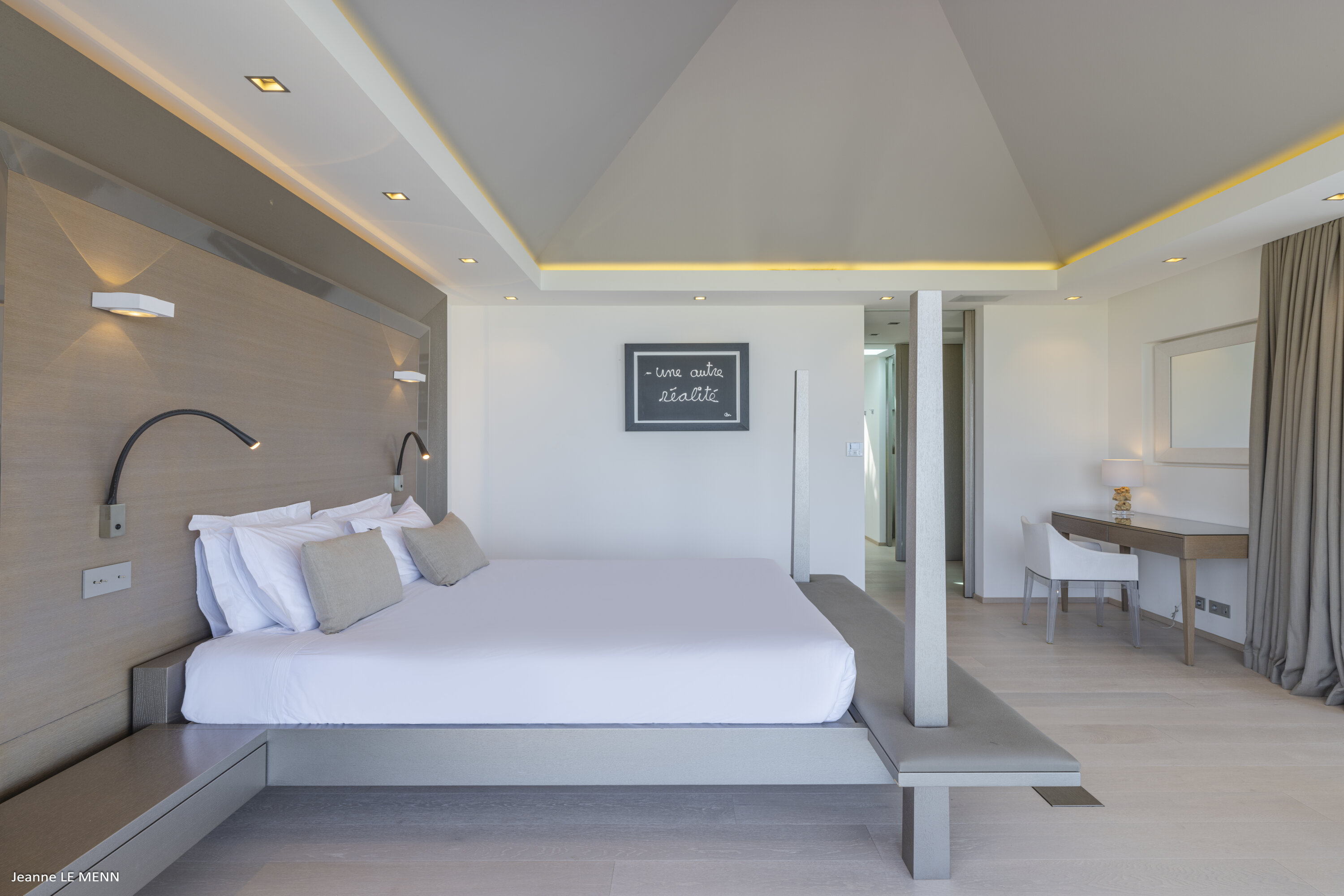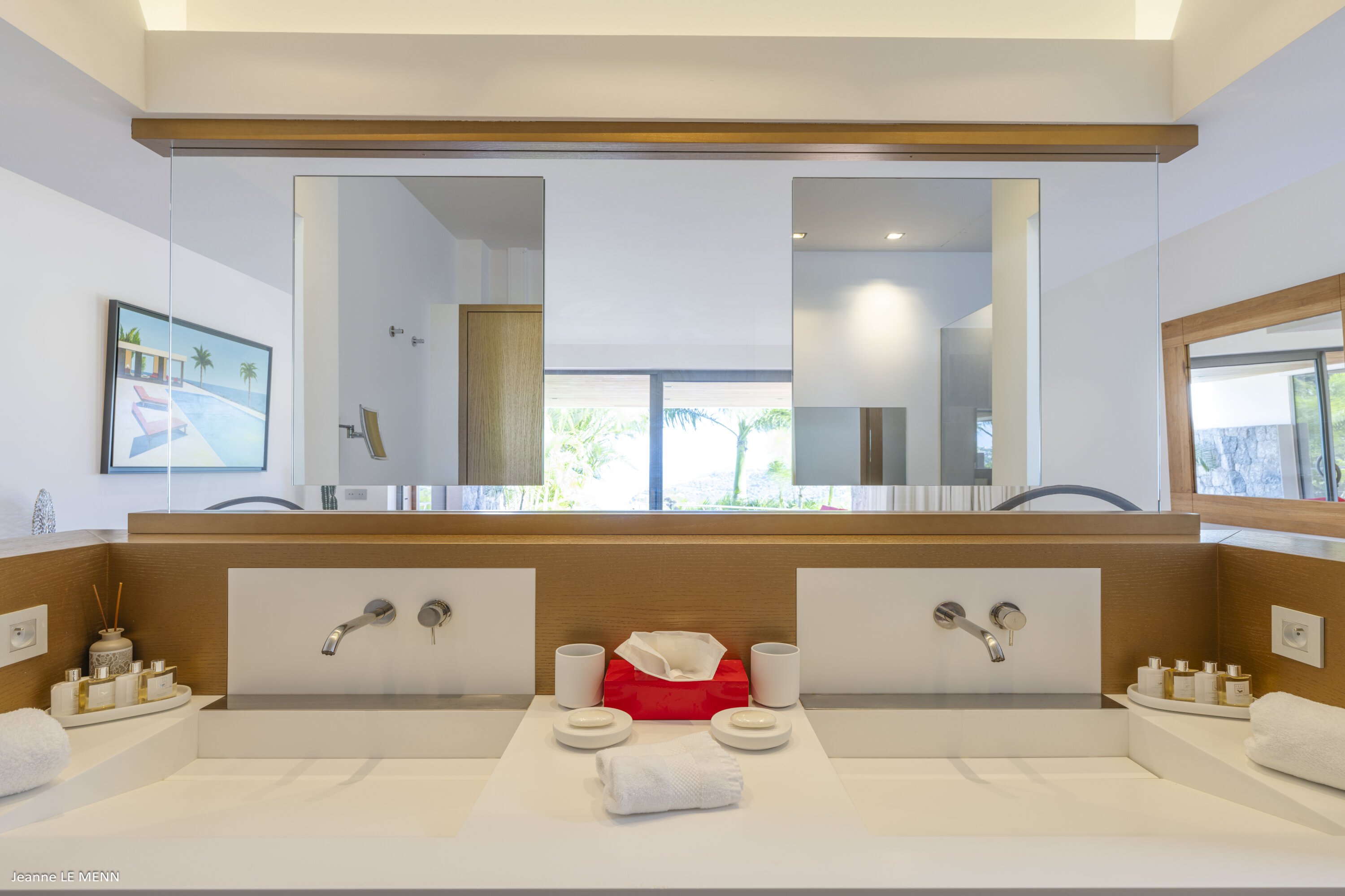 Villa Loukoko, (villa code: WV LOU) is a contemporary, 4-bedroom villa in Lurin, offering panoramic ocean views. High in the hills of Lurin, and just a short drive from Gustavia, villa Loukoko is located in a small gated community. It overlooks the St. Jean area including the airport, the bay, and the ocean. The breathtaking views can be enjoyed from nearly every corner of the villa, including the large terrace and its heated infinity pool. Its dominating position also allows for cooling breezes, but the villa can be fully air-conditioned. The main room with the living room and fully-equipped kitchen has windows on both sides, as well as a skylight overhead, which brings in plenty of light. The space opens up onto the terrace with a covered area for lounging and dining, and there is an outdoor TV hidden on the floor, perfect to watch a movie or game outdoors. One bedroom is directly accessed from the living room. The second room has access just outside the living room, and the third is behind the second. The lower bedroom is accessed near the entrance of the house. Each has a European king-sized bed, ample closet space, Smart TVs, and an ensuite bathroom with shower. On the lower level are both outdoor parking and a parking garage, which doubles as a game room with a ping pong table, a fuss ball, and a pool table. Villa Loukoko is a great choice for couples vacationing together, but will also suit families. During the December holidays, the villa rents at the full occupancy rate regardless of how many bedrooms are used.Please fill out the form to begin your inquiry and we will connect you with a seasoned villa rental specialist.
