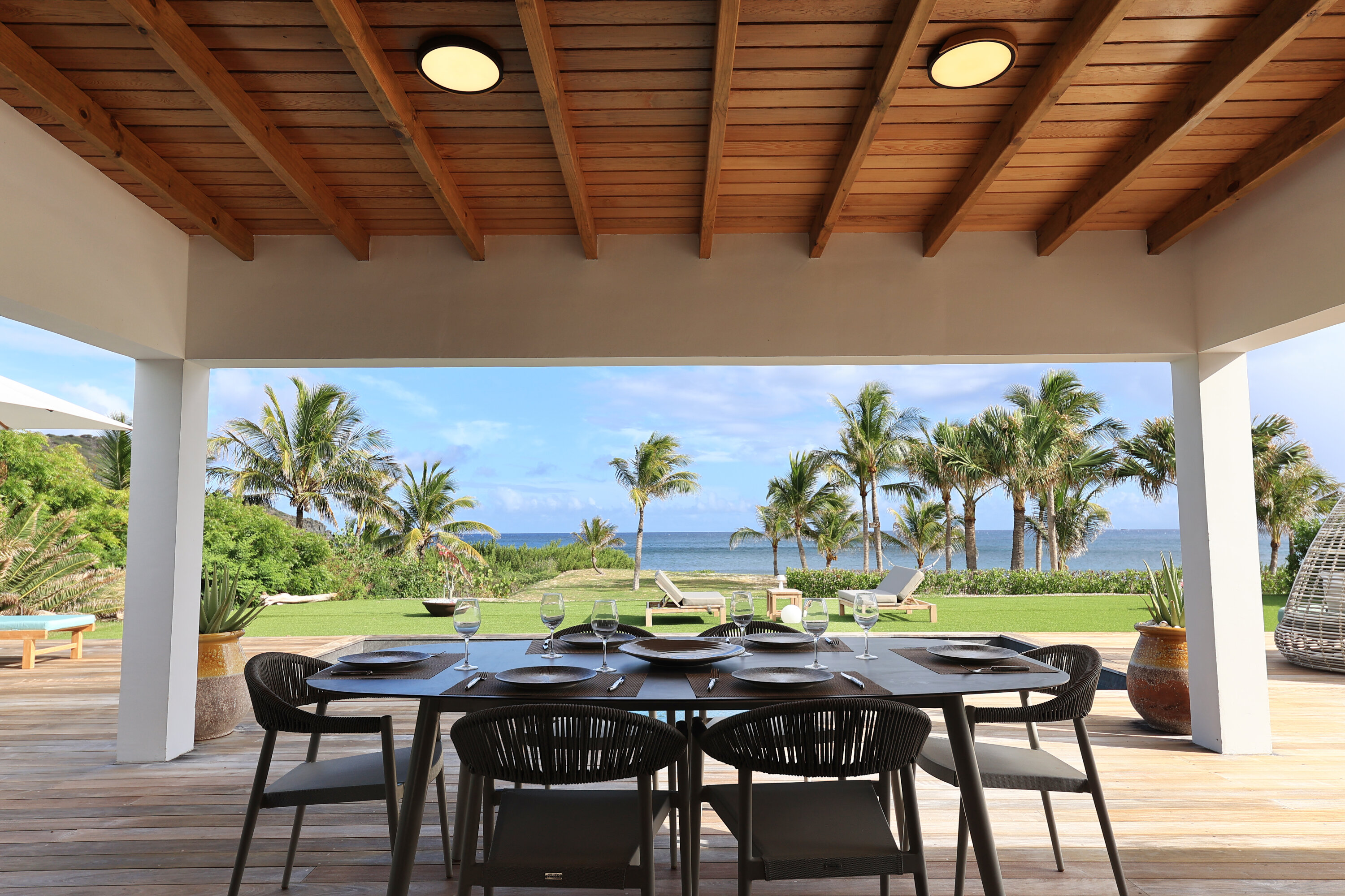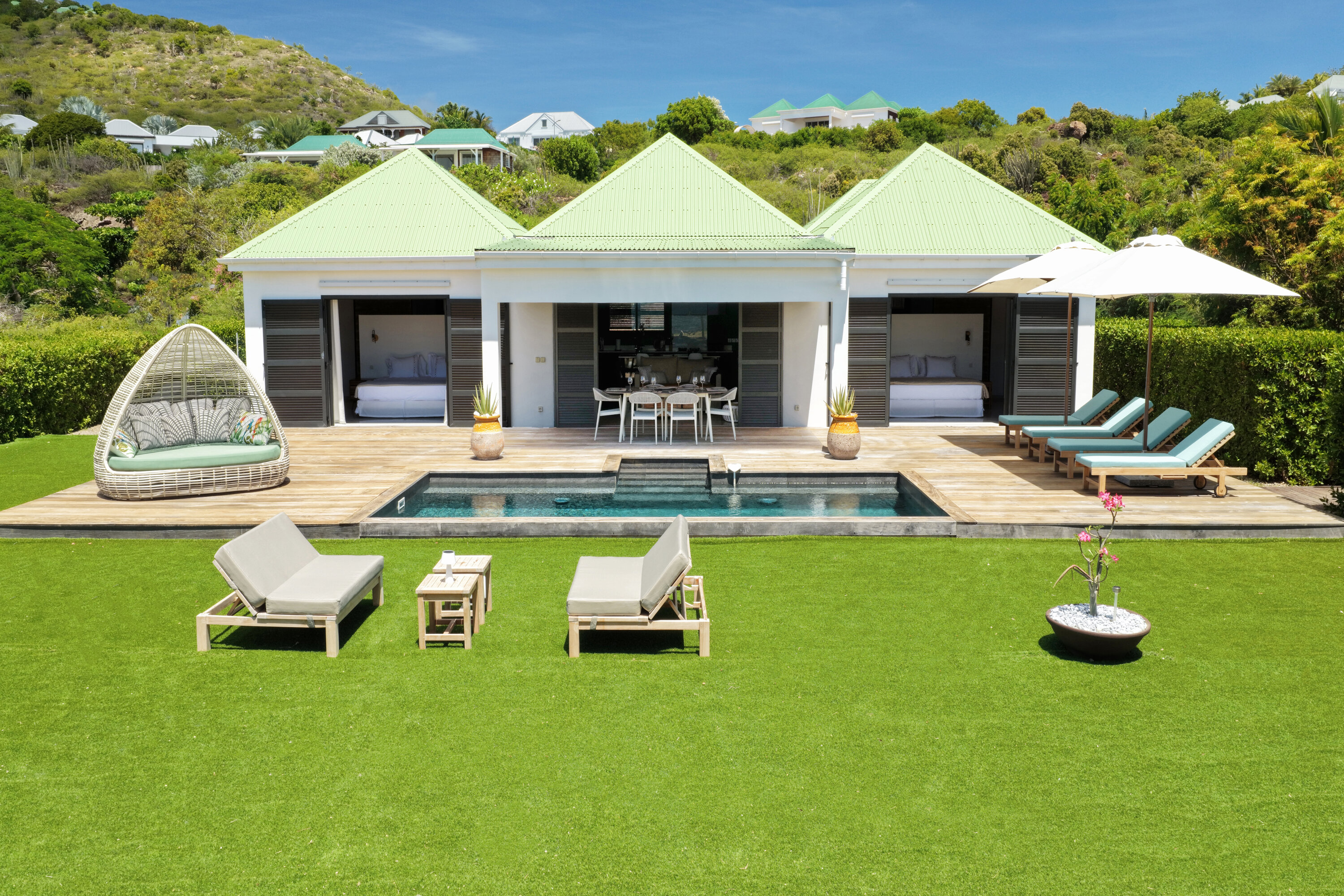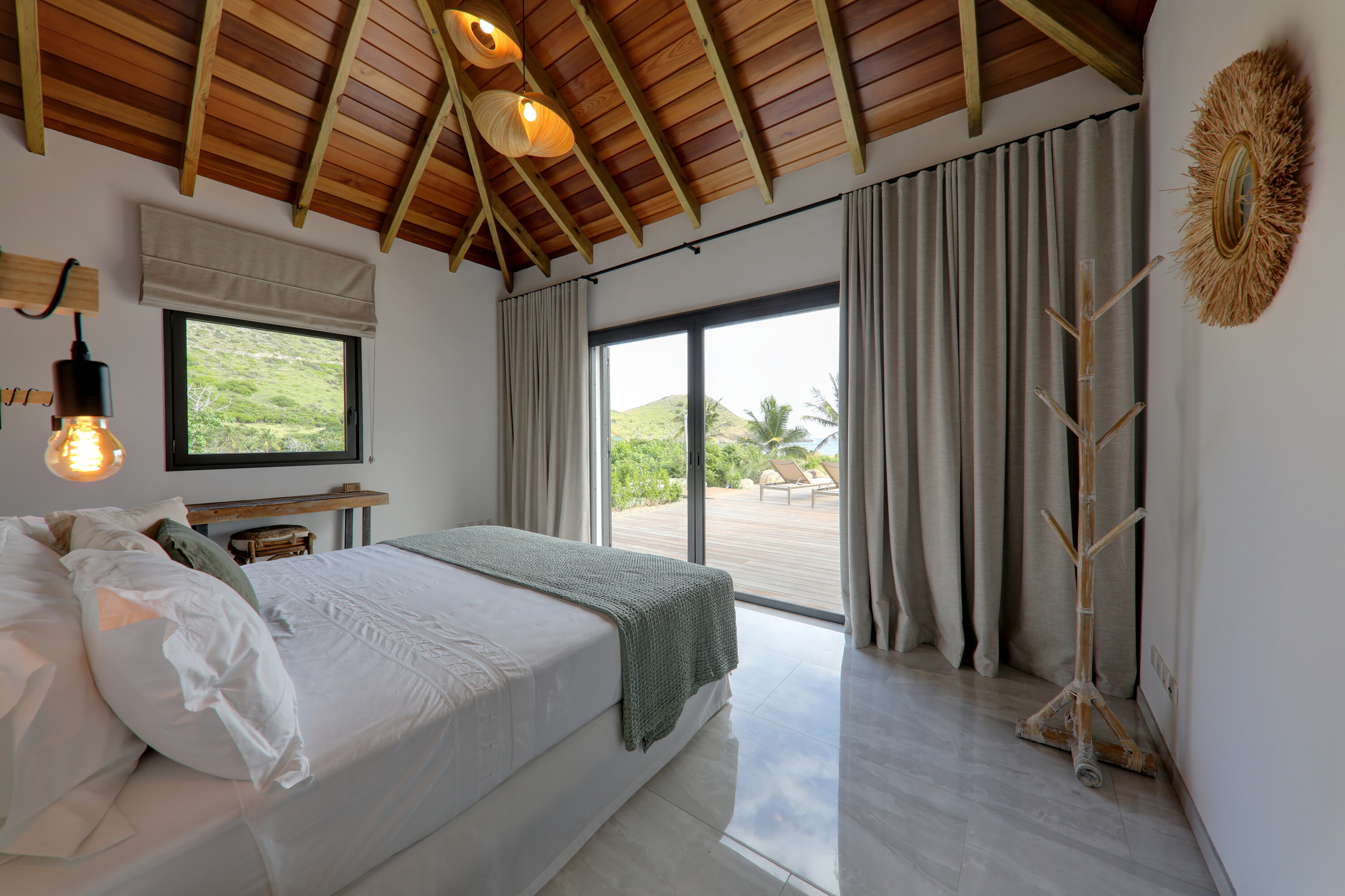 Villa Luffy is a newly-built, 2-bedroom villa, directly on the beach of Toiny, with gorgeous ocean views and vibe. Luffy is nearly identical to villa Ti Chato, just a little higher up. It has the same layout and amenities. The fully air-conditioned open main room with kitchen and living room, opens up to the covered dining area with the pool, and the gorgeous ocean views. The modern, spacious kitchen has several prep areas and an island with seating, and the adjacent living area has comfortable seating. The entertainment center offers U.S. satellite, AppleTV, and a BlueTooth audio system. Both bedrooms, located on either side of the living room, open to an ocean view. Each has a dressing and ensuite bathroom with shower. One of the bedrooms has a U.S. king-size bed, and the other has two twins that can be made up as a U.S. king bed. Outside is a spacious deck and outdoor dining area with a small pool, with the ocean just steps away. The Toiny beach club and restaurant, is also just a stone’s throw from the villa. During the December holidays, the villa rents at the full occupancy rate regardless of how many bedrooms are used. This villa is suitable for young children.Please fill out the form to begin your inquiry and we will connect you with a seasoned villa rental specialist.