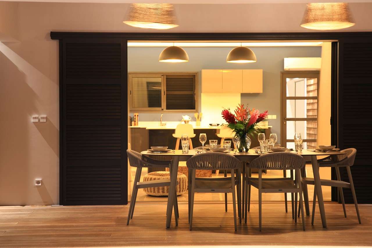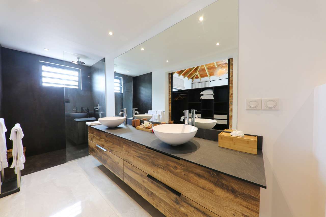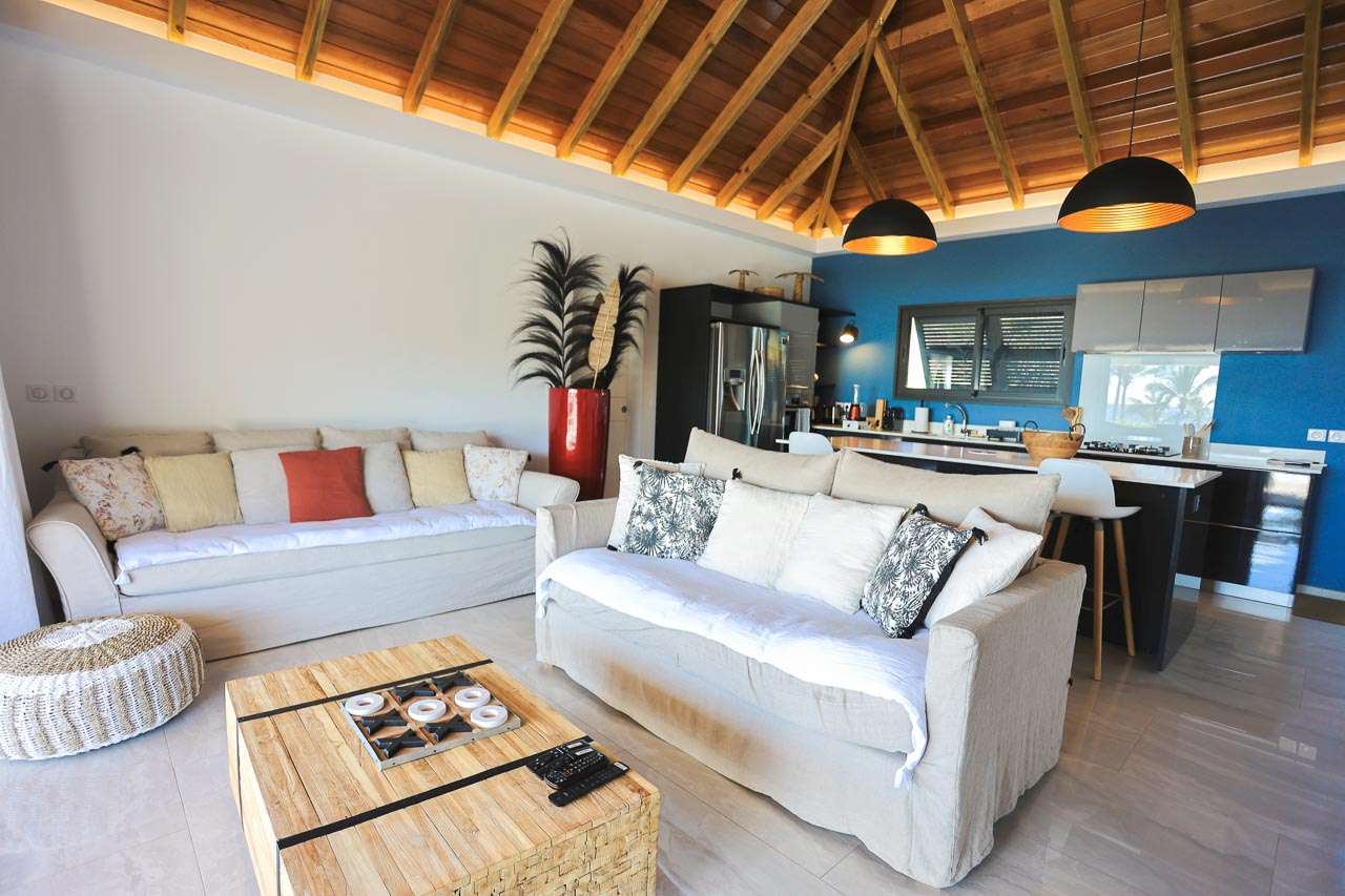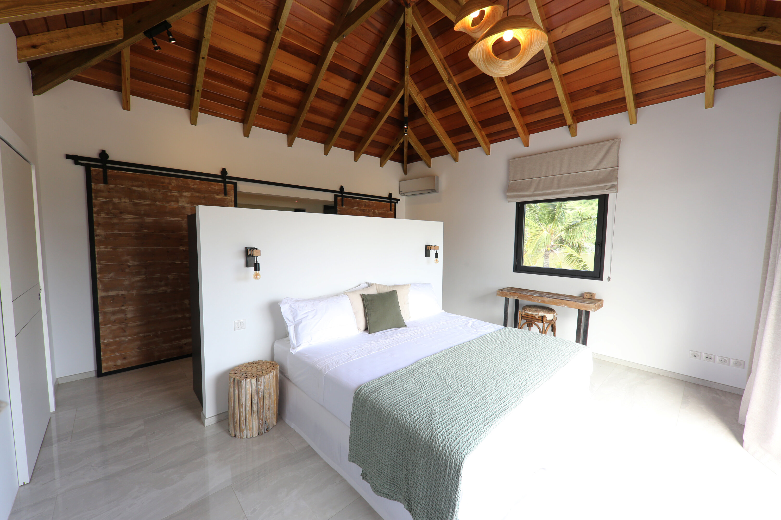 Villa Luffy is a newly-built, 2-bedroom villa, directly on the beach of Toiny, with gorgeous ocean views and vibe. Luffy is nearly identical to villa Ti Chato, just a little higher up. It has the same layout and amenities. The fully air-conditioned open main room with kitchen and living room, opens up to the covered dining area with the pool, and the gorgeous ocean views. The modern, spacious kitchen has several prep areas and an island with seating, and the adjacent living area has comfortable seating. The entertainment center offers U.S. satellite, AppleTV, and a BlueTooth audio system. Both bedrooms, located on either side of the living room, open to an ocean view. Each has a dressing and ensuite bathroom with shower. One of the bedrooms has a U.S. king-size bed, and the other has two twins that can be made up as a U.S. king bed. Outside is a spacious deck and outdoor dining area with a small pool, with the ocean just steps away. The Toiny beach club and restaurant, is also just a stone’s throw from the villa. During the December holidays, the villa rents at the full occupancy rate regardless of how many bedrooms are used. This villa is suitable for young children.Please fill out the form to begin your inquiry and we will connect you with a seasoned villa rental specialist.
