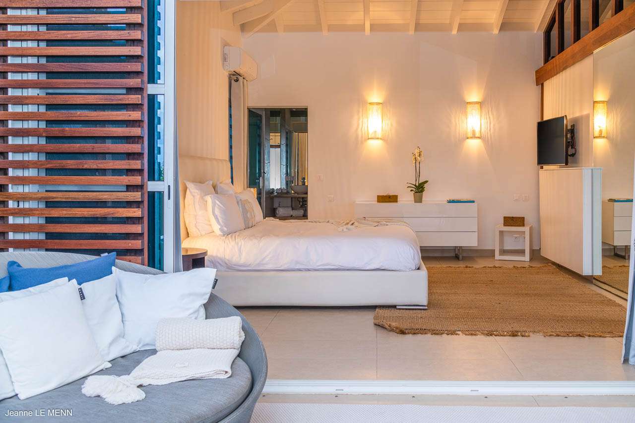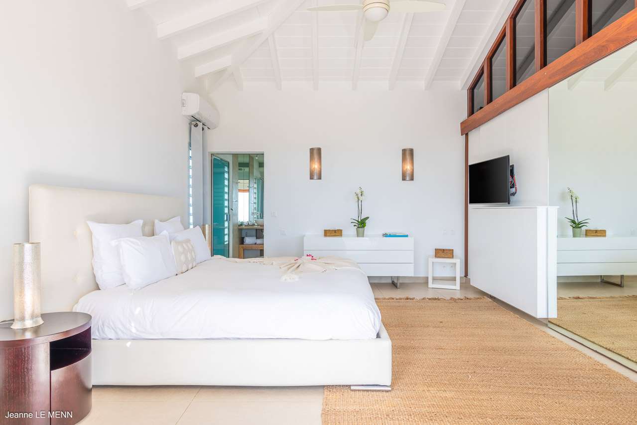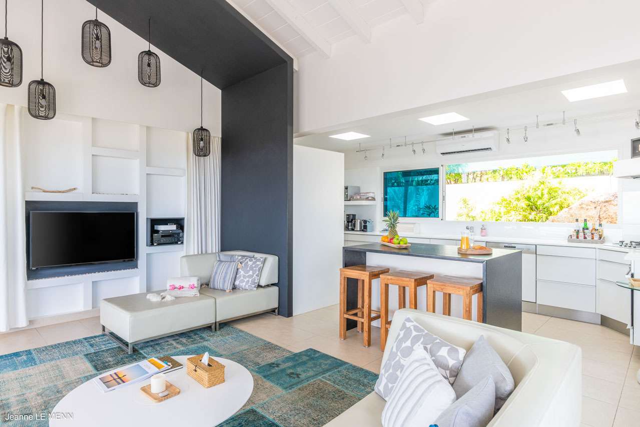 Embrace the island life at Villa Magnifica (villa code: WV BEL), an elegant 1 +1-bedroom villa located in Vitet, St. Barts. With a tasteful design, splendid ocean views, and a great location within minutes of the beach and shopping, this is a fabulous choice for a low-key island getaway Newly-built, Villa Magnifica offers the latest modern living and a beautiful, updated design. Blending indoors with the outdoor spaces, expect clean lines, gorgeous natural woods, and charming tropical details like woven rugs underfoot and romantic lighting throughout. Plenty of floor-to-ceiling doors and large windows make the interior living spaces feel like they’re a part of the tropical landscape. Breezy and filled with natural light, the villa evokes feelings of island luxury; modern furnishings combine with a serene sense of style and pared-back décor. The spacious and modern living room and kitchen enjoy wooden décor that contrasts with the white walls. A plush L-shaped sofa sits by the doors to the outdoor terrace, a prime position for putting your feet up with a drink and enjoying the cooling sea breeze. At the back of the living area is Villa Magnifica’s kitchen, which is well equipped with ample seating. Sleek white cabinetry and the latest appliances make cooking here a breeze. Our concierge is also on hand to organize a grocery delivery for your stay, or for a special occasion, arrange a private chef for an evening. There’s an island with stool seating, a good spot for fresh eggs and coffee in the mornings, or a cocktail hour in the evening. The dining table on the covered terrace outside offers a picturesque setting for meals together, with the sparkling Caribbean and rolling green hills as a backdrop. The master bedroom is located off the living room and features modern décor, a king-sized bed, and an ensuite bathroom. Sliding doors open wide to the outdoor terrace, welcoming in the breezes and wonderful views. The second bedroom is on the lower level, a quiet and private space. This room has a king-sized bed and an ensuite bathroom with a shower and is best suited for a teenager. The split-level outdoor area at Villa Magnifica makes it easy to spend a day outside, soaking up the gorgeous weather. The covered terrace features more seating and a daybed, an ideal spot to chill out in the shade. This space opens to a side lawn, with a table for a quiet drink and aperitif in the warm evening air. On the lower level of the outdoor space is the swimming pool, bathed in the island sun. There are chaise lounges for soaking up the island rays, dropping off for a nap, or sipping a cool drink while gazing out at the sea. With a coveted location at the far end of Vitet, Villa Magnifica also enjoys outstanding views over both Petit Cul de Sac and Toiny Beach. Both are only a few minutes by car, while shops and restaurants are around a 10-minute drive. The capital Gustavia is 20 minutes away. Villa Magnifica also includes a complimentary car rental (category 1 from Turbe Car Rental) with any weekly rental (only during low season). During the December holiday the villa rents at the full occupancy rate regardless of how many bedrooms are used.Please fill out the form to begin your inquiry and we will connect you with a seasoned villa rental specialist.
