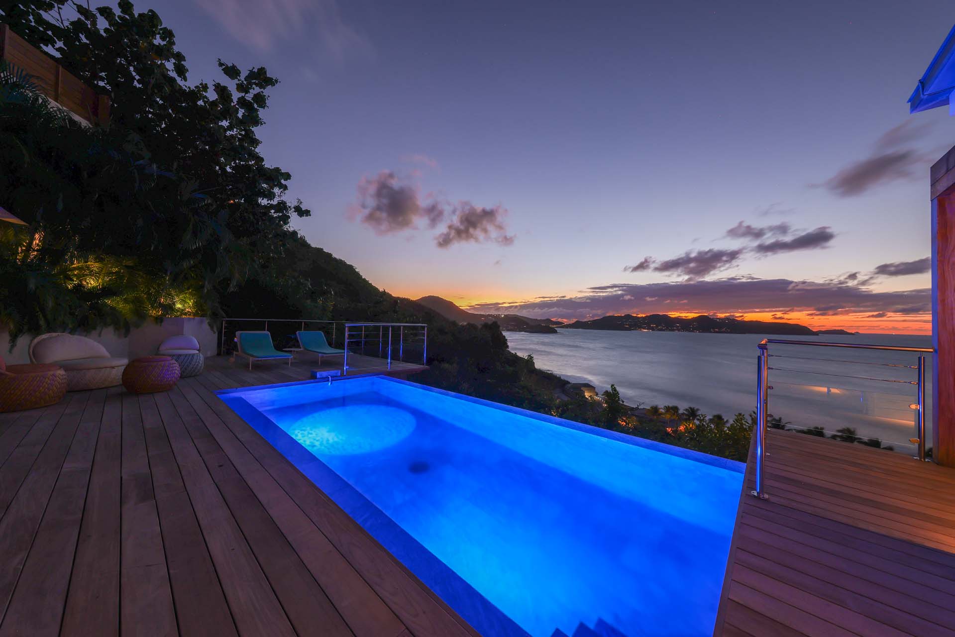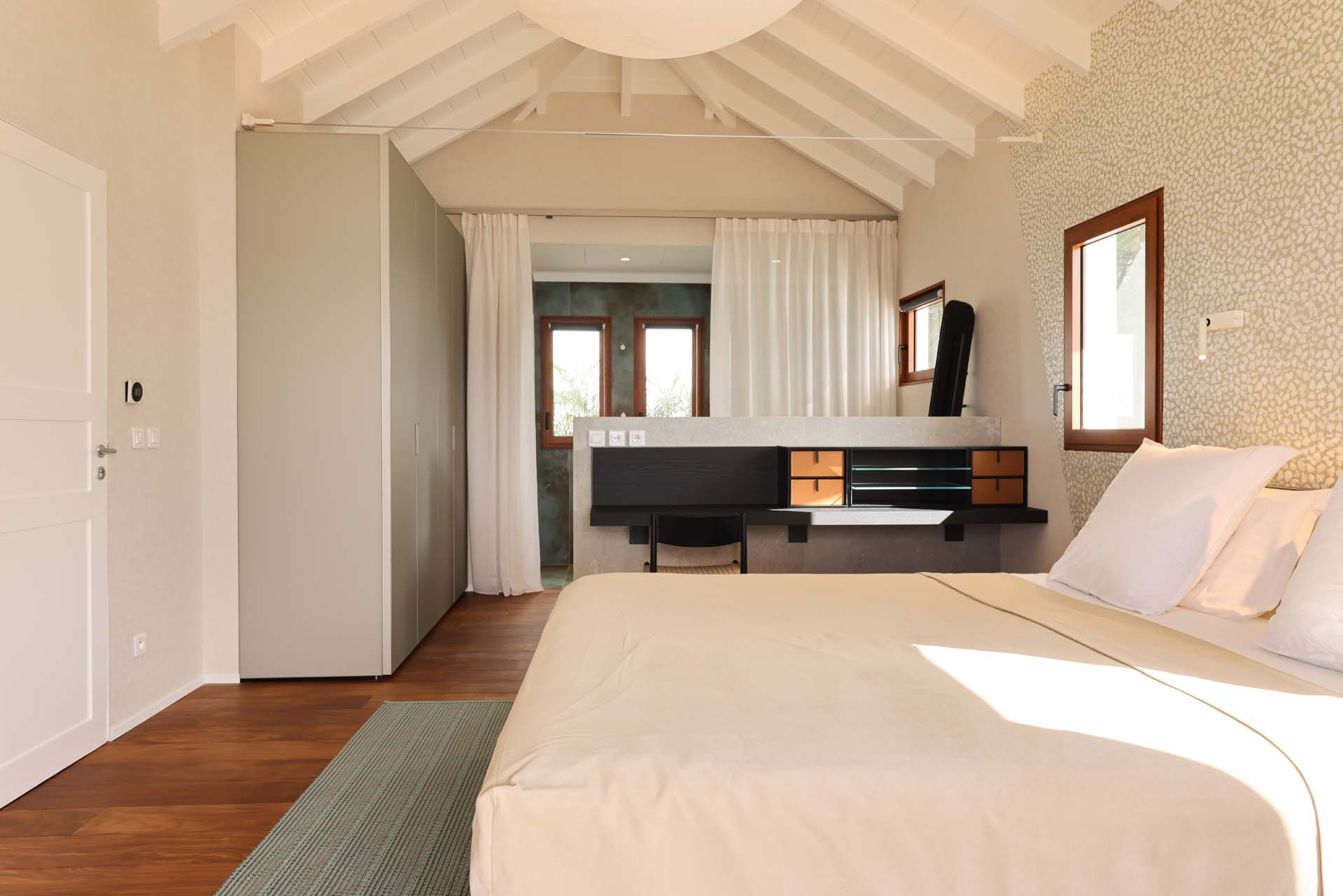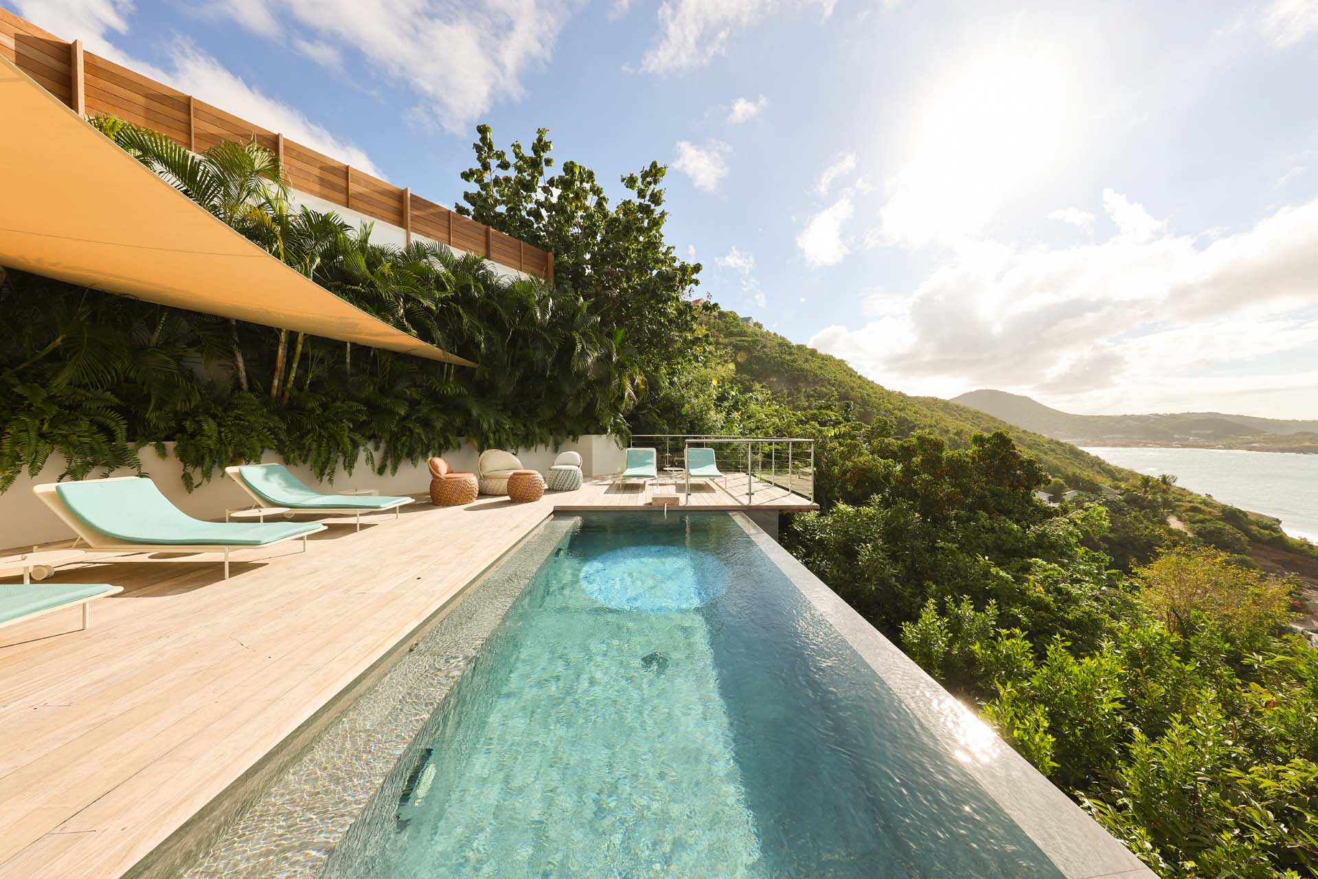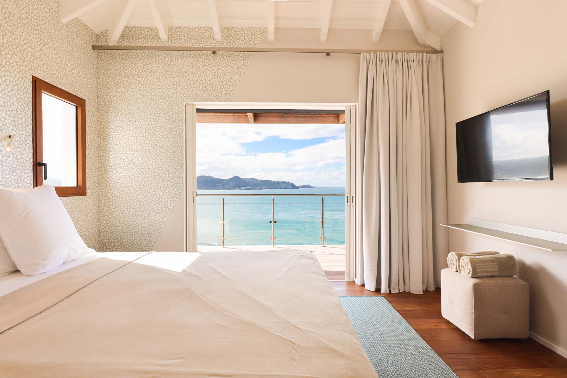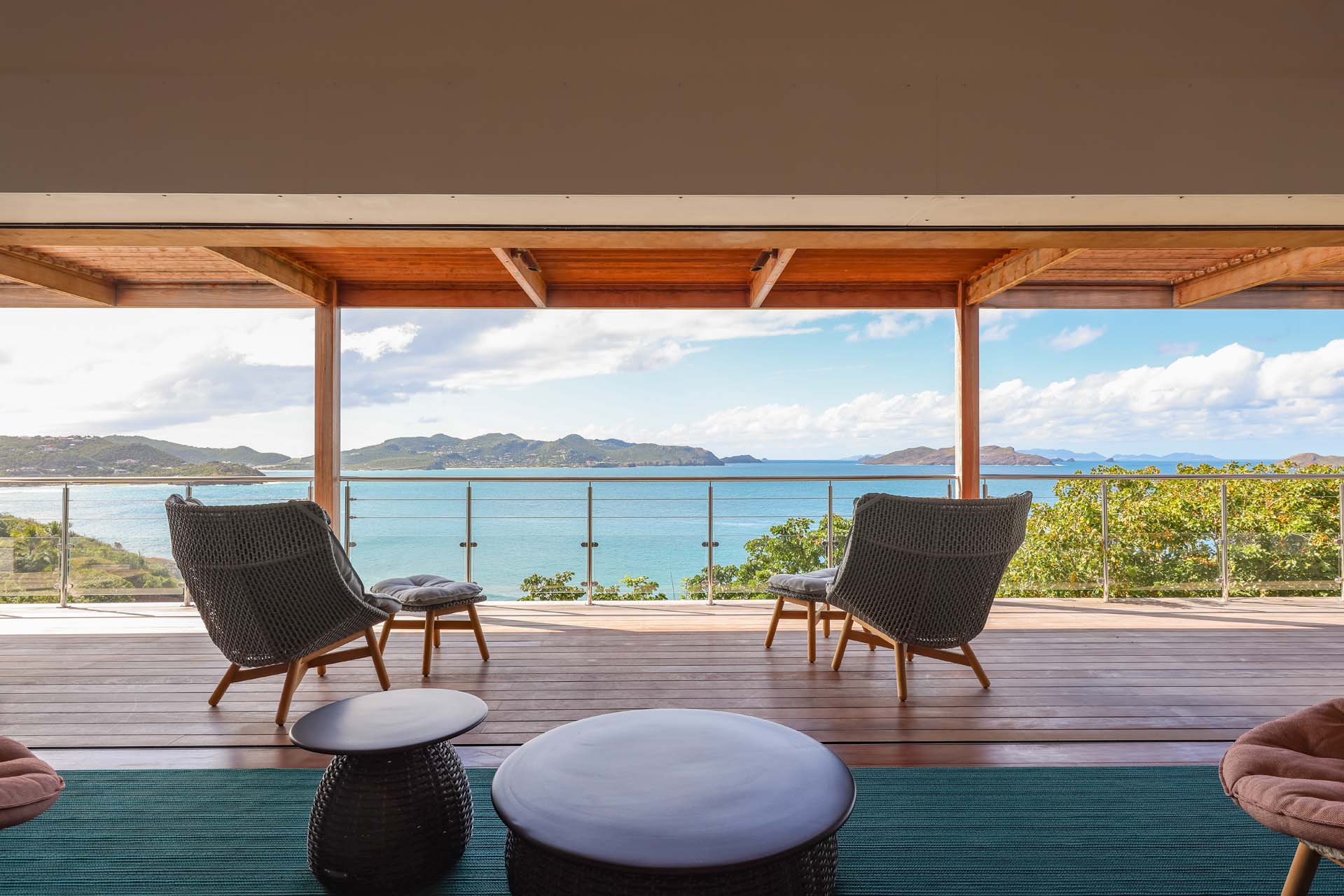 Welcome to Villa Manava (villa code: WV FWI), a 4-bedroom villa nestled in the hillside of Pointe Milou, above the Hotel Christopher. With beaches and shops a short drive away, this property enjoys sweeping views of the offshore islands and the St. Barts coastline. A superb mix of indoor and outdoor living spaces makes staying at Villa Manava incredible. Modern and contemporary interiors are dazzling in white, with accents of red and grey in cushions, décor, and artwork. Minimalist and stylish, it’s an excellent choice for a luxurious stay on St. Barts. Within minutes, you can be scrunching your toes in the sand at either Lorient Beach or Marigot Beach, both just a short drive away. For drinking, dining, and shopping, the elegant St-Jean is 10 minutes by car. As an added bonus, the pool club, spa and restaurant at the Christopher Hotel is within walking distance As you step through the entrance of Villa Manava, you’ll find yourself in the spacious great room. With an open concept design, it’s home to the living room, dining area, and kitchen. The walls open completely to the outdoor terrace, allowing the interiors to spill out into the graceful outdoor living areas. The living room is contemporary and minimalist, with a large, soft sofa. Sinking in here at the end of your day and exploring St. Barts is ideal. A large flat-screen TV lets you unwind with your favorite movie, hooked up to U.S. satellite channels. Villa Manava’s modern kitchen is well-equipped with everything you’ll need to cook delicious meals during your stay. Our concierge can even organize grocery pre-stocking or delivery, catered meals, or arrange a private chef service for a special occasion. Next to the kitchen is the elegant dining table with seating for 6. Captivating views of the Caribbean from the table are a great accompaniment to a gourmet meal and bottle of fine French wine. There are 4 bedrooms at Villa Manava, two are on the upper level and two on the lower level. All the bedrooms come with a queen-sized bed, air-conditioning, a spacious ensuite bathroom, and TVs with French satellite channels. Screens over the doors and windows let you fall asleep to the gentle sea breeze each evening. Outside, a beautiful deck spans the length of Manava Villa, offering stunning views over Lorient Bay. Plush chairs and four-poster sunbeds are fabulous spots for admiring the sunset as it dips behind St Martin and Anguilla in the distance. The offshore islands of Île Toc Vers, Île Fregate, and Île Bonhomme are also in view. On one side is the villa’s infinity pool, which will no doubt tempt you in for a dip. When it’s time to dry off, loungers lining the water let you bask in the island rays. When it comes to beaches, you’re spoilt for choice. Lorient Beach is an easy 5-minute drive, and home to a stunning coral reef and some of the best snorkeling on the island. For something more laid back, 5 minutes towards the southeast is Marigot Bay Beach, secluded and quiet. Appealing restaurants and shops are just 10 minutes away in St. Jean, while the capital Gustavia is a 20-minute drive. During the December holidays, the villa rents at the full occupancy rate regardless of how many bedrooms are used.Please fill out the form to begin your inquiry and we will connect you with a seasoned villa rental specialist.