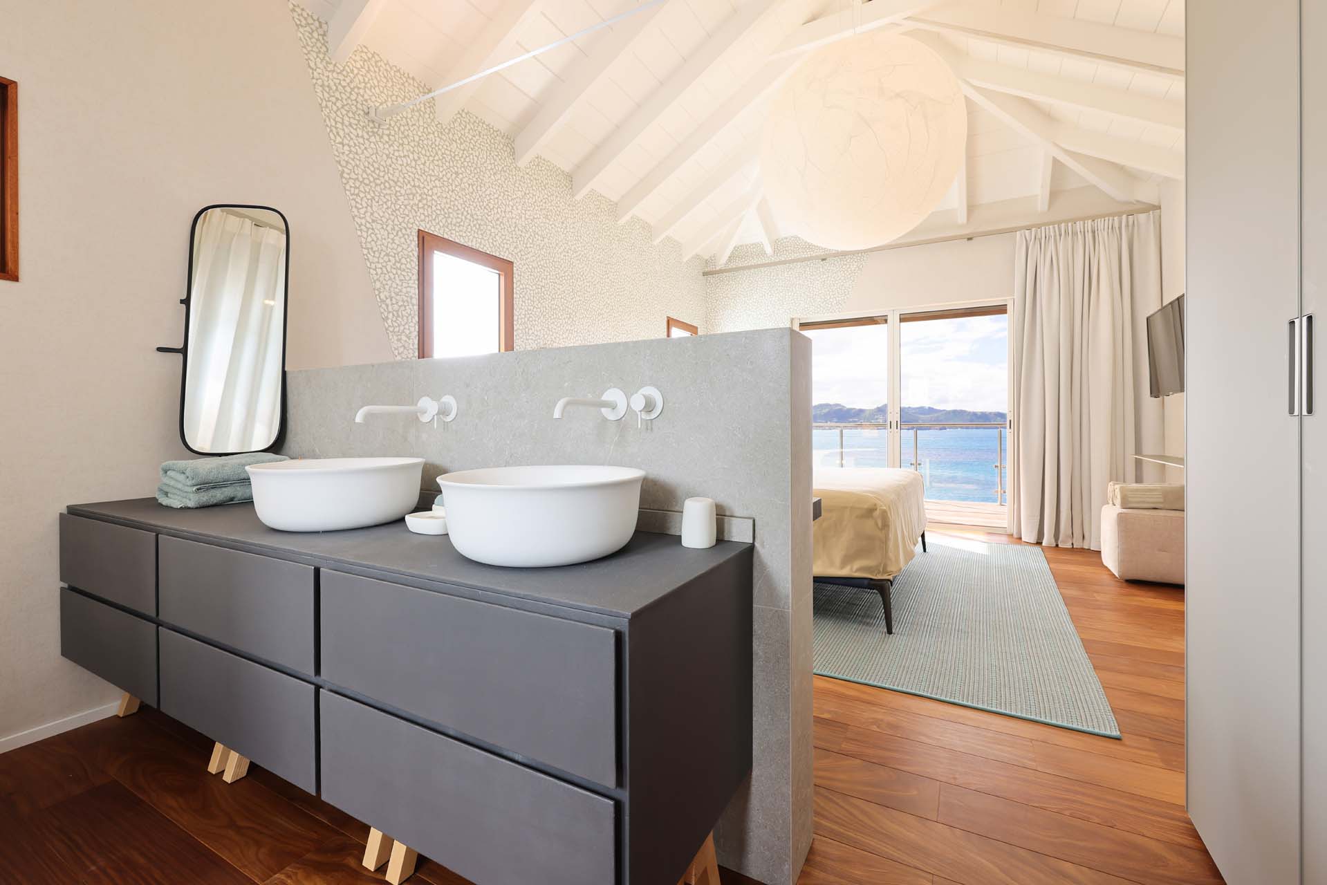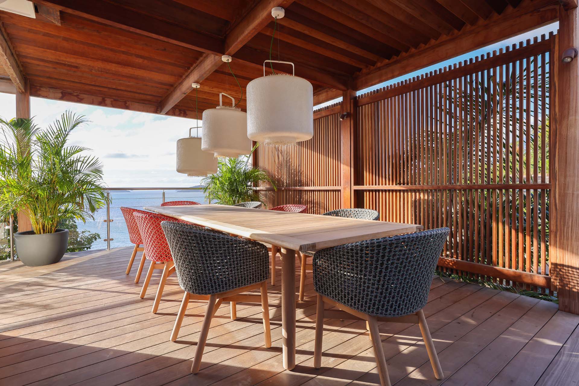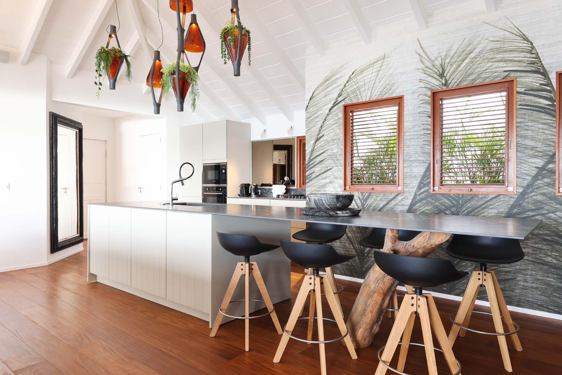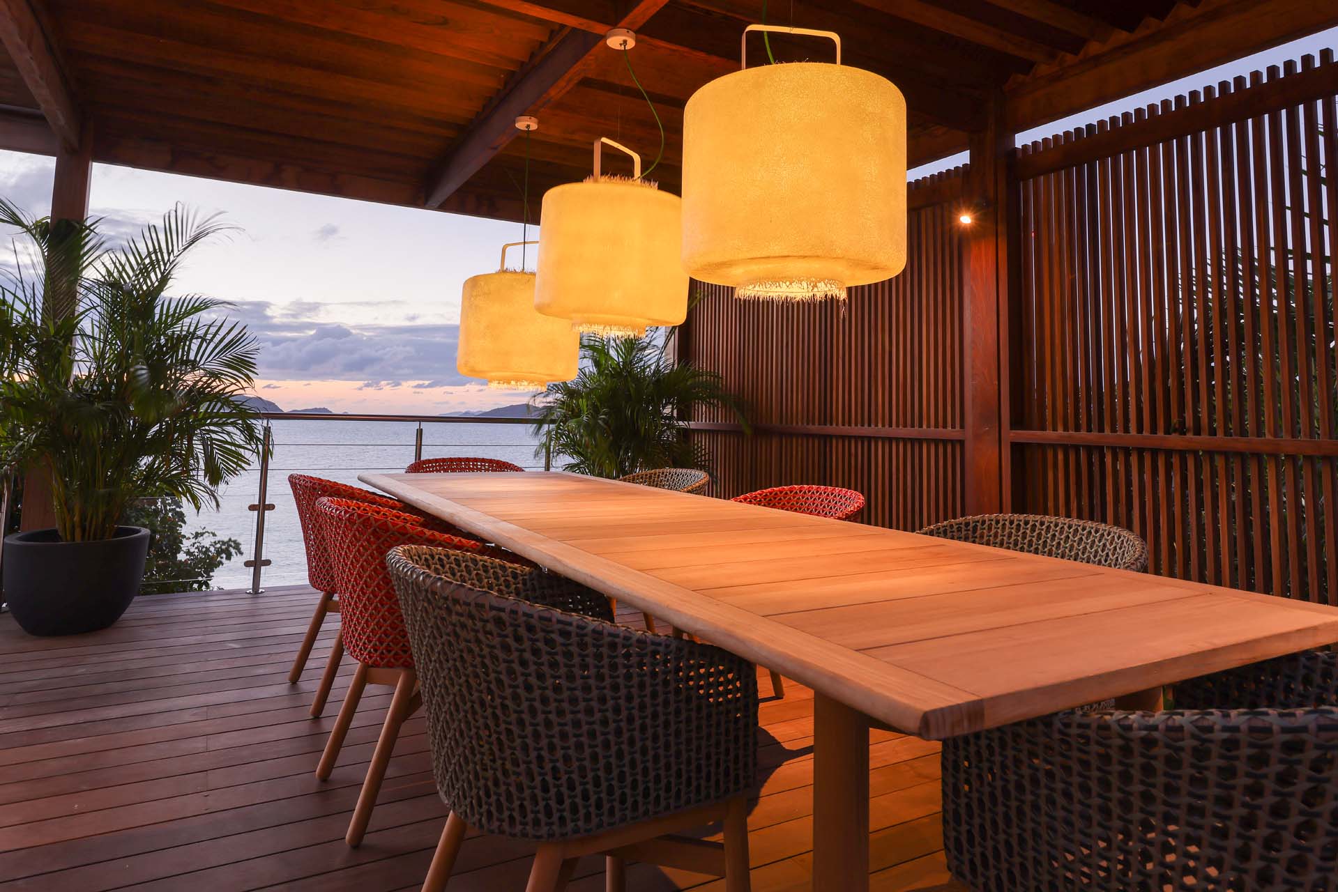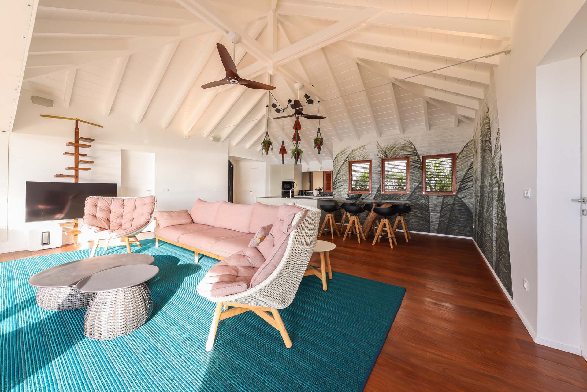Welcome to Villa Manava (villa code: WV FWI), a 4-bedroom villa nestled in the hillside of Pointe Milou, above the Hotel Christopher. With beaches and shops a short drive away, this property enjoys sweeping views of the offshore islands and the St. Barts coastline. A superb mix of indoor and outdoor living spaces makes staying at Villa Manava incredible. Modern and contemporary interiors are dazzling in white, with accents of red and grey in cushions, décor, and artwork. Minimalist and stylish, it’s an excellent choice for a luxurious stay on St. Barts. Within minutes, you can be scrunching your toes in the sand at either Lorient Beach or Marigot Beach, both just a short drive away. For drinking, dining, and shopping, the elegant St-Jean is 10 minutes by car. As an added bonus, the pool club, spa and restaurant at the Christopher Hotel is within walking distance As you step through the entrance of Villa Manava, you’ll find yourself in the spacious great room. With an open concept design, it’s home to the living room, dining area, and kitchen. The walls open completely to the outdoor terrace, allowing the interiors to spill out into the graceful outdoor living areas. The living room is contemporary and minimalist, with a large, soft sofa. Sinking in here at the end of your day and exploring St. Barts is ideal. A large flat-screen TV lets you unwind with your favorite movie, hooked up to U.S. satellite channels. Villa Manava’s modern kitchen is well-equipped with everything you’ll need to cook delicious meals during your stay. Our concierge can even organize grocery pre-stocking or delivery, catered meals, or arrange a private chef service for a special occasion. Next to the kitchen is the elegant dining table with seating for 6. Captivating views of the Caribbean from the table are a great accompaniment to a gourmet meal and bottle of fine French wine. There are 4 bedrooms at Villa Manava, two are on the upper level and two on the lower level. All the bedrooms come with a queen-sized bed, air-conditioning, a spacious ensuite bathroom, and TVs with French satellite channels. Screens over the doors and windows let you fall asleep to the gentle sea breeze each evening. Outside, a beautiful deck spans the length of Manava Villa, offering stunning views over Lorient Bay. Plush chairs and four-poster sunbeds are fabulous spots for admiring the sunset as it dips behind St Martin and Anguilla in the distance. The offshore islands of Île Toc Vers, Île Fregate, and Île Bonhomme are also in view. On one side is the villa’s infinity pool, which will no doubt tempt you in for a dip. When it’s time to dry off, loungers lining the water let you bask in the island rays. When it comes to beaches, you’re spoilt for choice. Lorient Beach is an easy 5-minute drive, and home to a stunning coral reef and some of the best snorkeling on the island. For something more laid back, 5 minutes towards the southeast is Marigot Bay Beach, secluded and quiet. Appealing restaurants and shops are just 10 minutes away in St. Jean, while the capital Gustavia is a 20-minute drive. During the December holidays, the villa rents at the full occupancy rate regardless of how many bedrooms are used.Please fill out the form to begin your inquiry and we will connect you with a seasoned villa rental specialist.
