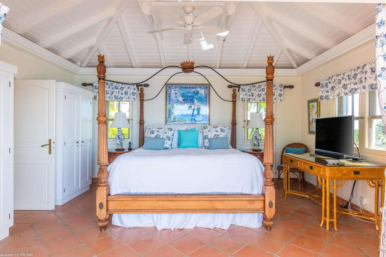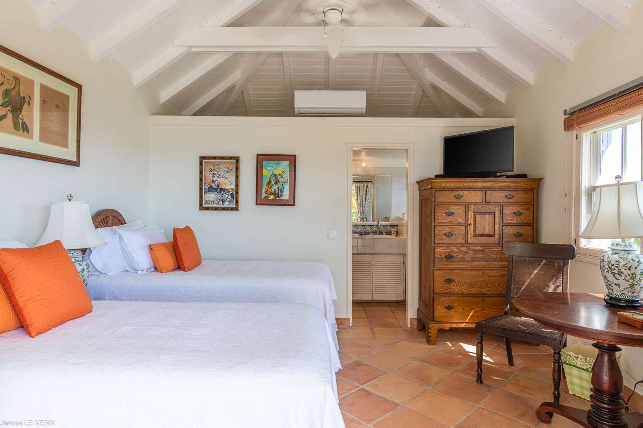 Welcome to Villa Mango (villa code: WV MGO), a wonderful 3-bedroom villa located in the hills of Colombier, St. Barts. Enjoying wonderful views over Gustavia harbor and within minutes of the beach, shops, and restaurants, this is Caribbean luxury at its very best. Inside, warm apricot hues and neutral shades of color contrast with the playful island details. Expect tropical prints in the furnishings, exotic tapestries and artworks adorning the walls, and an artful mix of antique pieces that enhance the old-world atmosphere. Best of all are the views from Villa Mango. Nestled in the hills of Colombier above Gustavia, from the outdoor terrace the outstanding vista takes in the yachts bobbing at anchor in the harbor. With such proximity to Gustavia, this also means that you’ll be within minutes of the beach, duty-free shopping, and the world-class dining scene in the St. Barts capital. Spread over three levels, Villa Mango offers a playful and open design that’s all about enjoying the island air. With a spacious great room at the top and bedrooms below with outdoor terraces across all three levels, there’s plenty of room to come together as a group yet also find a quiet corner to unwind. The great room is the heart of the home, with the living area, dining room, and kitchen in a flowing, open-plan layout. The entire space opens to an outdoor terrace with views. The elegant living room is one of the best spots in the house to kick back and relax, with comfortable sofas and elegant décor, including a large telescope for stargazing at night. Nearby, Villa Mango’s kitchen is well equipped with all the appliances you’ll need to prepare meals during your stay. Our concierge is also happy to organize a grocery delivery, or for a special occasion, a private chef. Next to the kitchen is the interior dining room, with a beautiful table set beneath an antique chandelier. The space opens to the outdoor terrace where there’s another table, letting you dine alfresco with the ocean views. The 3 bedrooms at Villa Mango are tranquil and spacious, offering comfortable bedding and soft linens for recharging each evening. The exotic island theme continues in these spaces, with island artworks on the wall and elegant bed frames. The master bedroom is on the lowest level, featuring a four-poster mahogany king-sized bed. Sliding doors open to a private and furnished terrace with ocean views. The other two bedrooms are on the middle level, one with a king, the other with either a king or a pair of twin beds. All three bedrooms have air-conditioning, ceiling fans, and ensuite bathrooms as well. On the top level of Villa Mango, the beautiful terrace extends towards the views over Gustavia below. The covered terrace with the dining table also features an outdoor bar looking into the kitchen, an ideal spot for an afternoon of tropical cocktails while the breeze washes across the terrace. Also on the top level is the swimming pool, with three separate areas. The infinity edge overlooks the view, offering the best view from Villa Mango for sunsets. You could sunbathe on the loungers that line the water or relax underneath a shady gazebo with an outdoor lounge, ideal for drinks, reading, or an afternoon nap. During the Thanksgiving and December holidays, the villa rents at the full occupancy rate regardless of how many bedrooms are used.Please fill out the form to begin your inquiry and we will connect you with a seasoned villa rental specialist.