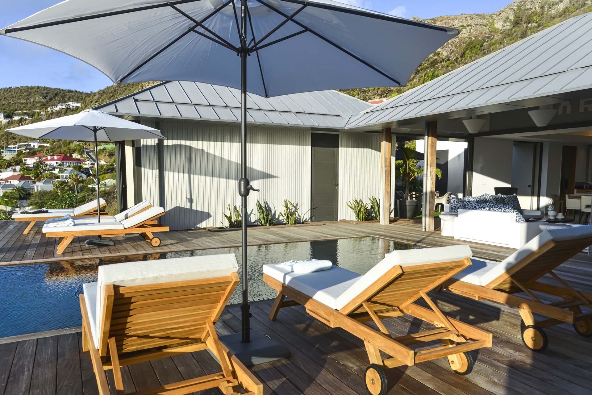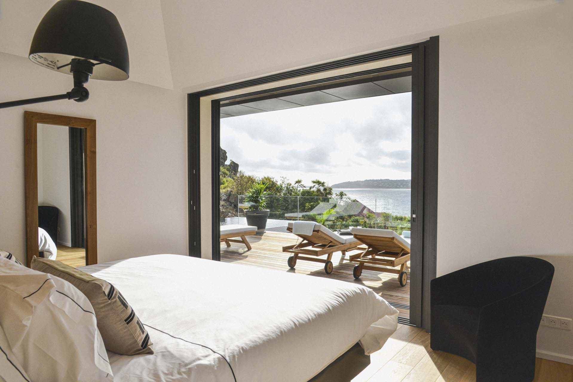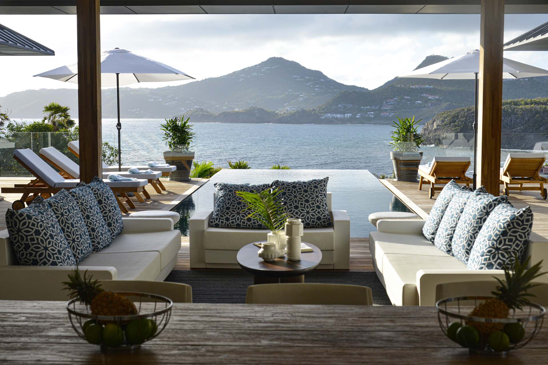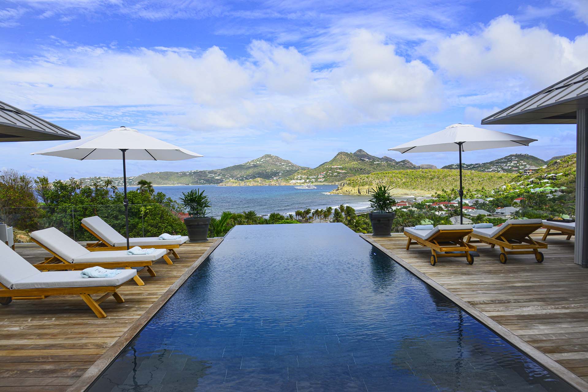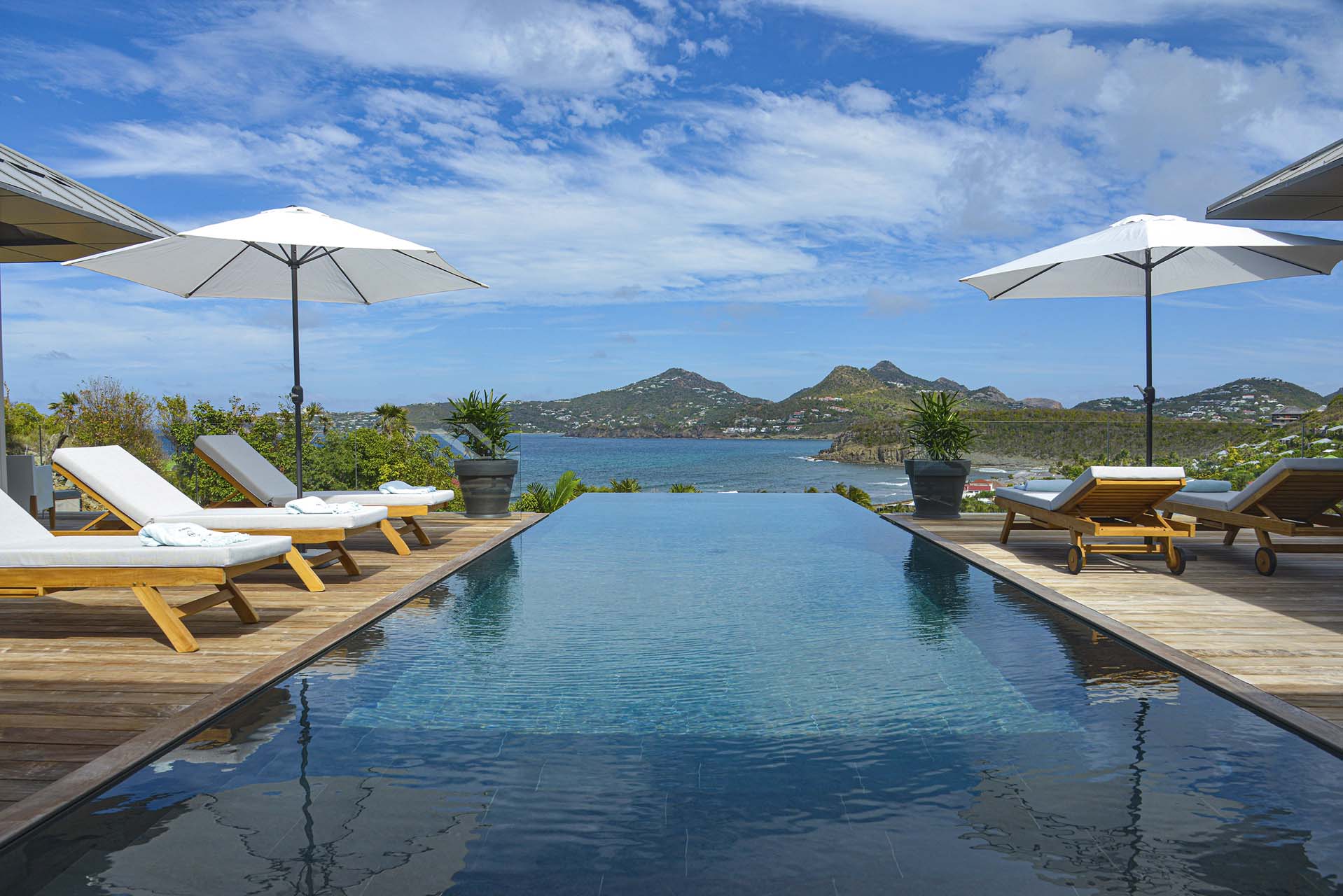 Villa Marcel (villa code: WV MRL), is a 6-bedroom villa located in Anse des Cayes with breathtaking ocean views and just a short walk to the beach. Built on two levels, the living room, kitchen, and dining room are on the main level. The dining room can accommodate up to eight guests. A second living room as well as a second kitchen are also located on this level. Three of the bedrooms are also located on the main level and have their own bathroom and access to the terrace. The other three are on the lower level, and two are connected and share a bathroom, making them perfect for a family. The infinity pool with steps is surrounded by loungers and is the perfect place to relax and enjoy the ocean and mountains views. The garden features a table with four chairs and an umbrella. During the Thanksgiving and December holidays, the villa rents at full occupancy rates regardless of how many bedrooms are used.Please fill out the form to begin your inquiry and we will connect you with a seasoned villa rental specialist.