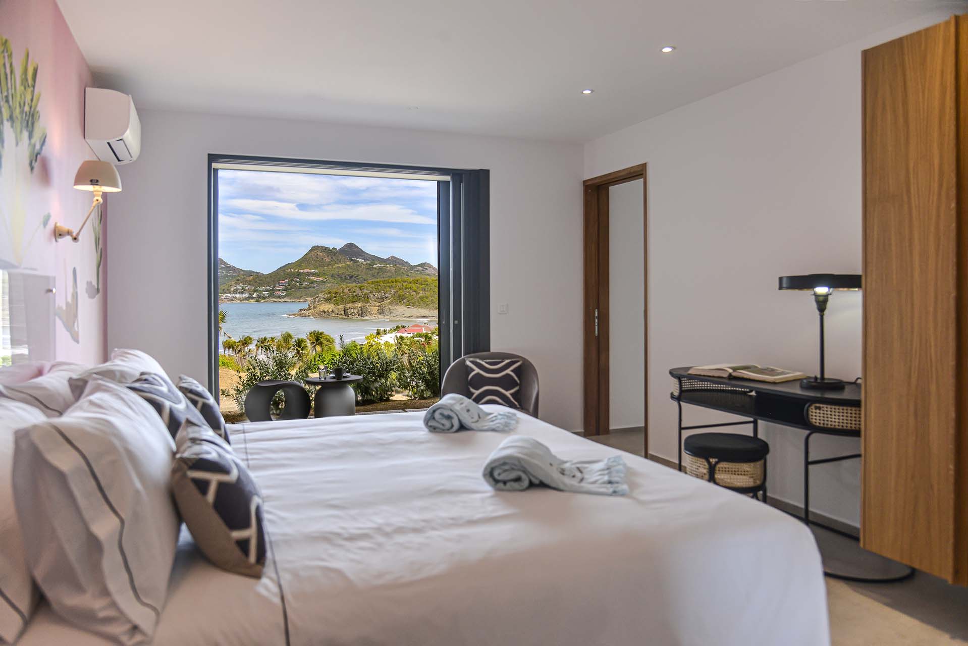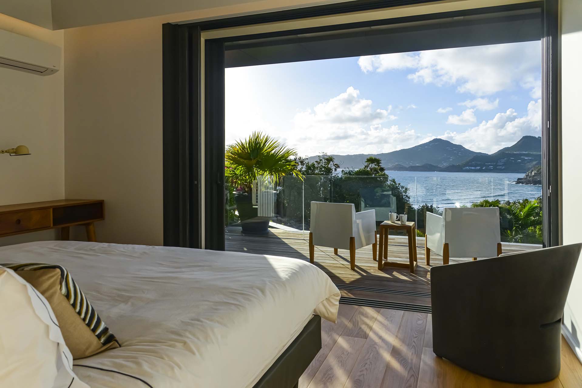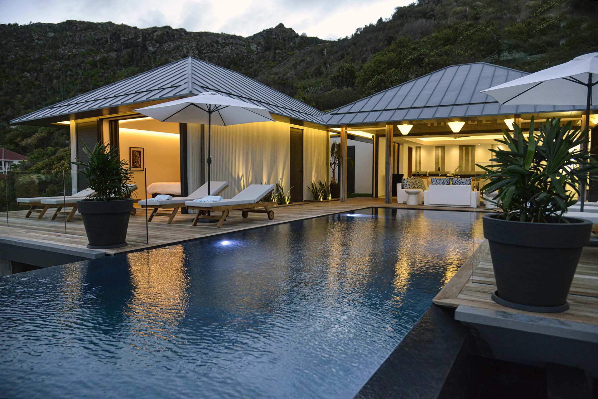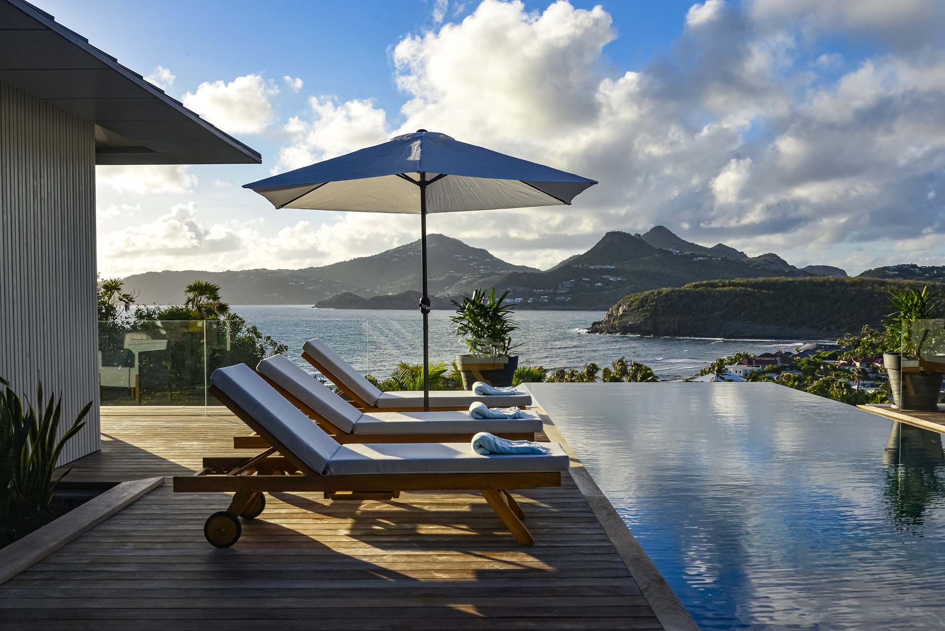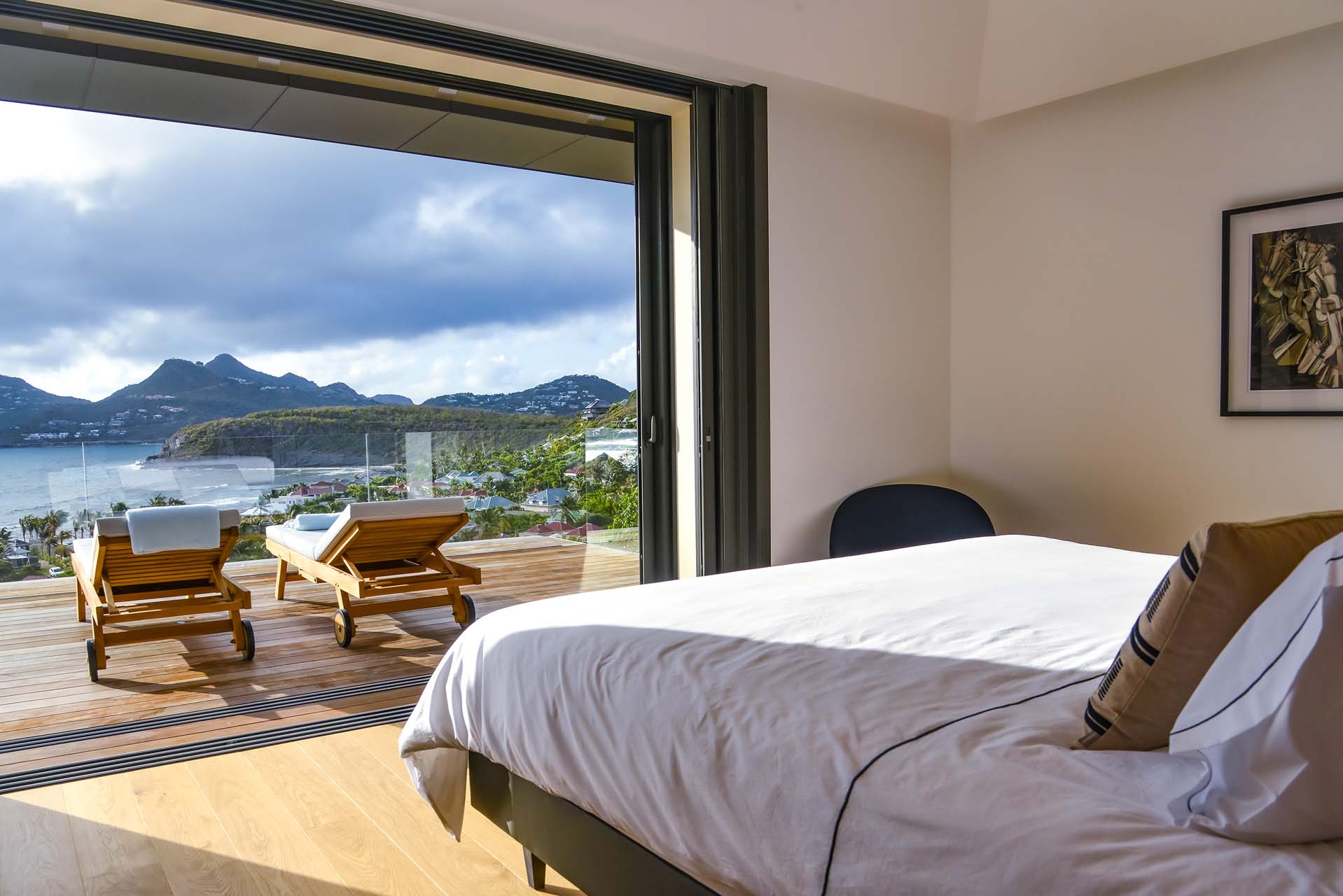 Villa Marcel (villa code: WV MRL), is a 6-bedroom villa located in Anse des Cayes with breathtaking ocean views and just a short walk to the beach. Built on two levels, the living room, kitchen, and dining room are on the main level. The dining room can accommodate up to eight guests. A second living room as well as a second kitchen are also located on this level. Three of the bedrooms are also located on the main level and have their own bathroom and access to the terrace. The other three are on the lower level, and two are connected and share a bathroom, making them perfect for a family. The infinity pool with steps is surrounded by loungers and is the perfect place to relax and enjoy the ocean and mountains views. The garden features a table with four chairs and an umbrella. During the Thanksgiving and December holidays, the villa rents at full occupancy rates regardless of how many bedrooms are used.Please fill out the form to begin your inquiry and we will connect you with a seasoned villa rental specialist.
