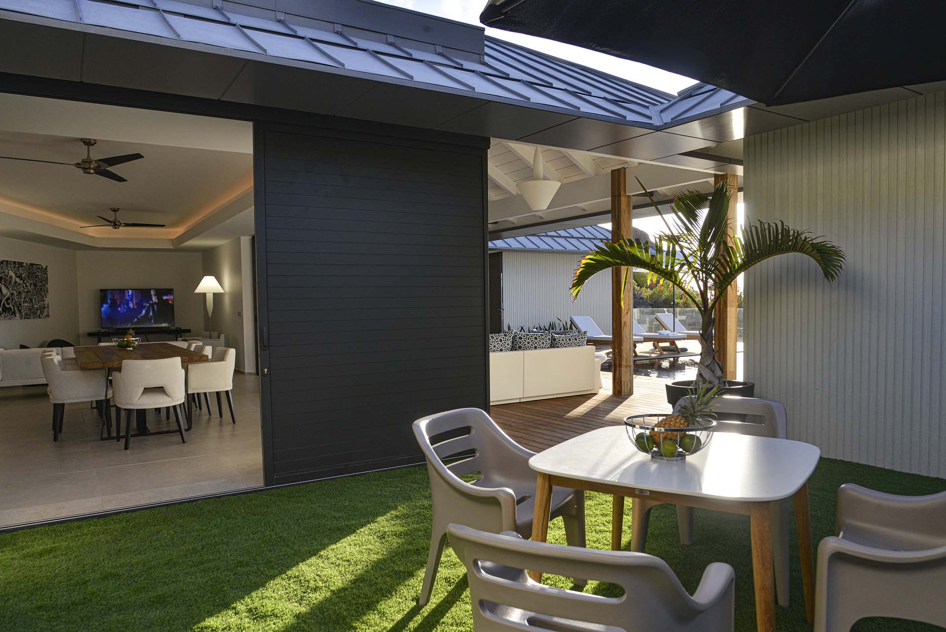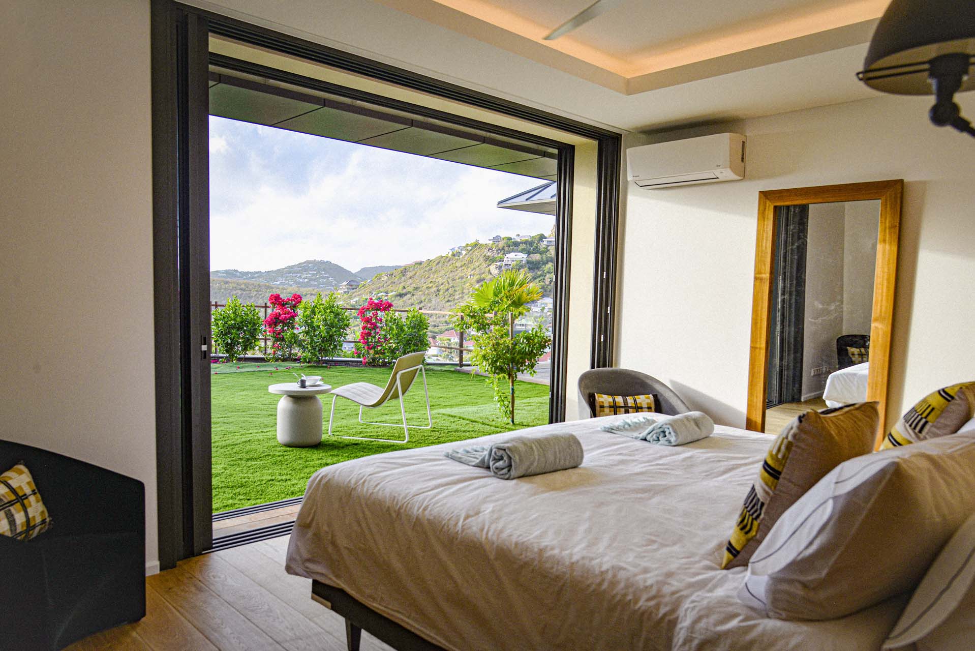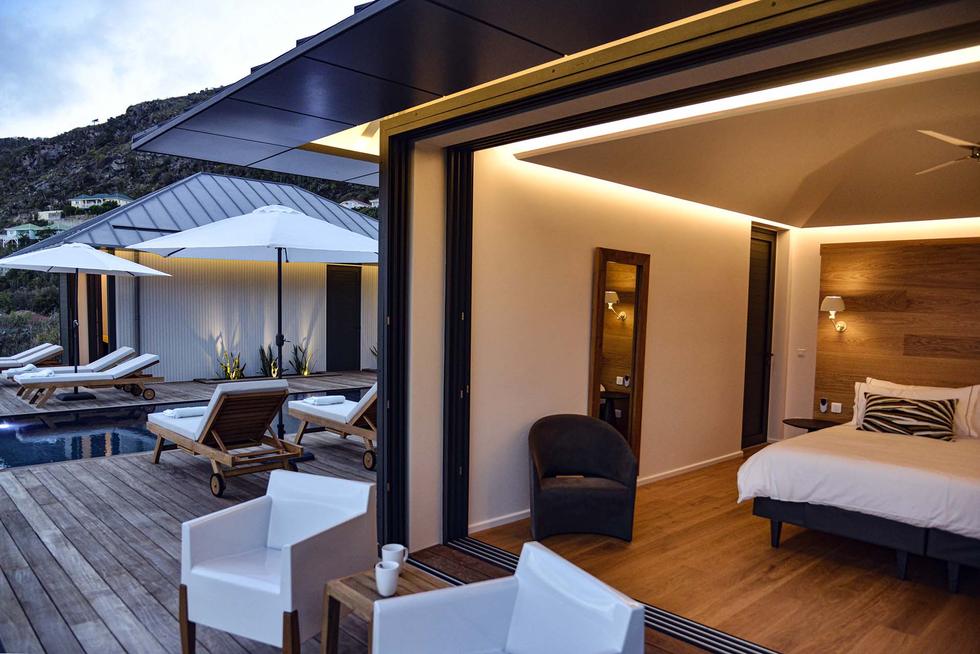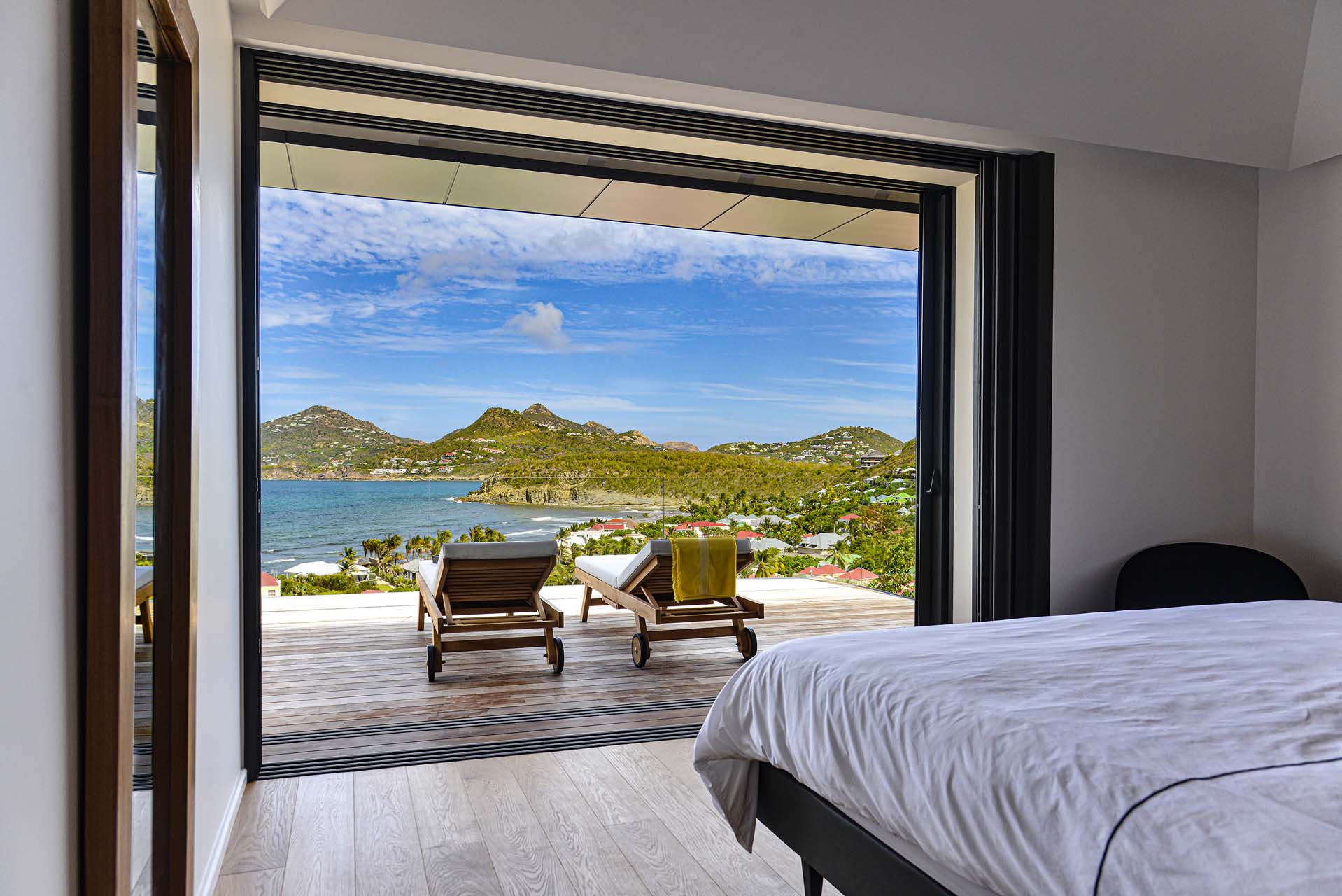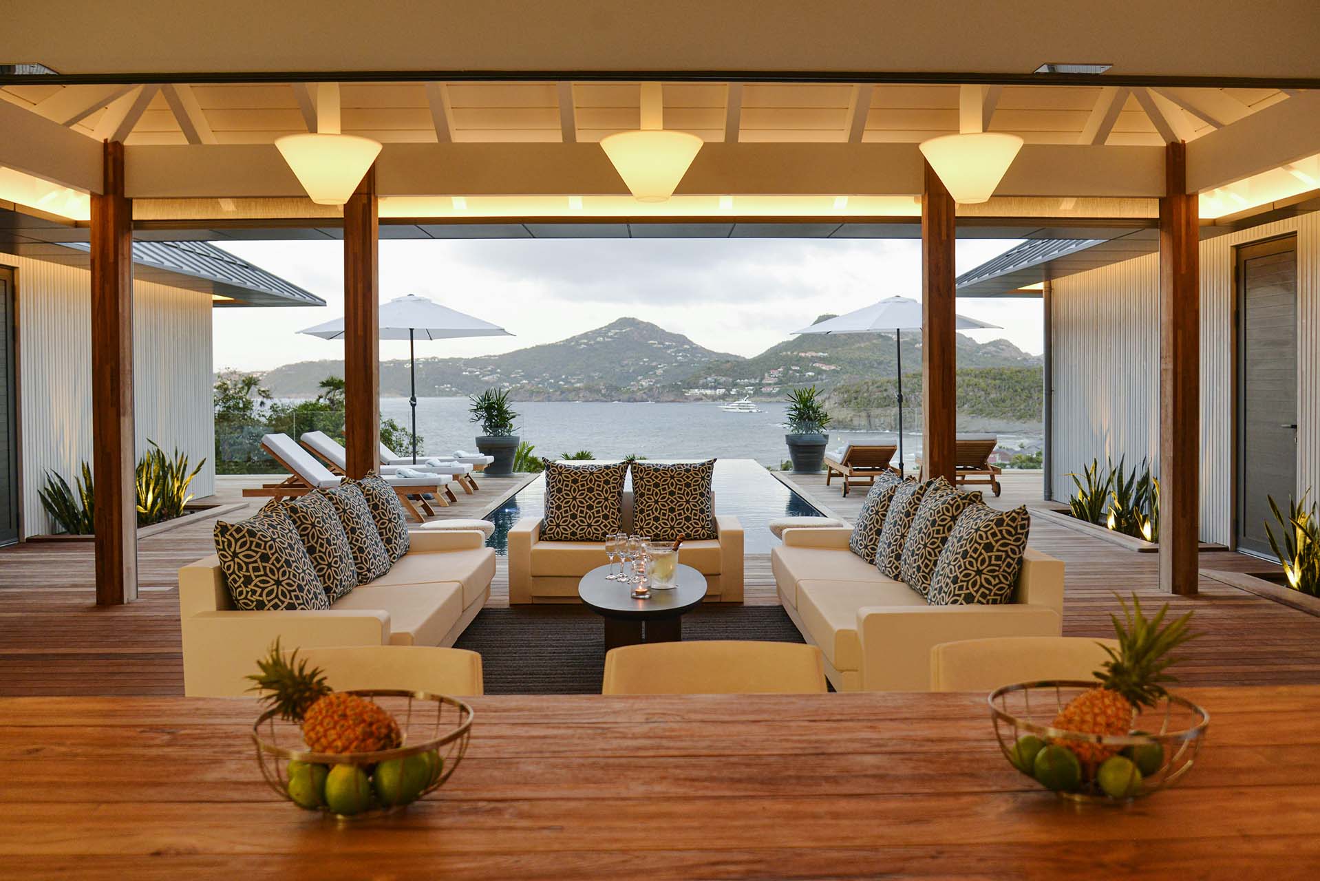 Villa Marcel (villa code: WV MRL), is a 6-bedroom villa located in Anse des Cayes with breathtaking ocean views and just a short walk to the beach. Built on two levels, the living room, kitchen, and dining room are on the main level. The dining room can accommodate up to eight guests. A second living room as well as a second kitchen are also located on this level. Three of the bedrooms are also located on the main level and have their own bathroom and access to the terrace. The other three are on the lower level, and two are connected and share a bathroom, making them perfect for a family. The infinity pool with steps is surrounded by loungers and is the perfect place to relax and enjoy the ocean and mountains views. The garden features a table with four chairs and an umbrella. During the Thanksgiving and December holidays, the villa rents at full occupancy rates regardless of how many bedrooms are used.Please fill out the form to begin your inquiry and we will connect you with a seasoned villa rental specialist.