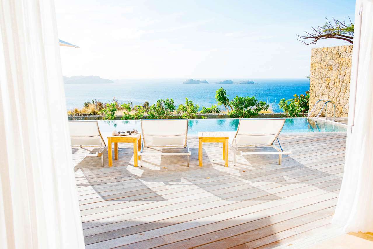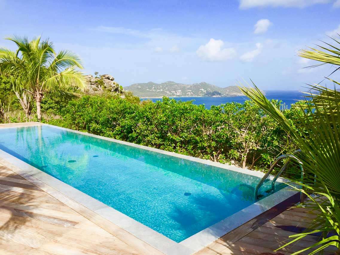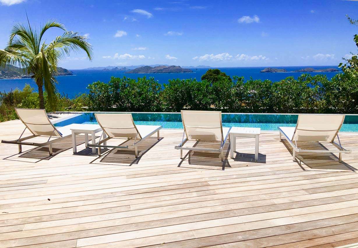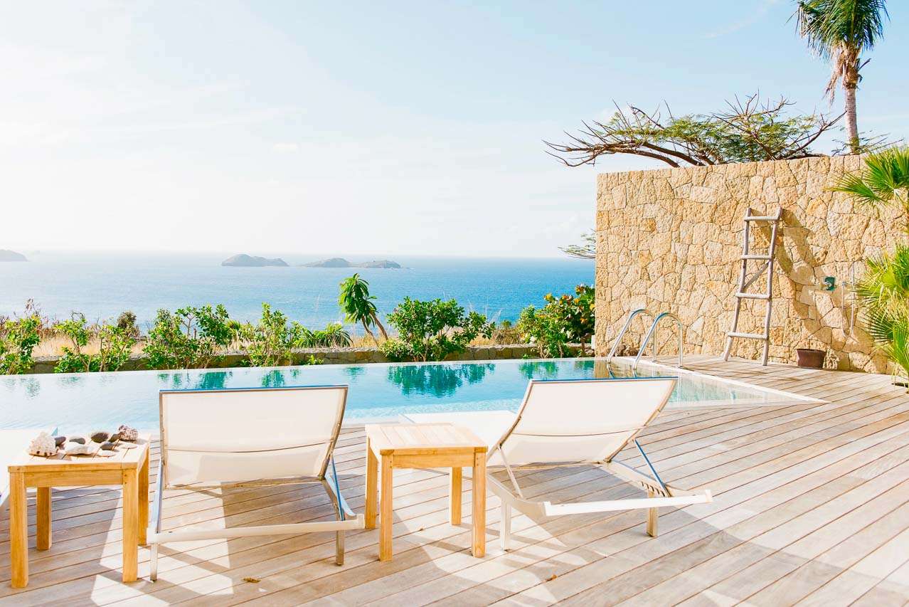 Welcome to Villa Marie (villa code: WV MRI), a stunning 2-bedroom villa nestled in the lush green zone of Camaruche, St. Barts, with breathtaking ocean views. From its hillside perch, Villa Marie is all about embracing the good life on St. Barts. The graceful interiors feature beautiful art on the walls, warm wood tones, and boho-chic furnishings. The property embraces its surroundings, using the natural beauty of St. Barts as inspiration for its harmonious design. From the villa, you’ll see the islands of St Martin and Anguilla in the distance, and you’ll have a direct view of the sunset. Located at the end of a quiet road, Villa Marie feels like a private retreat. You’ll hear nothing but the rustle of palms and the waves washing against the shore of Lorient Beach far below. The beach is just a short drive away, and the shops and restaurants in St Jean are less than 10 minutes away. Inside, the living, dining, and cooking areas seamlessly blend together in an elegant open-plan design. Large windows also blur the line between indoors and out, bathing the entire property in natural light and cooling sea breezes. The living room is a comfortable spot to unwind, opening on both sides to the wrap-around sun terrace. You can relax in the comfortable lounge, enjoy a film on TV, or gaze out at the fabulous ocean views. Connected to the living room is Marie Villa’s cozy, well-equipped kitchen. You’ll have everything you need to create gourmet meals to share with family and friends. Our concierge can even organize grocery pre-stocking or delivery, catered meals, or arrange private chef service for a special occasion. A wooden table in the kitchen is ideal for an early breakfast before heading outside to explore. The elegant dining table is more suited to formal dinners, with seating for up to 6 guests next to the living room. There are 2 bedrooms at Villa Marie, each offering every comfort and the utmost privacy. Both come with a luxurious king-sized bed and splendid views over the ocean. The first bedroom is behind the kitchen, with a spacious bathroom and a private dressing area. The master bedroom is in front of the pool on the lower level. This room has a TV, a dressing area, an ensuite bathroom, and a shower that opens to the outside. The master bedroom also has a small kitchenette, which can serve as an auxiliary kitchen for the pool area. A spacious sundeck wraps around both sides of the living area, with plenty of spots to enjoy the Caribbean sun. In the back is a tropical garden, filled with colorful orchids and a comfortable seating area. Nestled between the trees, it’s a quiet and peaceful setting to enjoy a cool drink or dive into a good book. On the other side of the sundeck, a lounge area has stunning views over the ocean and islands of Île Frégate, Île Bonhomme, and Saint Martin. The sunset vistas from here are incredible, and best enjoyed with cocktails in hand. Steps lead down to a lower-level deck, where loungers, a sunbed, and a large parasol surround the inviting infinity pool. We wouldn’t blame you for lounging here all day, getting swept away by the fine weather and cool breezes. Lorient Bay Beach is a 5-minute drive away, offering soft sand for sunbathing and tranquil waters for swimming and snorkeling. Five minutes in the other direction is the quiet and secluded Marigot Bay Beach. During the Thanksgiving and December holidays, the villa rents at full occupancy rates regardless of how many bedrooms are used.Please fill out the form to begin your inquiry and we will connect you with a seasoned villa rental specialist.