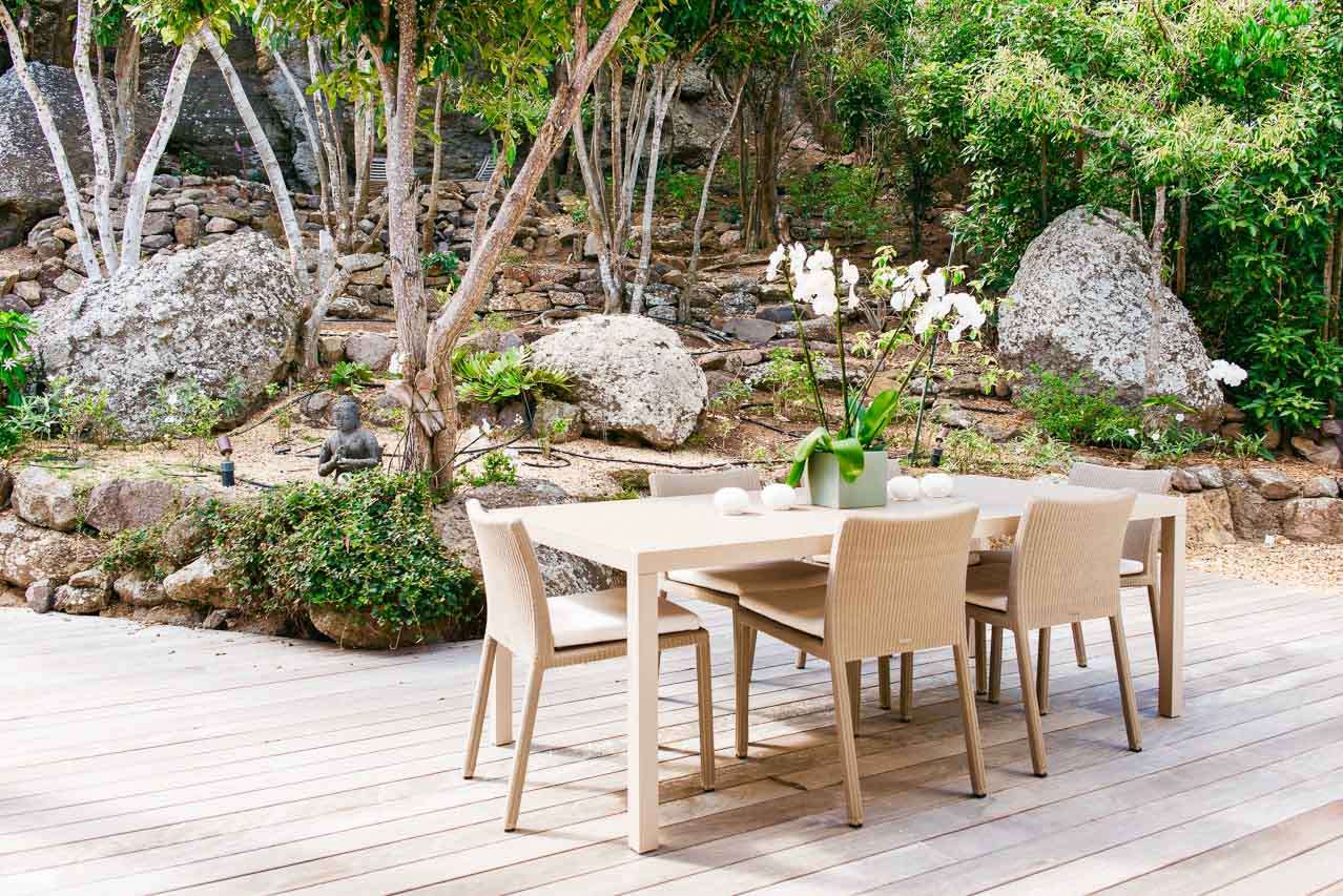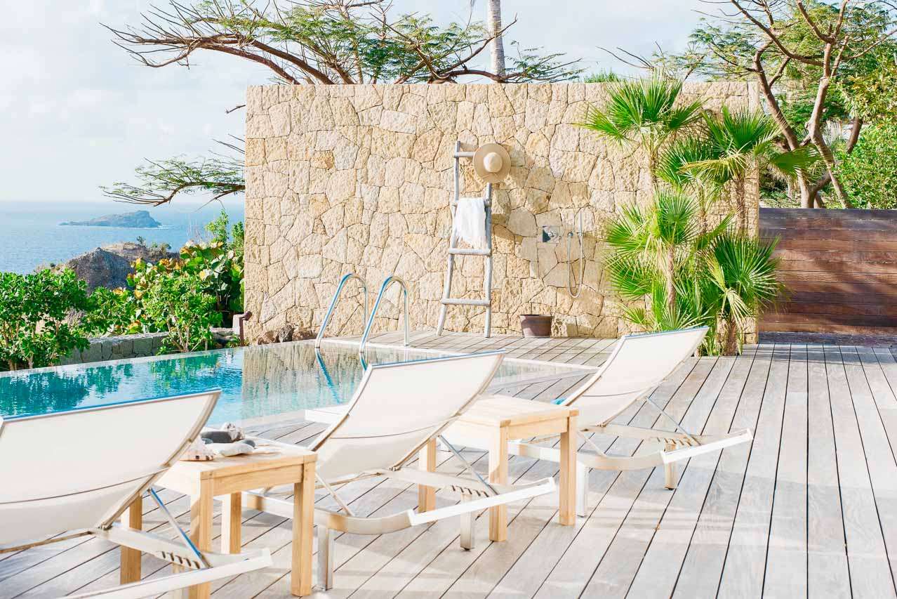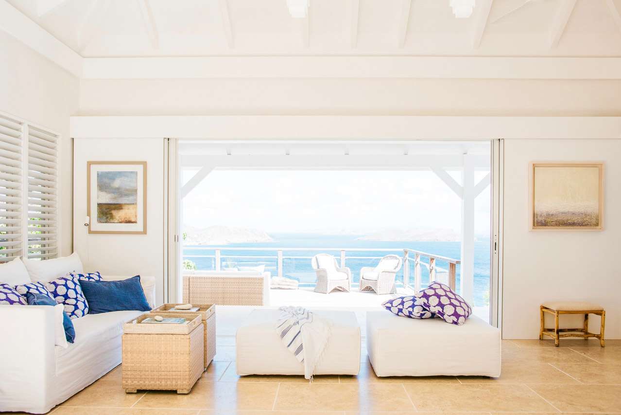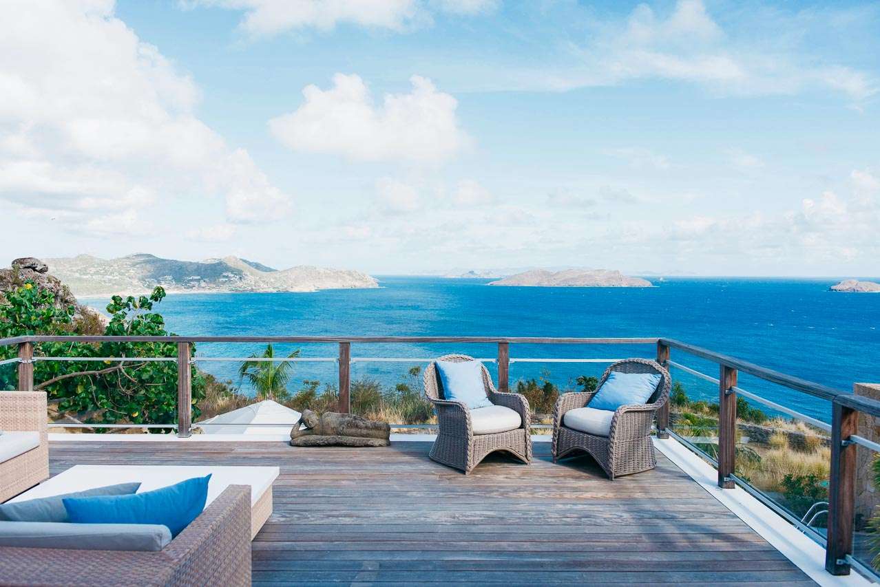 Welcome to Villa Marie (villa code: WV MRI), a stunning 2-bedroom villa nestled in the lush green zone of Camaruche, St. Barts, with breathtaking ocean views. From its hillside perch, Villa Marie is all about embracing the good life on St. Barts. The graceful interiors feature beautiful art on the walls, warm wood tones, and boho-chic furnishings. The property embraces its surroundings, using the natural beauty of St. Barts as inspiration for its harmonious design. From the villa, you’ll see the islands of St Martin and Anguilla in the distance, and you’ll have a direct view of the sunset. Located at the end of a quiet road, Villa Marie feels like a private retreat. You’ll hear nothing but the rustle of palms and the waves washing against the shore of Lorient Beach far below. The beach is just a short drive away, and the shops and restaurants in St Jean are less than 10 minutes away. Inside, the living, dining, and cooking areas seamlessly blend together in an elegant open-plan design. Large windows also blur the line between indoors and out, bathing the entire property in natural light and cooling sea breezes. The living room is a comfortable spot to unwind, opening on both sides to the wrap-around sun terrace. You can relax in the comfortable lounge, enjoy a film on TV, or gaze out at the fabulous ocean views. Connected to the living room is Marie Villa’s cozy, well-equipped kitchen. You’ll have everything you need to create gourmet meals to share with family and friends. Our concierge can even organize grocery pre-stocking or delivery, catered meals, or arrange private chef service for a special occasion. A wooden table in the kitchen is ideal for an early breakfast before heading outside to explore. The elegant dining table is more suited to formal dinners, with seating for up to 6 guests next to the living room. There are 2 bedrooms at Villa Marie, each offering every comfort and the utmost privacy. Both come with a luxurious king-sized bed and splendid views over the ocean. The first bedroom is behind the kitchen, with a spacious bathroom and a private dressing area. The master bedroom is in front of the pool on the lower level. This room has a TV, a dressing area, an ensuite bathroom, and a shower that opens to the outside. The master bedroom also has a small kitchenette, which can serve as an auxiliary kitchen for the pool area. A spacious sundeck wraps around both sides of the living area, with plenty of spots to enjoy the Caribbean sun. In the back is a tropical garden, filled with colorful orchids and a comfortable seating area. Nestled between the trees, it’s a quiet and peaceful setting to enjoy a cool drink or dive into a good book. On the other side of the sundeck, a lounge area has stunning views over the ocean and islands of Île Frégate, Île Bonhomme, and Saint Martin. The sunset vistas from here are incredible, and best enjoyed with cocktails in hand. Steps lead down to a lower-level deck, where loungers, a sunbed, and a large parasol surround the inviting infinity pool. We wouldn’t blame you for lounging here all day, getting swept away by the fine weather and cool breezes. Lorient Bay Beach is a 5-minute drive away, offering soft sand for sunbathing and tranquil waters for swimming and snorkeling. Five minutes in the other direction is the quiet and secluded Marigot Bay Beach. During the Thanksgiving and December holidays, the villa rents at full occupancy rates regardless of how many bedrooms are used.Please fill out the form to begin your inquiry and we will connect you with a seasoned villa rental specialist.