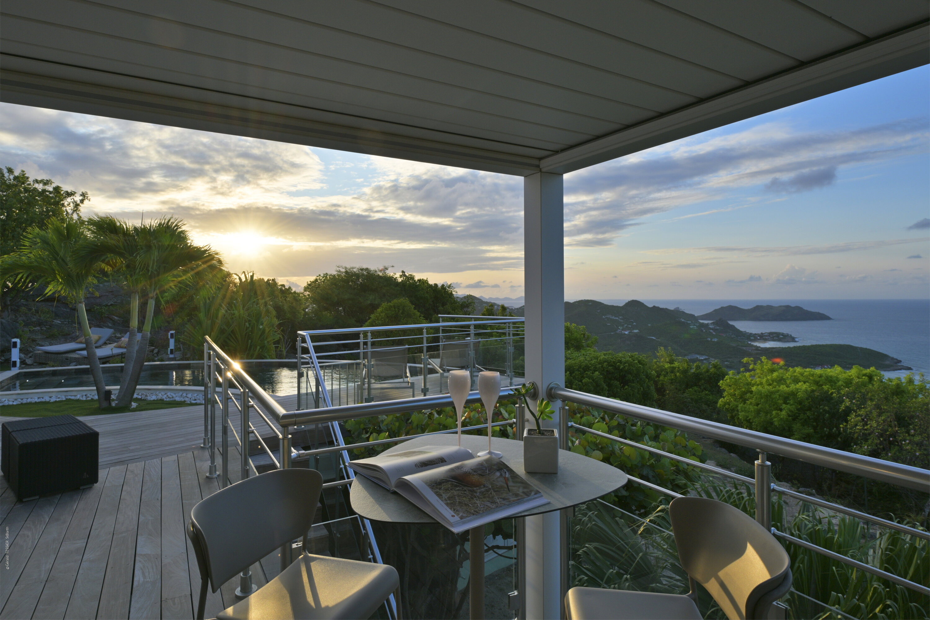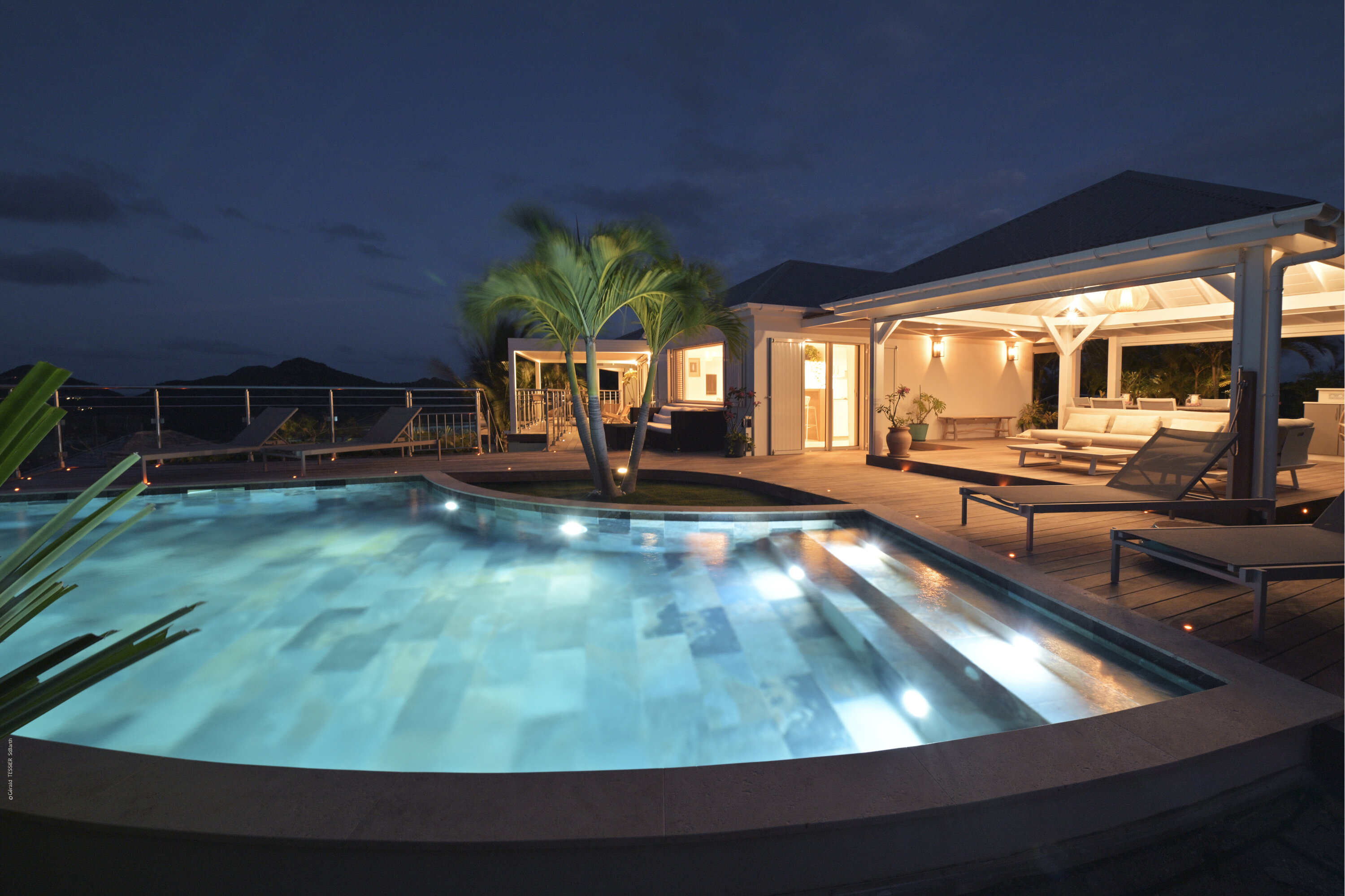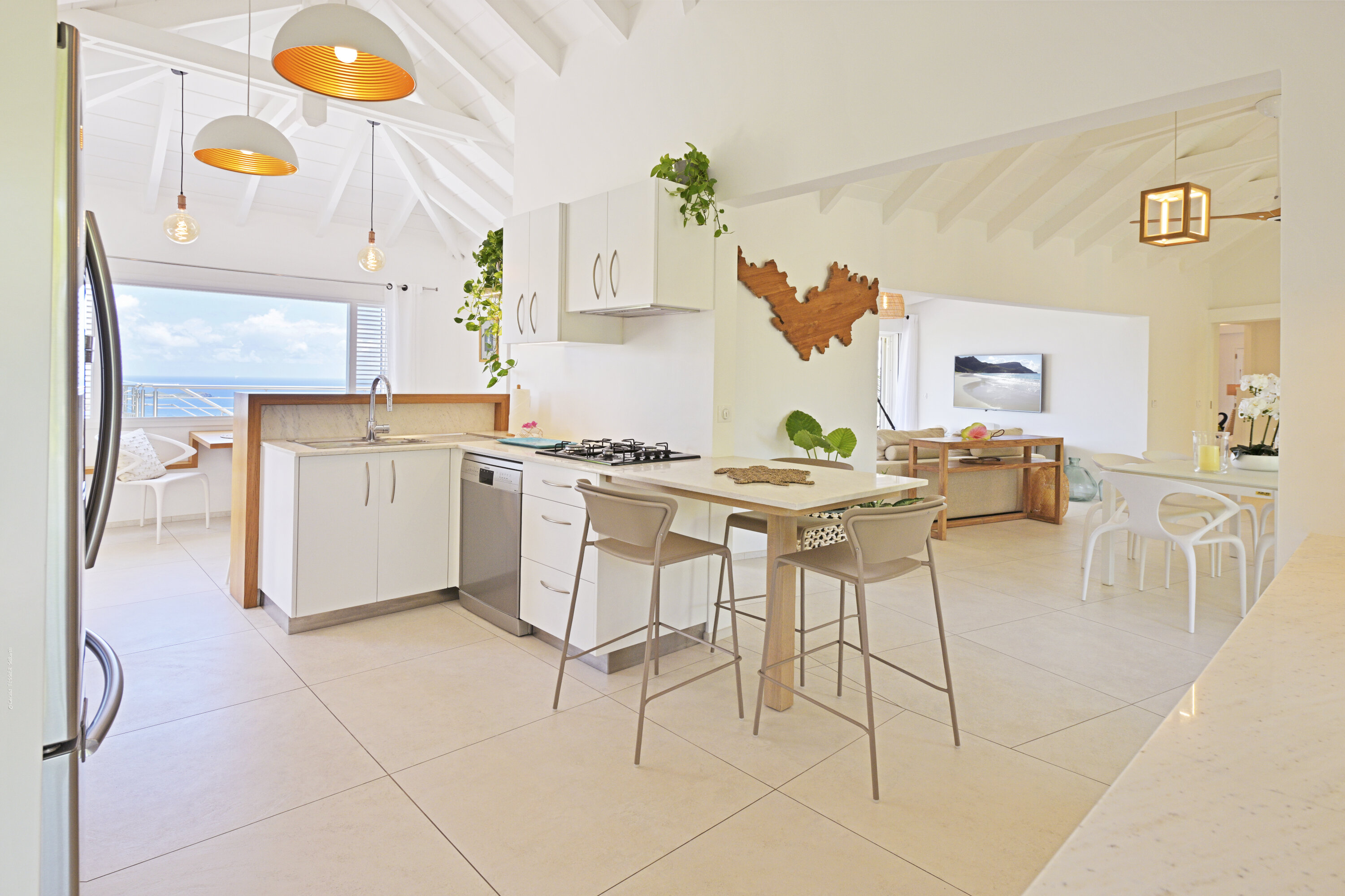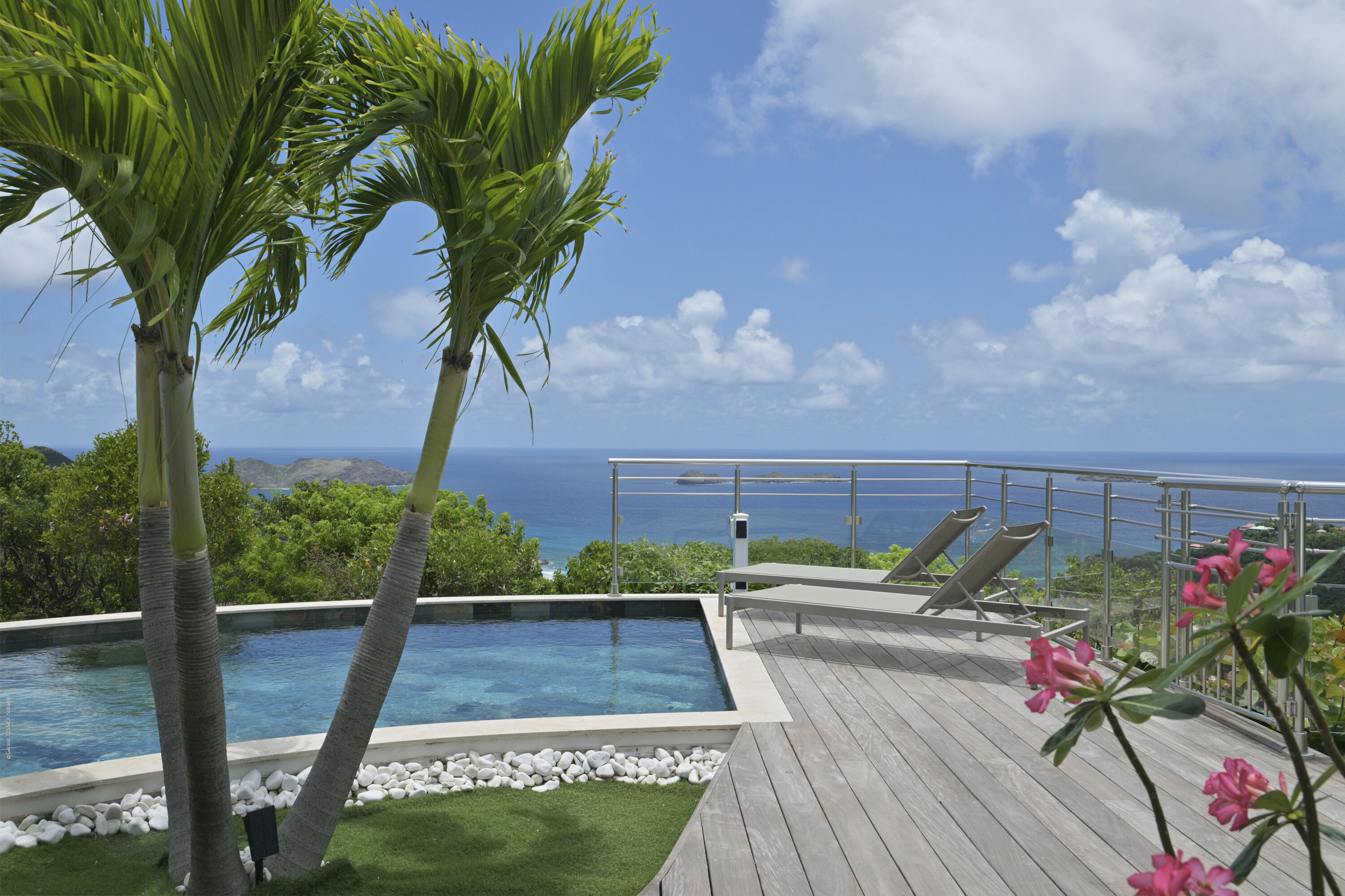 Villa Marris, (villa code: WV MRS) is a new, 3-bedroom villa at the top of Lurin above St. Jean, with stunning panoramic views. Hidden at the end of a long driveway, from the main road that runs through Lurin between St. Jean and Gustavia, Villa Marris is a tranquil oasis with truly breathtaking views. The contemporary design centers around the views, which can be enjoyed from nearly all corners of the villa. This villa was designed not just to benefit from the views, but also from the refreshing breezes and Caribbean-style, outdoor living. A spacious, sectioned main room offers a large dining table just off the modern kitchen, and a living area with comfortable seating. Off the living room is a small hallway with on one end the first master bedroom with ocean views. It comes with a Euro king bed, ensuite bathroom with shower, and dressing. A second room is situated on the other side of the hallway, which offers garden views and has a bathroom with a shower in the hallway. This room has two twin beds that can be made up as a Euro king and is perfect for children, but can also suit adults. The second master bedroom is on the lower floor and has a large private terrace, ocean views, a Euro king bed, dressing and ensuite bathroom with shower. There is ample outdoor space, with a covered terrace extending from the living room, which connects to the half-moon-shaped pool on the far end. A large gazebo offers seating and outdoor dining, and there is extra seating just behind. Villa Marris is a perfect family vacation home, but will also suit two couples vacationing together. During the December holidays, the villa rents at the full occupancy rate regardless of how many bedrooms are used.Please fill out the form to begin your inquiry and we will connect you with a seasoned villa rental specialist.