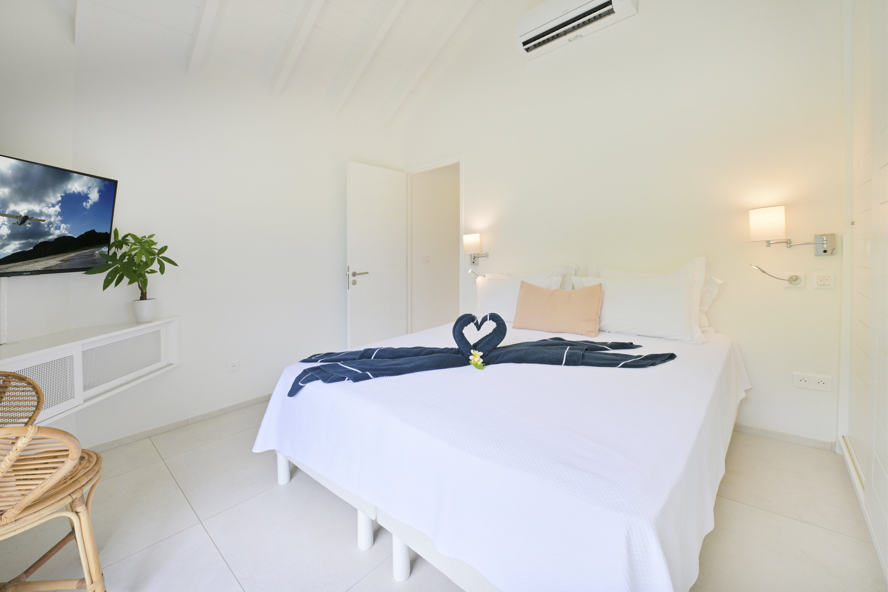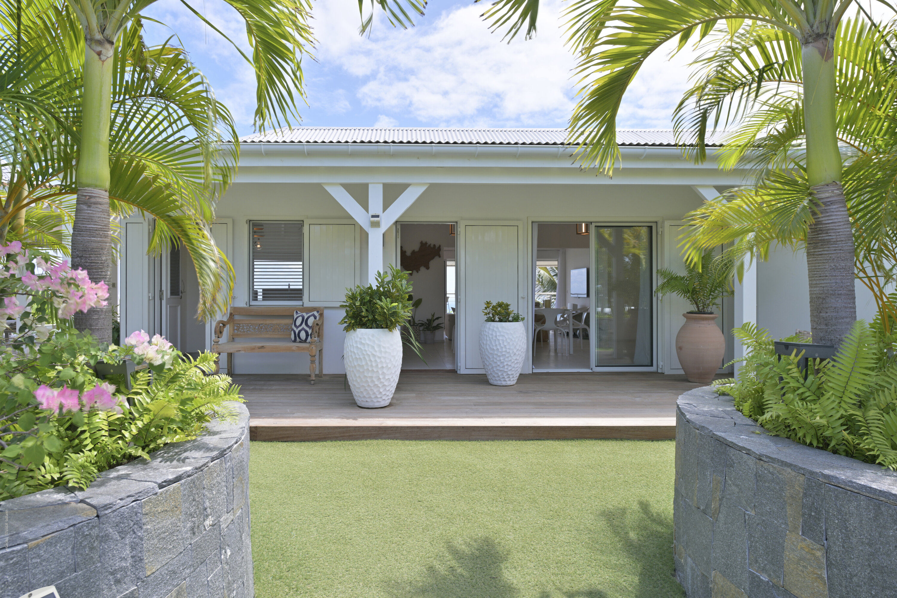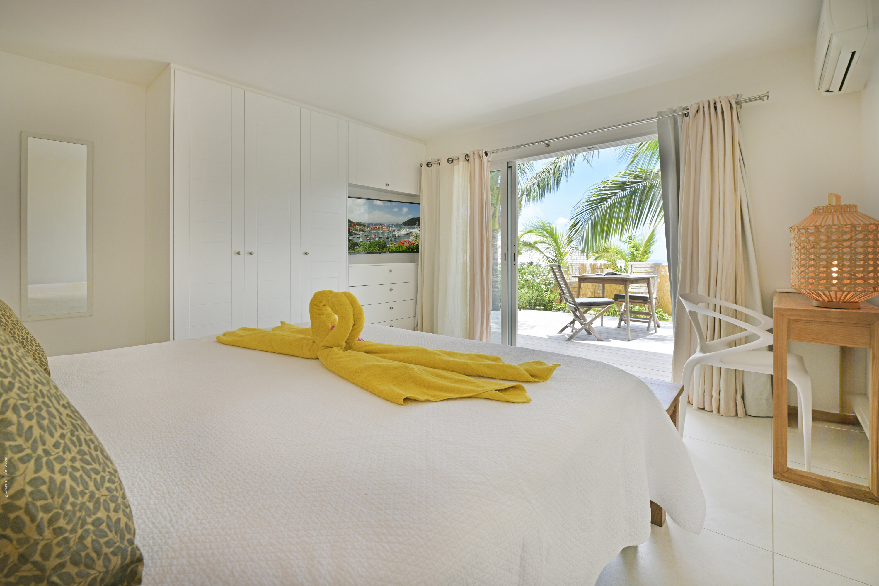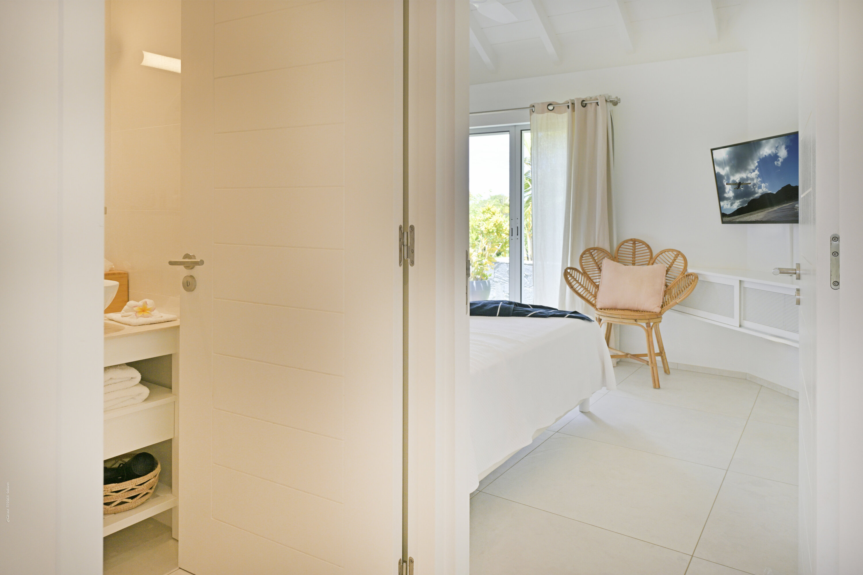 Villa Marris, (villa code: WV MRS) is a new, 3-bedroom villa at the top of Lurin above St. Jean, with stunning panoramic views. Hidden at the end of a long driveway, from the main road that runs through Lurin between St. Jean and Gustavia, Villa Marris is a tranquil oasis with truly breathtaking views. The contemporary design centers around the views, which can be enjoyed from nearly all corners of the villa. This villa was designed not just to benefit from the views, but also from the refreshing breezes and Caribbean-style, outdoor living. A spacious, sectioned main room offers a large dining table just off the modern kitchen, and a living area with comfortable seating. Off the living room is a small hallway with on one end the first master bedroom with ocean views. It comes with a Euro king bed, ensuite bathroom with shower, and dressing. A second room is situated on the other side of the hallway, which offers garden views and has a bathroom with a shower in the hallway. This room has two twin beds that can be made up as a Euro king and is perfect for children, but can also suit adults. The second master bedroom is on the lower floor and has a large private terrace, ocean views, a Euro king bed, dressing and ensuite bathroom with shower. There is ample outdoor space, with a covered terrace extending from the living room, which connects to the half-moon-shaped pool on the far end. A large gazebo offers seating and outdoor dining, and there is extra seating just behind. Villa Marris is a perfect family vacation home, but will also suit two couples vacationing together. During the December holidays, the villa rents at the full occupancy rate regardless of how many bedrooms are used.Please fill out the form to begin your inquiry and we will connect you with a seasoned villa rental specialist.