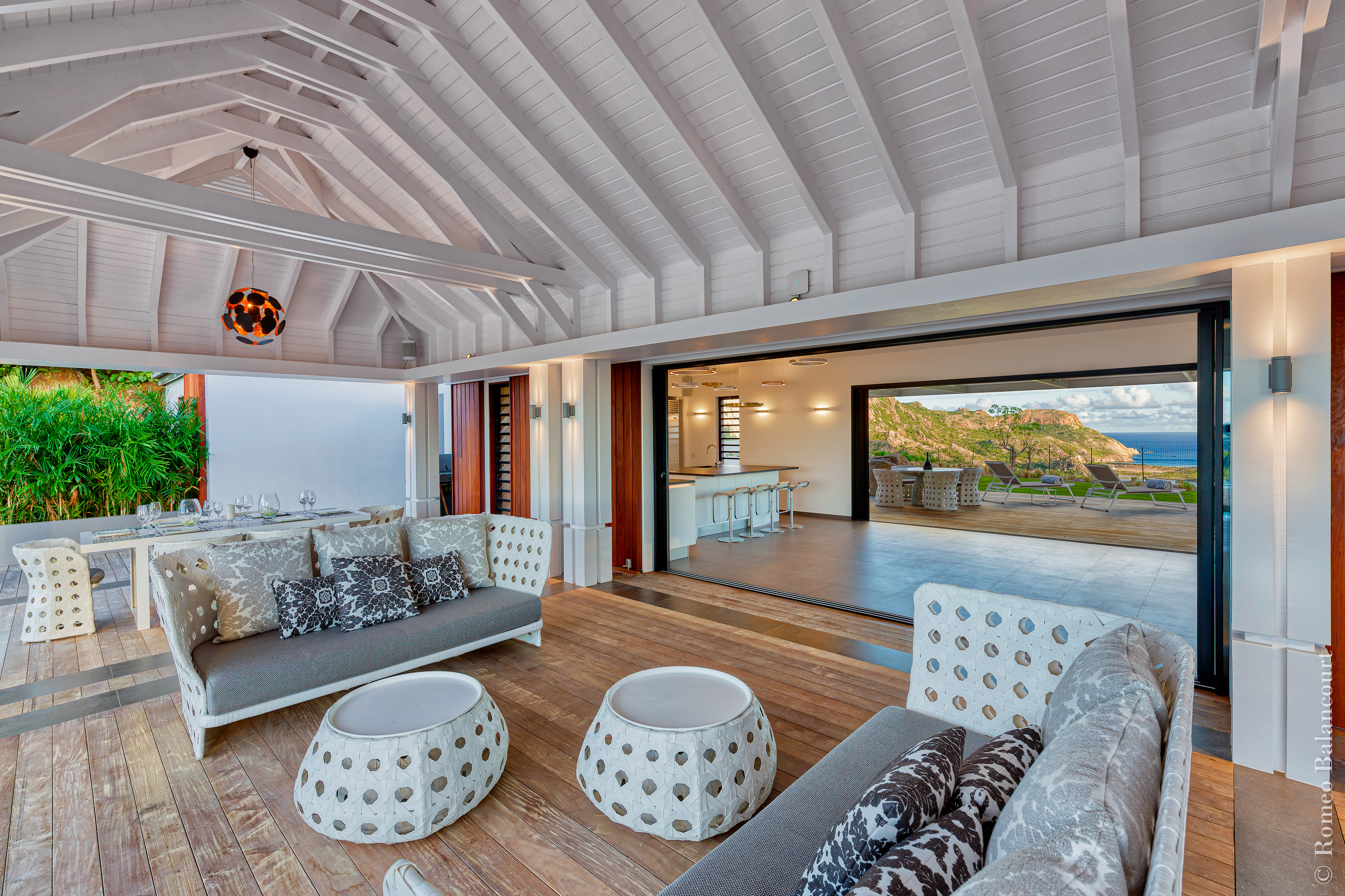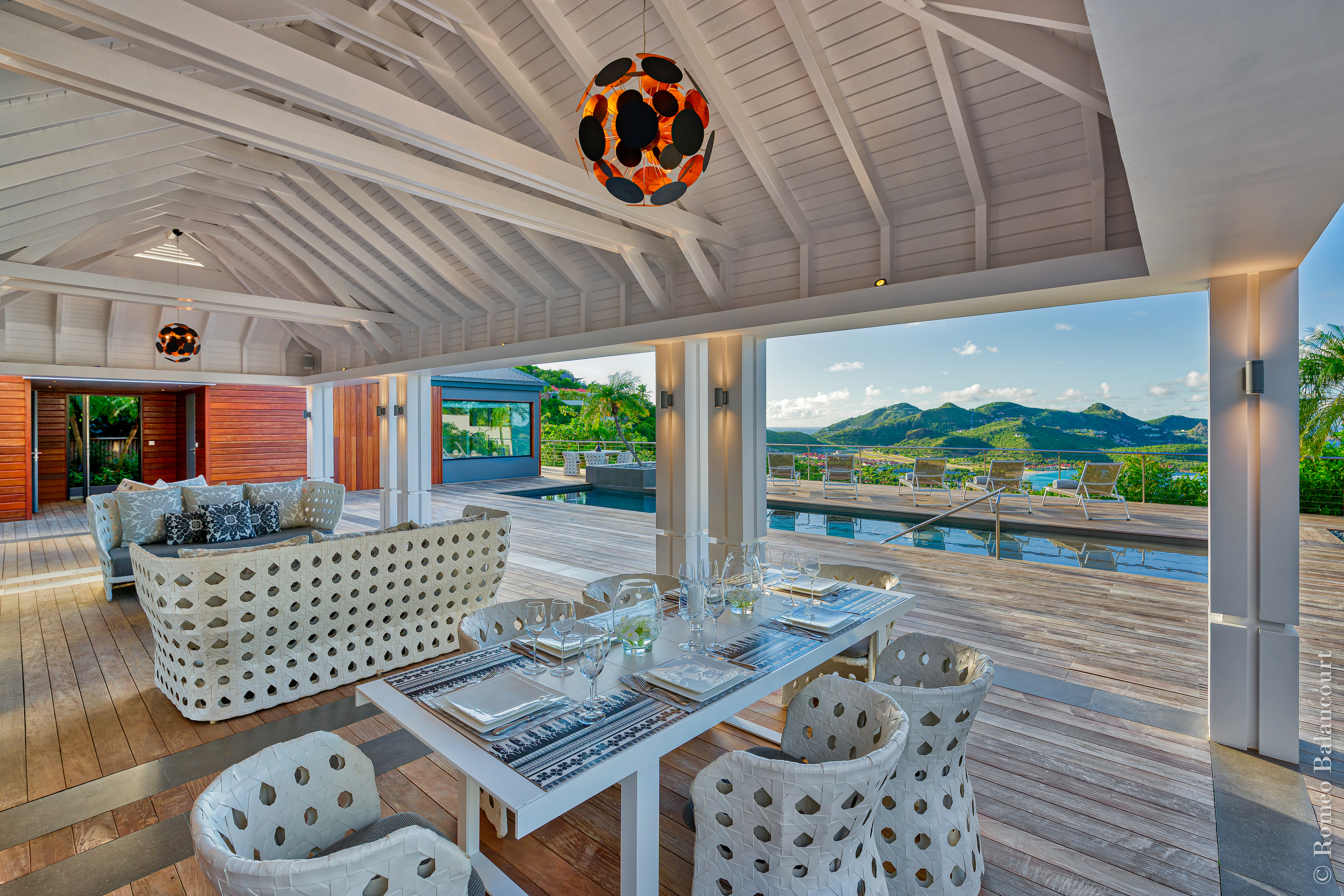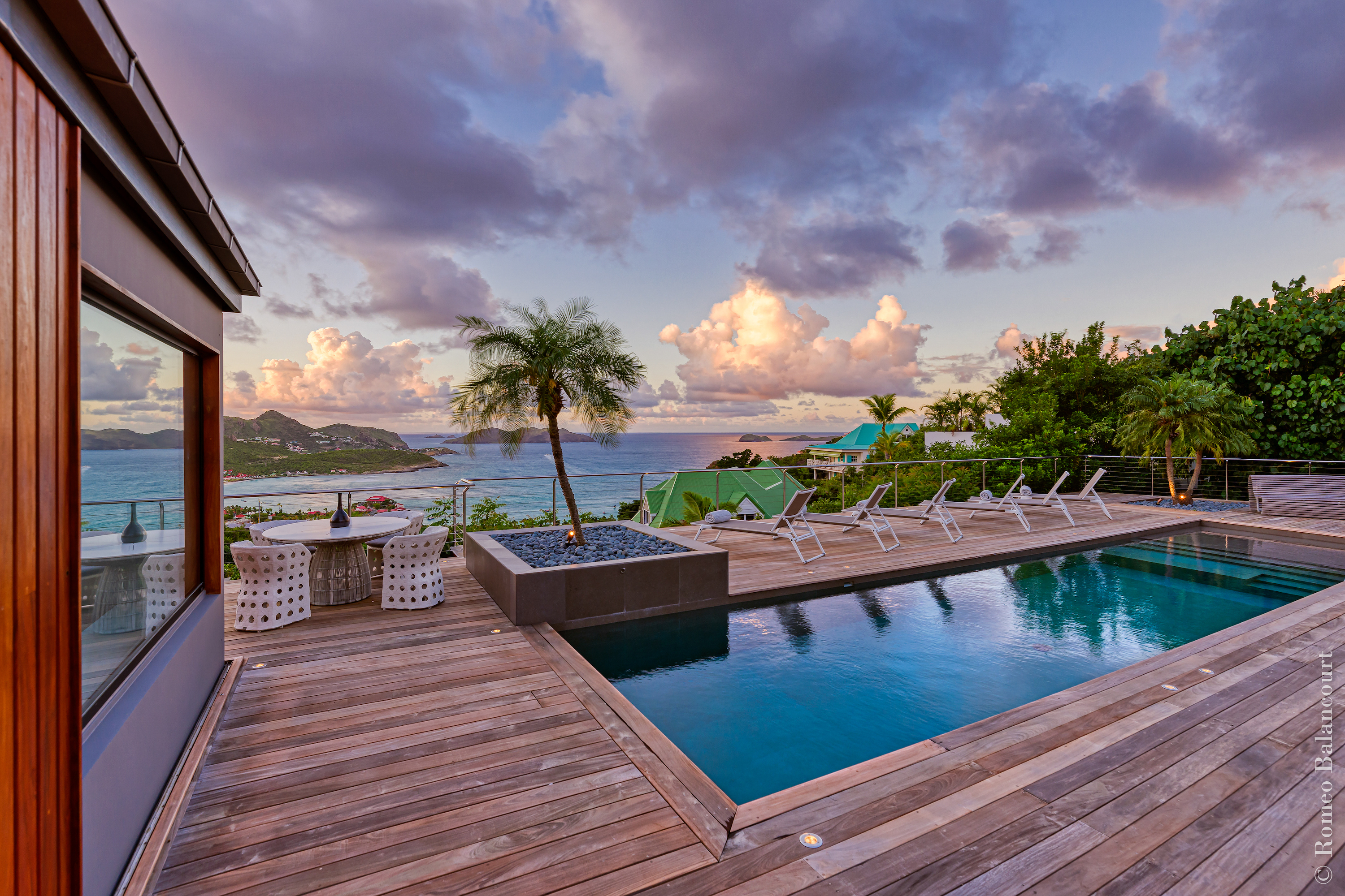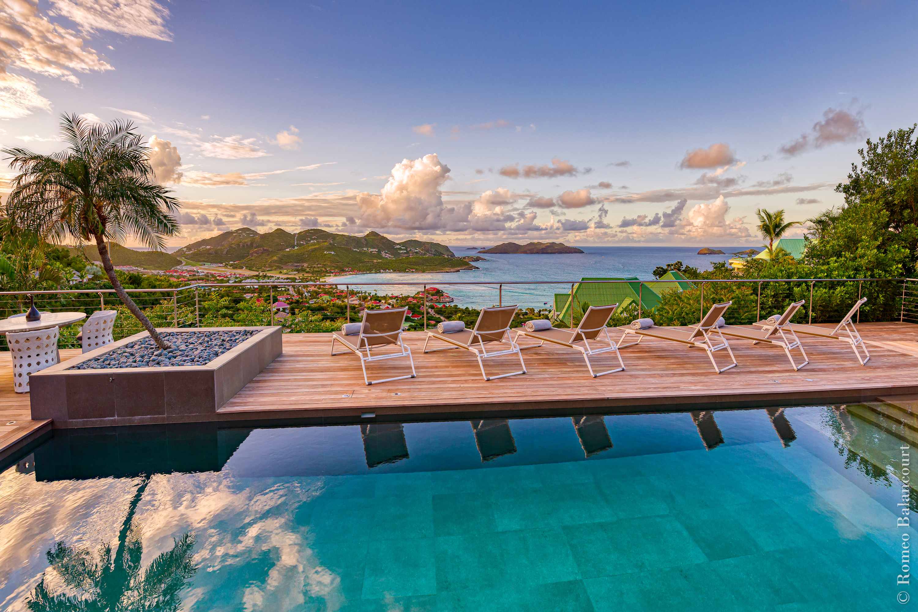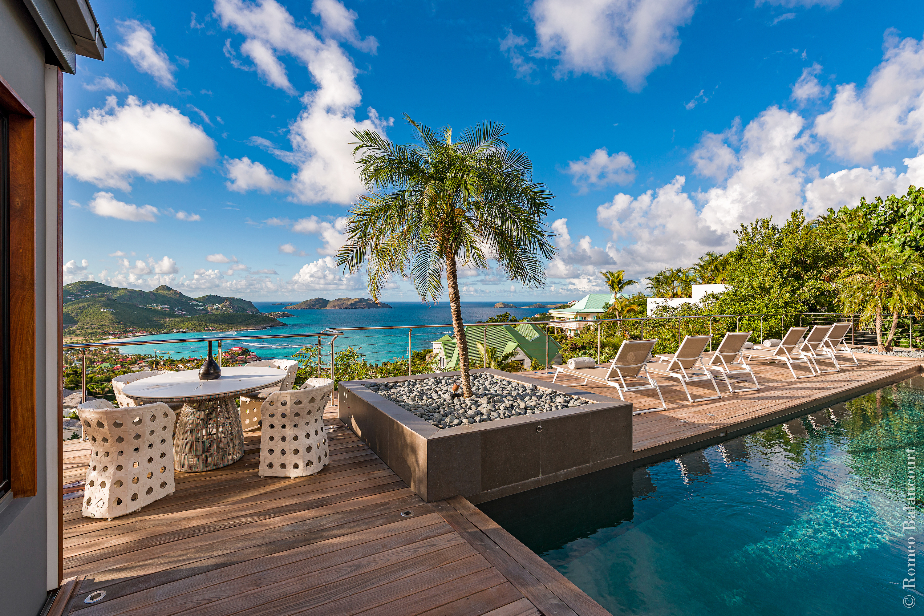 Hillside in St. Jean, Méli Mélo (villa code: WV MMO) is a 3-bedroom luxurious villa boasting stunning views from both the front and the back, and delightful Caribbean breezes. A gorgeous oversized pool is the focal point of a sun-drenched sprawling deck that provides loads of outdoor living space. There's a poolside guest bath and a covered dining terrace. The views of St. Jean from here are sensational! A rear deck and a garden area with a BBQ provides an additional dining venue (seating for 12) and a panorama of Saline. Méli Mélo is ideal for guests who love to entertain. A sleek open kitchen is laden with all the amenities, a wine cooler, an espresso machine, and an ice maker make a cook-in night fun, and the chic, comfortable living room is equipped with a large TV with U.S. satellite, and surround sound. The three bedrooms, all with ensuite bathrooms are serene retreats, each has a water view and they are well situated for privacy. An air-conditioned fitness room with a view and full bath is located on a lower level. During the December holidays, the villa rents at the full occupancy rate regardless of how many bedrooms are used.Please fill out the form to begin your inquiry and we will connect you with a seasoned villa rental specialist.