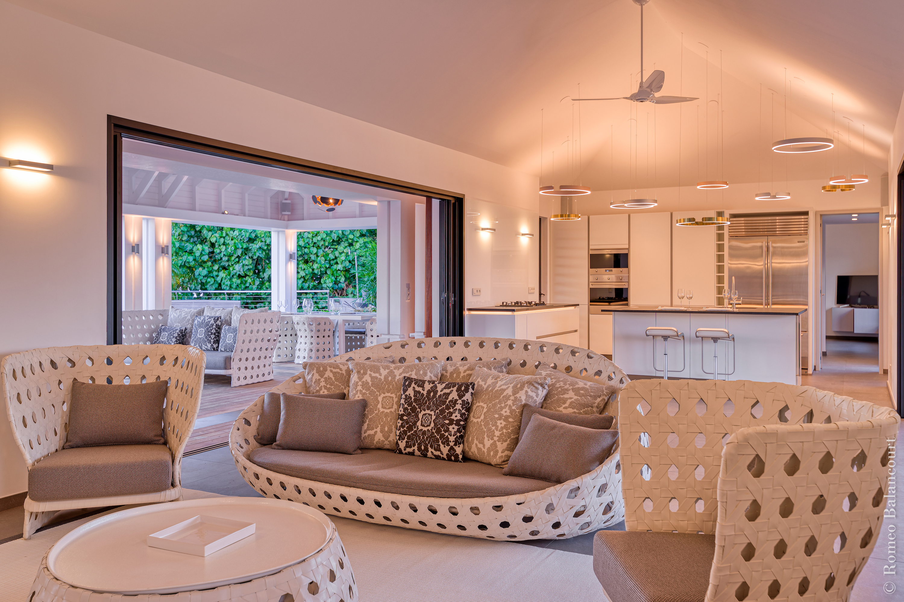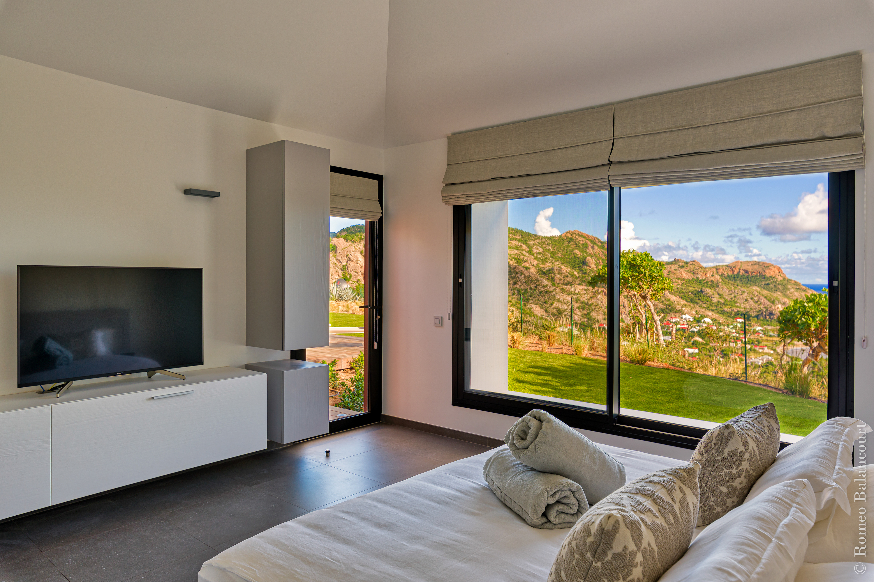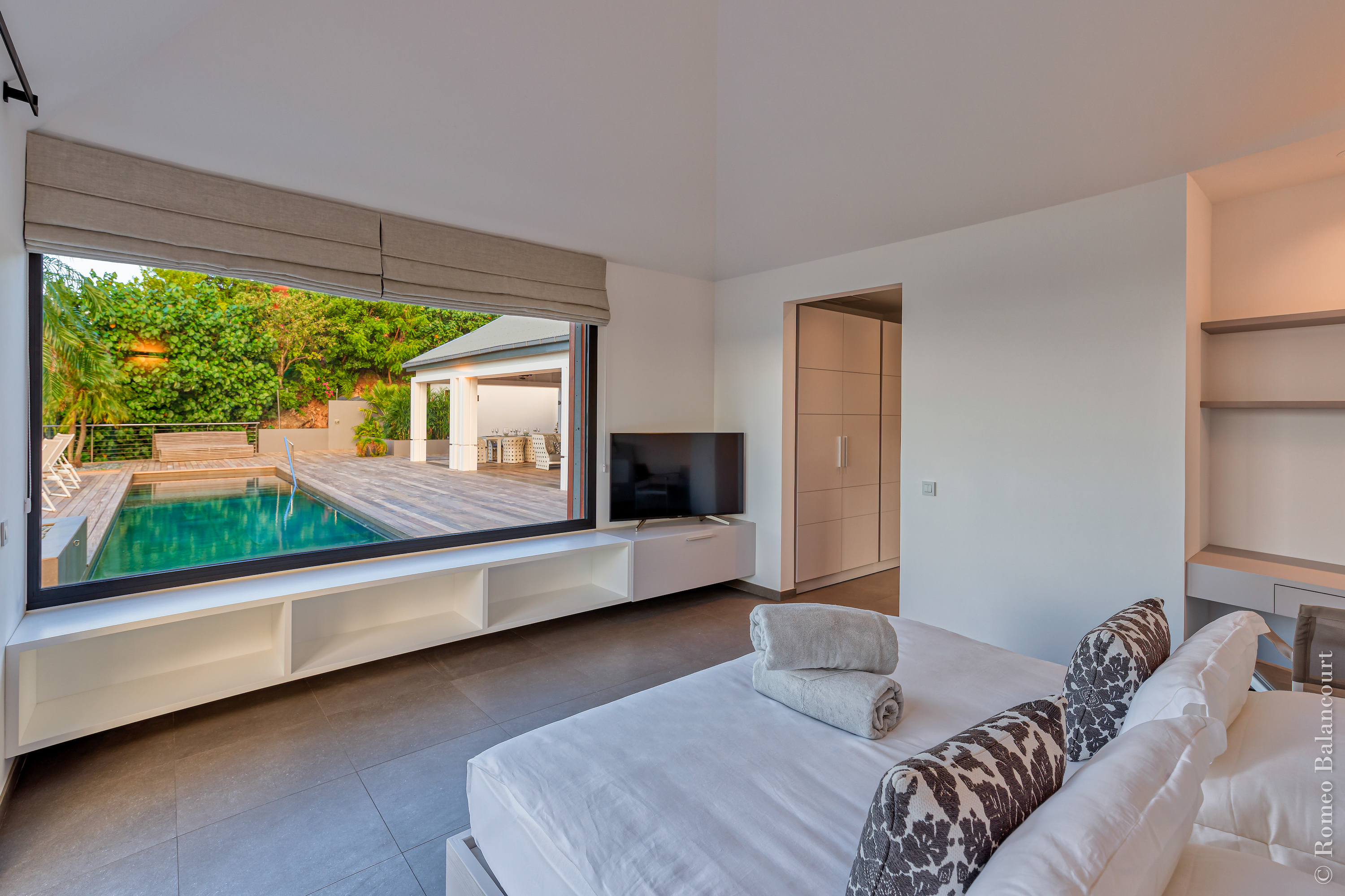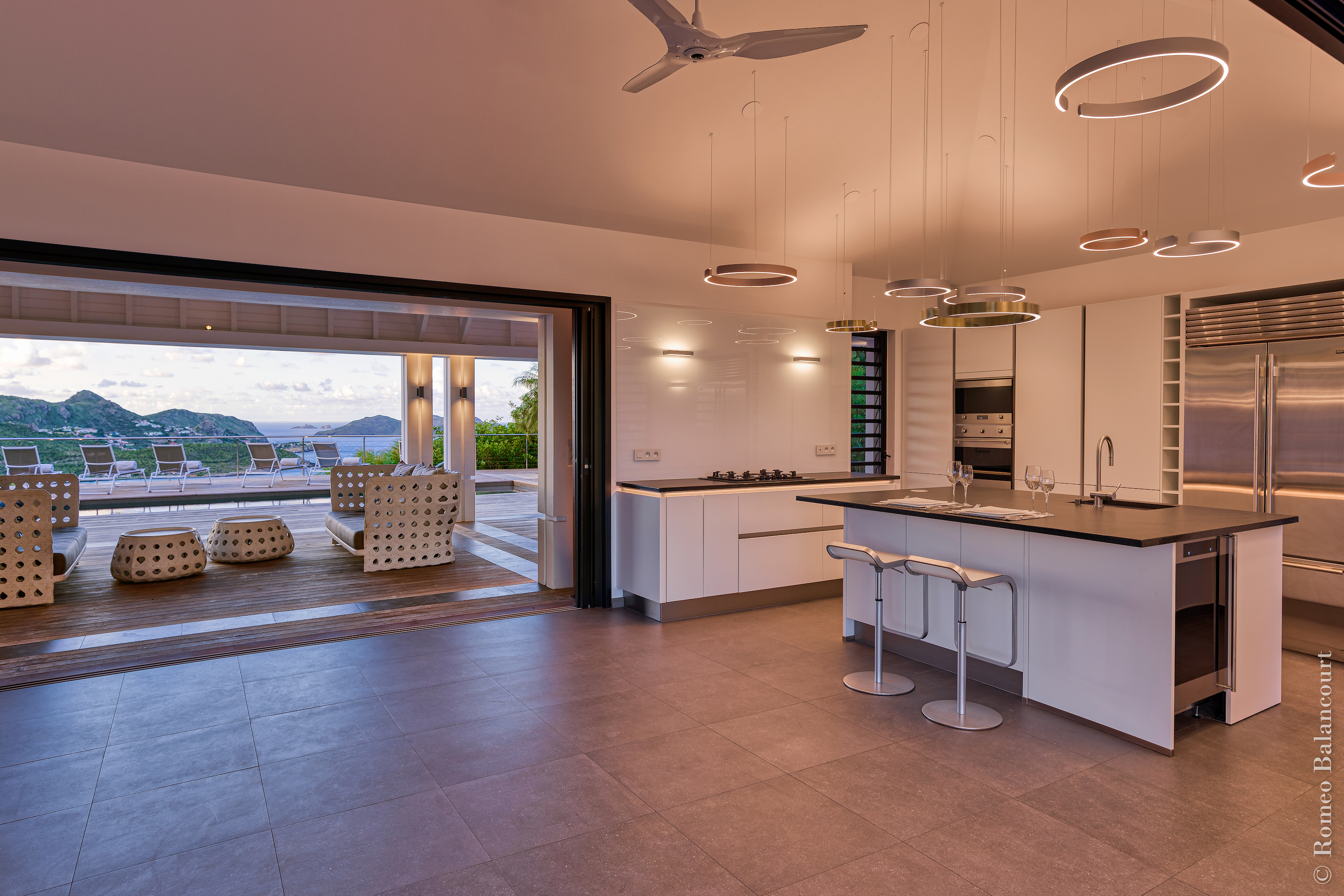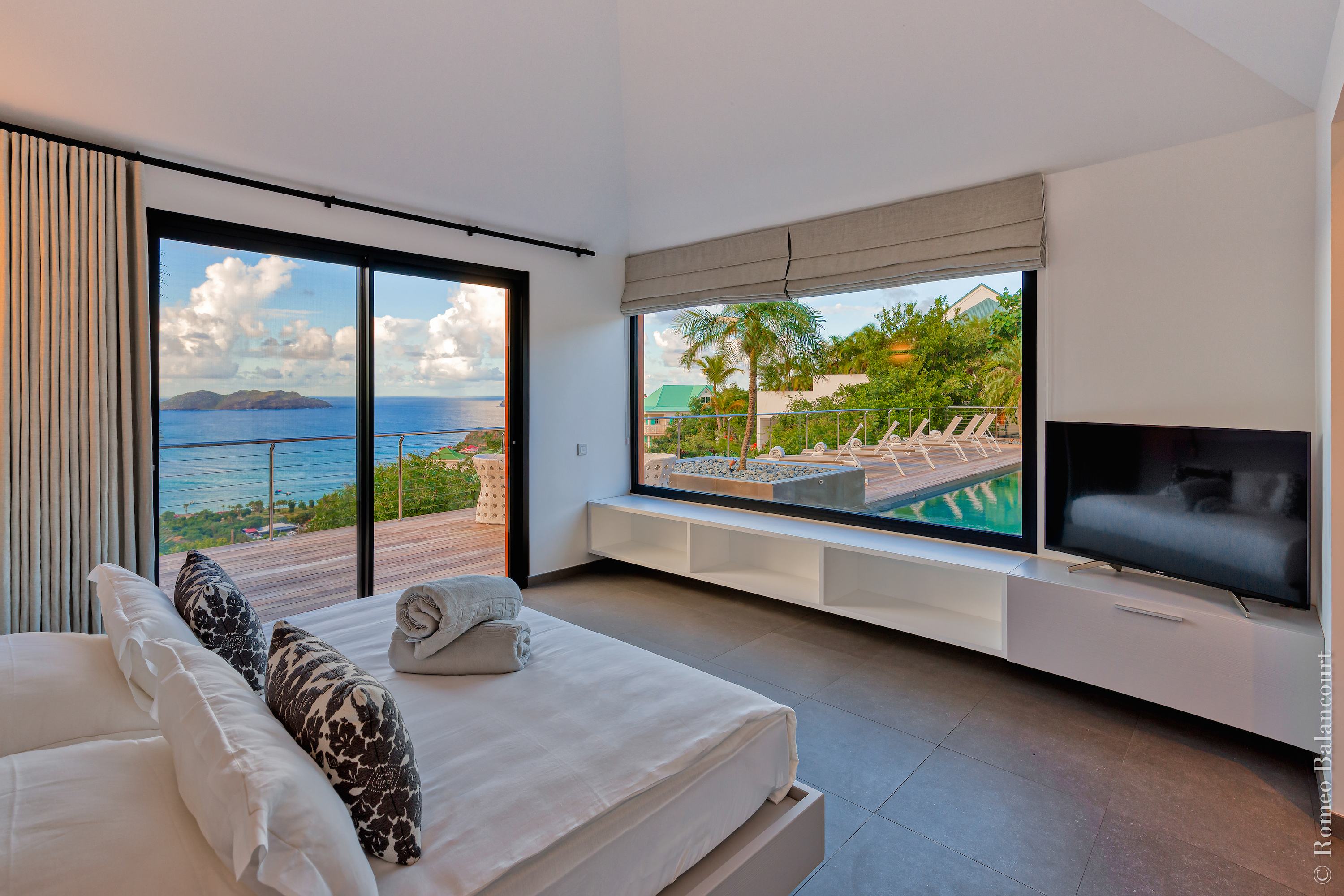 Hillside in St. Jean, Méli Mélo (villa code: WV MMO) is a 3-bedroom luxurious villa boasting stunning views from both the front and the back, and delightful Caribbean breezes. A gorgeous oversized pool is the focal point of a sun-drenched sprawling deck that provides loads of outdoor living space. There's a poolside guest bath and a covered dining terrace. The views of St. Jean from here are sensational! A rear deck and a garden area with a BBQ provides an additional dining venue (seating for 12) and a panorama of Saline. Méli Mélo is ideal for guests who love to entertain. A sleek open kitchen is laden with all the amenities, a wine cooler, an espresso machine, and an ice maker make a cook-in night fun, and the chic, comfortable living room is equipped with a large TV with U.S. satellite, and surround sound. The three bedrooms, all with ensuite bathrooms are serene retreats, each has a water view and they are well situated for privacy. An air-conditioned fitness room with a view and full bath is located on a lower level. During the December holidays, the villa rents at the full occupancy rate regardless of how many bedrooms are used.Please fill out the form to begin your inquiry and we will connect you with a seasoned villa rental specialist.