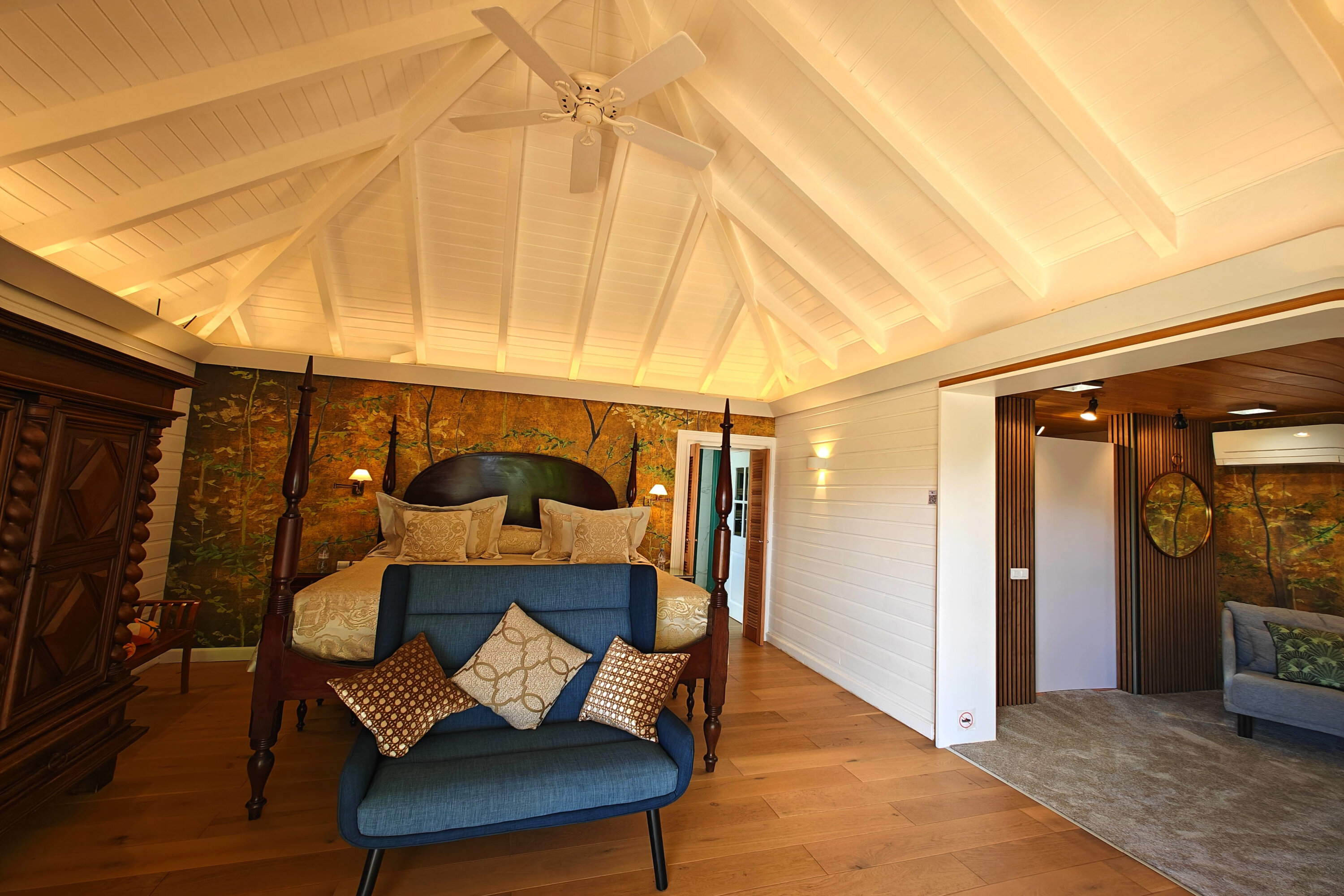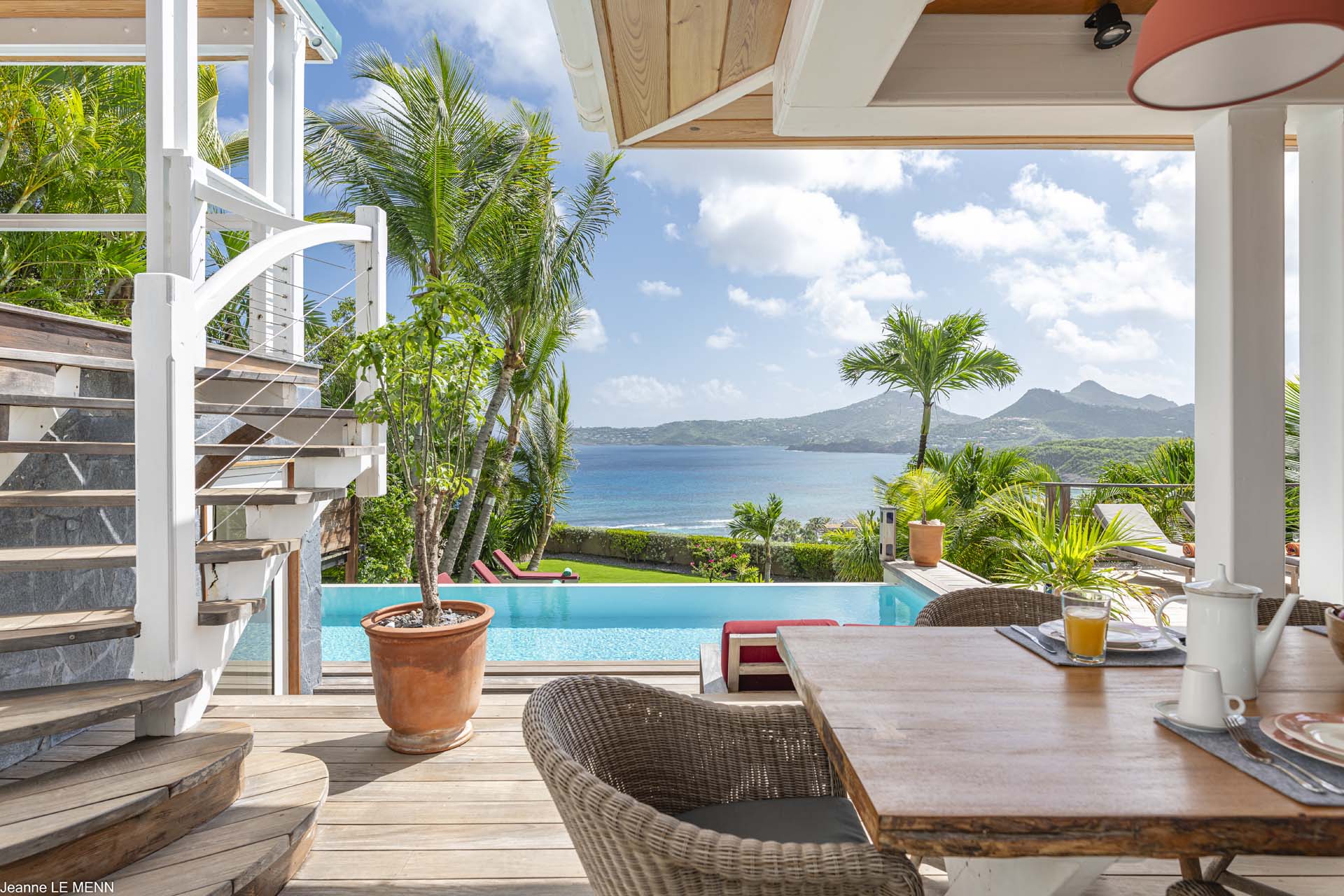 Villa Micalao, (villa code: WV MIC) is a 2 +2 bedroom villa situated hillside in Anse de Cayes and boasts spectacular views and a charming bit of vintage elegance that puts guests in vacation mode as soon as they arrive. An open floor plan that includes a living room, dining area, and well-equipped Italian kitchen flows into a covered terrace for alfresco dining. A pool deck is delightful for relaxing in the sun. It has an outdoor shower. Villa Micalao is well-suited for 2 couples with teenagers. The two first bedrooms have king 4-poster beds, situated for privacy, each has a terrace, and a large ensuite bathroom (one with A/C) decorated with style and whimsy. The 3rd bedroom, with king/twin beds and ensuite bathroom, is smaller and located by the heated pool. The fourth bedroom is located at the entrance and is not connected to the main house. However, its proximity to the garden provides a tranquil and green environment relaxation. A large parking area with direct entrance without stairs is located behind the villa. Anse des Cayes Beach.Please fill out the form to begin your inquiry and we will connect you with a seasoned villa rental specialist.