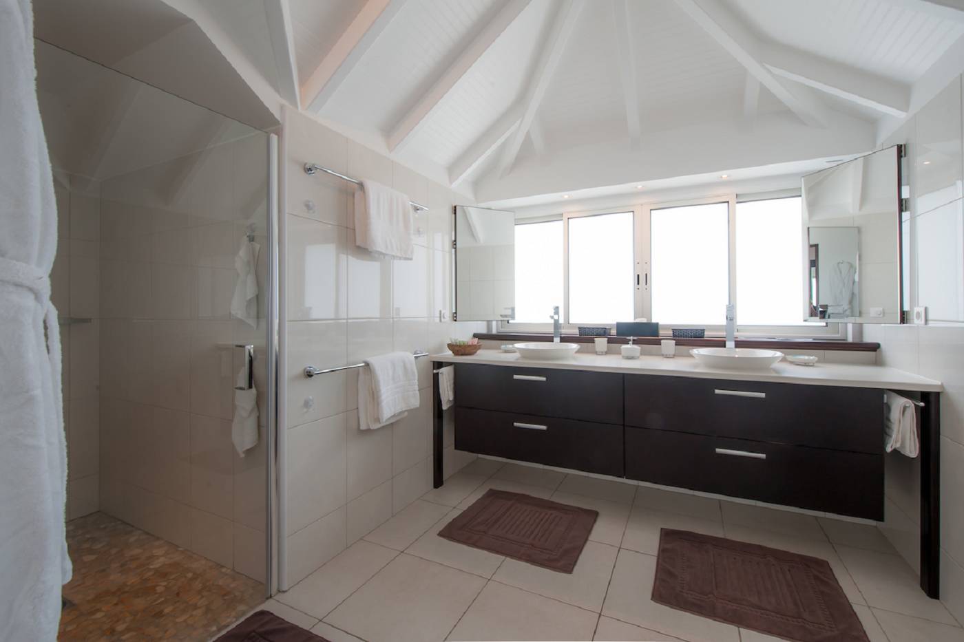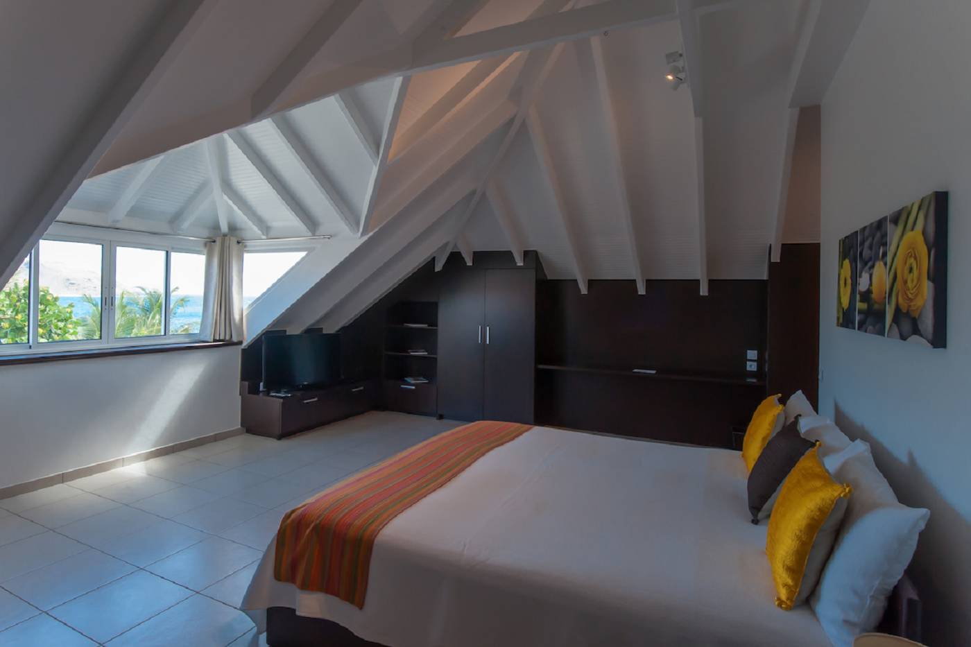 Poised just above the brilliant blue waters of Flamands, the two-bedroom Villa Micela (villa code: WV MCA) is a beach lover’s dream. Indoors, guests can relax in air-conditioned comfort, while enjoying the seascape. An open floor plan encompasses a comfortable living room with US satellite TV, a dining area, and a sleek, compact L-shaped kitchen (A guest bath with shower is conveniently located on this level.) The kitchen opens onto a delightful dining portico adjacent to the heated pool and deck - which is enormous and affords loads of outdoor living space. Tropical plantings divide the pool area from a sheltered dining nook and cushy chaises overlook the beach; a gated staircase will have your toes in the sand in a heartbeat... The main level also includes an ensuite (king/twin) bedroom. Upstairs, the spacious master bedroom has a king bed, an ensuite bathroom, and a private bathroom. Both bedrooms have TVs. Villa Micela is a wonderful vacation home for two couples or a small family. This is a non-smoking villa.Please fill out the form to begin your inquiry and we will connect you with a seasoned villa rental specialist.