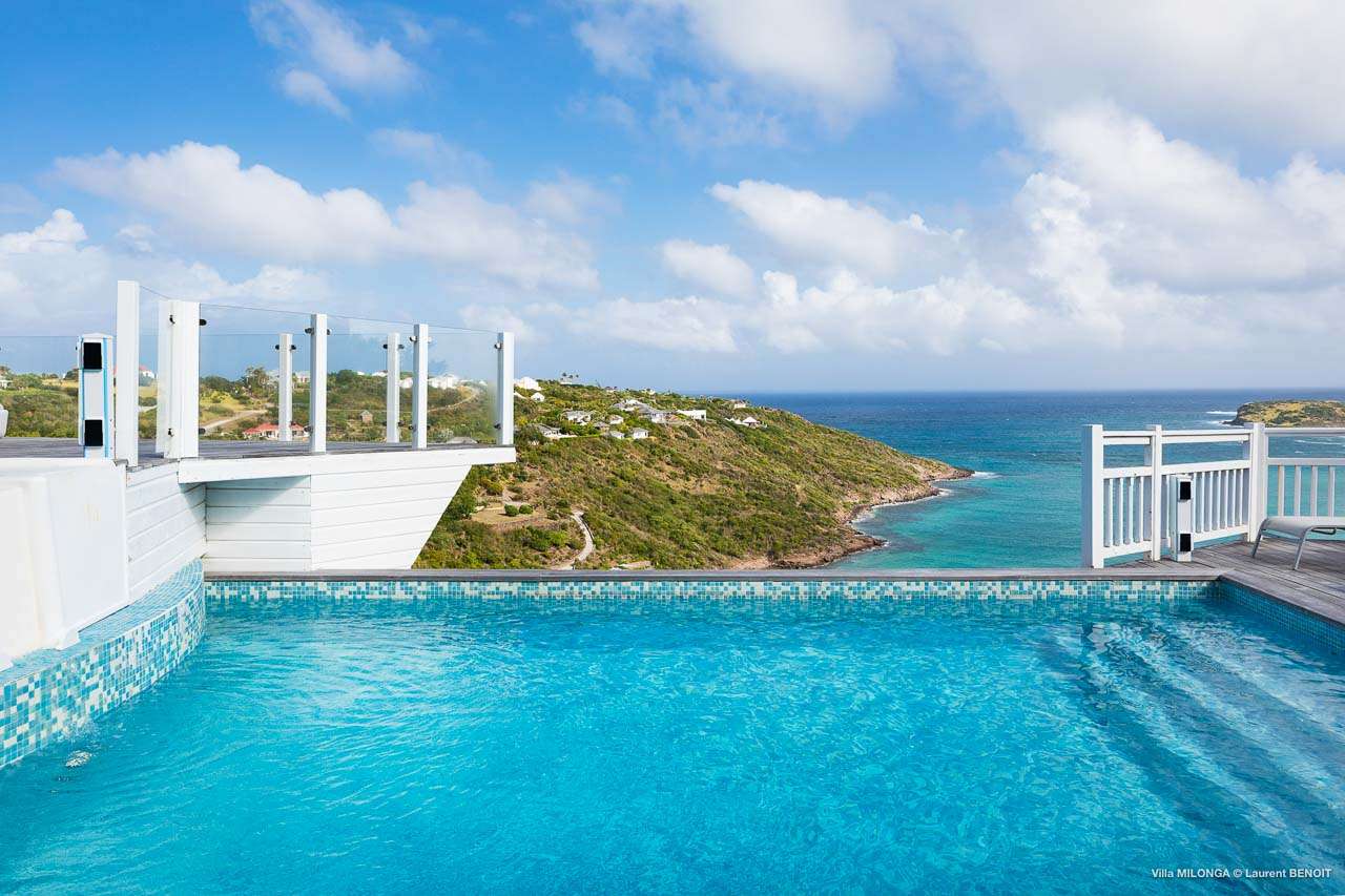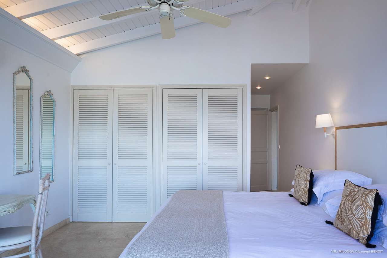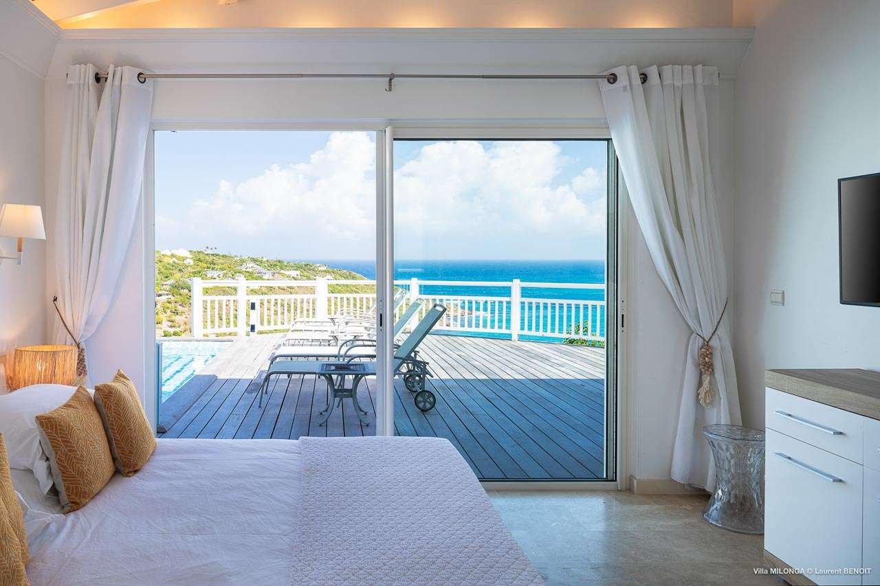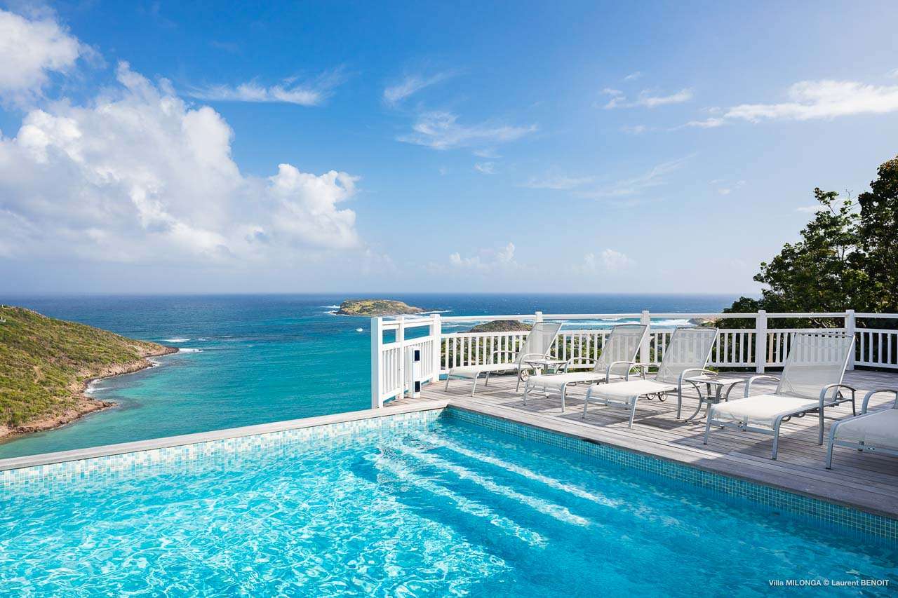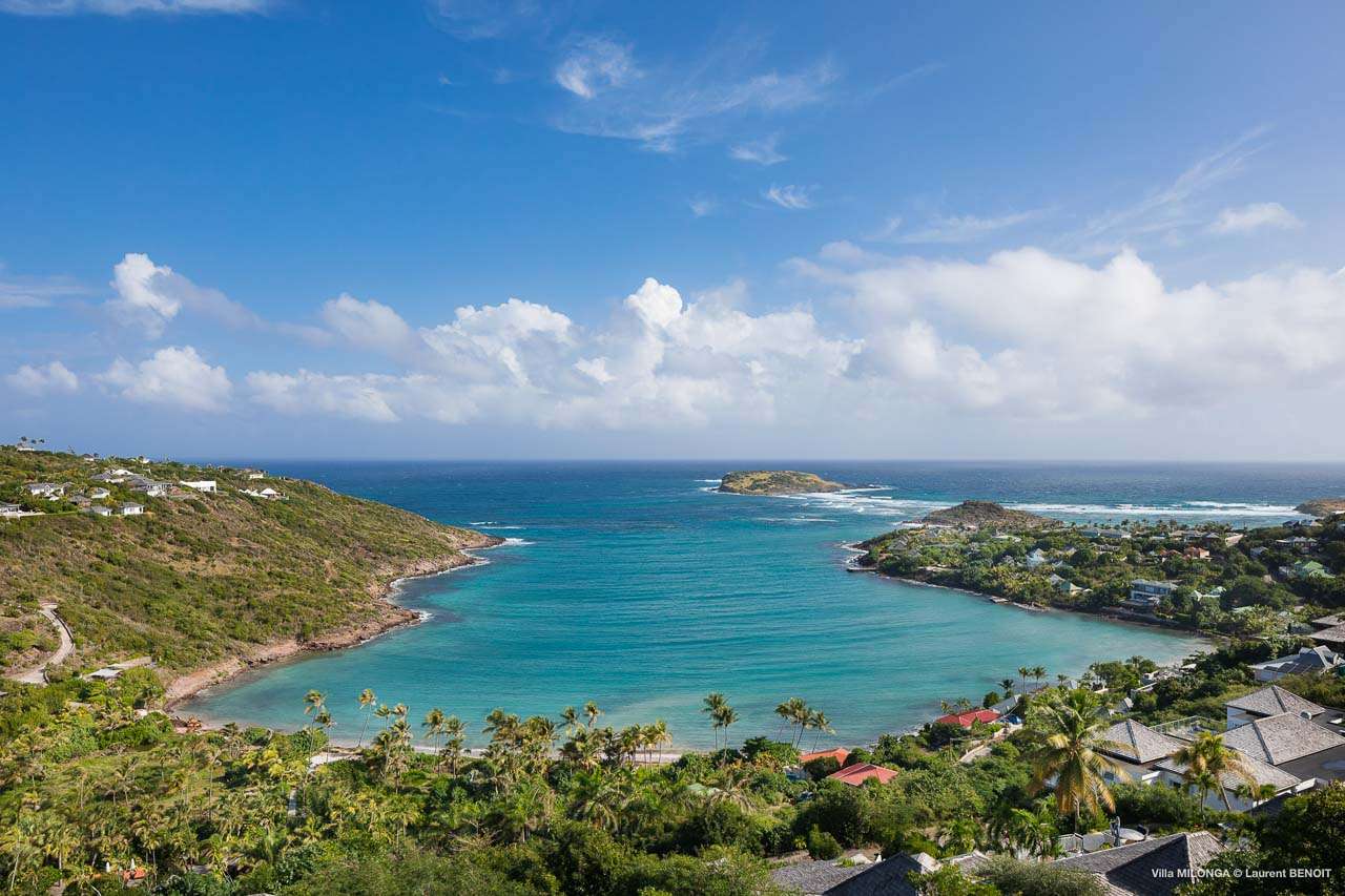 Welcome to Villa Milonga (villa code: WV MLA), a blissful 4-bedroom villa located in Marigot, St. Barts. This hillside villa offers panoramic views of the bay and is a few minutes' drive from two of the island’s most pristine beaches. A recent renovation at Villa Milonga has left it feeling refreshed and new, with dazzling all-white interiors creating a sense of peace and serenity inside. The design and details are stunning, and there’s an airy and minimalist feel to the style that enhances the brilliant views over the Caribbean Sea. Nestled in the hills above Marigot Bay, Villa Milonga enjoys a fantastic location in St Barts. Both Marigot Bay and Lorient Beach are within easy driving distance, while the shops and restaurants of St. Jean are 10 minutes by car. The spacious living areas inside Villa Milonga are relaxing and serene. The all-white minimalist décor is broken up with tropical touches – a light touch of wood here, a palm pattern there – creating a stripped-back feel to the home. Recessed lighting in the vaulted ceilings above also adds a touch of refinement to the style. The large open living room and dining space overlook the pool and the views, offering beautifully soft white sofas for relaxing. A TV comes with U.S. satellite and Apple TV, although those immersive views of the Caribbean are equally as enticing. A large, modern kitchen inside Villa Milonga is open and bright, with an effortless style and a range of high-end appliances. Cooking here is a real pleasure – our concierge can even organize a grocery delivery of the island’s freshest ingredients. There’s some bar-style seating at the kitchen island for your morning coffee or an evening aperitif before dinner. The kitchen also opens to the indoor dining area, where the hues of blue in the sea backdrop meals. There are 4 bedrooms inside Villa Milonga, where the all-white interiors are broken up with rattan textures in the furnishings and soft, sandy-colored linens. The master bedroom is located off the living room and has extra seating, a TV with U.S. satellite and Apple TV, and an ensuite bathroom with a shower. In a separate bungalow next to the pool are two additional bedrooms that connect. One of the bedrooms has a king bed, a TV with U.S. satellite and Apple TV, and an ensuite bathroom with a shower. The other room has a king bed or 2 twin beds, an Apple TV, and an ensuite bathroom with a shower. The fourth bedroom is on the lower level and has a little private terrace, a king-sized bed, an Apple TV, and an ensuite bathroom with a shower. The expansive and peaceful living areas extend to the outdoor spaces at Villa Milonga, where you’ll breathe in the beautiful island air. The views are outstanding, and there’s plenty of seating for kicking back and taking it all in, drink in hand. There’s an outdoor dining area on the covered terrace, ideal for alfresco meals. And for indulgent evenings under the starry skies, a newly-added hot tub. Steps lead down to the swimming pool, where you could spend a day alternating between refreshing dips in the water and sunbathing sessions on the loungers. It’s all facing out over the turquoise hues of Marigot Bay, a peaceful and remote area of St. Barts. During the December holidays, the villa rents at the full occupancy rate regardless of how many bedrooms are used.Please fill out the form to begin your inquiry and we will connect you with a seasoned villa rental specialist.