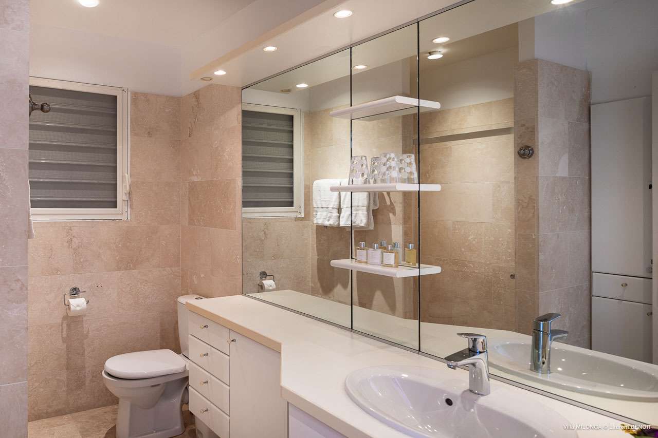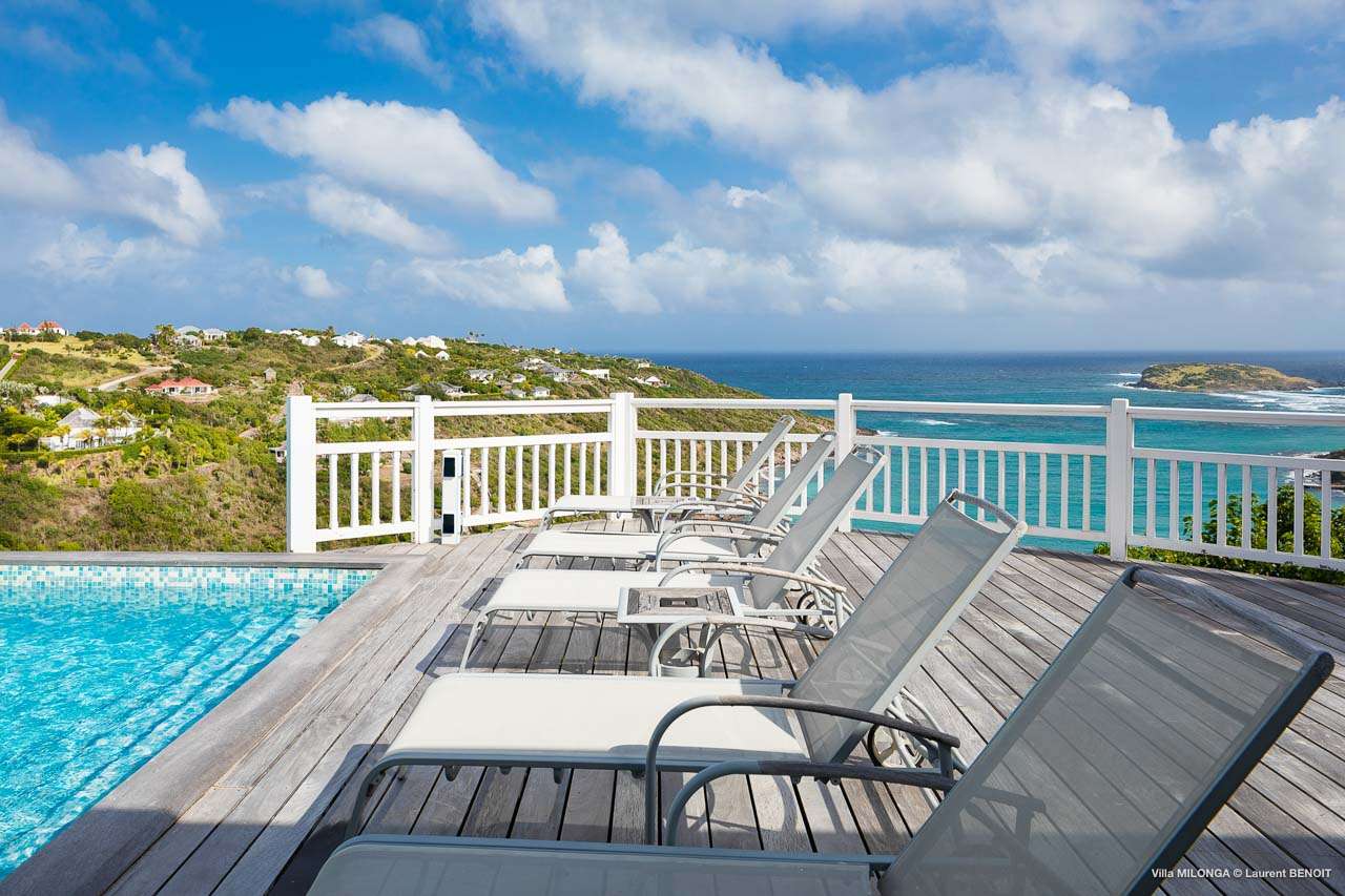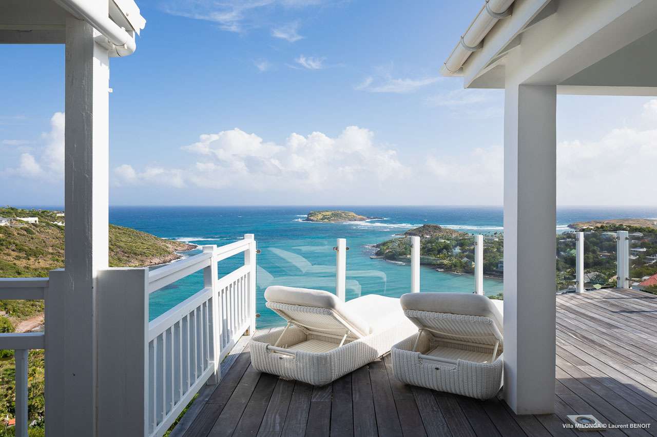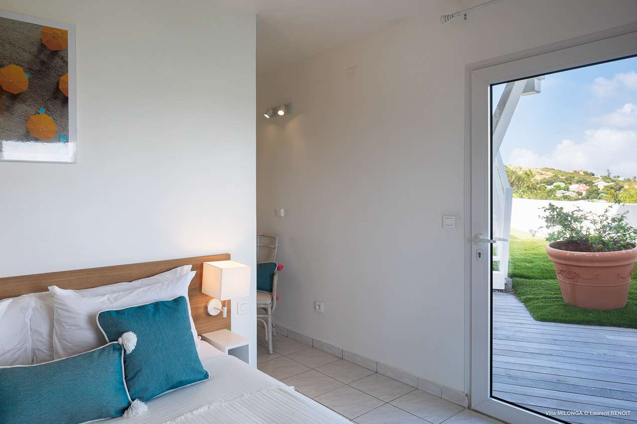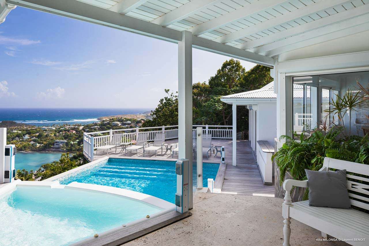Welcome to Villa Milonga (villa code: WV MLA), a blissful 4-bedroom villa located in Marigot, St. Barts. This hillside villa offers panoramic views of the bay and is a few minutes' drive from two of the island’s most pristine beaches. A recent renovation at Villa Milonga has left it feeling refreshed and new, with dazzling all-white interiors creating a sense of peace and serenity inside. The design and details are stunning, and there’s an airy and minimalist feel to the style that enhances the brilliant views over the Caribbean Sea. Nestled in the hills above Marigot Bay, Villa Milonga enjoys a fantastic location in St Barts. Both Marigot Bay and Lorient Beach are within easy driving distance, while the shops and restaurants of St. Jean are 10 minutes by car. The spacious living areas inside Villa Milonga are relaxing and serene. The all-white minimalist décor is broken up with tropical touches – a light touch of wood here, a palm pattern there – creating a stripped-back feel to the home. Recessed lighting in the vaulted ceilings above also adds a touch of refinement to the style. The large open living room and dining space overlook the pool and the views, offering beautifully soft white sofas for relaxing. A TV comes with U.S. satellite and Apple TV, although those immersive views of the Caribbean are equally as enticing. A large, modern kitchen inside Villa Milonga is open and bright, with an effortless style and a range of high-end appliances. Cooking here is a real pleasure – our concierge can even organize a grocery delivery of the island’s freshest ingredients. There’s some bar-style seating at the kitchen island for your morning coffee or an evening aperitif before dinner. The kitchen also opens to the indoor dining area, where the hues of blue in the sea backdrop meals. There are 4 bedrooms inside Villa Milonga, where the all-white interiors are broken up with rattan textures in the furnishings and soft, sandy-colored linens. The master bedroom is located off the living room and has extra seating, a TV with U.S. satellite and Apple TV, and an ensuite bathroom with a shower. In a separate bungalow next to the pool are two additional bedrooms that connect. One of the bedrooms has a king bed, a TV with U.S. satellite and Apple TV, and an ensuite bathroom with a shower. The other room has a king bed or 2 twin beds, an Apple TV, and an ensuite bathroom with a shower. The fourth bedroom is on the lower level and has a little private terrace, a king-sized bed, an Apple TV, and an ensuite bathroom with a shower. The expansive and peaceful living areas extend to the outdoor spaces at Villa Milonga, where you’ll breathe in the beautiful island air. The views are outstanding, and there’s plenty of seating for kicking back and taking it all in, drink in hand. There’s an outdoor dining area on the covered terrace, ideal for alfresco meals. And for indulgent evenings under the starry skies, a newly-added hot tub. Steps lead down to the swimming pool, where you could spend a day alternating between refreshing dips in the water and sunbathing sessions on the loungers. It’s all facing out over the turquoise hues of Marigot Bay, a peaceful and remote area of St. Barts. During the December holidays, the villa rents at the full occupancy rate regardless of how many bedrooms are used.Please fill out the form to begin your inquiry and we will connect you with a seasoned villa rental specialist.
