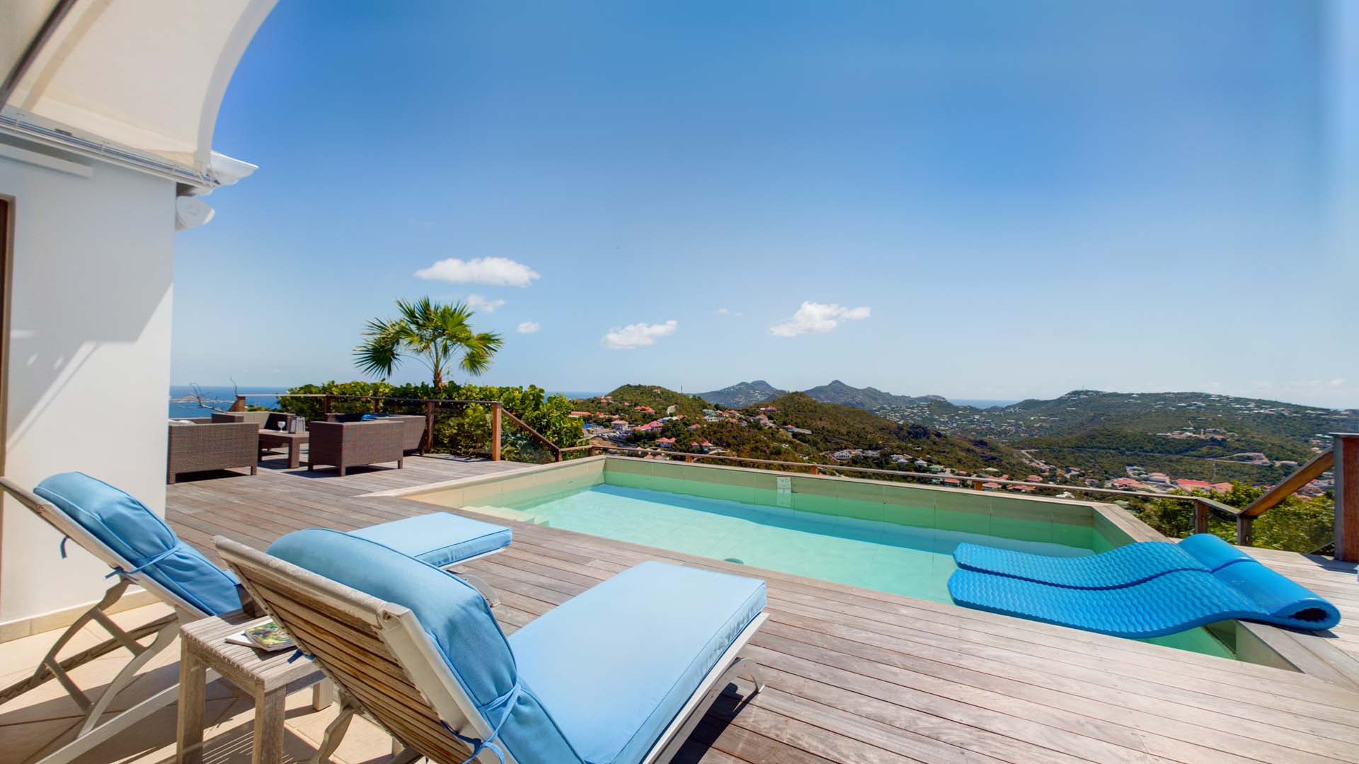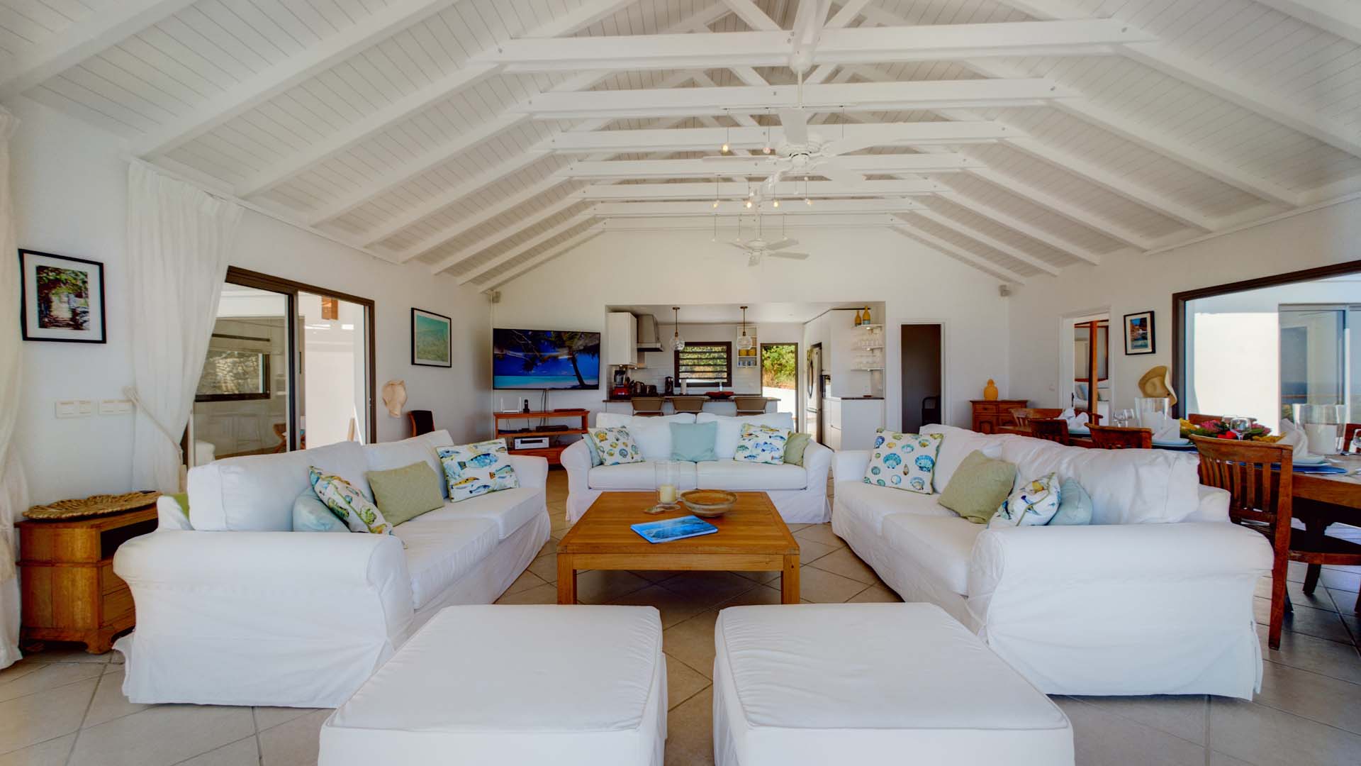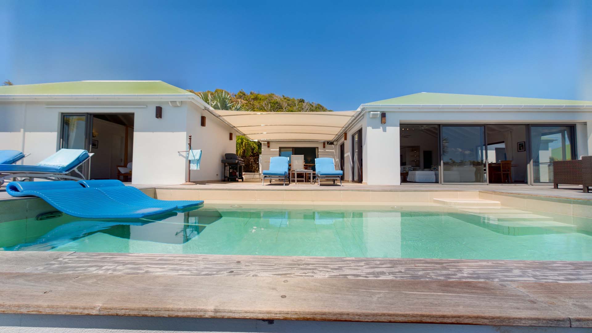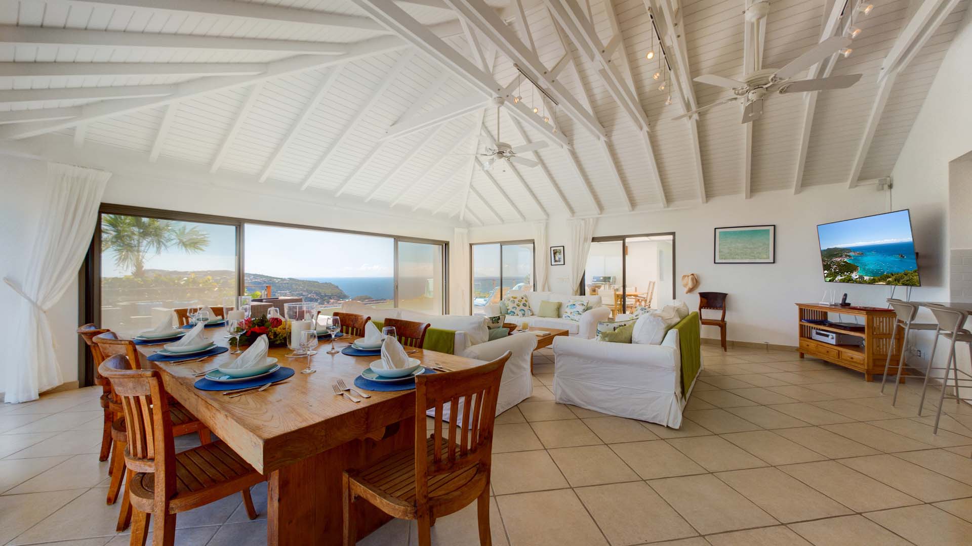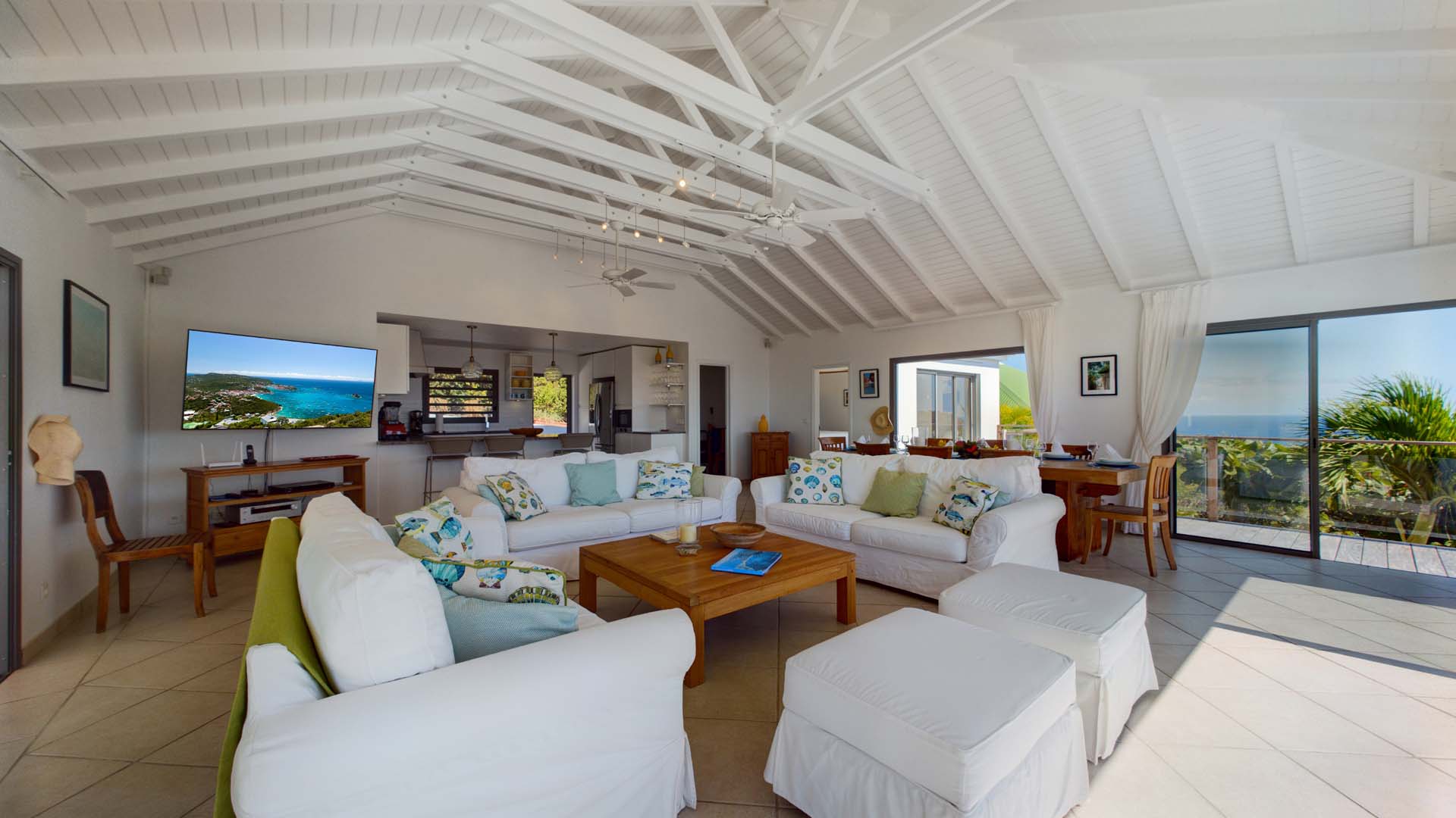 Embrace the good life at Villa Mirador (villa code: WV ING), a luxurious 4-bedroom villa located in Colombier, St. Barts. This hillside villa offers breathtaking ocean views and is a short drive from several stunning beaches. Airy and spacious, the interiors of Villa Mirador are sublime. Beautifully appointed with a minimalist style, nothing takes away from the stunning ocean views. Comfortable furnishings help you relax and unwind in this dreamy Caribbean villa. Villa Mirador is ideally located in the Colombier neighborhood on St. Barts. Looking out towards Gustavia, the beaches at Corossol and Flamands are both just a short drive away. One of the island’s best bakeries is also within driving distance, as are the shops and restaurants at both St-Jean and Gustavia. A spacious and open-concept great room is the heart of Mirador Villa, home to the living room, dining table, and kitchen. Bright and chic, doors open wide to the stunning ocean vistas and salty island breezes. The living room is in the center, with large, overstuffed sofas tempting you to sink in and unwind. It’s an ideal spot to enjoy your morning coffee, a good book, or a conversation with family and friends. The modern kitchen at Mirador Villa makes cooking a breeze. Beautiful wooden cabinetry and those dreamy views will inspire you to experiment with local flavors. Our concierge can organize grocery pre-stocking or delivery, catered meals, or arrange private chef service for a special occasion. When it’s time to dine, an elegant indoor dining table has seating for up to 8 guests. If alfresco meals are more your style, it’s as easy as whisking your plate outside onto the terrace. Here, another dining table is a romantic setting for a gourmet meal under the stars. All four bedrooms at Villa Mirador are independent of each other, ensuring privacy for guests. Soft linens promise a fantastic night’s sleep in each room. Three bedrooms have colonial four-poster king beds, each with a spacious ensuite bathroom. The fourth bedroom has twin beds that can be converted to a king-size bed, also with an ensuite. All the bedrooms have direct access to either the main terrace or a private outdoor area with a view. A large terrace with lounge chairs surrounds the pool, making this a pleasant area for either entertaining guests or sunbathing. The clear and cool water will tempt you in for a refreshing dip – you could lounge here all day. Next to the pool, the lounge area is a great setting for evening soirees as the sun goes down. Enjoying a tropical cocktail and toasting your island vacation is a great way to enjoy the famous St. Barts sunsets. From here, you can admire the undulating hills rolling down towards the Caribbean, where yachts sail to and from Gustavia Harbor. For those craving a day on the sand, the beaches at both Corossol and Flamands are both 5-minutes away. Flamands Beach is one of St. Barts's prettiest, with crystalline waters lapping at a white shore lined with palms and luxury restaurants. Anse des Cayes is also within easy driving distance. The elegant restaurants and shops of St-Jean are a 5-minute drive. Nearby, the bakery La Petite Colombe offers fresh baguettes and pastries each day. Gustavia is 10 minutes away by car. During Thanksgiving and the December holidays, the villa rents at the full occupancy rate regardless of how many bedrooms are used.Please fill out the form to begin your inquiry and we will connect you with a seasoned villa rental specialist.