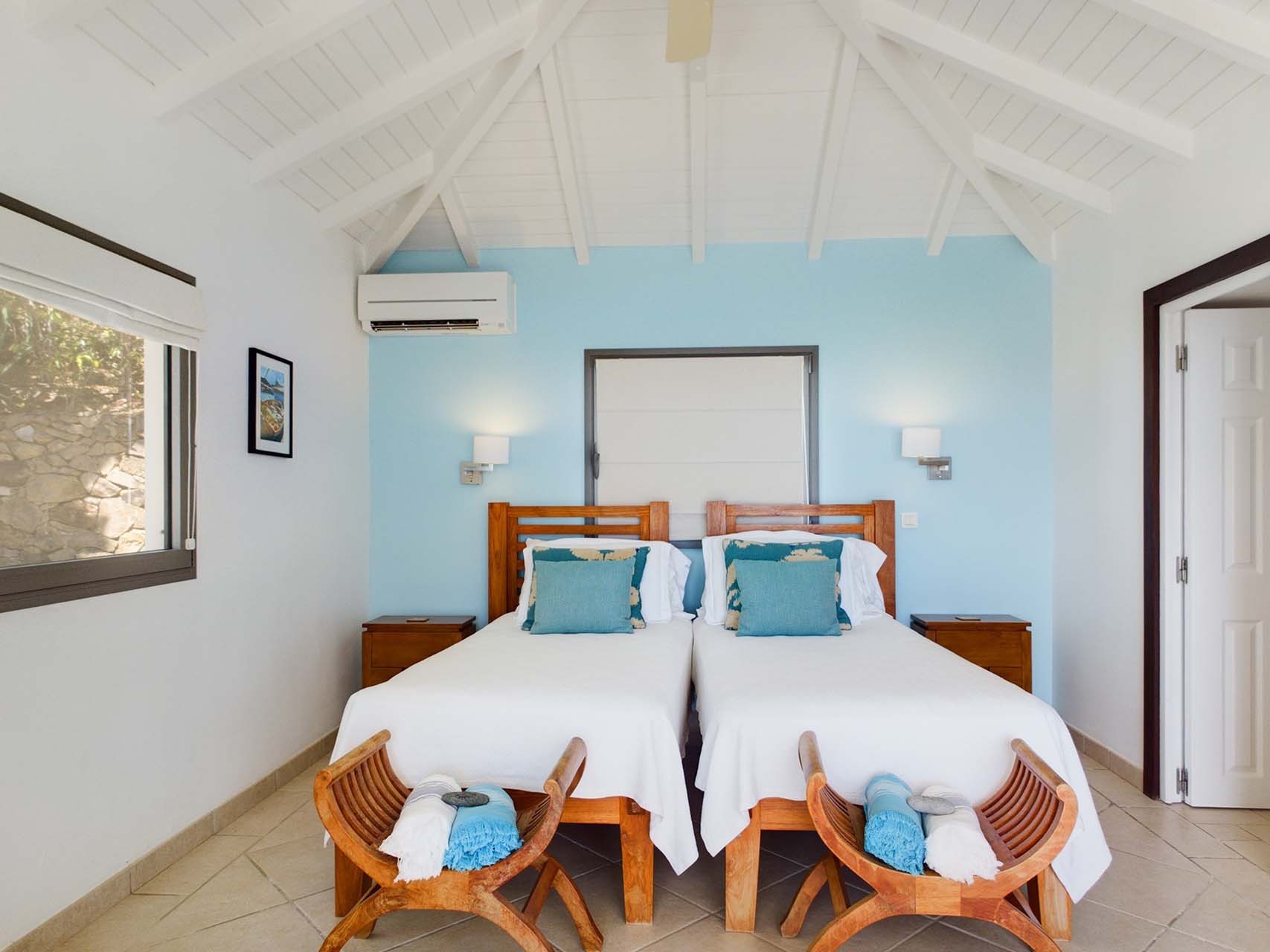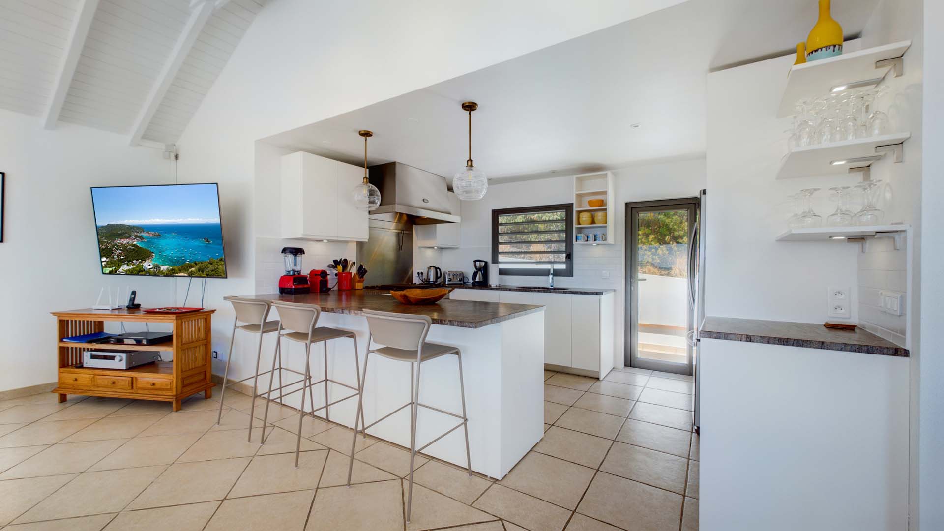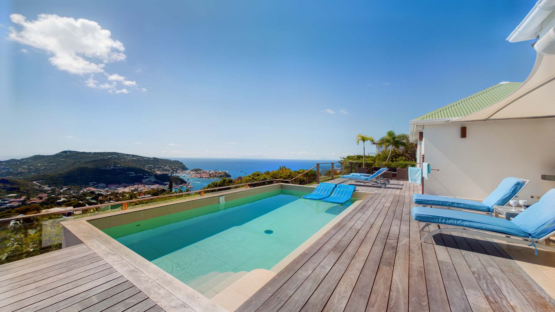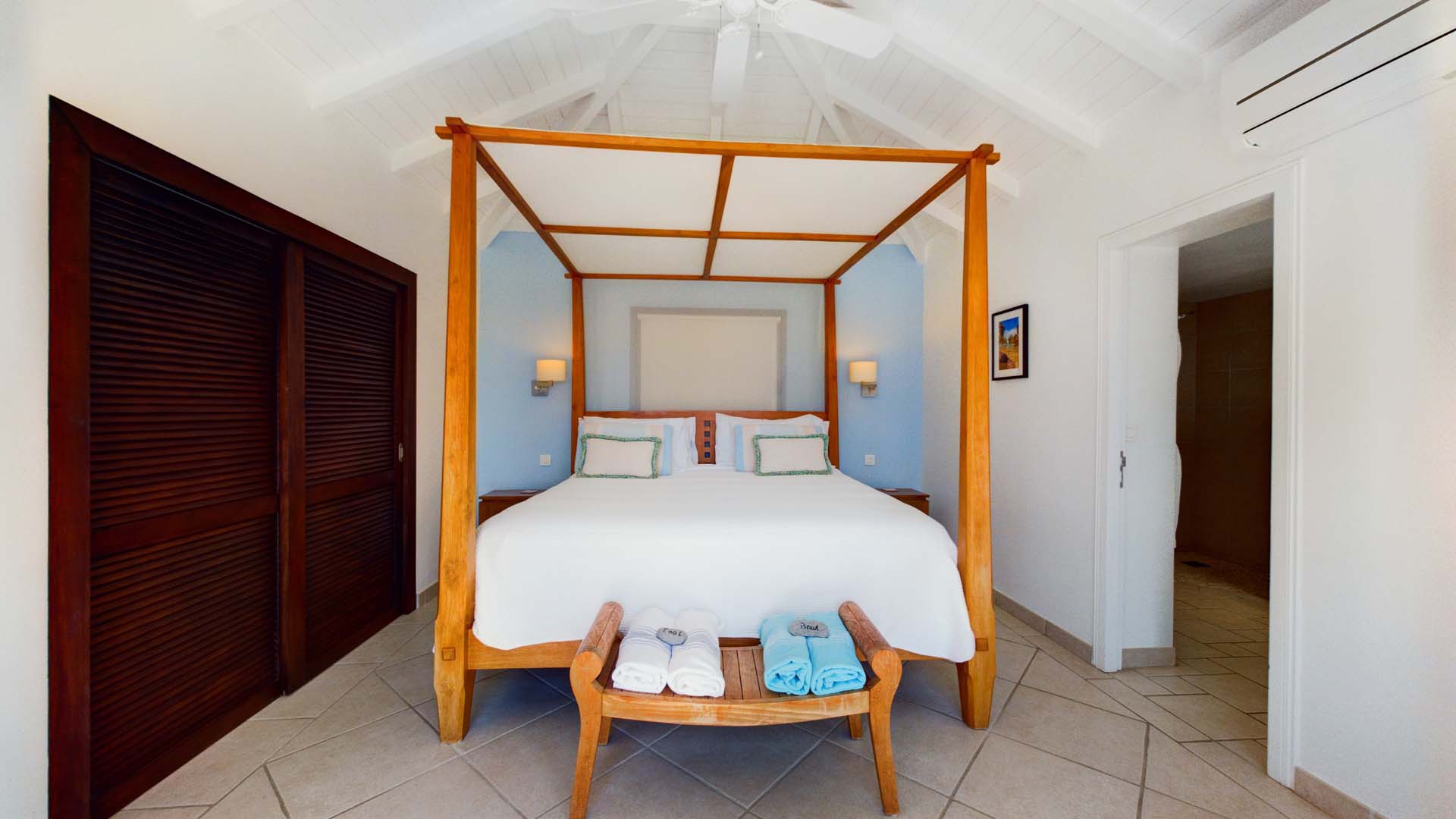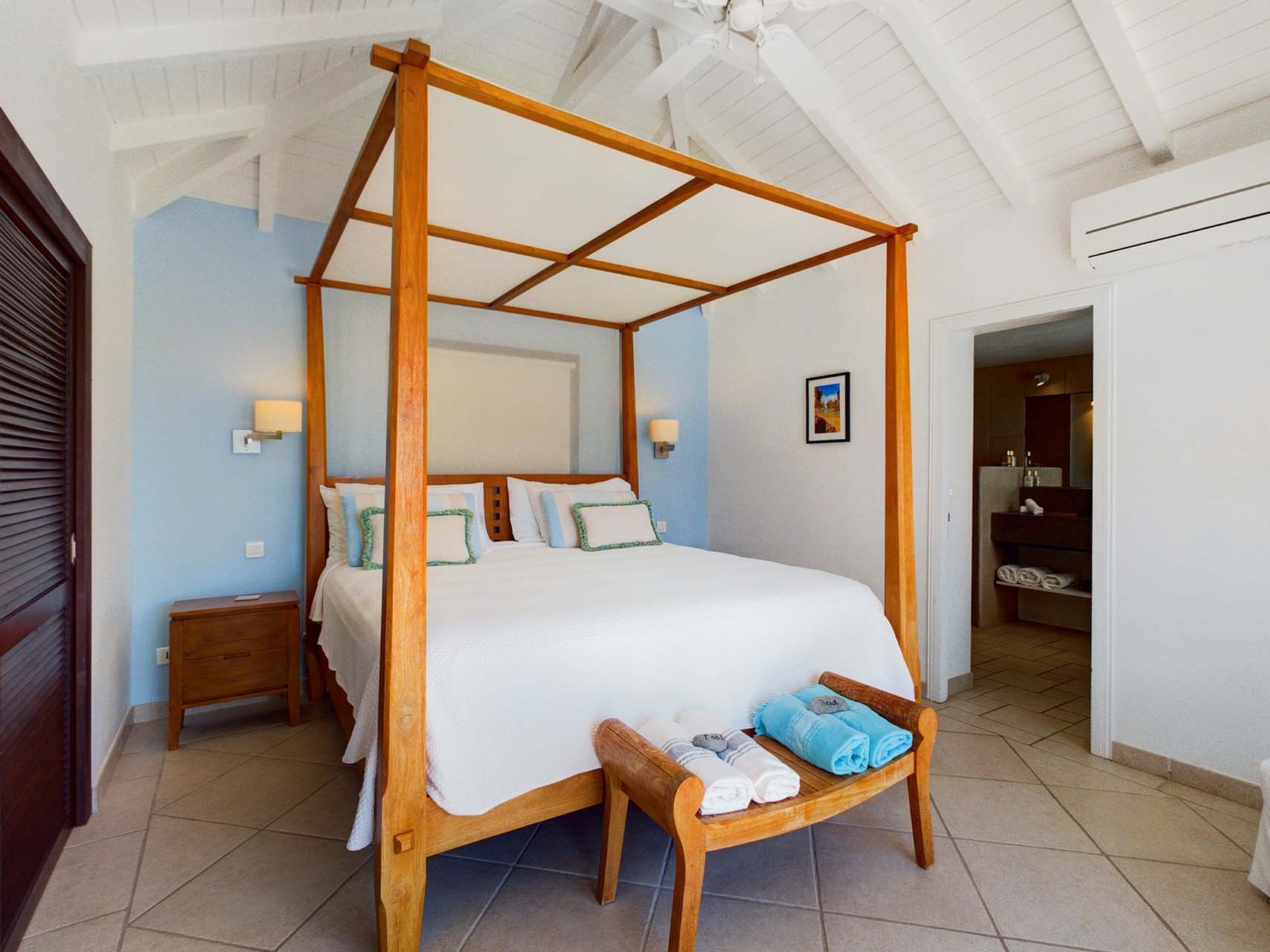 Embrace the good life at Villa Mirador (villa code: WV ING), a luxurious 4-bedroom villa located in Colombier, St. Barts. This hillside villa offers breathtaking ocean views and is a short drive from several stunning beaches. Airy and spacious, the interiors of Villa Mirador are sublime. Beautifully appointed with a minimalist style, nothing takes away from the stunning ocean views. Comfortable furnishings help you relax and unwind in this dreamy Caribbean villa. Villa Mirador is ideally located in the Colombier neighborhood on St. Barts. Looking out towards Gustavia, the beaches at Corossol and Flamands are both just a short drive away. One of the island’s best bakeries is also within driving distance, as are the shops and restaurants at both St-Jean and Gustavia. A spacious and open-concept great room is the heart of Mirador Villa, home to the living room, dining table, and kitchen. Bright and chic, doors open wide to the stunning ocean vistas and salty island breezes. The living room is in the center, with large, overstuffed sofas tempting you to sink in and unwind. It’s an ideal spot to enjoy your morning coffee, a good book, or a conversation with family and friends. The modern kitchen at Mirador Villa makes cooking a breeze. Beautiful wooden cabinetry and those dreamy views will inspire you to experiment with local flavors. Our concierge can organize grocery pre-stocking or delivery, catered meals, or arrange private chef service for a special occasion. When it’s time to dine, an elegant indoor dining table has seating for up to 8 guests. If alfresco meals are more your style, it’s as easy as whisking your plate outside onto the terrace. Here, another dining table is a romantic setting for a gourmet meal under the stars. All four bedrooms at Villa Mirador are independent of each other, ensuring privacy for guests. Soft linens promise a fantastic night’s sleep in each room. Three bedrooms have colonial four-poster king beds, each with a spacious ensuite bathroom. The fourth bedroom has twin beds that can be converted to a king-size bed, also with an ensuite. All the bedrooms have direct access to either the main terrace or a private outdoor area with a view. A large terrace with lounge chairs surrounds the pool, making this a pleasant area for either entertaining guests or sunbathing. The clear and cool water will tempt you in for a refreshing dip – you could lounge here all day. Next to the pool, the lounge area is a great setting for evening soirees as the sun goes down. Enjoying a tropical cocktail and toasting your island vacation is a great way to enjoy the famous St. Barts sunsets. From here, you can admire the undulating hills rolling down towards the Caribbean, where yachts sail to and from Gustavia Harbor. For those craving a day on the sand, the beaches at both Corossol and Flamands are both 5-minutes away. Flamands Beach is one of St. Barts's prettiest, with crystalline waters lapping at a white shore lined with palms and luxury restaurants. Anse des Cayes is also within easy driving distance. The elegant restaurants and shops of St-Jean are a 5-minute drive. Nearby, the bakery La Petite Colombe offers fresh baguettes and pastries each day. Gustavia is 10 minutes away by car. During Thanksgiving and the December holidays, the villa rents at the full occupancy rate regardless of how many bedrooms are used.Please fill out the form to begin your inquiry and we will connect you with a seasoned villa rental specialist.