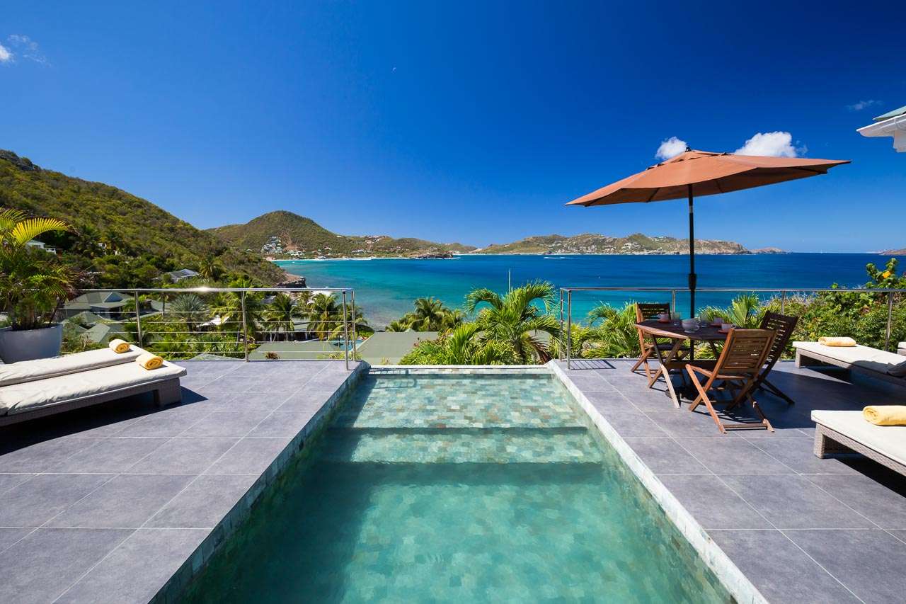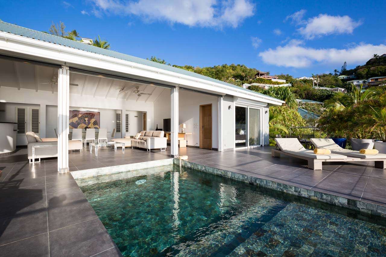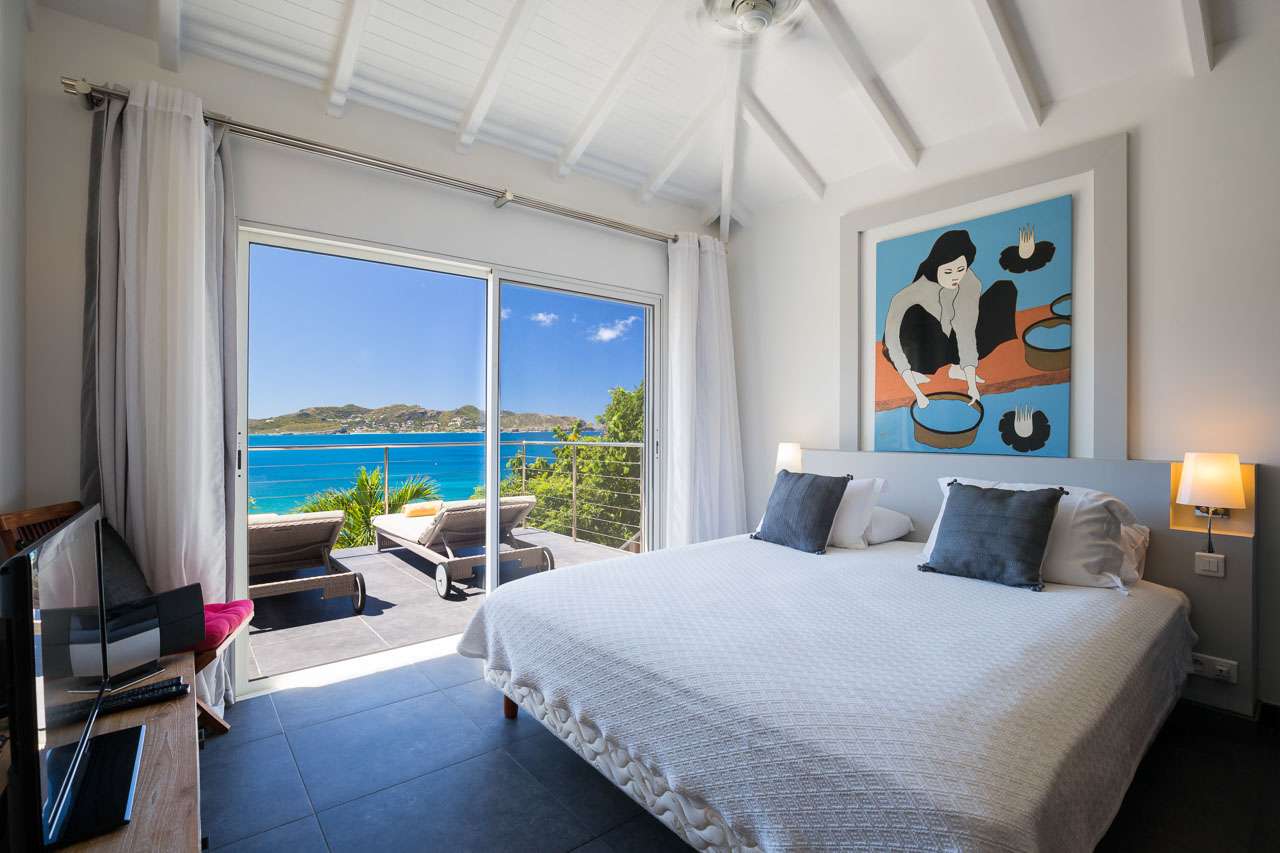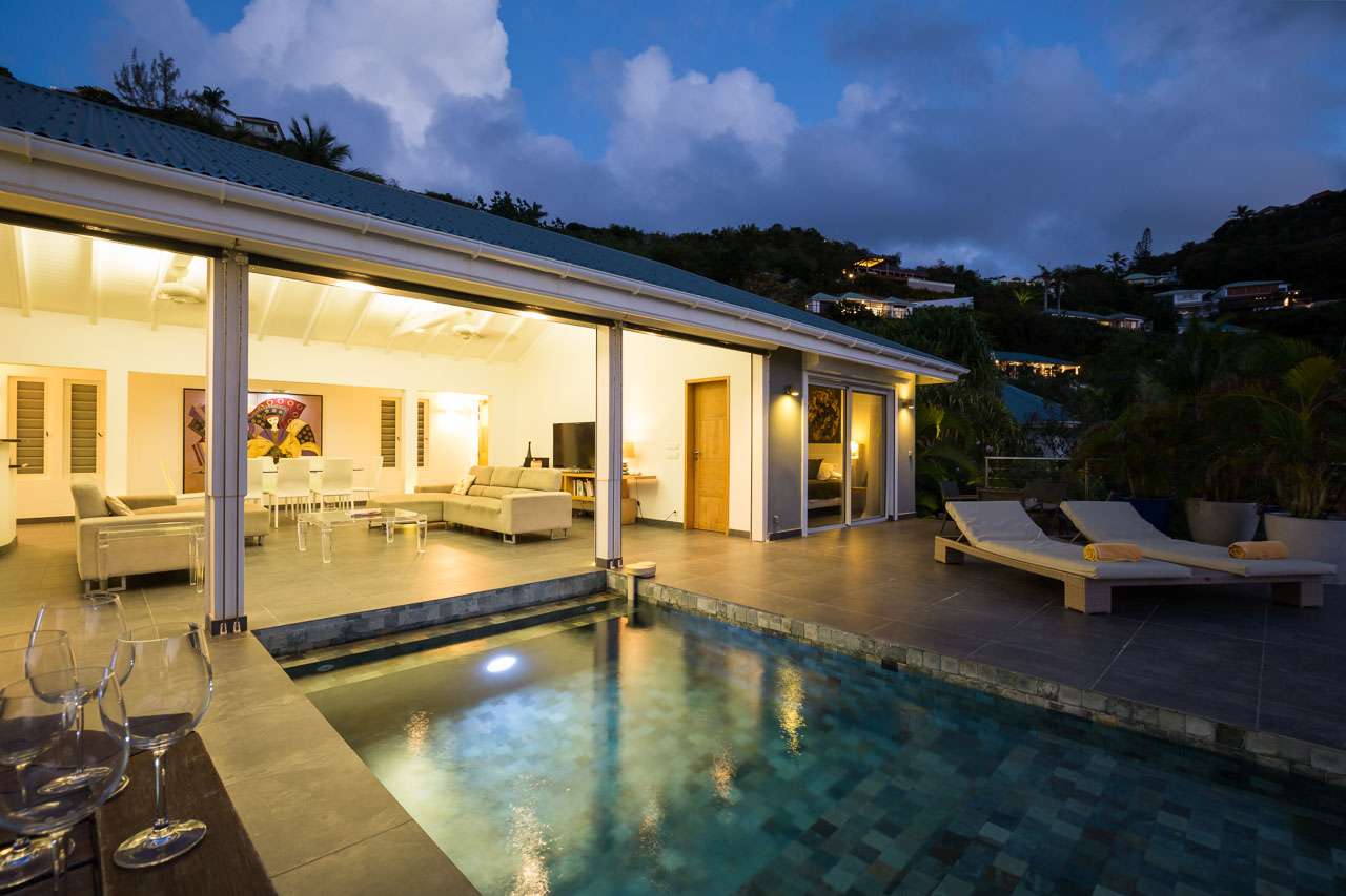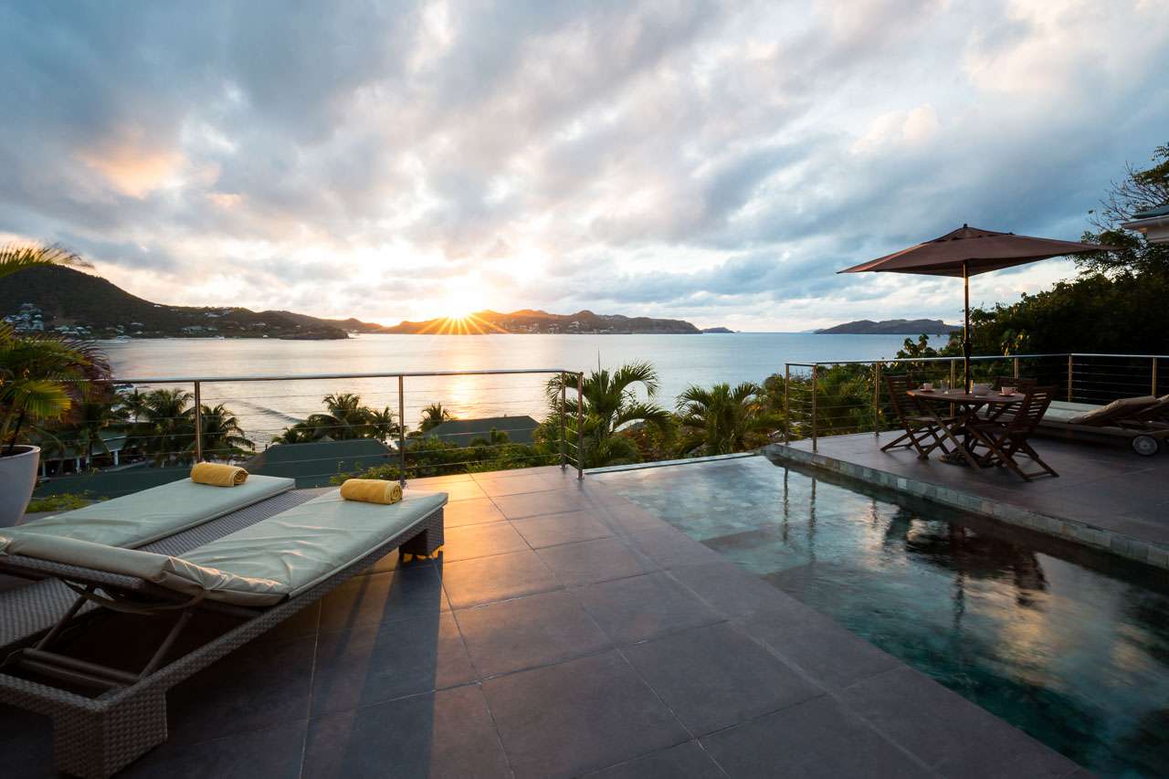 Welcome to Villa Mirande (villa code: WV AUS), a beautiful 4-bedroom villa located in Pointe Milou, St. Barts. This island home enjoys exquisite sunset views from the terrace and living space, overlooking the shimmering ocean and offshore islands. There’s a graceful elegance to the interiors at Villa Mirande, with clean white hues, airy ceilings, and a pared-back décor. It’s a place for slipping into the island pace of life, enjoying quality time with family and friends, and gazing out at the stunning natural beauty of St. Barts. The location of Villa Mirande is also one of the best when it comes to elegant island getaways. Nestled in the hills of Pointe Milou, the home enjoys sweeping views over Lorient Bay and the offshore islands. The beach is only a short drive away, as are plenty of fabulous shops and restaurants to complete your stay. In classic Caribbean fashion, Villa Mirande enjoys a lovely open-plan design. Flowing from space to space, large windows and doors beckon you outside, framing those wonderful views. The main great room combines the living area, dining room, and kitchen. In the living area, there’s plenty of comfortable seating for you to kick back and relax. Doors fold open to the outdoor terrace to let in the cooling breeze, and there’s a large TV for those nights you’d prefer to stay in with a movie. At the back of the great room is Villa Mirande’s kitchen, equipped with high-end appliances and an extra refrigerator. Black, granite countertops contrast with the white lacquered cabinets, giving the space a very modern feel. Tucked between the living area and kitchen is the large, glass dining table, an ideal setting for delicious Caribbean meals. Outside, a second dining table sits on the terrace, complete with a grill for frying up freshly caught seafood as the sunset unfolds across the horizon. There are 4 bedrooms at Villa Mirande, with two on the main level and two below. On either side of the living room are two master bedrooms, equal in size and each with a plush queen-sized bed. These two rooms also come with spacious ensuite bathrooms and terrific ocean views. Downstairs are the third and fourth bedrooms. Both are furnished with a pair of twins, although they can be configured to have kings instead. These rooms also feature ensuite bathrooms. Coaxing you outside at every turn, the wonderful outdoor terrace is a highlight at Villa Mirande. In the center is the swimming pool, stretching toward the edge of the terrace where the infinity-edge spills over the side. You could laze away on the loungers, ideal spots for sunbathing, reading books, or getting some work done by the water. To the side of the home, the terrace continues, with a gorgeous outdoor living area. It’s here where you can entertain guests, hosting cocktail hours at sunset before grilling up a Caribbean feast on the barbecue. And for days on the sand, Villa Mirande is only a short drive away from Lorient Beach. This pristine sweep of golden sand is one of the prettiest in the Caribbean, offering plenty of opportunities for swimming, snorkeling, sunbathing, and even some watersports. During the December holidays, the villa rents at the full occupancy rate regardless of how many bedrooms are used.Please fill out the form to begin your inquiry and we will connect you with a seasoned villa rental specialist.