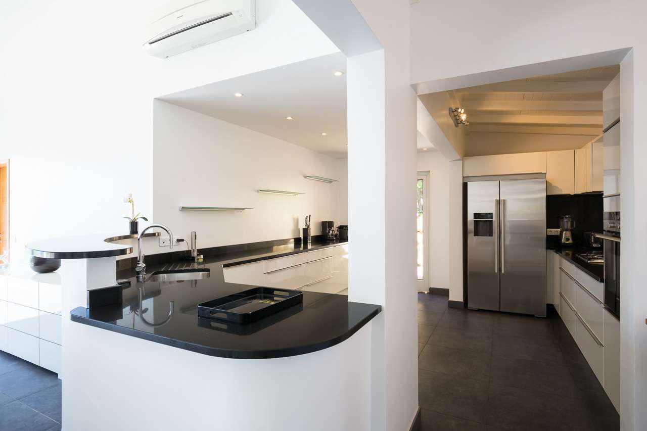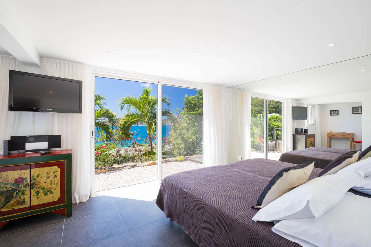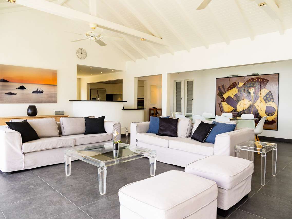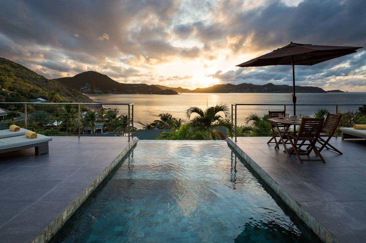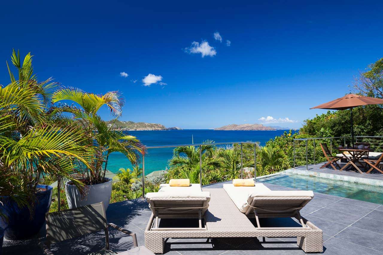 Welcome to Villa Mirande (villa code: WV AUS), a beautiful 4-bedroom villa located in Pointe Milou, St. Barts. This island home enjoys exquisite sunset views from the terrace and living space, overlooking the shimmering ocean and offshore islands. There’s a graceful elegance to the interiors at Villa Mirande, with clean white hues, airy ceilings, and a pared-back décor. It’s a place for slipping into the island pace of life, enjoying quality time with family and friends, and gazing out at the stunning natural beauty of St. Barts. The location of Villa Mirande is also one of the best when it comes to elegant island getaways. Nestled in the hills of Pointe Milou, the home enjoys sweeping views over Lorient Bay and the offshore islands. The beach is only a short drive away, as are plenty of fabulous shops and restaurants to complete your stay. In classic Caribbean fashion, Villa Mirande enjoys a lovely open-plan design. Flowing from space to space, large windows and doors beckon you outside, framing those wonderful views. The main great room combines the living area, dining room, and kitchen. In the living area, there’s plenty of comfortable seating for you to kick back and relax. Doors fold open to the outdoor terrace to let in the cooling breeze, and there’s a large TV for those nights you’d prefer to stay in with a movie. At the back of the great room is Villa Mirande’s kitchen, equipped with high-end appliances and an extra refrigerator. Black, granite countertops contrast with the white lacquered cabinets, giving the space a very modern feel. Tucked between the living area and kitchen is the large, glass dining table, an ideal setting for delicious Caribbean meals. Outside, a second dining table sits on the terrace, complete with a grill for frying up freshly caught seafood as the sunset unfolds across the horizon. There are 4 bedrooms at Villa Mirande, with two on the main level and two below. On either side of the living room are two master bedrooms, equal in size and each with a plush queen-sized bed. These two rooms also come with spacious ensuite bathrooms and terrific ocean views. Downstairs are the third and fourth bedrooms. Both are furnished with a pair of twins, although they can be configured to have kings instead. These rooms also feature ensuite bathrooms. Coaxing you outside at every turn, the wonderful outdoor terrace is a highlight at Villa Mirande. In the center is the swimming pool, stretching toward the edge of the terrace where the infinity-edge spills over the side. You could laze away on the loungers, ideal spots for sunbathing, reading books, or getting some work done by the water. To the side of the home, the terrace continues, with a gorgeous outdoor living area. It’s here where you can entertain guests, hosting cocktail hours at sunset before grilling up a Caribbean feast on the barbecue. And for days on the sand, Villa Mirande is only a short drive away from Lorient Beach. This pristine sweep of golden sand is one of the prettiest in the Caribbean, offering plenty of opportunities for swimming, snorkeling, sunbathing, and even some watersports. During the December holidays, the villa rents at the full occupancy rate regardless of how many bedrooms are used.Please fill out the form to begin your inquiry and we will connect you with a seasoned villa rental specialist.