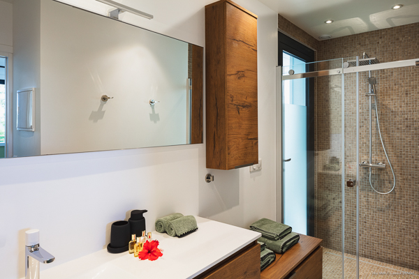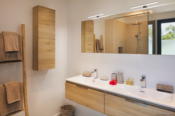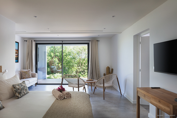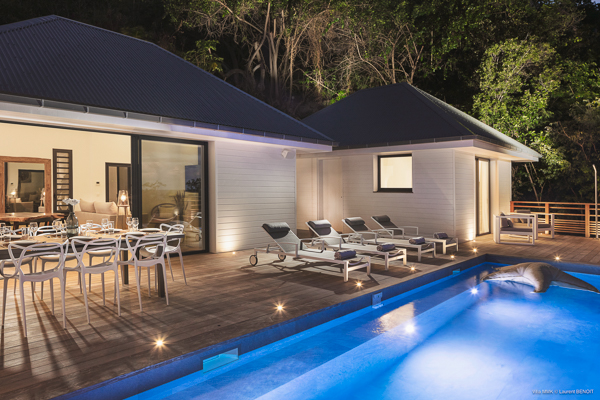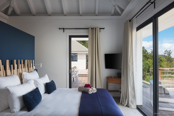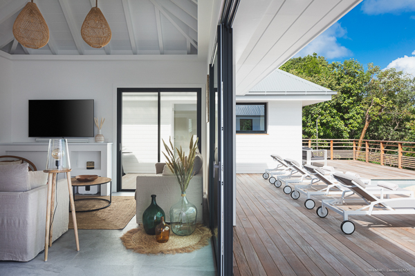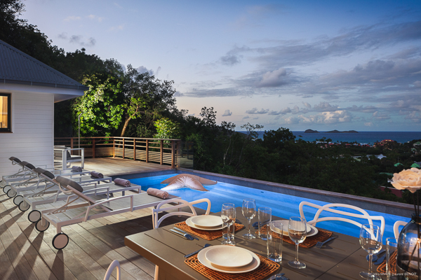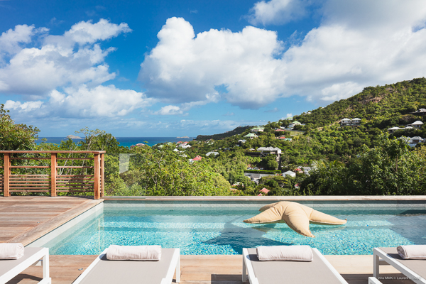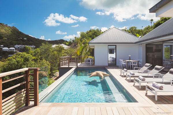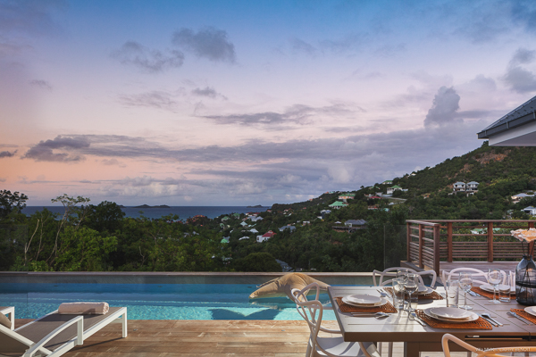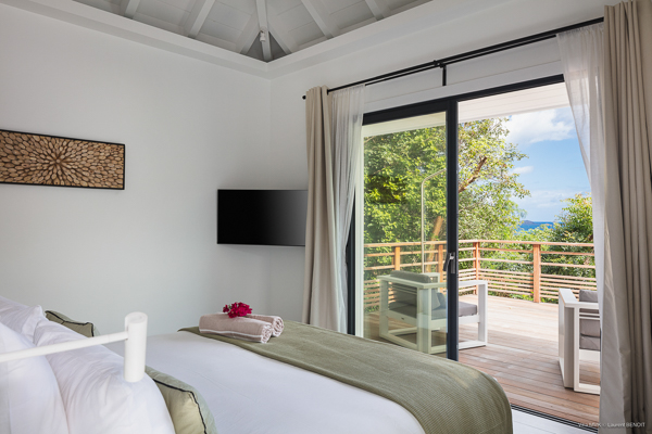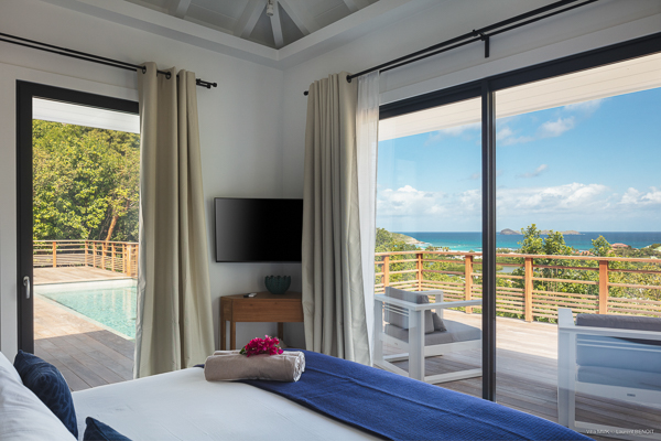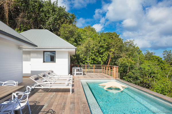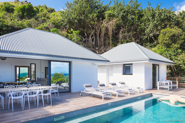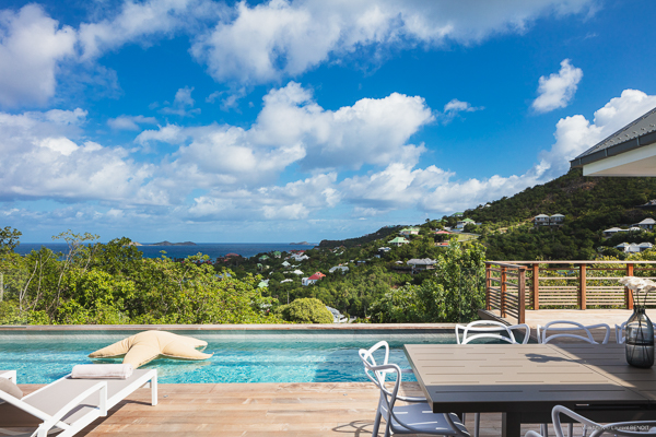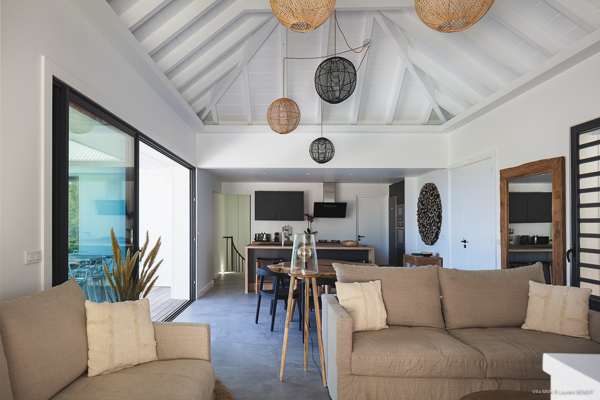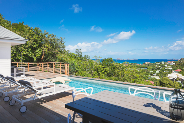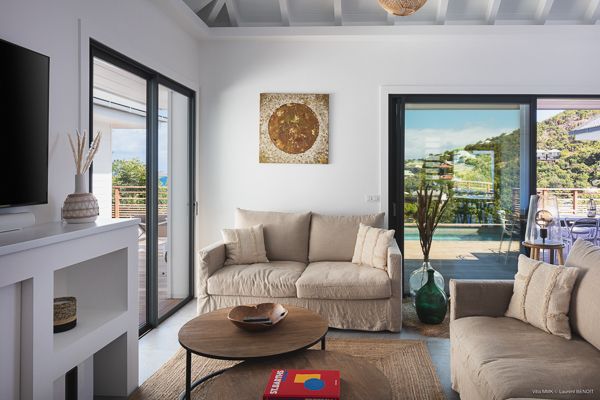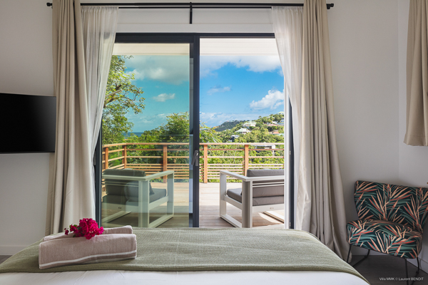 Villa MMK (villa code: WV MMK), is a charming 3-bedroom villa nestled in the hills of St. Jean. Spacious and modern and built on two levels, with a large living room, and a dining room that seats 6 and opens onto the terrace and stunning views. The fully-equipped kitchen has a breakfast bar with stools. The view from here is over the lush vegetation and the deep blue horizon. The terrace is designed around a lovely pool with a breathtaking view of the ocean and the hills. There are comfortable loungers and the outdoor dining room accommodates up to eight guests. The beautiful, air-conditioned bedrooms have ensuite bathrooms and king-size beds. Two of them are on the main level and open onto the terrace, while the third one is on the lower level and features a sitting area which leads to the garden. During the December holidays, the villa rents at full occupancy rates regardless of how many bedrooms are used.Please fill out the form to begin your inquiry and we will connect you with a seasoned villa rental specialist.