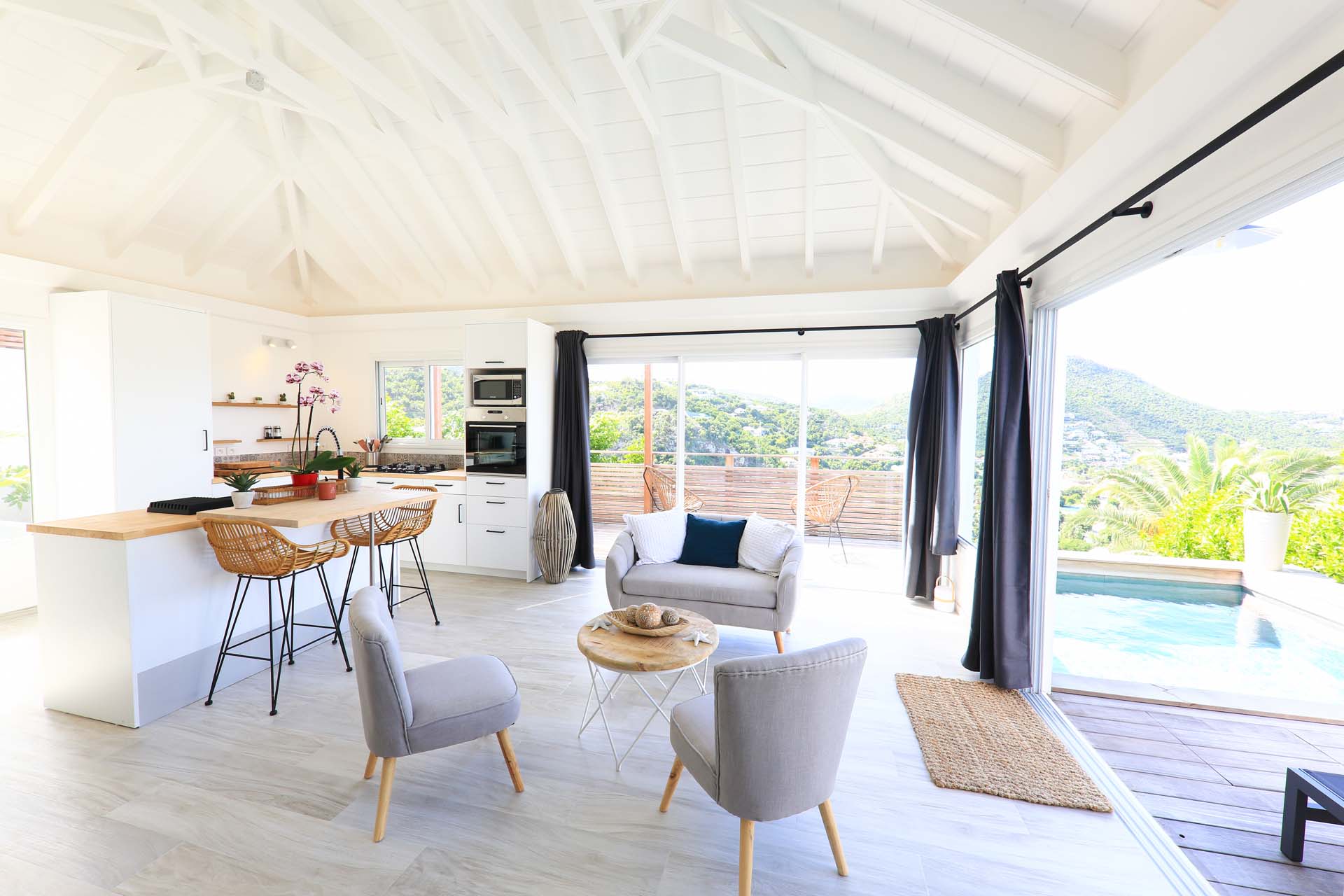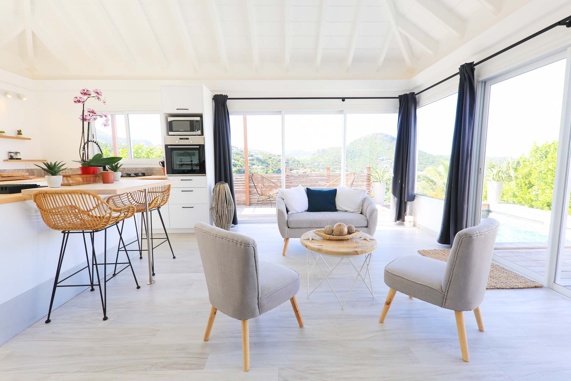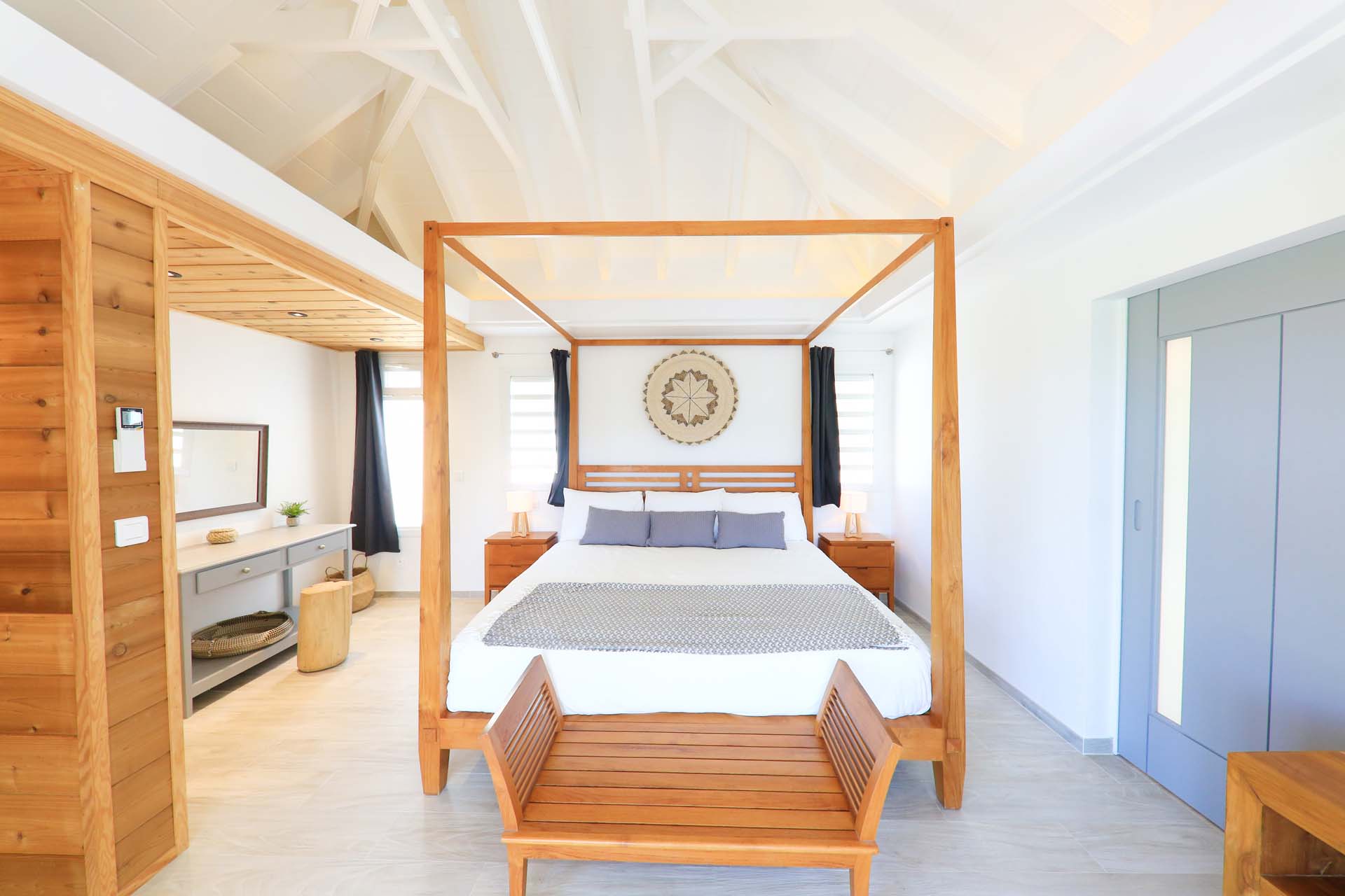 Villa Moana, (villa code: WV MOA) is a sweet and petite 1-bedroom villa overlooking Lorient Beach. Villa Moana offers privacy and a lovely view of its brilliant blue waters. Fully air-conditioned throughout, a compact well-equipped kitchen with a breakfast bar is adjacent to a living room furnished for relaxing and TV viewing. A four-poster king bed adds a touch of romance that honeymooners would adore, and the chic ensuite bath has a double vanity. Glass sliders open to the pool deck. * Note - There is a laundry service available, please ask the housekeeper and she will explain how it works.Please fill out the form to begin your inquiry and we will connect you with a seasoned villa rental specialist.
