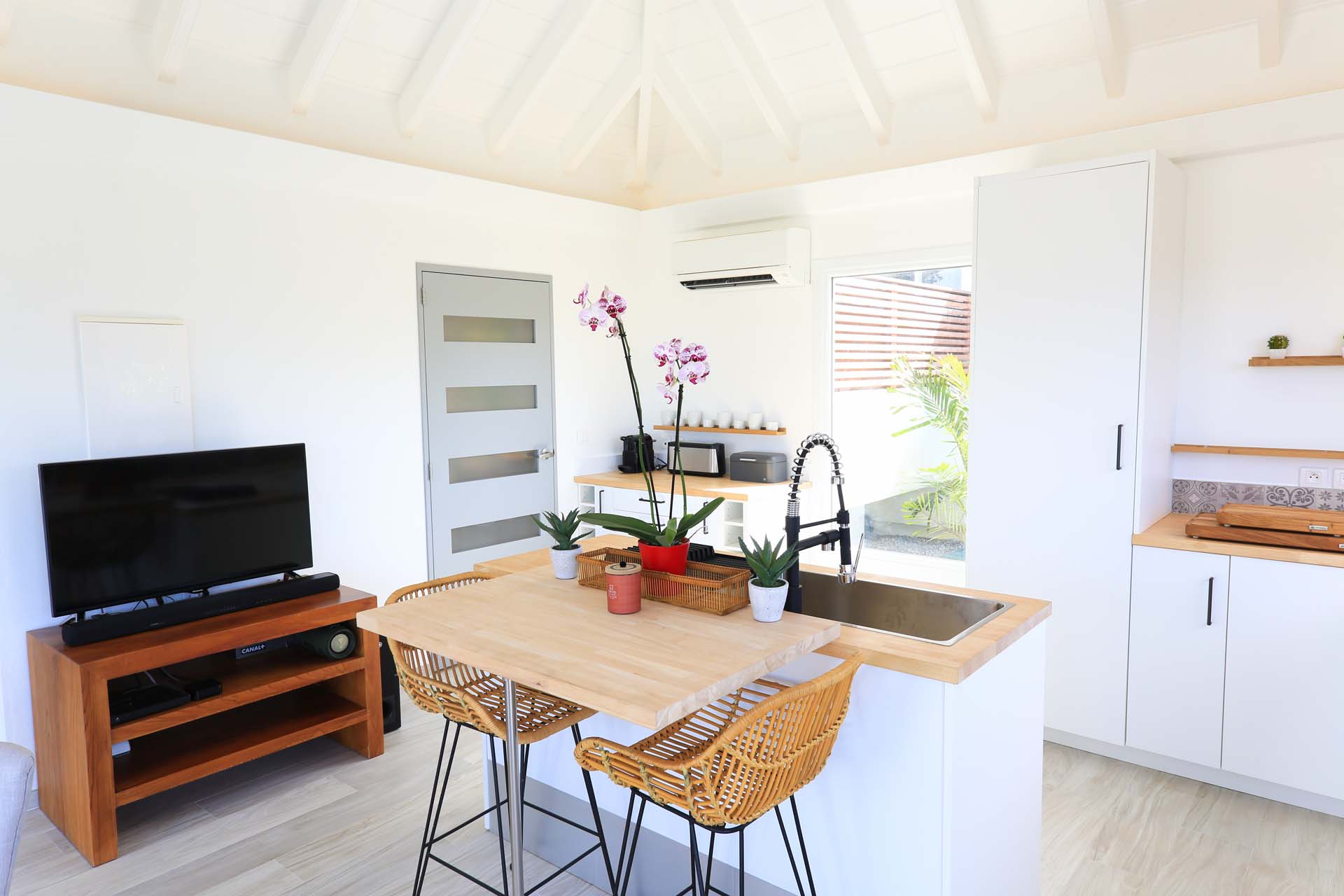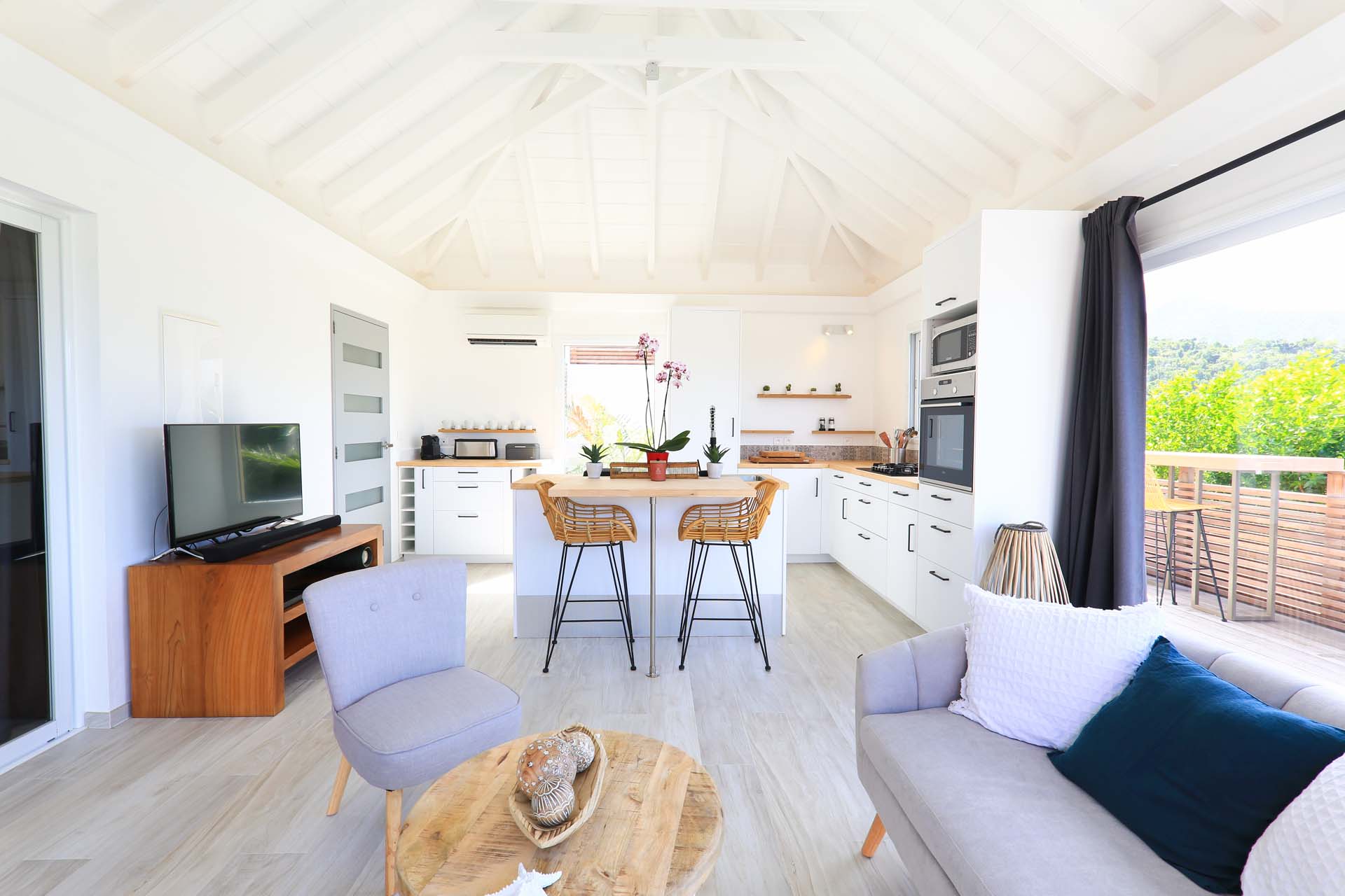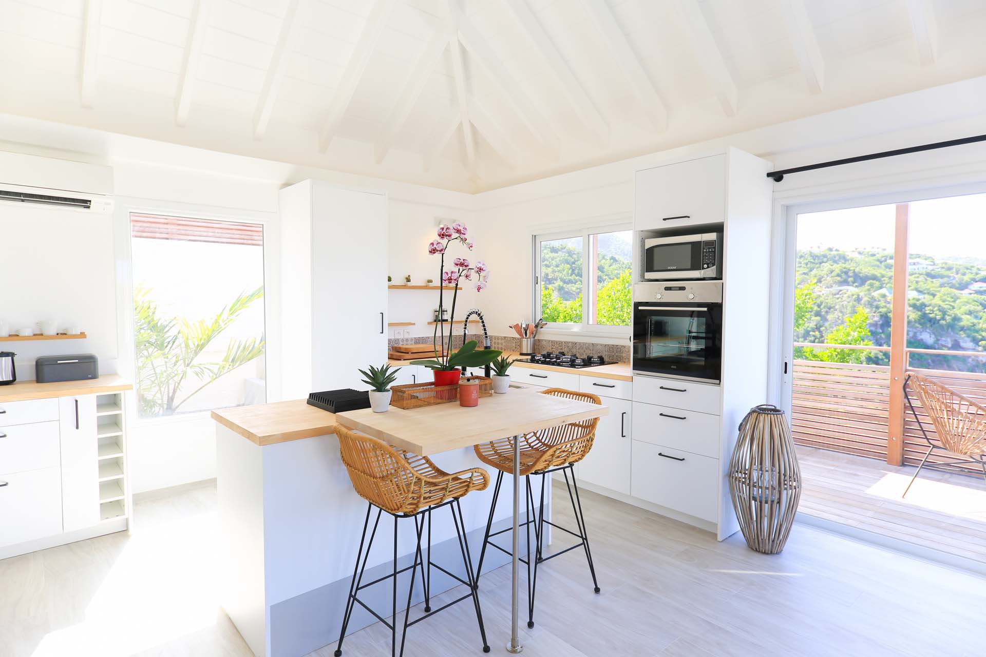 Villa Moana, (villa code: WV MOA) is a sweet and petite 1-bedroom villa overlooking Lorient Beach. Villa Moana offers privacy and a lovely view of its brilliant blue waters. Fully air-conditioned throughout, a compact well-equipped kitchen with a breakfast bar is adjacent to a living room furnished for relaxing and TV viewing. A four-poster king bed adds a touch of romance that honeymooners would adore, and the chic ensuite bath has a double vanity. Glass sliders open to the pool deck. * Note - There is a laundry service available, please ask the housekeeper and she will explain how it works.Please fill out the form to begin your inquiry and we will connect you with a seasoned villa rental specialist.