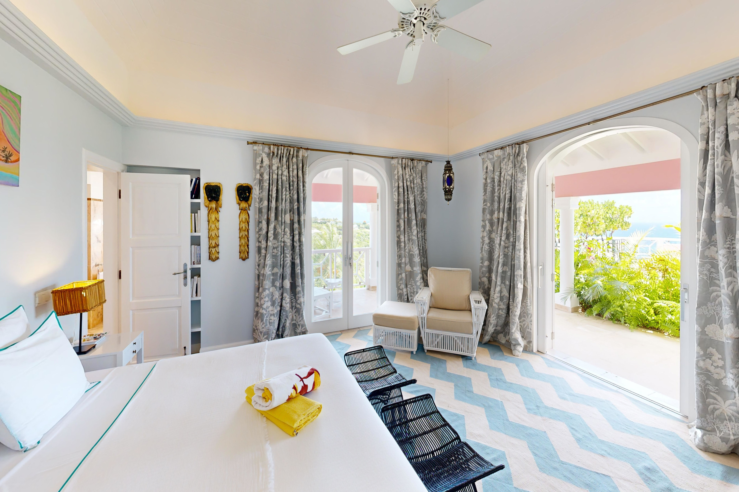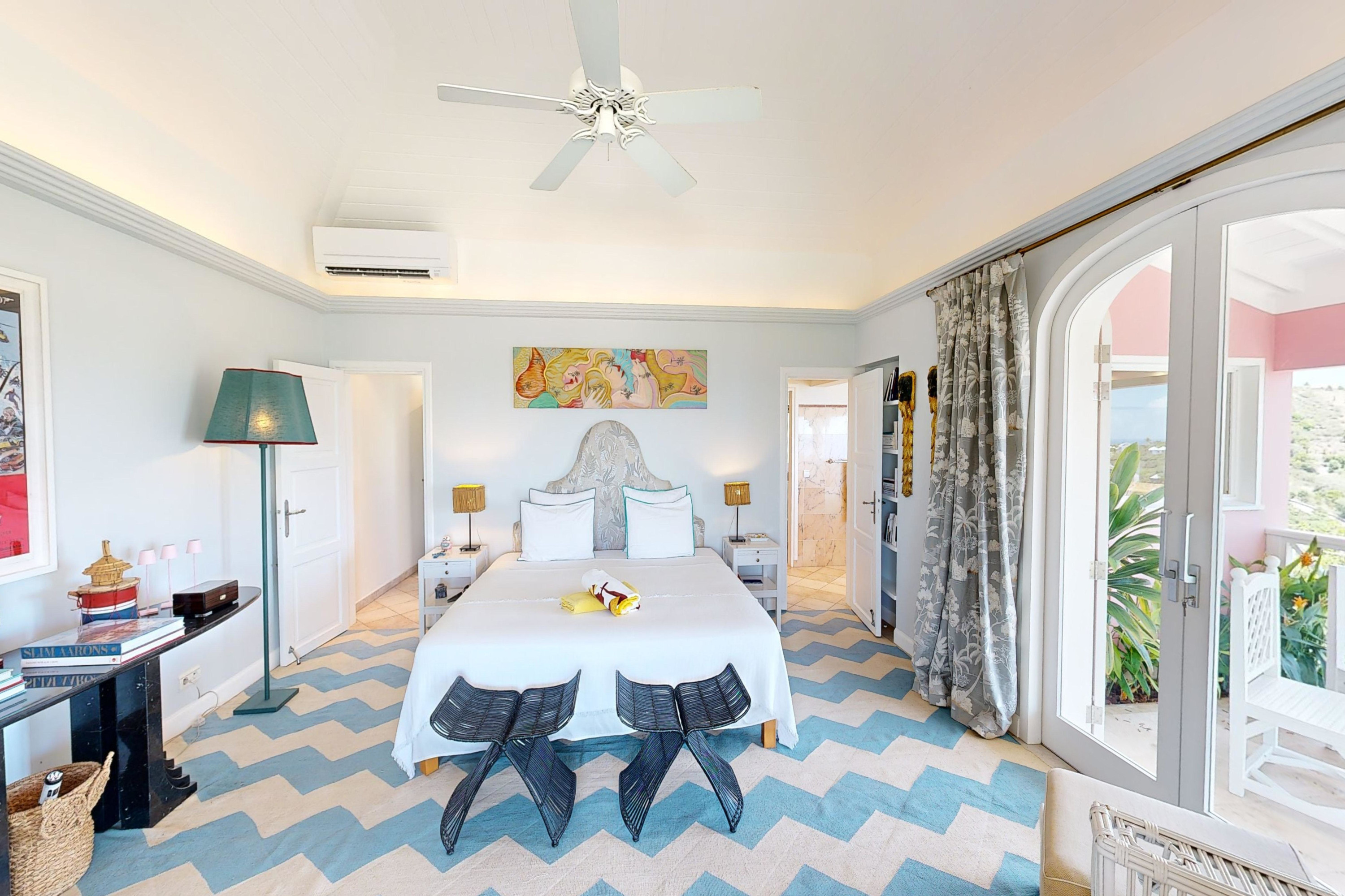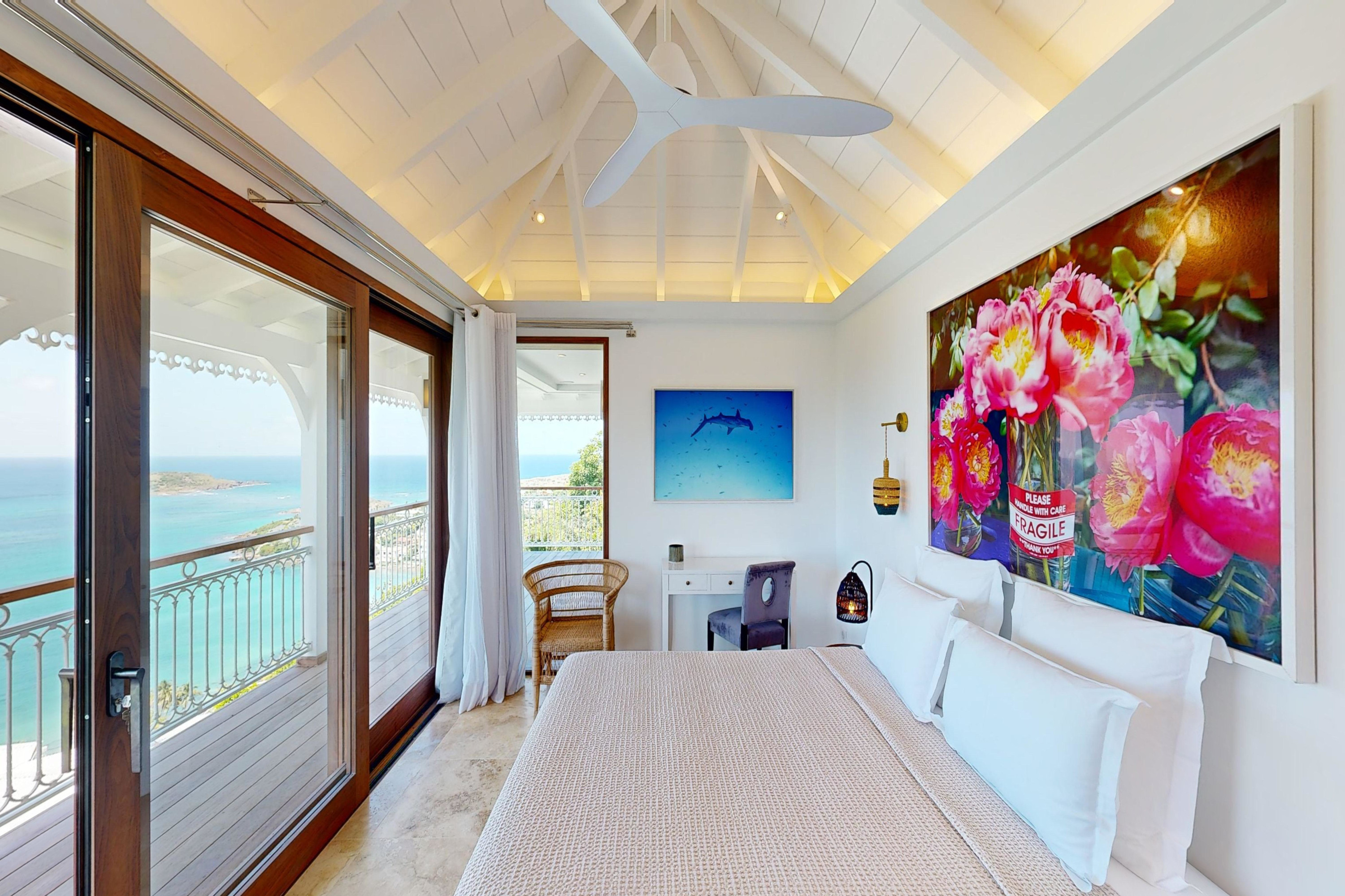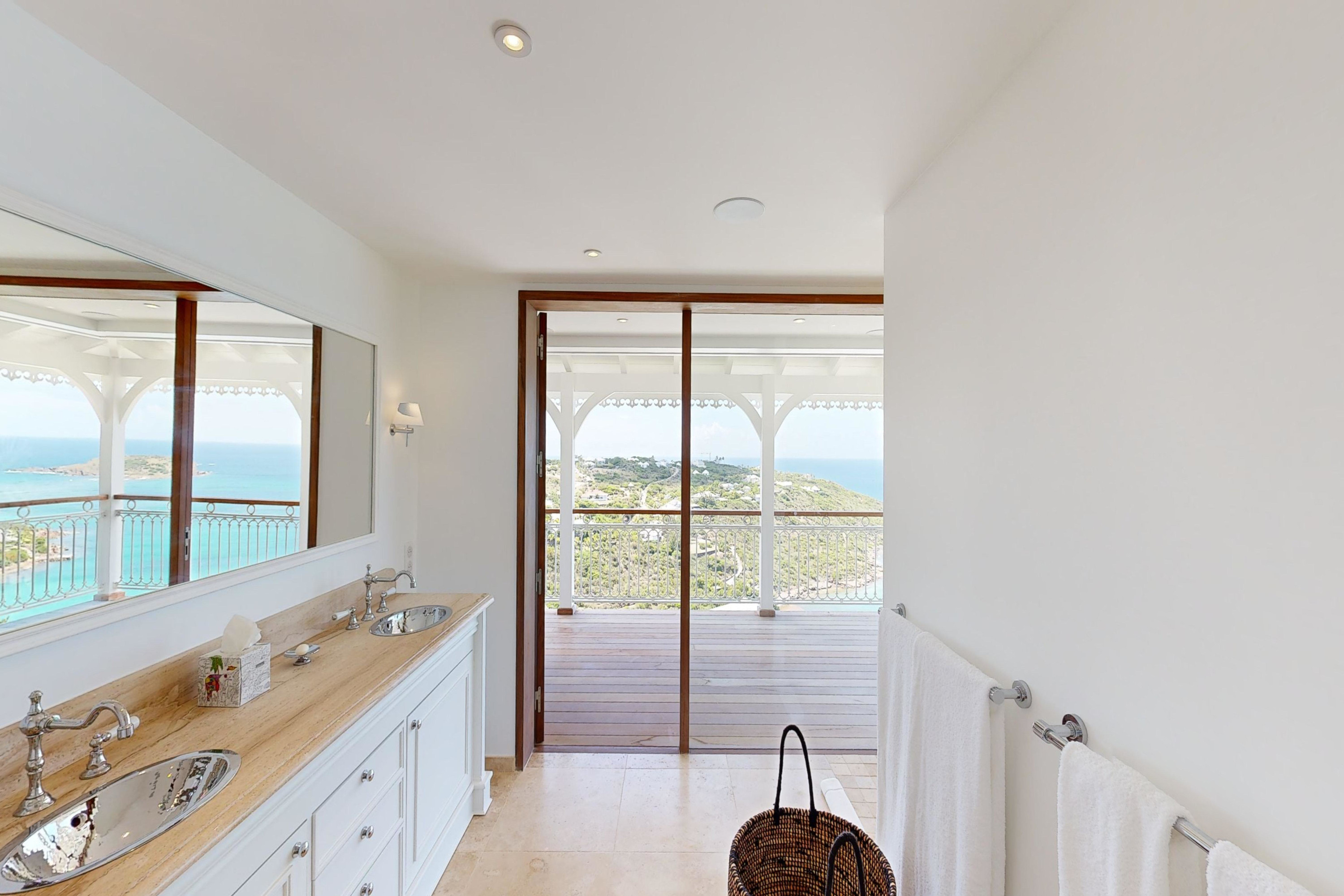 Villa Mustique, (villa code: WV MUS) is a recently-renovated 6-bedroom villa that seamlessly blends classic St. Barts island style with contemporary comforts. Secluded and serene, Villa Mustique is generously spacious and rests in the scenic locale of Marigot, offering breathtaking views of the bay and protection from the lush hillside. Whether indoors or on the expansive terrace, the villa provides ample room for groups of friends or extended families seeking both togetherness and personal space. Upon reaching the villa's entrance through a large parking area, guests are welcomed into the inviting living area. This cozy space features a collection of books, art, and vintage furnishings, creating a warm ambiance. Adjacent to the living area is the well-appointed kitchen, comprising two sections and exhibits a seamless integration of modern appliances and stylish green marble accents. A breakfast bar and a dining table complete the culinary experience. Villa Mustique offers a thoughtful layout. Two of the bedrooms are situated on opposite sides of the living space, and two are downstairs, one behind the other. Three of these bedrooms showcase magnificent ocean views, and each bedroom is accompanied by a spacious ensuite bathroom. The fifth bedroom is in a separate bungalow in the gardens beyond the pool. The sixth bedroom is located on the lower level next to the separate bungalow. The entire house is equipped with air-conditioning for maximum comfort. Adding to the villa's allure is the wrap-around veranda enveloping the entire property. The generously sized terrace is replete with inviting features such as a sitting area, a charming gazebo, ample sunbathing spots, a heated pool, and a vast expanse of well-maintained gardens and lush green lawns. Villa Mustique provides a sanctuary of tranquility and beauty for those seeking an idyllic Caribbean getaway. During the Thanksgiving and December holidays, the villa rents at full occupancy rates regardless of how many bedrooms are used. Note: Welcome basket with Champagne, snacks, and sunscreen. Complimentary two massages for an hour OR Two personal training sessions of 1-hour.Please fill out the form to begin your inquiry and we will connect you with a seasoned villa rental specialist.