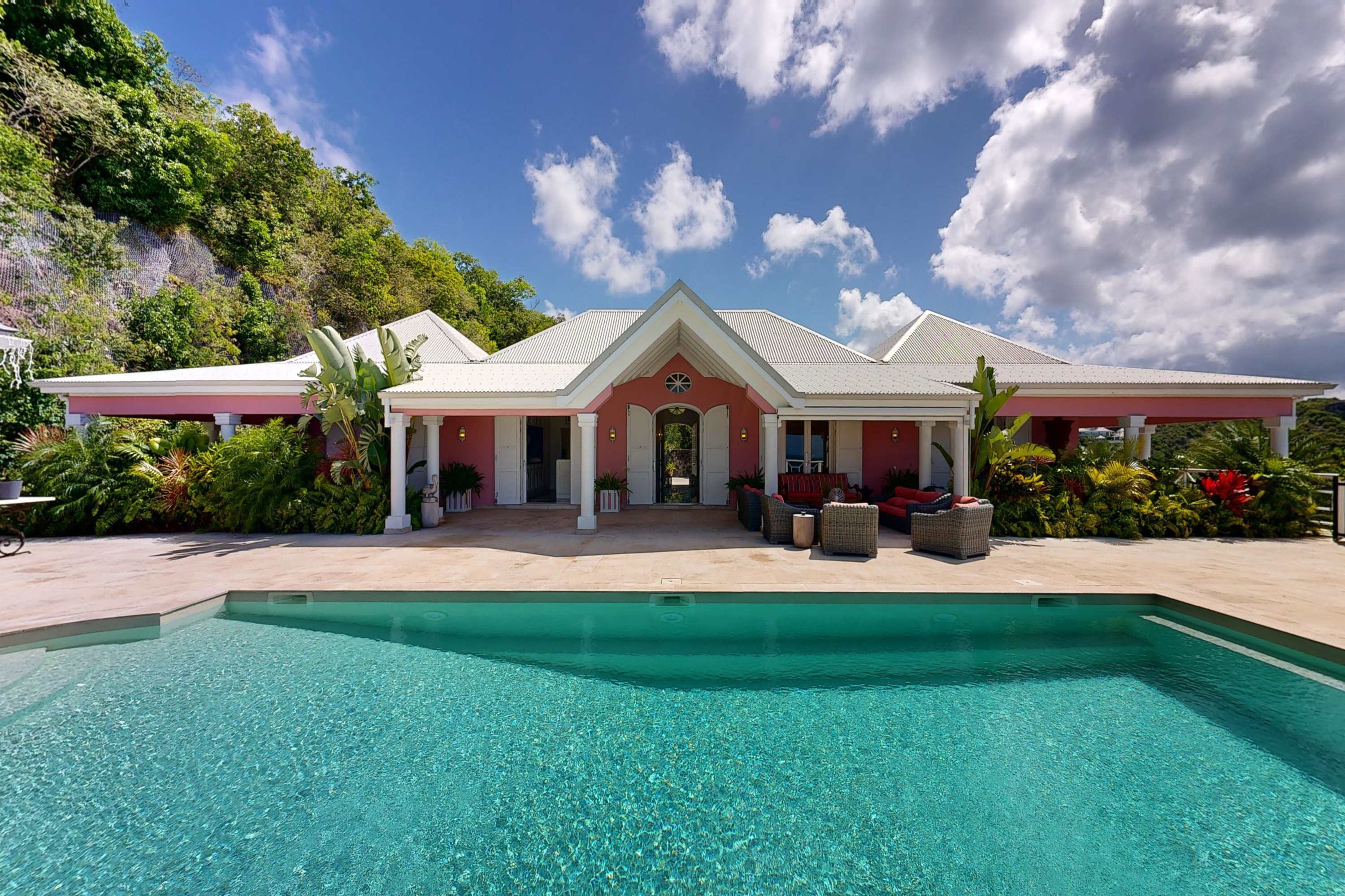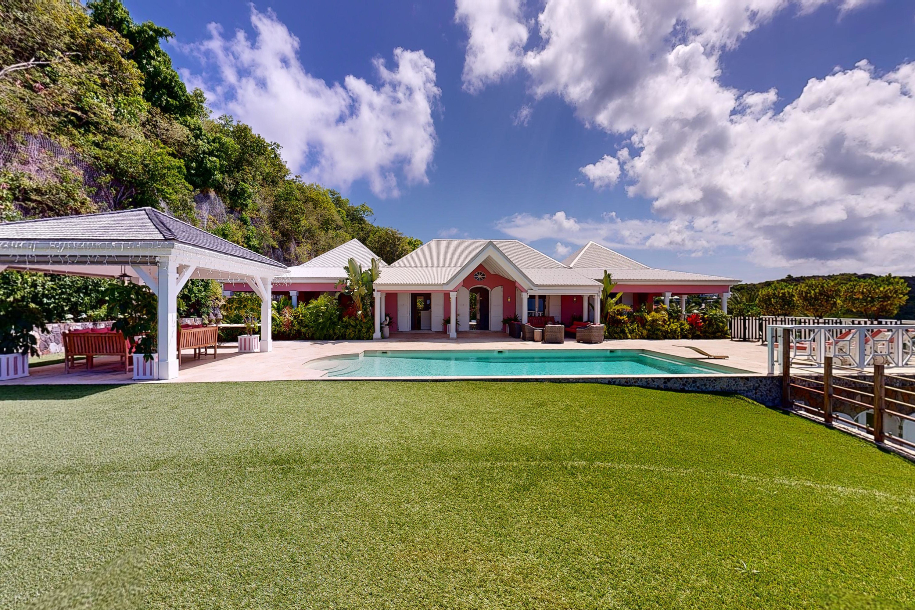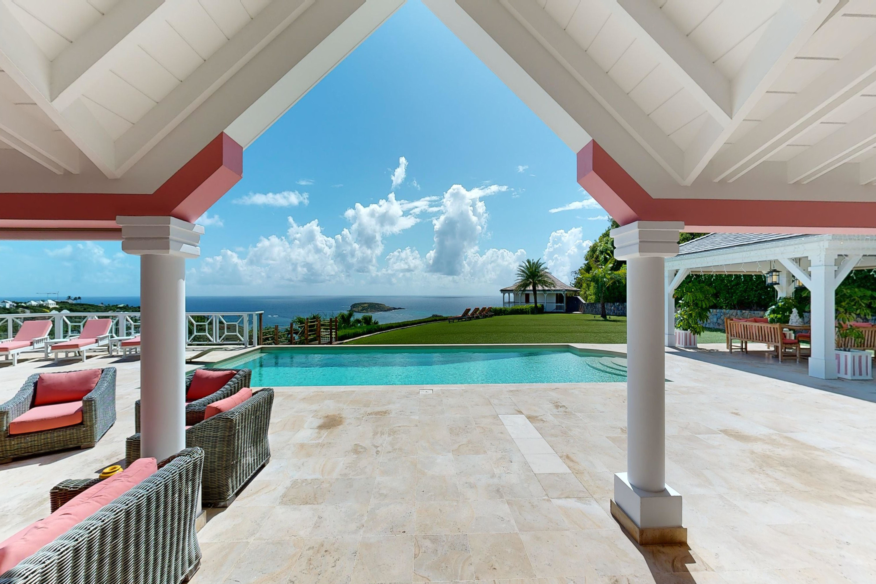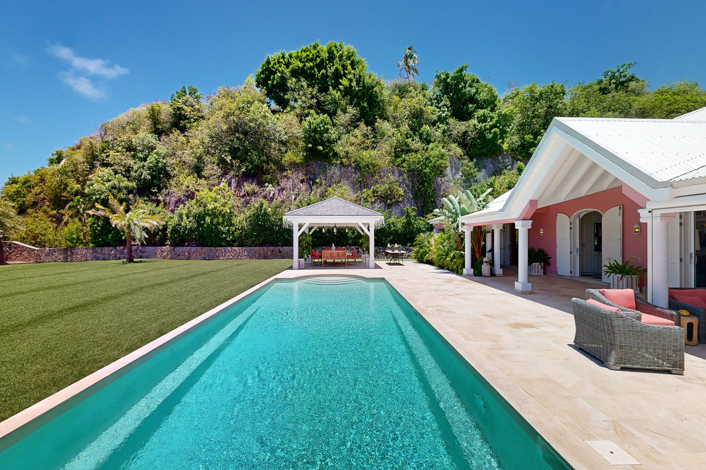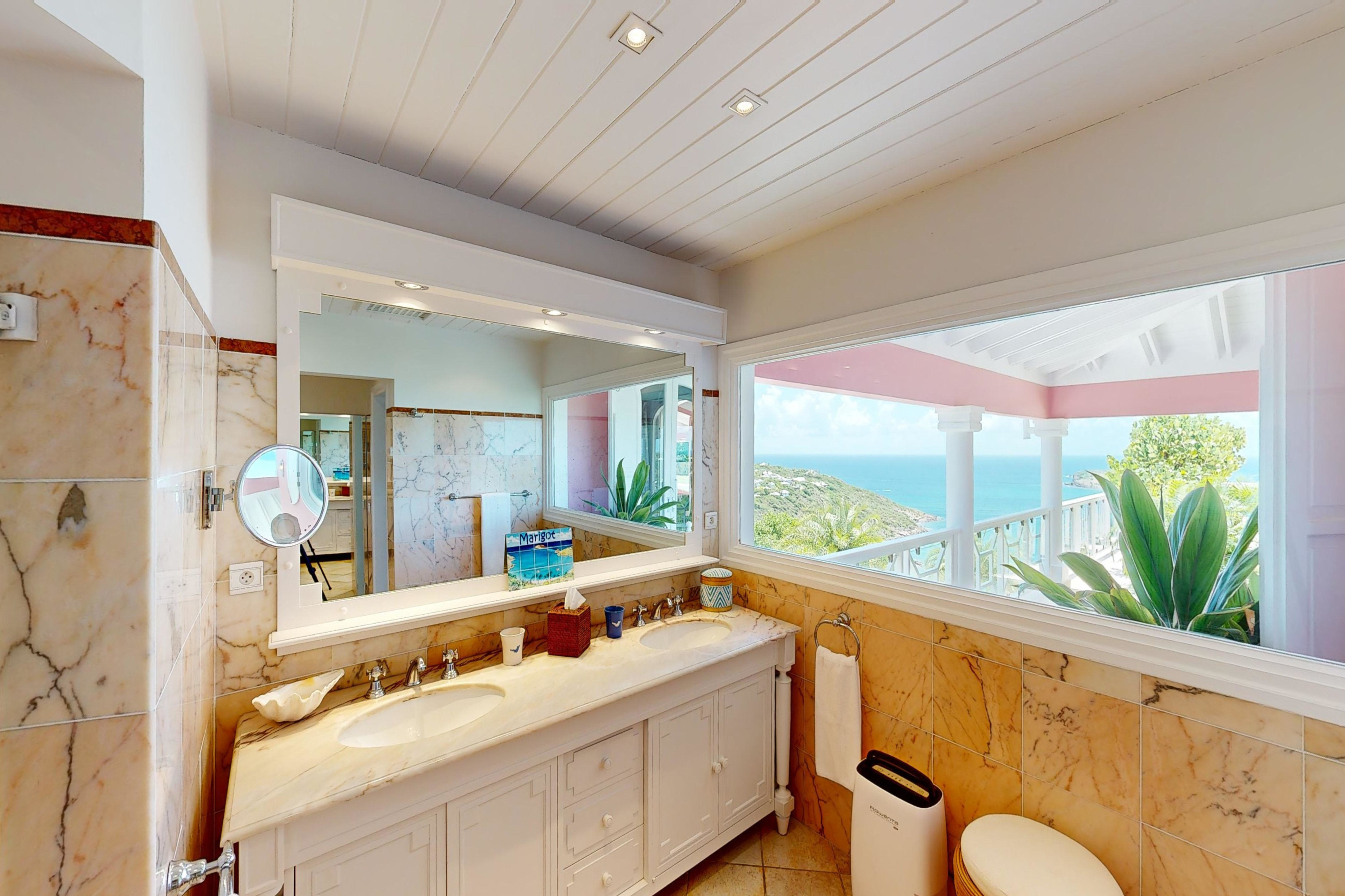 Villa Mustique, (villa code: WV MUS) is a recently-renovated 6-bedroom villa that seamlessly blends classic St. Barts island style with contemporary comforts. Secluded and serene, Villa Mustique is generously spacious and rests in the scenic locale of Marigot, offering breathtaking views of the bay and protection from the lush hillside. Whether indoors or on the expansive terrace, the villa provides ample room for groups of friends or extended families seeking both togetherness and personal space. Upon reaching the villa's entrance through a large parking area, guests are welcomed into the inviting living area. This cozy space features a collection of books, art, and vintage furnishings, creating a warm ambiance. Adjacent to the living area is the well-appointed kitchen, comprising two sections and exhibits a seamless integration of modern appliances and stylish green marble accents. A breakfast bar and a dining table complete the culinary experience. Villa Mustique offers a thoughtful layout. Two of the bedrooms are situated on opposite sides of the living space, and two are downstairs, one behind the other. Three of these bedrooms showcase magnificent ocean views, and each bedroom is accompanied by a spacious ensuite bathroom. The fifth bedroom is in a separate bungalow in the gardens beyond the pool. The sixth bedroom is located on the lower level next to the separate bungalow. The entire house is equipped with air-conditioning for maximum comfort. Adding to the villa's allure is the wrap-around veranda enveloping the entire property. The generously sized terrace is replete with inviting features such as a sitting area, a charming gazebo, ample sunbathing spots, a heated pool, and a vast expanse of well-maintained gardens and lush green lawns. Villa Mustique provides a sanctuary of tranquility and beauty for those seeking an idyllic Caribbean getaway. During the Thanksgiving and December holidays, the villa rents at full occupancy rates regardless of how many bedrooms are used. Note: Welcome basket with Champagne, snacks, and sunscreen. Complimentary two massages for an hour OR Two personal training sessions of 1-hour.Please fill out the form to begin your inquiry and we will connect you with a seasoned villa rental specialist.