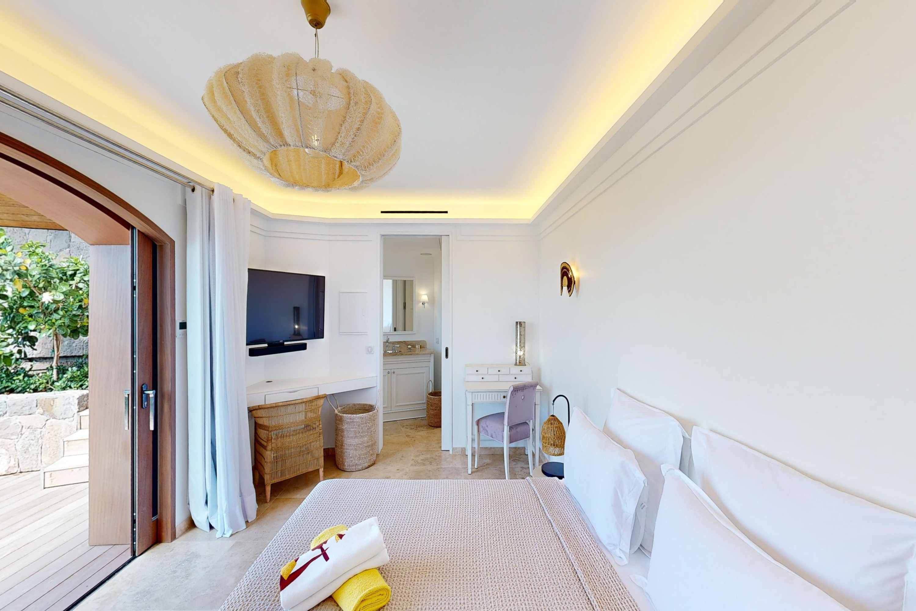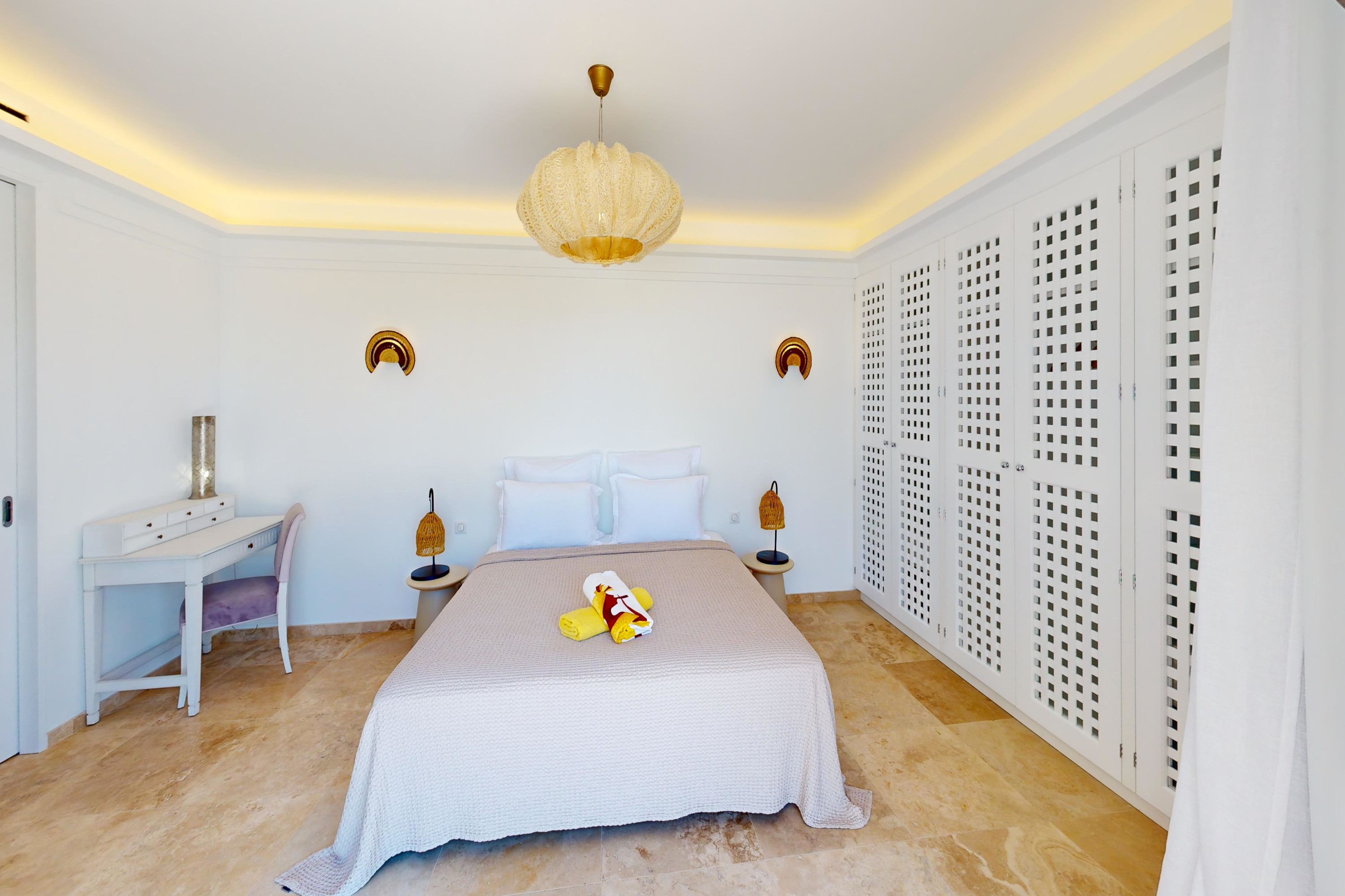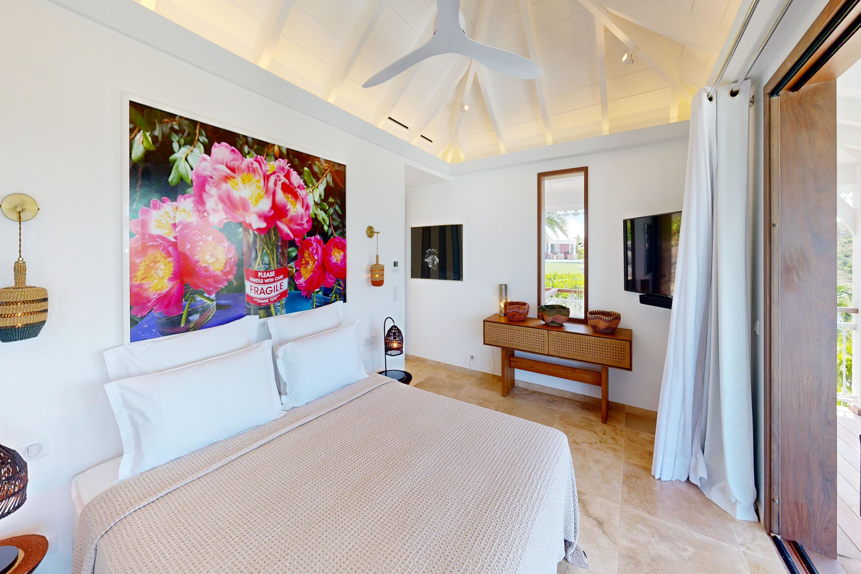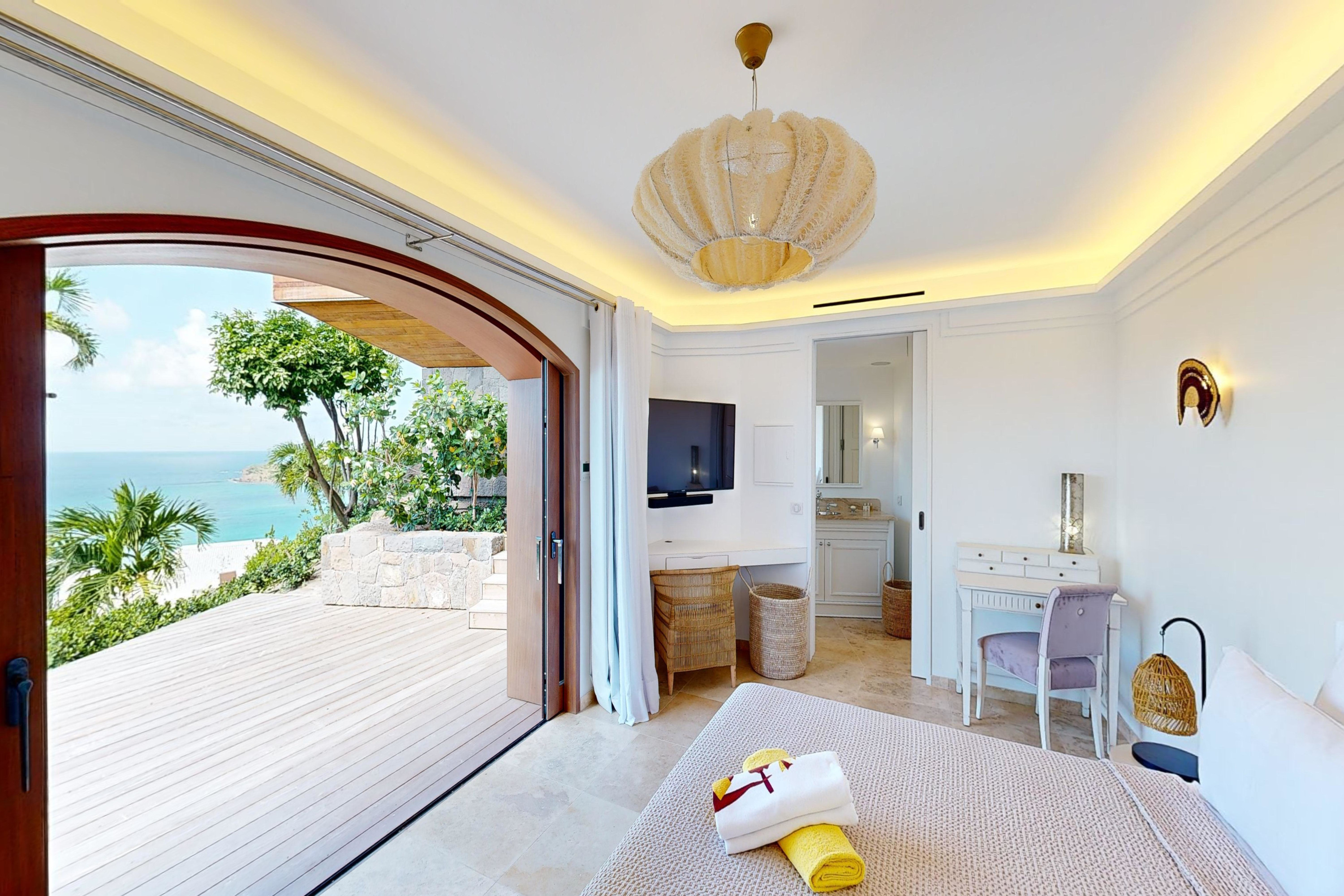 Villa Mustique, (villa code: WV MUS) is a recently-renovated 6-bedroom villa that seamlessly blends classic St. Barts island style with contemporary comforts. Secluded and serene, Villa Mustique is generously spacious and rests in the scenic locale of Marigot, offering breathtaking views of the bay and protection from the lush hillside. Whether indoors or on the expansive terrace, the villa provides ample room for groups of friends or extended families seeking both togetherness and personal space. Upon reaching the villa's entrance through a large parking area, guests are welcomed into the inviting living area. This cozy space features a collection of books, art, and vintage furnishings, creating a warm ambiance. Adjacent to the living area is the well-appointed kitchen, comprising two sections and exhibits a seamless integration of modern appliances and stylish green marble accents. A breakfast bar and a dining table complete the culinary experience. Villa Mustique offers a thoughtful layout. Two of the bedrooms are situated on opposite sides of the living space, and two are downstairs, one behind the other. Three of these bedrooms showcase magnificent ocean views, and each bedroom is accompanied by a spacious ensuite bathroom. The fifth bedroom is in a separate bungalow in the gardens beyond the pool. The sixth bedroom is located on the lower level next to the separate bungalow. The entire house is equipped with air-conditioning for maximum comfort. Adding to the villa's allure is the wrap-around veranda enveloping the entire property. The generously sized terrace is replete with inviting features such as a sitting area, a charming gazebo, ample sunbathing spots, a heated pool, and a vast expanse of well-maintained gardens and lush green lawns. Villa Mustique provides a sanctuary of tranquility and beauty for those seeking an idyllic Caribbean getaway. During the Thanksgiving and December holidays, the villa rents at full occupancy rates regardless of how many bedrooms are used. Note: Welcome basket with Champagne, snacks, and sunscreen. Complimentary two massages for an hour OR Two personal training sessions of 1-hour.Please fill out the form to begin your inquiry and we will connect you with a seasoned villa rental specialist.