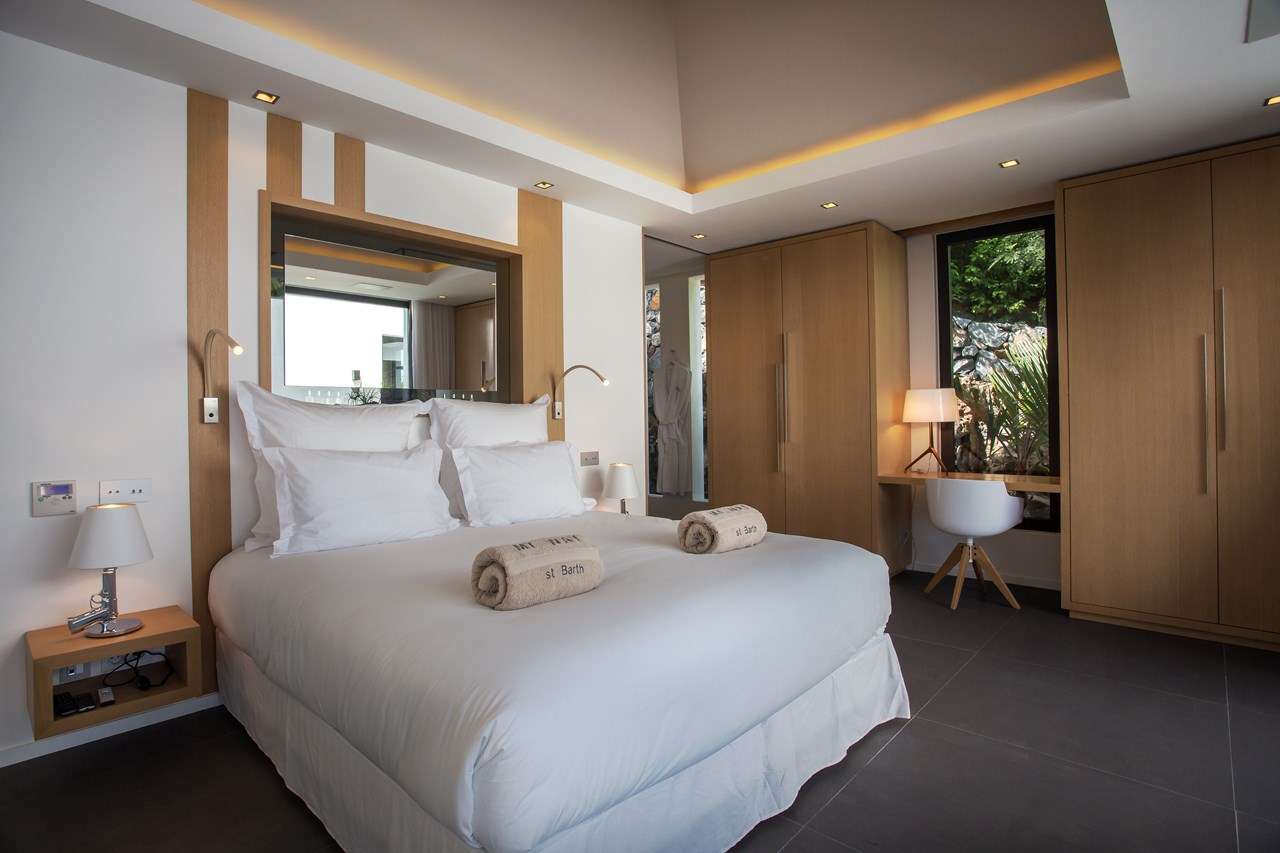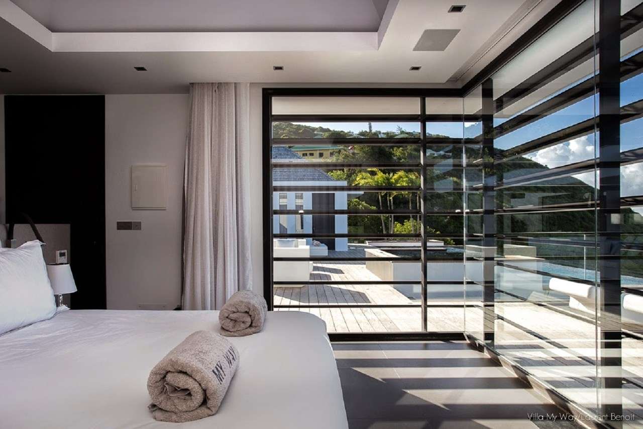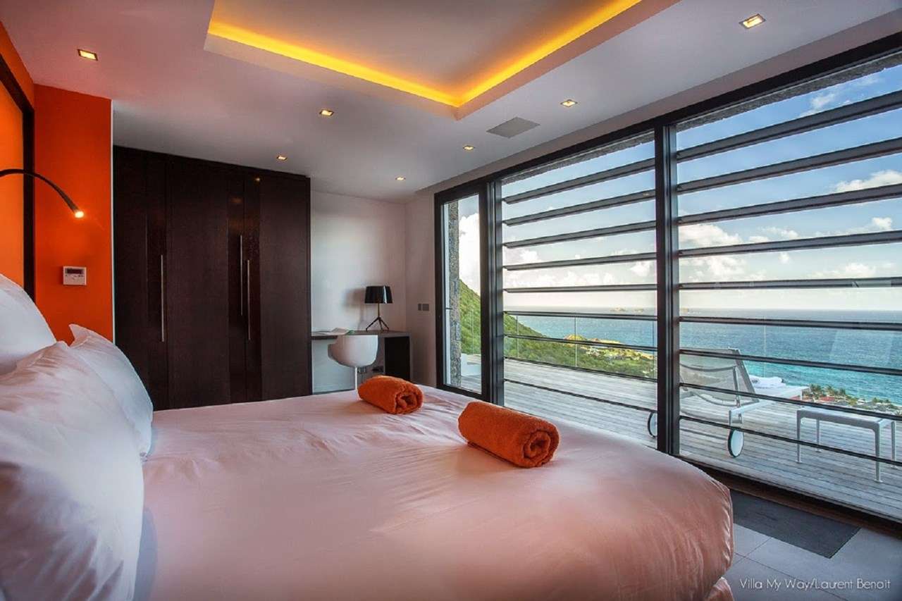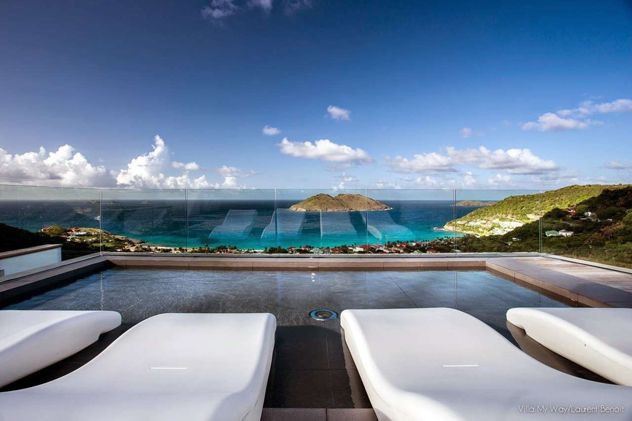 Unplug and unwind at Villa My Way (villa code: WV WAY), an elegant 5-bedroom villa located in Colombier, St. Barts. Stylish and effortlessly cool, this island home is within minutes from beaches and shopping and enjoys sweeping views over the Caribbean and offshore islands. Villa My Way’s name and décor are an homage to Frank Sinatra; expect sleek and slightly retro interiors, a grand piano centerpiece, and photos of the singer adorning the walls. A great mix of modern touches with old-world charms, this glamorous villa feels like a celebrity’s private vacation home – a superb choice for a low-key island escape in St. Barts. Located on the hillside of Colombier, Villa My Way enjoys incredible views of the islands Île Toc Vers, Île Frégate, and Île Bonhomme. Both Flamands and Corossol Beach are a short drive away, and the fantastic restaurants and bars of Gustavia are around 10 minutes by car. Like Sinatra himself, the living spaces of Villa My Way are cool, classy, and smooth. A clean and luxurious design gives way to superb ocean views, while unique touches inside like a grand piano in the living room and customized high-end furnishings give the home some retro charms. The pared-back living room is sleek in contemporary grays and whites, and of course, opens to a built-in bar. A stylish sectional sofa is a comfortable spot to kick back and relax, with a projector letting you immerse yourself in movies. The gourmet, well-equipped kitchen at Villa My Way has the latest appliances, making cooking here a breeze. A backsplash features a quote from Sinatra’s song “My Way”, adding a touch of whimsy to the space. The kitchen can be closed off with a remote-controlled screen or opened to a covered terrace. The latter is where you’ll find the dining table, clad in bright yellow that adds a lively pop of color to the minimalist décor inside Villa My Way. There’s seating for up to 18 guests, making entertaining guests easy – and you’re going to want to show off this villa. After a day of lounging in the villa or exploring St. Barts, there are 5 bedrooms to retreat to inside Villa My Way. Floor-to-ceiling windows let in natural light, casting the island sun across queen-sized beds and his and hers dressing rooms. Retractable TVs emerge from under the floor, offering both U.S. and French satellite channels. All five bedrooms also come with a luxurious ensuite bathroom and blackout curtains for an incredible night’s sleep after a day of activities. Our concierge is happy to help organize some fun on St. Barts during your stay, from restaurant reservations to private wine tastings. Spending time outside at Villa My Way is a great way to enjoy a day in St. Barts. You’ll be drawn to the outdoor living space, with a large and comfortable retro couch facing the ocean, letting you get lost in the alluring views. The terrace is home to two separate infinity pools, with fantastic views from the edge of both. You could spend a day dipping in and out of the water between sunbathing sessions. At night, dramatic lighting beautifully showcases the contemporary architecture of this outdoor space. For days on the sand, Flamands Beach is a short drive away. This sweep of white sand and shimmering water is a beautiful spot for swimming. Also nearby is the trailhead for the trek to the remote Colombier Beach. A well-equipped gym with a glass wall faces the sea on the lower level, while an underground garage offers space for 11 vehicles. During the December holidays, the villa rents at the full occupancy rate regardless of how many bedrooms are used.Please fill out the form to begin your inquiry and we will connect you with a seasoned villa rental specialist.