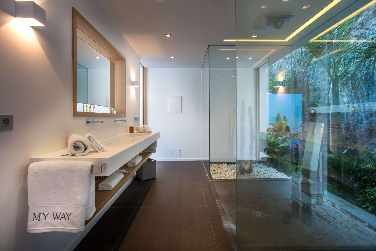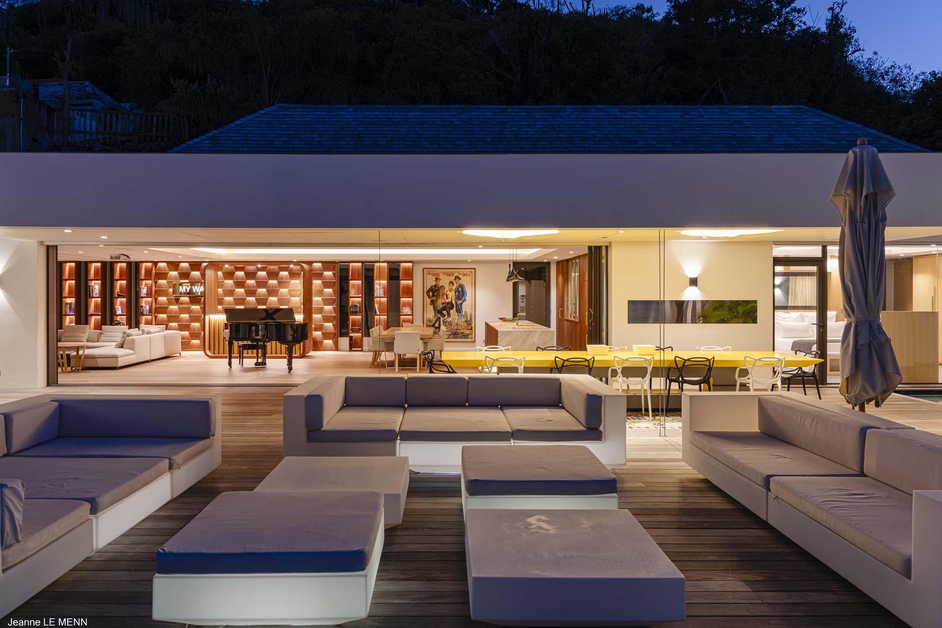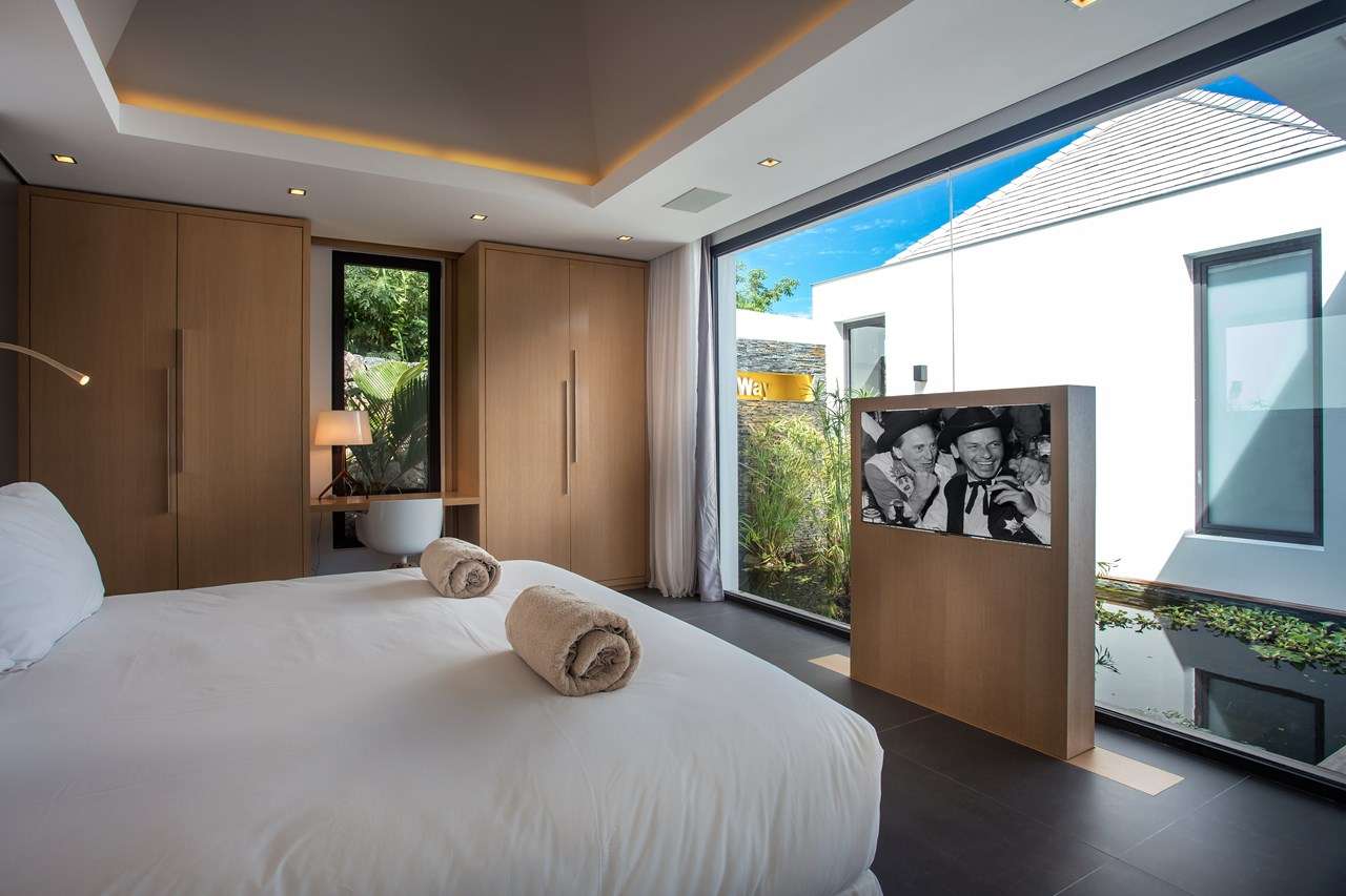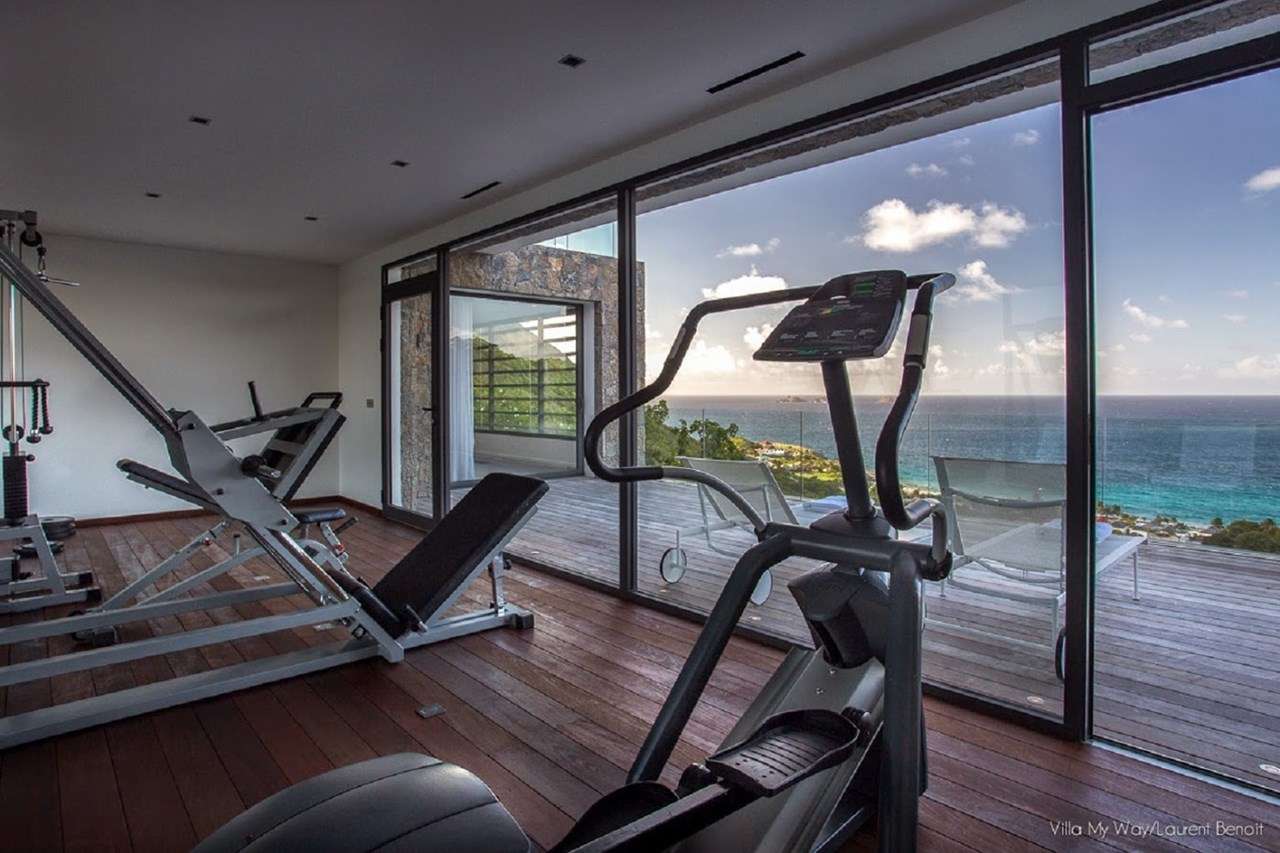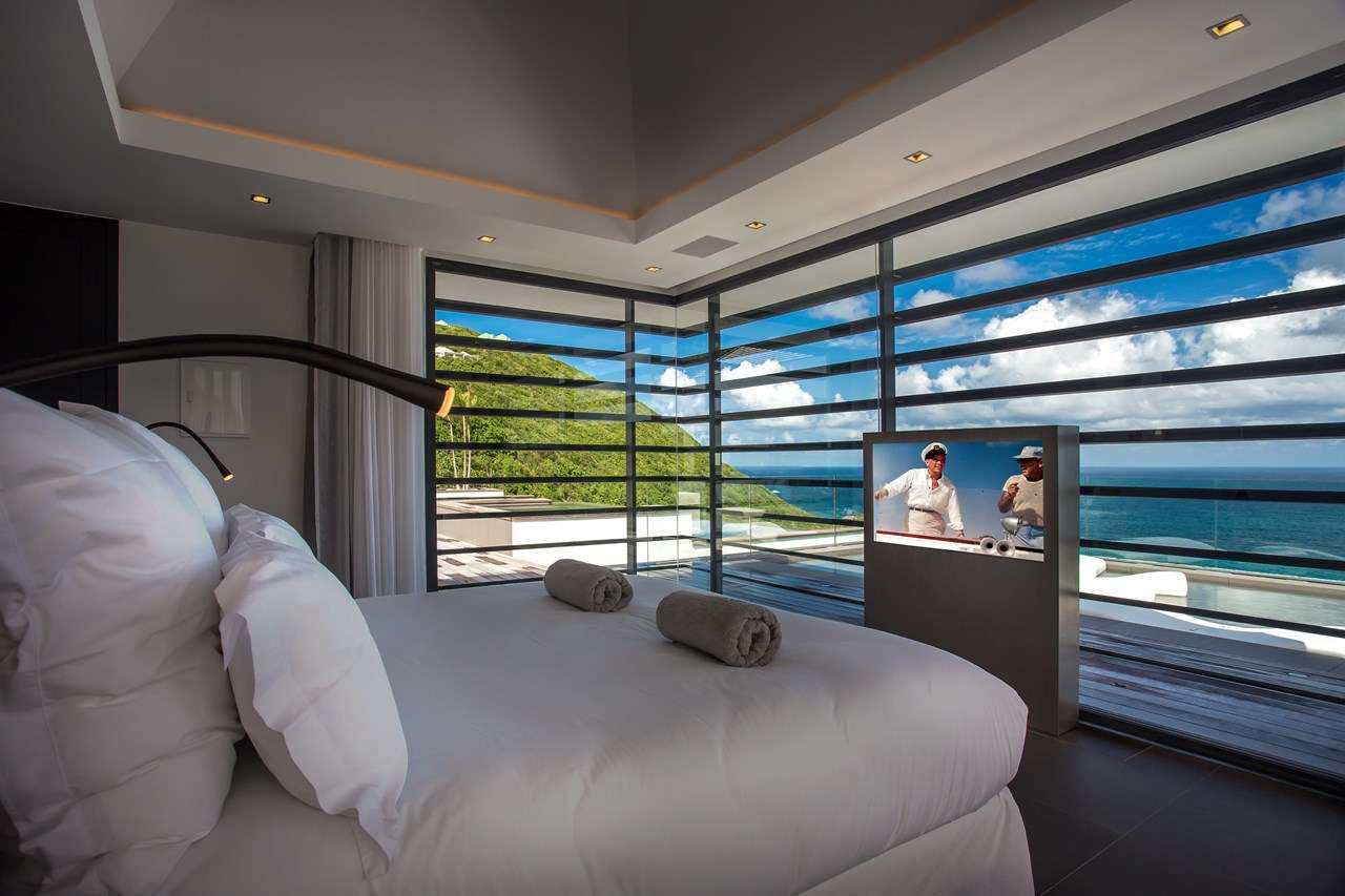 Unplug and unwind at Villa My Way (villa code: WV WAY), an elegant 5-bedroom villa located in Colombier, St. Barts. Stylish and effortlessly cool, this island home is within minutes from beaches and shopping and enjoys sweeping views over the Caribbean and offshore islands. Villa My Way’s name and décor are an homage to Frank Sinatra; expect sleek and slightly retro interiors, a grand piano centerpiece, and photos of the singer adorning the walls. A great mix of modern touches with old-world charms, this glamorous villa feels like a celebrity’s private vacation home – a superb choice for a low-key island escape in St. Barts. Located on the hillside of Colombier, Villa My Way enjoys incredible views of the islands Île Toc Vers, Île Frégate, and Île Bonhomme. Both Flamands and Corossol Beach are a short drive away, and the fantastic restaurants and bars of Gustavia are around 10 minutes by car. Like Sinatra himself, the living spaces of Villa My Way are cool, classy, and smooth. A clean and luxurious design gives way to superb ocean views, while unique touches inside like a grand piano in the living room and customized high-end furnishings give the home some retro charms. The pared-back living room is sleek in contemporary grays and whites, and of course, opens to a built-in bar. A stylish sectional sofa is a comfortable spot to kick back and relax, with a projector letting you immerse yourself in movies. The gourmet, well-equipped kitchen at Villa My Way has the latest appliances, making cooking here a breeze. A backsplash features a quote from Sinatra’s song “My Way”, adding a touch of whimsy to the space. The kitchen can be closed off with a remote-controlled screen or opened to a covered terrace. The latter is where you’ll find the dining table, clad in bright yellow that adds a lively pop of color to the minimalist décor inside Villa My Way. There’s seating for up to 18 guests, making entertaining guests easy – and you’re going to want to show off this villa. After a day of lounging in the villa or exploring St. Barts, there are 5 bedrooms to retreat to inside Villa My Way. Floor-to-ceiling windows let in natural light, casting the island sun across queen-sized beds and his and hers dressing rooms. Retractable TVs emerge from under the floor, offering both U.S. and French satellite channels. All five bedrooms also come with a luxurious ensuite bathroom and blackout curtains for an incredible night’s sleep after a day of activities. Our concierge is happy to help organize some fun on St. Barts during your stay, from restaurant reservations to private wine tastings. Spending time outside at Villa My Way is a great way to enjoy a day in St. Barts. You’ll be drawn to the outdoor living space, with a large and comfortable retro couch facing the ocean, letting you get lost in the alluring views. The terrace is home to two separate infinity pools, with fantastic views from the edge of both. You could spend a day dipping in and out of the water between sunbathing sessions. At night, dramatic lighting beautifully showcases the contemporary architecture of this outdoor space. For days on the sand, Flamands Beach is a short drive away. This sweep of white sand and shimmering water is a beautiful spot for swimming. Also nearby is the trailhead for the trek to the remote Colombier Beach. A well-equipped gym with a glass wall faces the sea on the lower level, while an underground garage offers space for 11 vehicles. During the December holidays, the villa rents at the full occupancy rate regardless of how many bedrooms are used.Please fill out the form to begin your inquiry and we will connect you with a seasoned villa rental specialist.