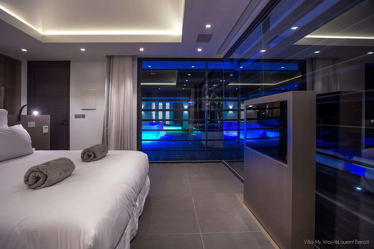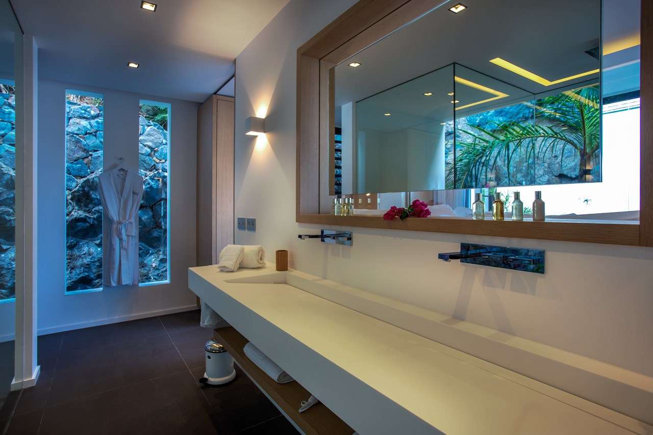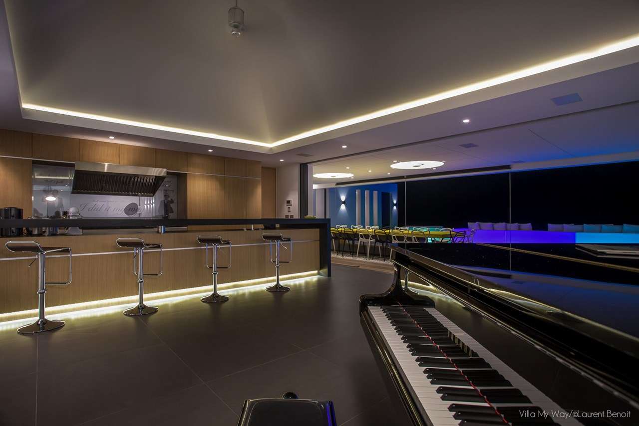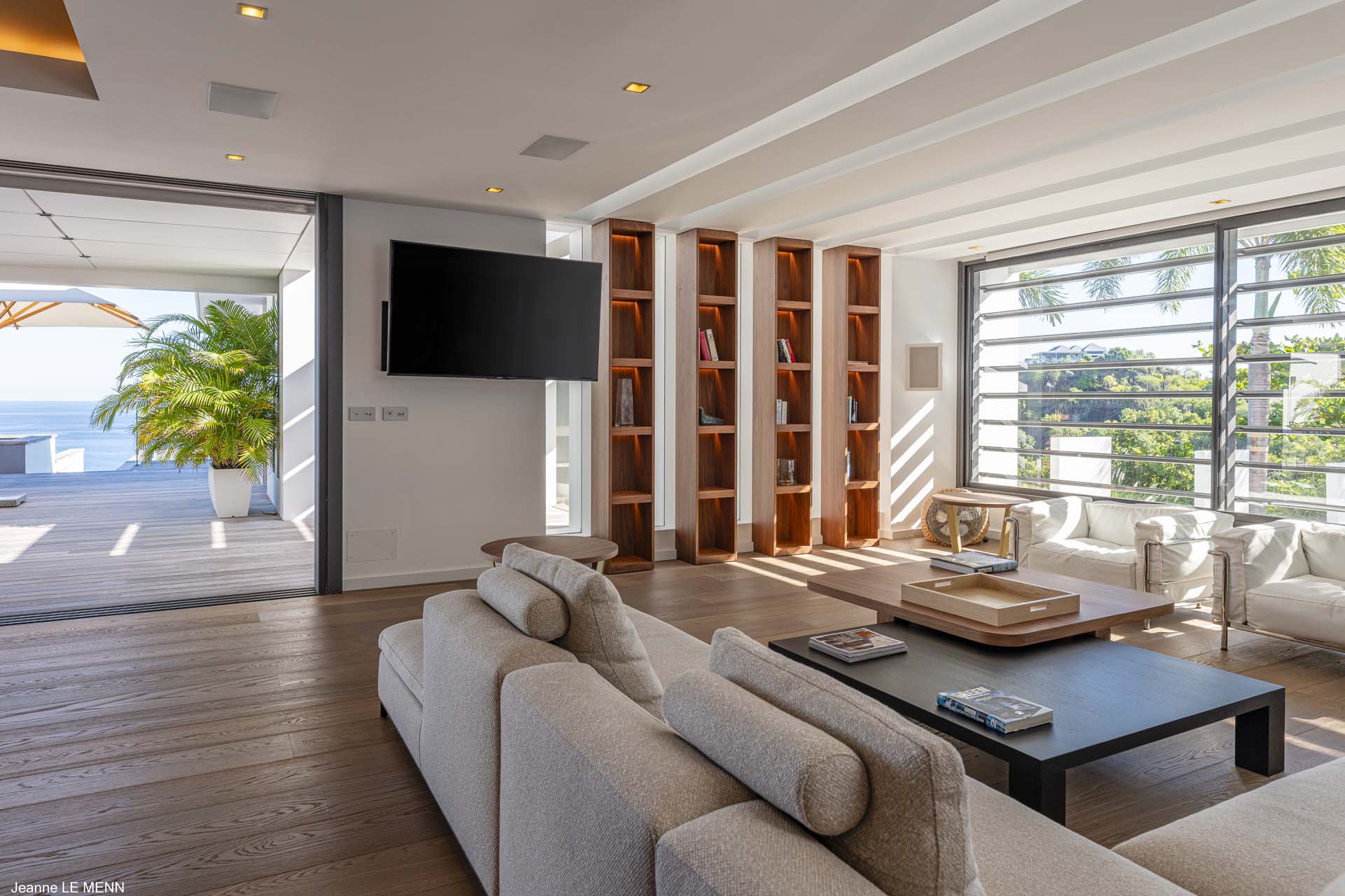 Unplug and unwind at Villa My Way (villa code: WV WAY), an elegant 5-bedroom villa located in Colombier, St. Barts. Stylish and effortlessly cool, this island home is within minutes from beaches and shopping and enjoys sweeping views over the Caribbean and offshore islands. Villa My Way’s name and décor are an homage to Frank Sinatra; expect sleek and slightly retro interiors, a grand piano centerpiece, and photos of the singer adorning the walls. A great mix of modern touches with old-world charms, this glamorous villa feels like a celebrity’s private vacation home – a superb choice for a low-key island escape in St. Barts. Located on the hillside of Colombier, Villa My Way enjoys incredible views of the islands Île Toc Vers, Île Frégate, and Île Bonhomme. Both Flamands and Corossol Beach are a short drive away, and the fantastic restaurants and bars of Gustavia are around 10 minutes by car. Like Sinatra himself, the living spaces of Villa My Way are cool, classy, and smooth. A clean and luxurious design gives way to superb ocean views, while unique touches inside like a grand piano in the living room and customized high-end furnishings give the home some retro charms. The pared-back living room is sleek in contemporary grays and whites, and of course, opens to a built-in bar. A stylish sectional sofa is a comfortable spot to kick back and relax, with a projector letting you immerse yourself in movies. The gourmet, well-equipped kitchen at Villa My Way has the latest appliances, making cooking here a breeze. A backsplash features a quote from Sinatra’s song “My Way”, adding a touch of whimsy to the space. The kitchen can be closed off with a remote-controlled screen or opened to a covered terrace. The latter is where you’ll find the dining table, clad in bright yellow that adds a lively pop of color to the minimalist décor inside Villa My Way. There’s seating for up to 18 guests, making entertaining guests easy – and you’re going to want to show off this villa. After a day of lounging in the villa or exploring St. Barts, there are 5 bedrooms to retreat to inside Villa My Way. Floor-to-ceiling windows let in natural light, casting the island sun across queen-sized beds and his and hers dressing rooms. Retractable TVs emerge from under the floor, offering both U.S. and French satellite channels. All five bedrooms also come with a luxurious ensuite bathroom and blackout curtains for an incredible night’s sleep after a day of activities. Our concierge is happy to help organize some fun on St. Barts during your stay, from restaurant reservations to private wine tastings. Spending time outside at Villa My Way is a great way to enjoy a day in St. Barts. You’ll be drawn to the outdoor living space, with a large and comfortable retro couch facing the ocean, letting you get lost in the alluring views. The terrace is home to two separate infinity pools, with fantastic views from the edge of both. You could spend a day dipping in and out of the water between sunbathing sessions. At night, dramatic lighting beautifully showcases the contemporary architecture of this outdoor space. For days on the sand, Flamands Beach is a short drive away. This sweep of white sand and shimmering water is a beautiful spot for swimming. Also nearby is the trailhead for the trek to the remote Colombier Beach. A well-equipped gym with a glass wall faces the sea on the lower level, while an underground garage offers space for 11 vehicles. During the December holidays, the villa rents at the full occupancy rate regardless of how many bedrooms are used.Please fill out the form to begin your inquiry and we will connect you with a seasoned villa rental specialist.
