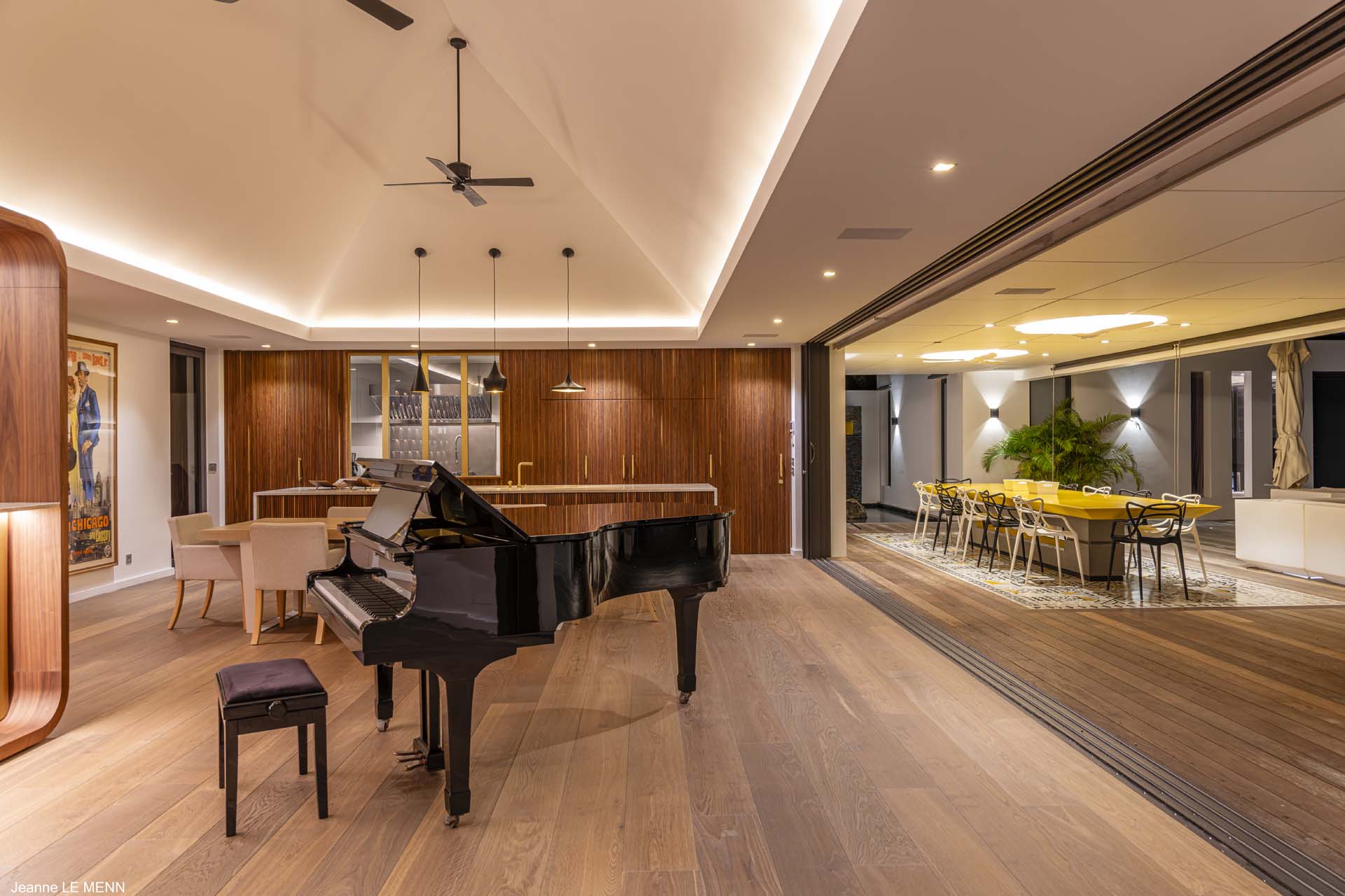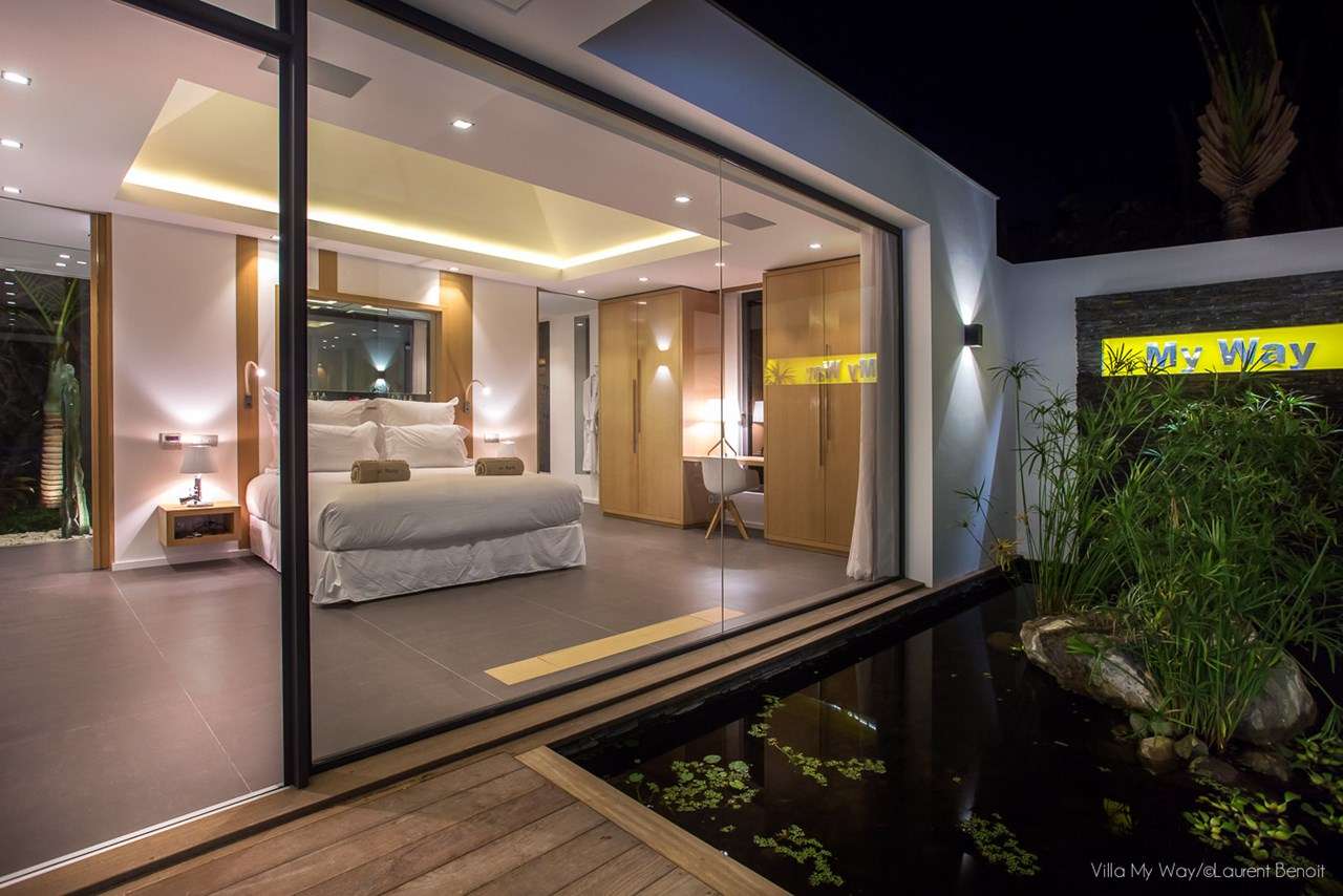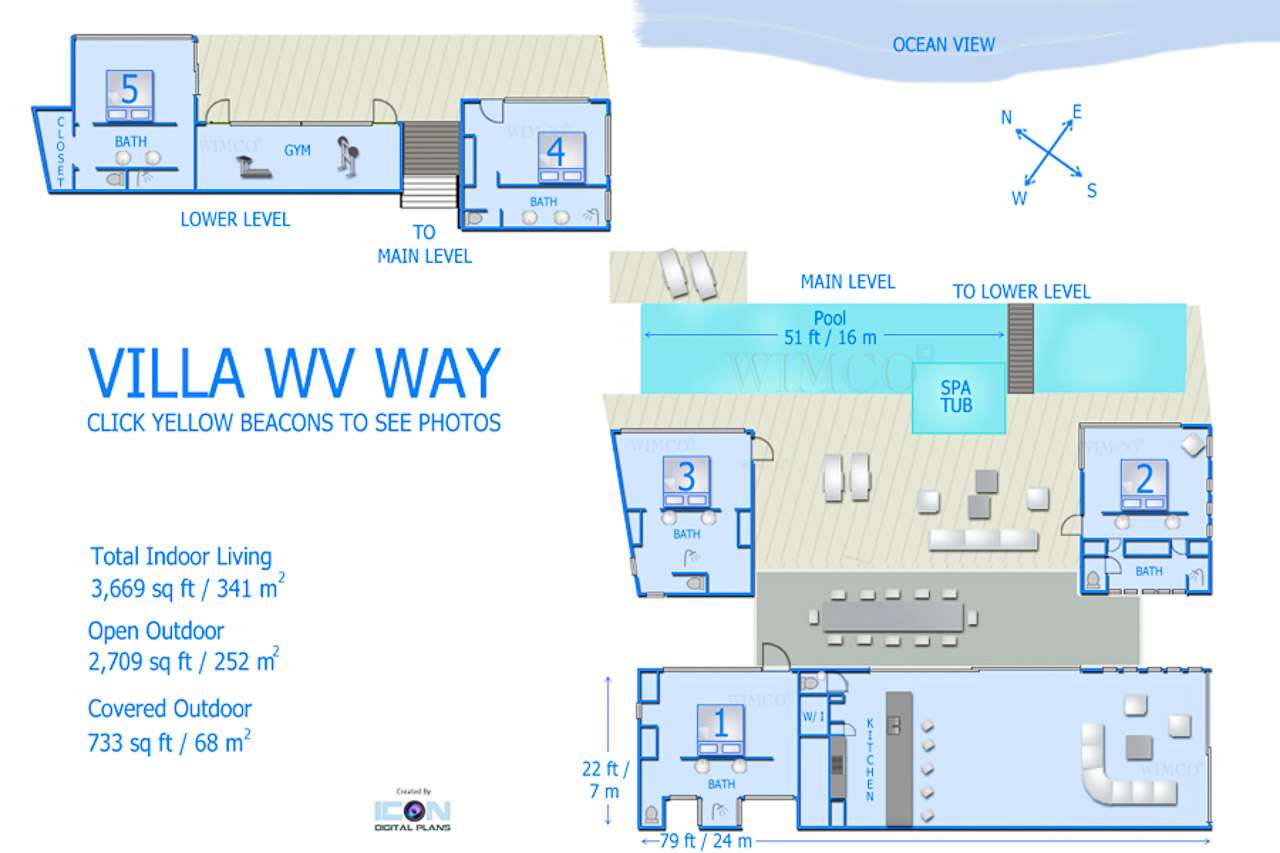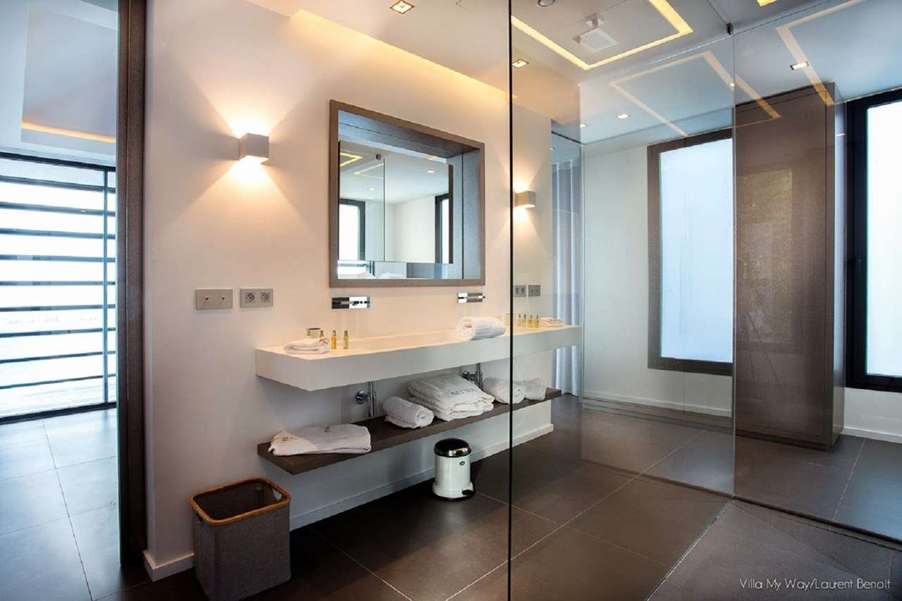 Unplug and unwind at Villa My Way (villa code: WV WAY), an elegant 5-bedroom villa located in Colombier, St. Barts. Stylish and effortlessly cool, this island home is within minutes from beaches and shopping and enjoys sweeping views over the Caribbean and offshore islands. Villa My Way’s name and décor are an homage to Frank Sinatra; expect sleek and slightly retro interiors, a grand piano centerpiece, and photos of the singer adorning the walls. A great mix of modern touches with old-world charms, this glamorous villa feels like a celebrity’s private vacation home – a superb choice for a low-key island escape in St. Barts. Located on the hillside of Colombier, Villa My Way enjoys incredible views of the islands Île Toc Vers, Île Frégate, and Île Bonhomme. Both Flamands and Corossol Beach are a short drive away, and the fantastic restaurants and bars of Gustavia are around 10 minutes by car. Like Sinatra himself, the living spaces of Villa My Way are cool, classy, and smooth. A clean and luxurious design gives way to superb ocean views, while unique touches inside like a grand piano in the living room and customized high-end furnishings give the home some retro charms. The pared-back living room is sleek in contemporary grays and whites, and of course, opens to a built-in bar. A stylish sectional sofa is a comfortable spot to kick back and relax, with a projector letting you immerse yourself in movies. The gourmet, well-equipped kitchen at Villa My Way has the latest appliances, making cooking here a breeze. A backsplash features a quote from Sinatra’s song “My Way”, adding a touch of whimsy to the space. The kitchen can be closed off with a remote-controlled screen or opened to a covered terrace. The latter is where you’ll find the dining table, clad in bright yellow that adds a lively pop of color to the minimalist décor inside Villa My Way. There’s seating for up to 18 guests, making entertaining guests easy – and you’re going to want to show off this villa. After a day of lounging in the villa or exploring St. Barts, there are 5 bedrooms to retreat to inside Villa My Way. Floor-to-ceiling windows let in natural light, casting the island sun across queen-sized beds and his and hers dressing rooms. Retractable TVs emerge from under the floor, offering both U.S. and French satellite channels. All five bedrooms also come with a luxurious ensuite bathroom and blackout curtains for an incredible night’s sleep after a day of activities. Our concierge is happy to help organize some fun on St. Barts during your stay, from restaurant reservations to private wine tastings. Spending time outside at Villa My Way is a great way to enjoy a day in St. Barts. You’ll be drawn to the outdoor living space, with a large and comfortable retro couch facing the ocean, letting you get lost in the alluring views. The terrace is home to two separate infinity pools, with fantastic views from the edge of both. You could spend a day dipping in and out of the water between sunbathing sessions. At night, dramatic lighting beautifully showcases the contemporary architecture of this outdoor space. For days on the sand, Flamands Beach is a short drive away. This sweep of white sand and shimmering water is a beautiful spot for swimming. Also nearby is the trailhead for the trek to the remote Colombier Beach. A well-equipped gym with a glass wall faces the sea on the lower level, while an underground garage offers space for 11 vehicles. During the December holidays, the villa rents at the full occupancy rate regardless of how many bedrooms are used.Please fill out the form to begin your inquiry and we will connect you with a seasoned villa rental specialist.