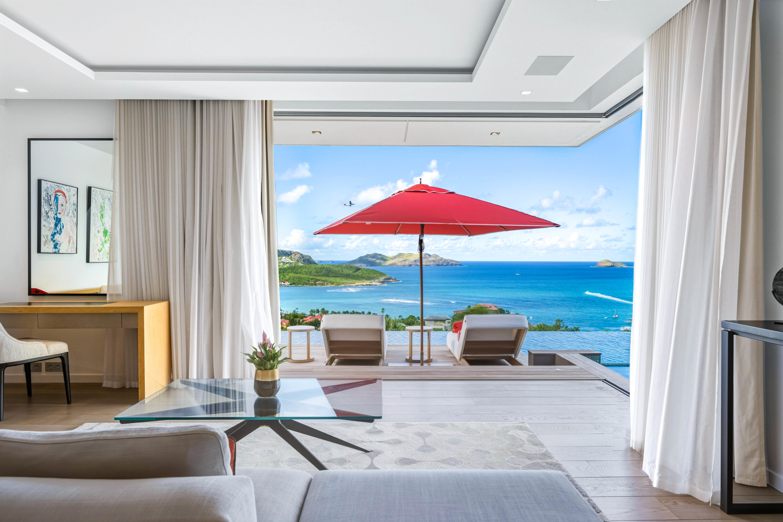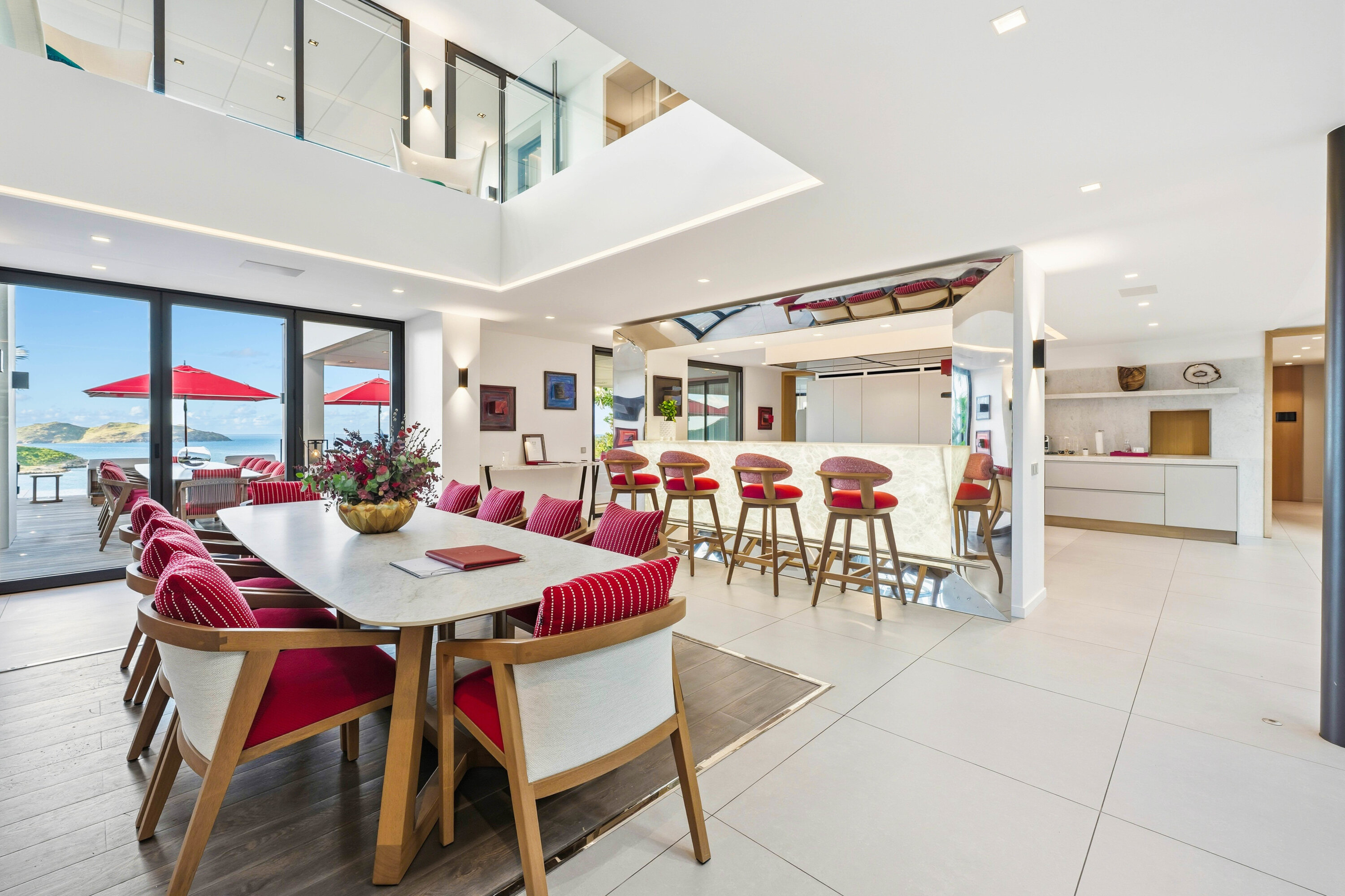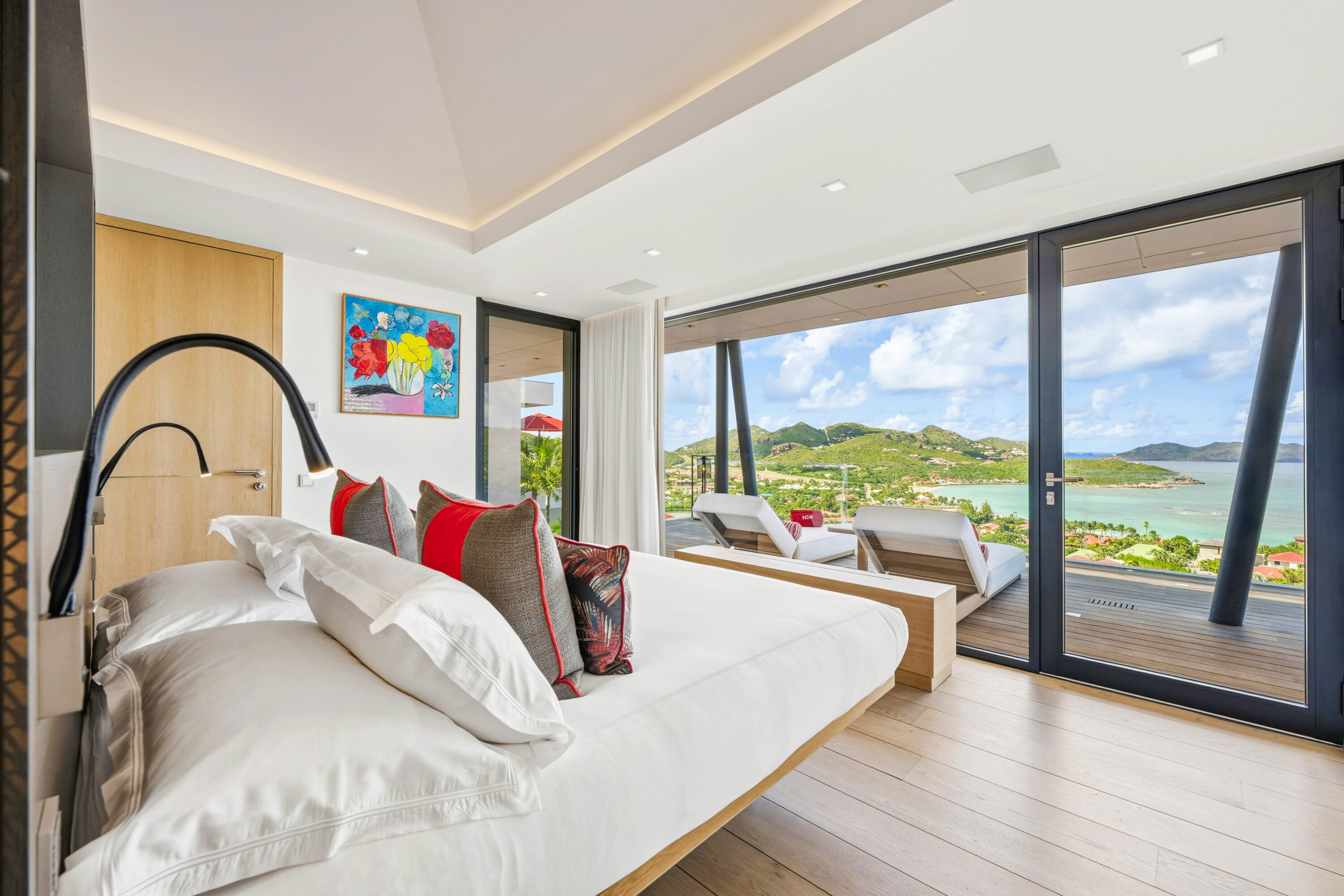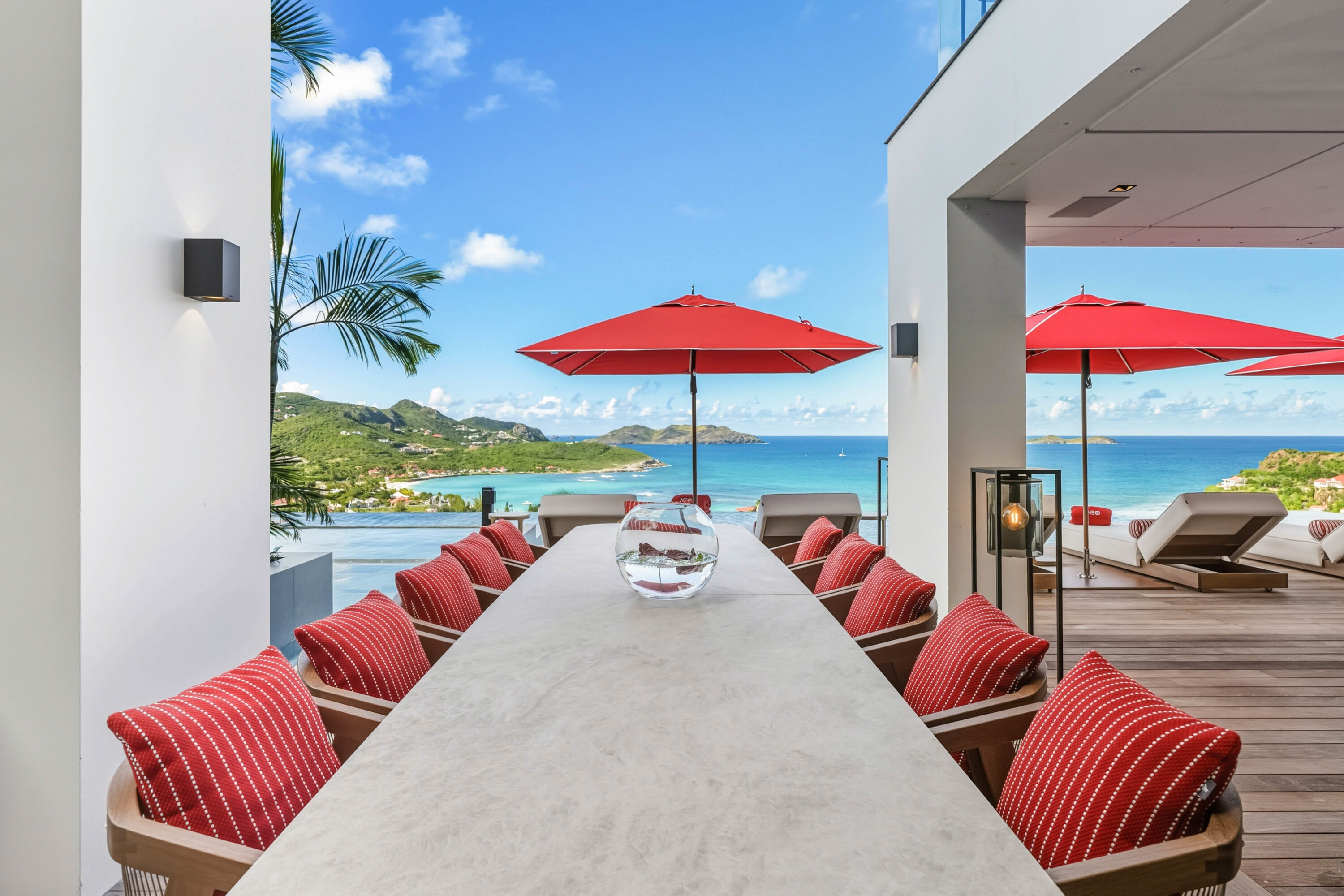 Designed by local architect Patrick Raffeneau, Villa Neo is all about the glamorous life on St. Barts. Abundant space, style, and luxury come together, with soaring ceilings, glass-walled walkways, and large windows opening to expansive views on both sides. Exquisite design, carefully selected furnishings, and eye-catching artwork complete this stunning home.