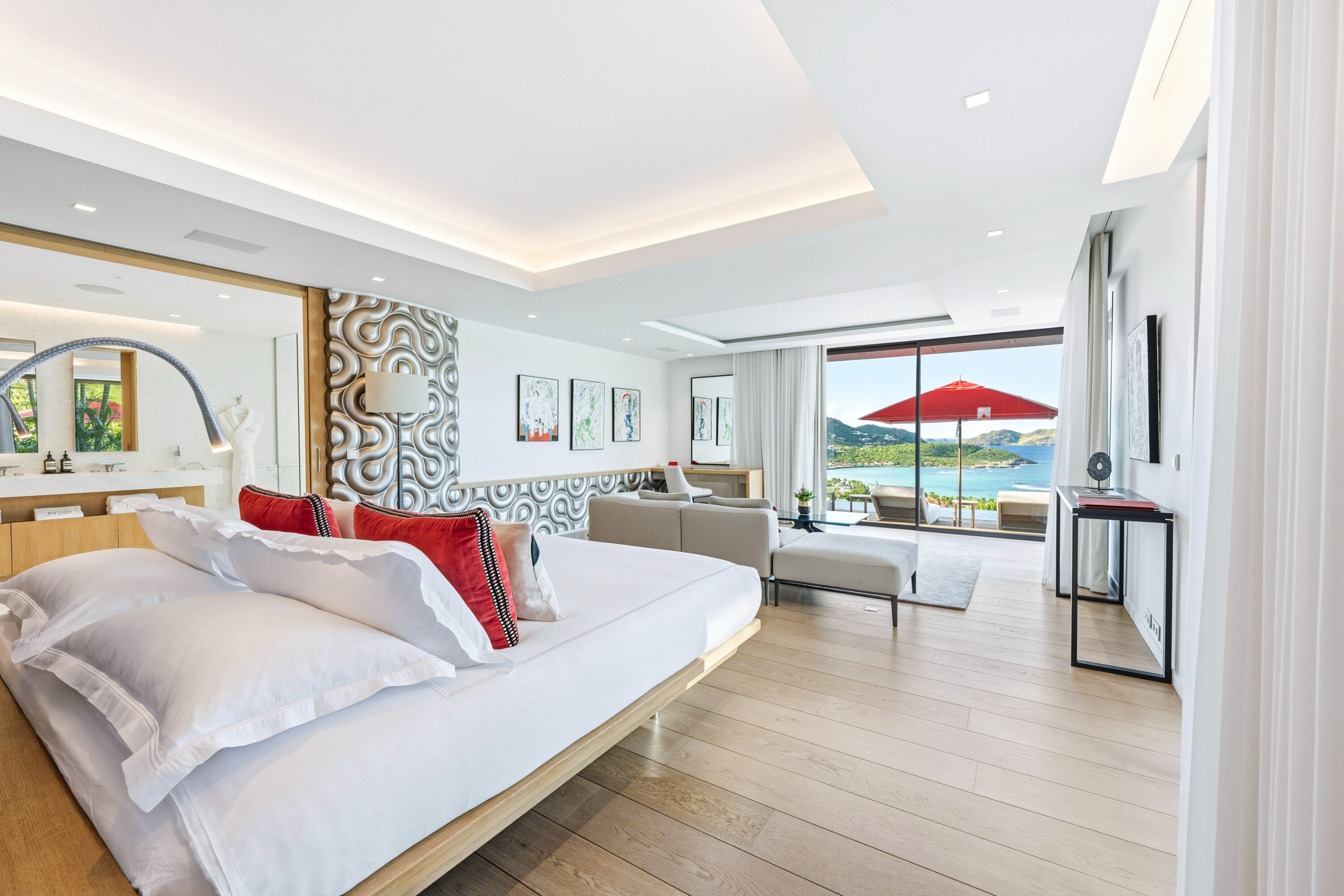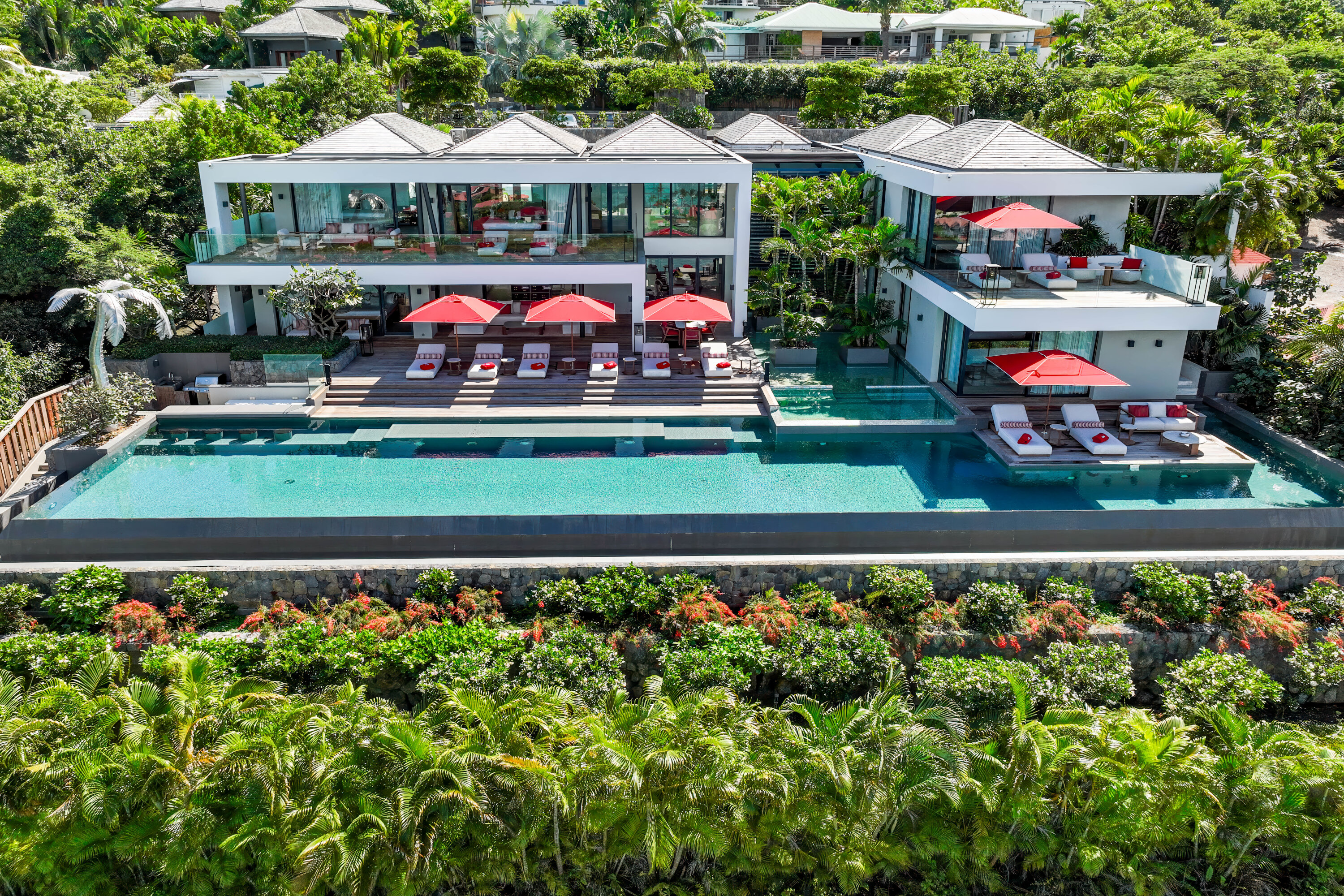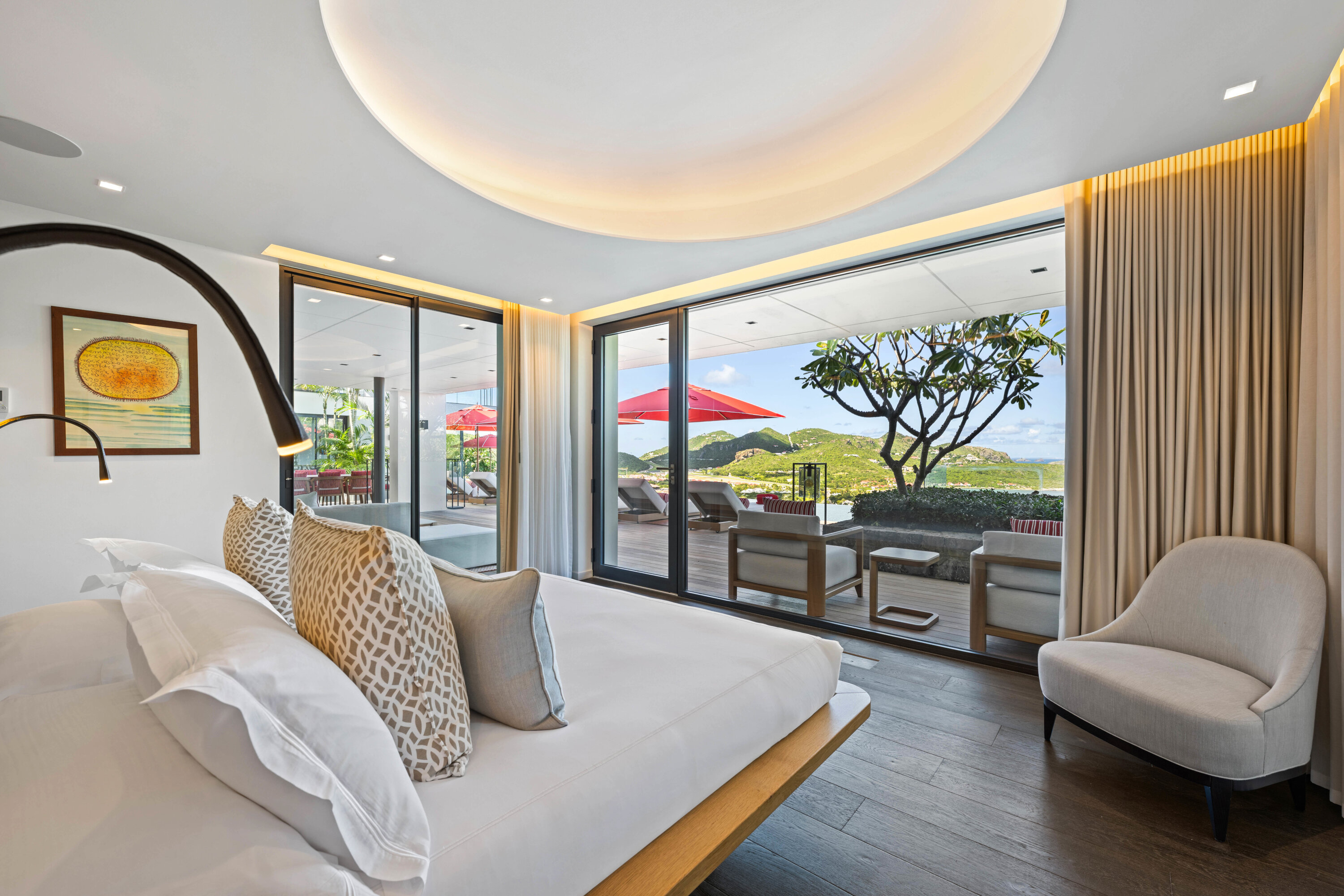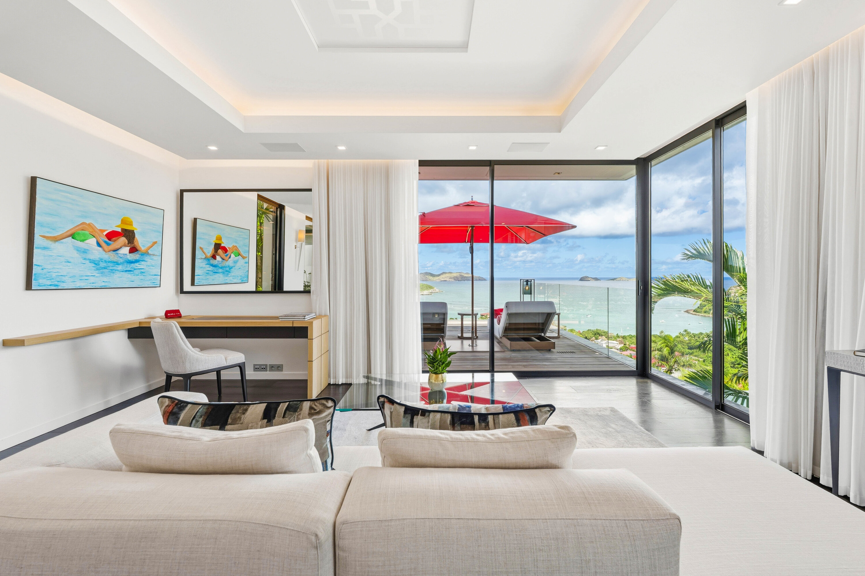 Designed by local architect Patrick Raffeneau, Villa Neo is all about the glamorous life on St. Barts. Abundant space, style, and luxury come together, with soaring ceilings, glass-walled walkways, and large windows opening to expansive views on both sides. Exquisite design, carefully selected furnishings, and eye-catching artwork complete this stunning home.