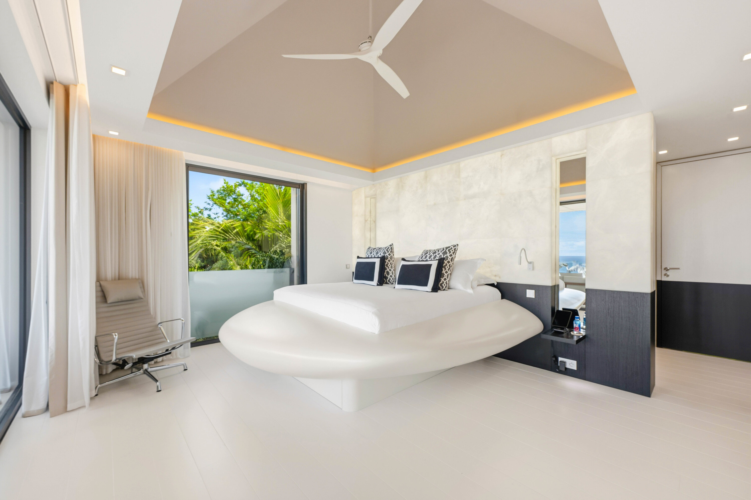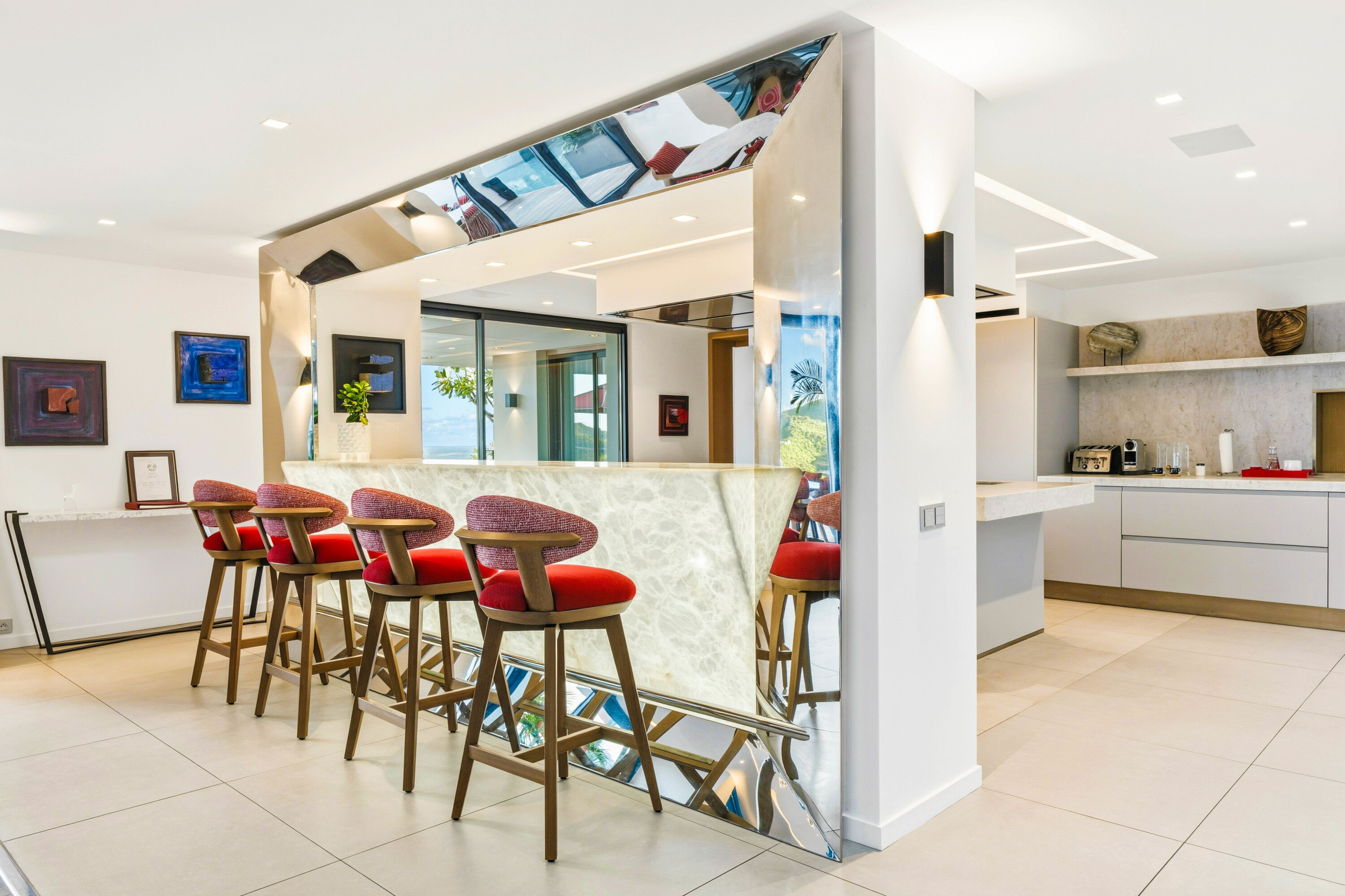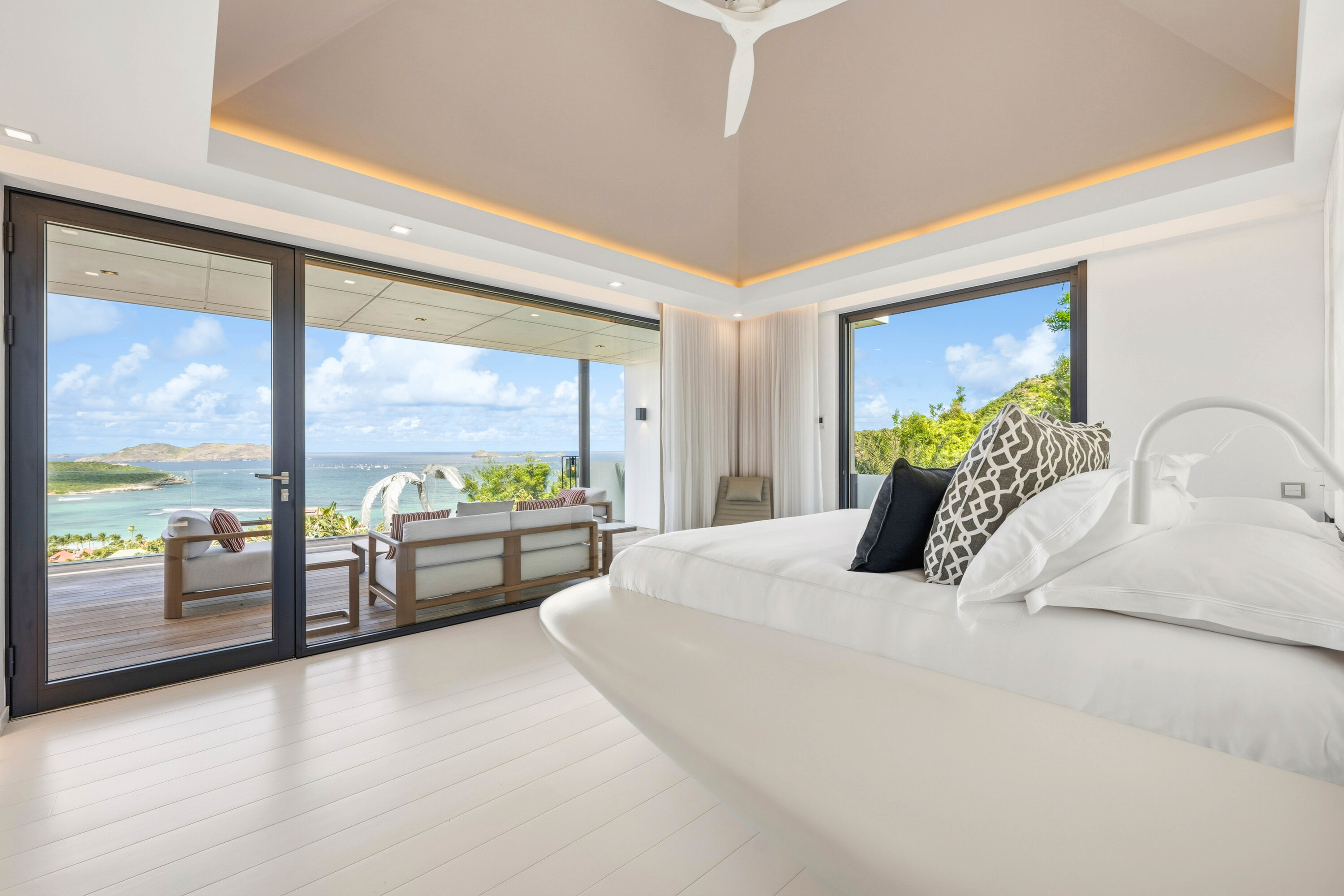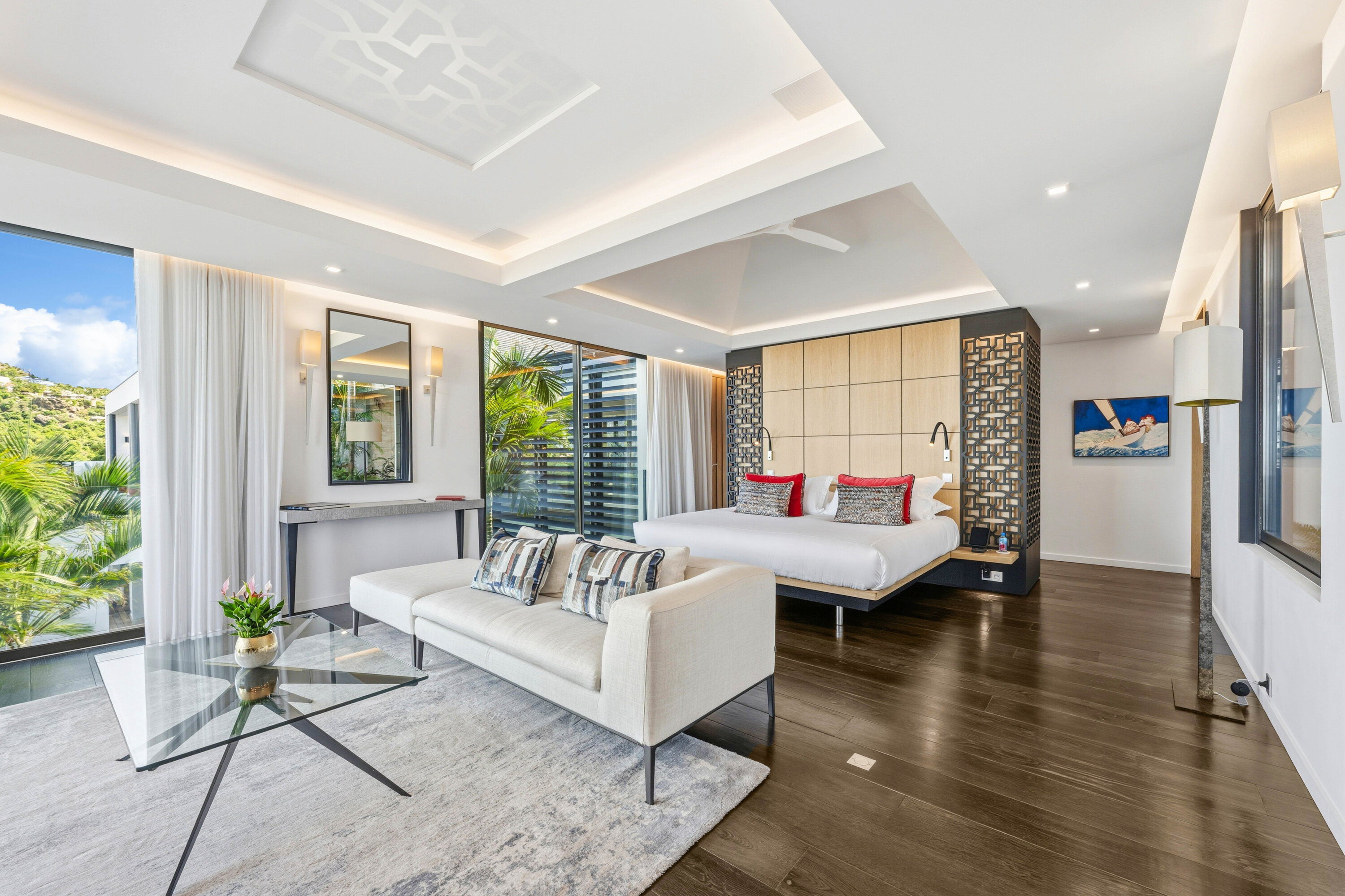 Designed by local architect Patrick Raffeneau, Villa Neo is all about the glamorous life on St. Barts. Abundant space, style, and luxury come together, with soaring ceilings, glass-walled walkways, and large windows opening to expansive views on both sides. Exquisite design, carefully selected furnishings, and eye-catching artwork complete this stunning home.