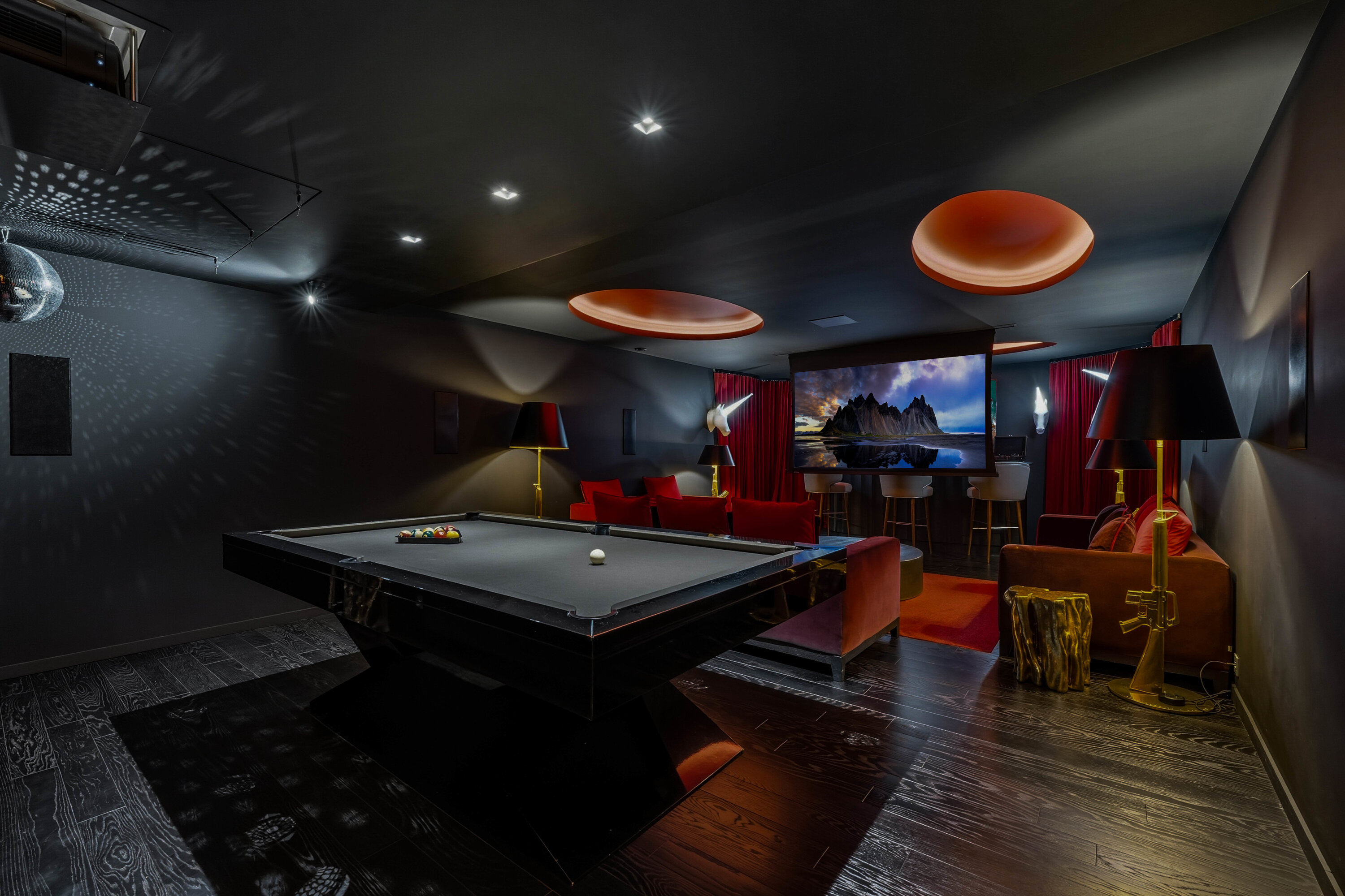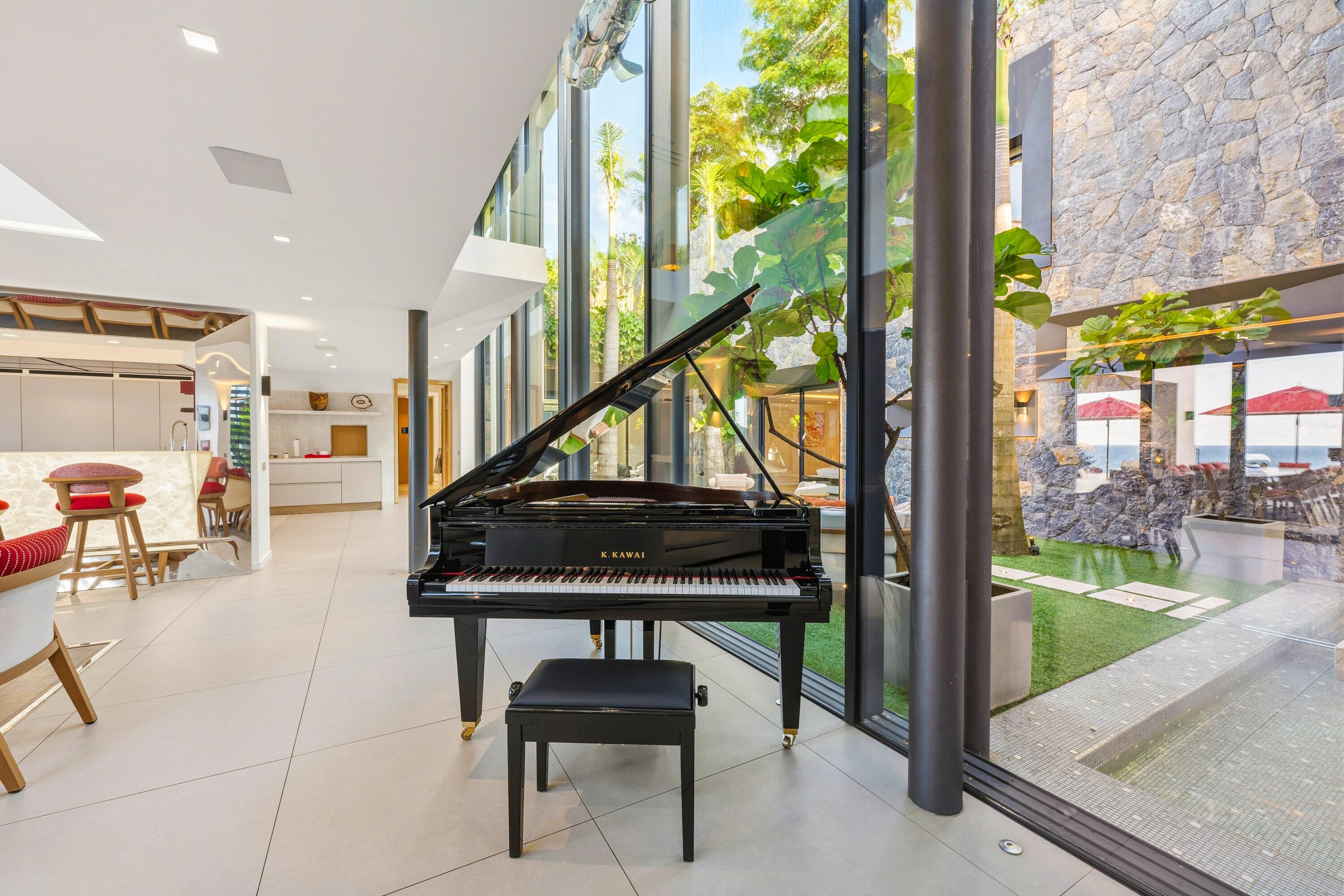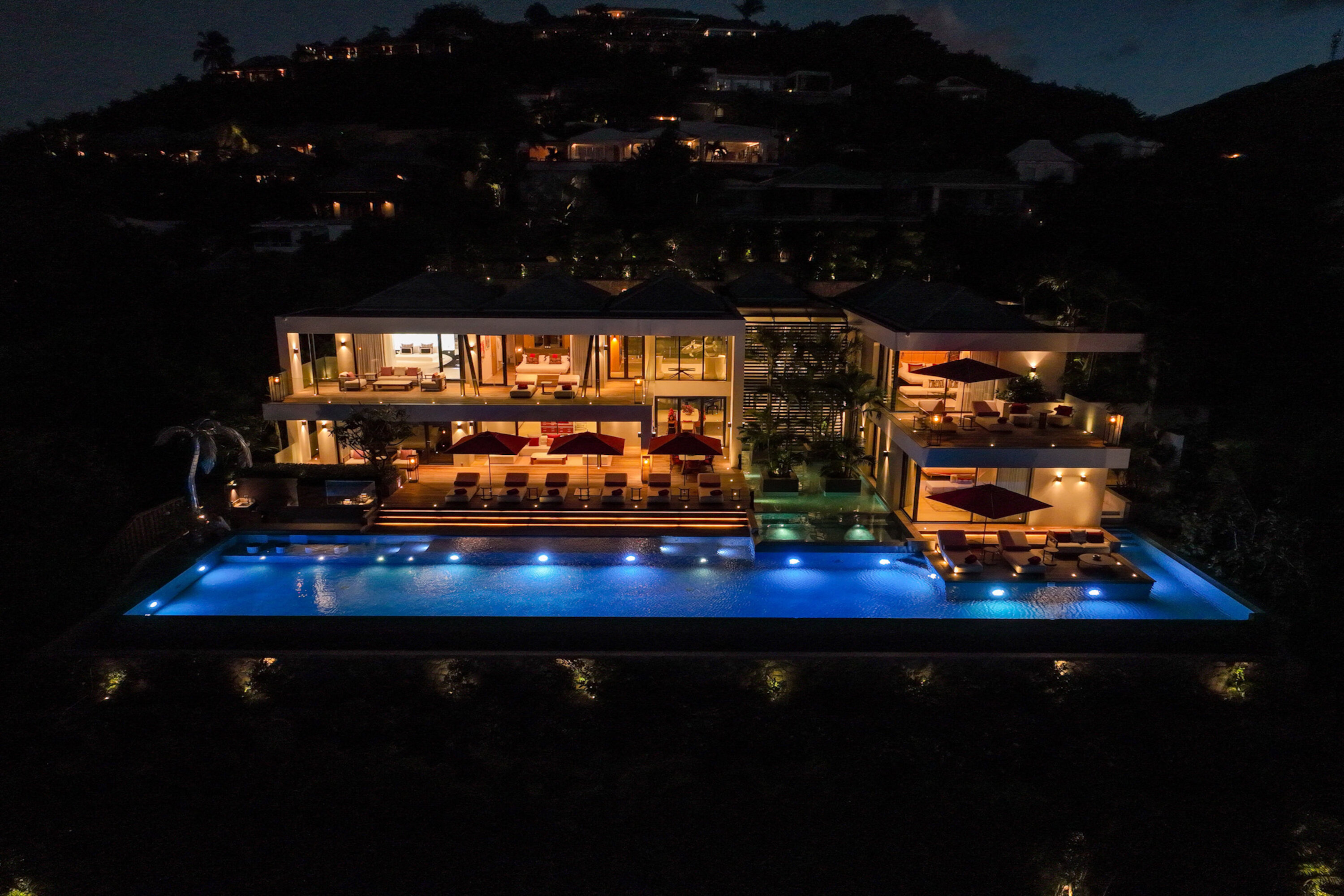 For movie nights inside, a separate TV room is next to the living room, which can be closed off to immerse yourself in the latest Hollywood blockbuster. There’s even a separate room that acts as the villa’s private nightclub, where you can host cocktail parties.