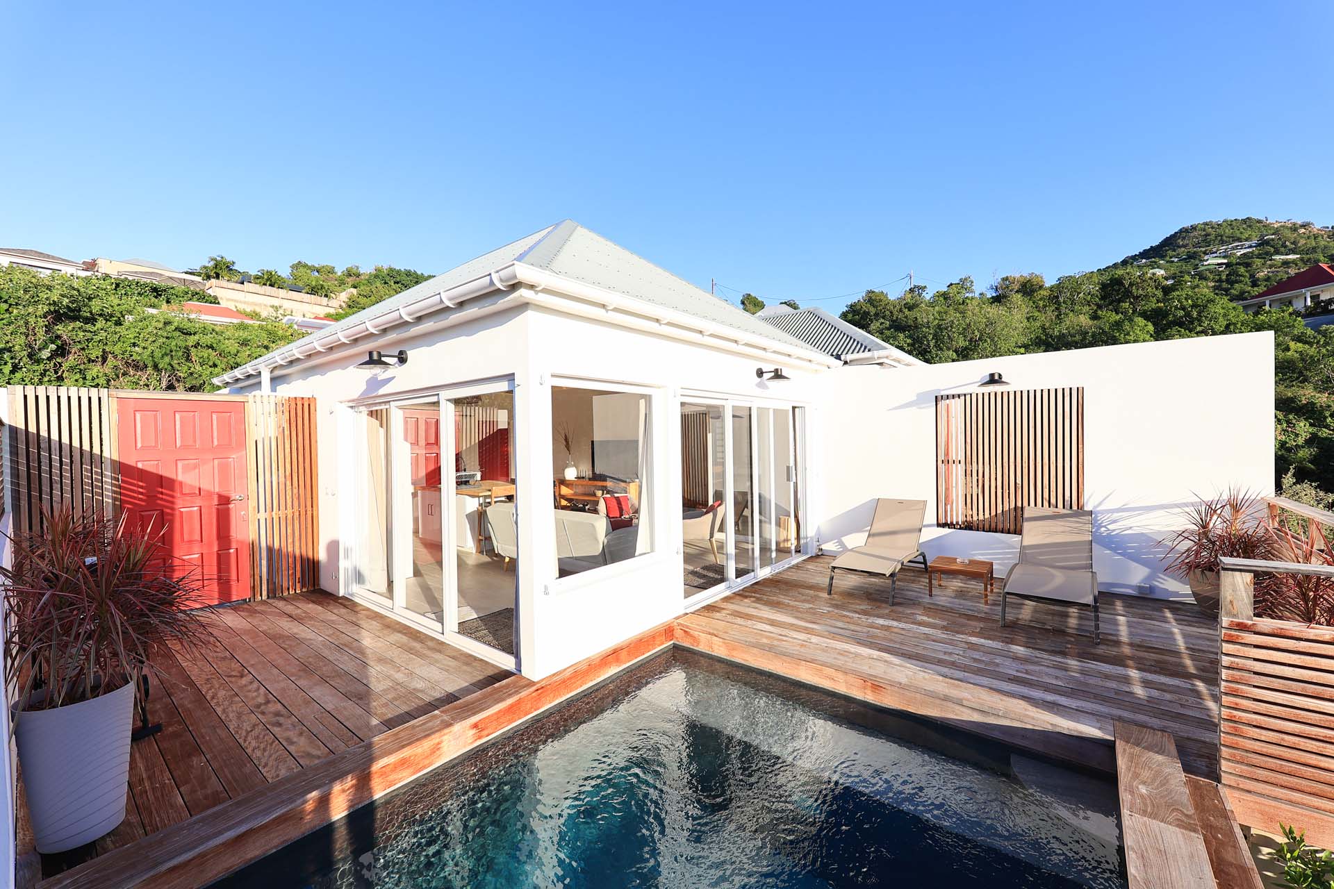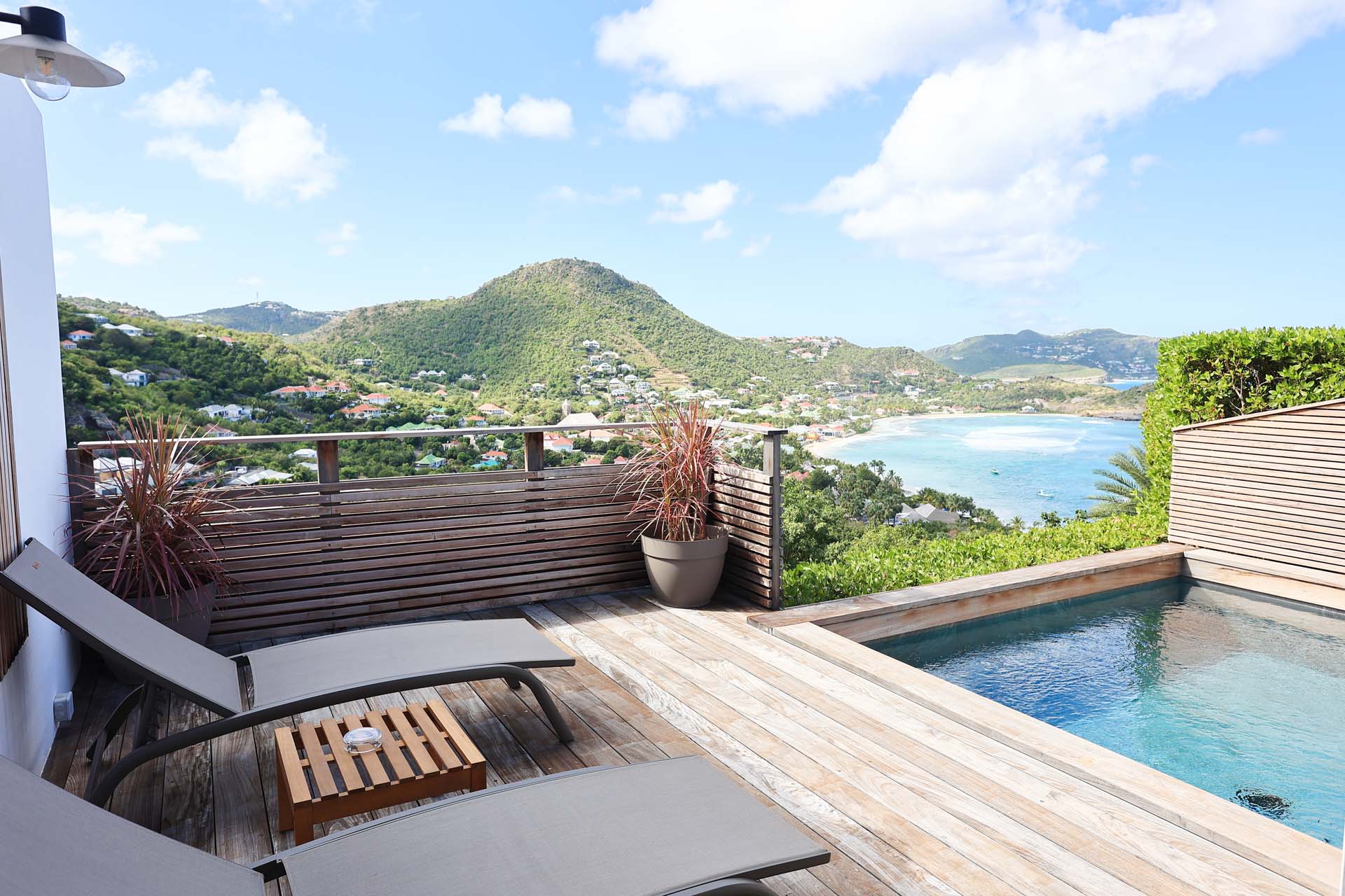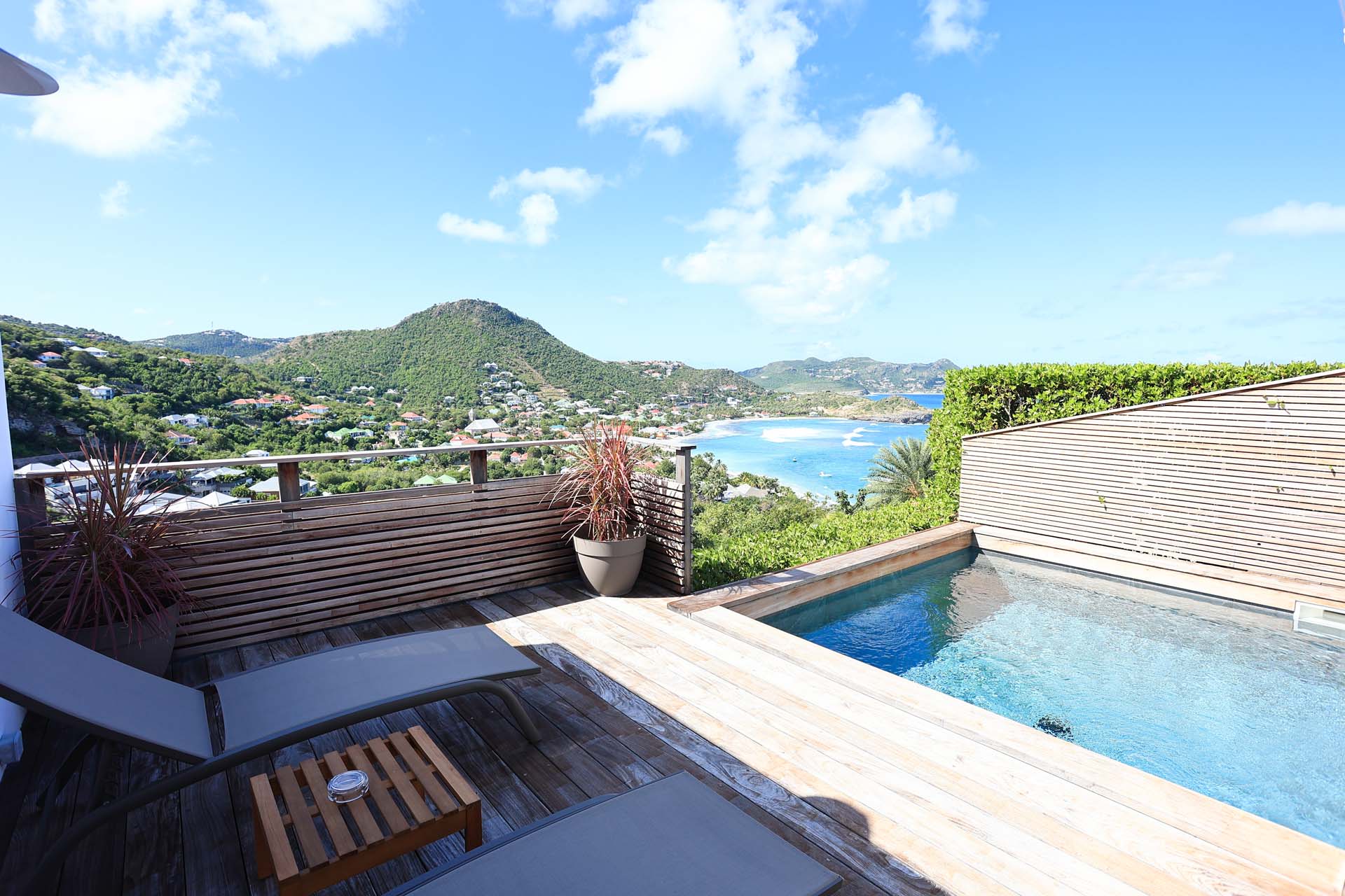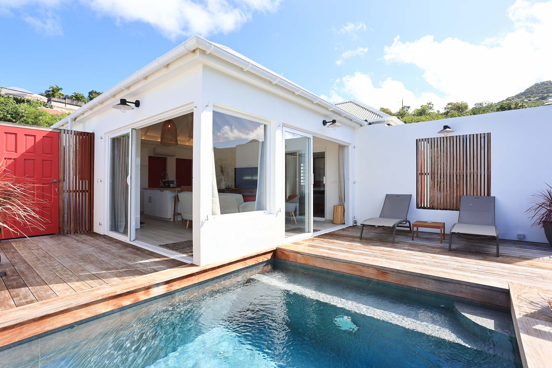 Villa Nérina, (villa code: WV NEI) is a newly-built petite 1-bedroom overlooking Lorient Beach, offering privacy and an amazing view of its brilliant blue waters. Fully air-conditioned throughout, with a compact well-equipped kitchen and a breakfast bar that is adjacent to a relaxing living room. Glass sliders open to the pool deck. A four-poster king bed adds a touch of romance that honeymooners would adore, and the chic ensuite bath has a double vanity. * Note - There is a laundry service available, please ask the housekeeper and she will explain how it works.Please fill out the form to begin your inquiry and we will connect you with a seasoned villa rental specialist.