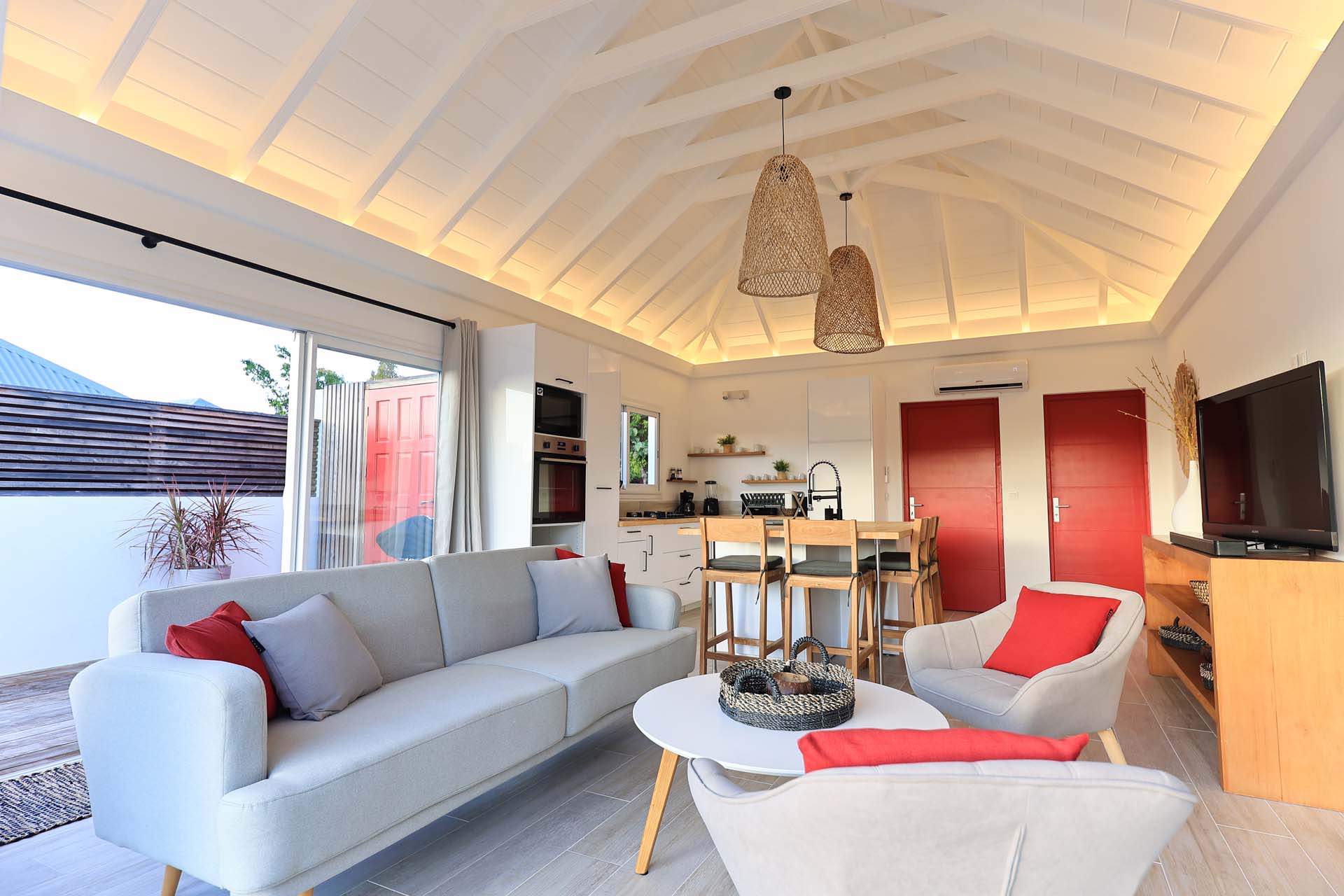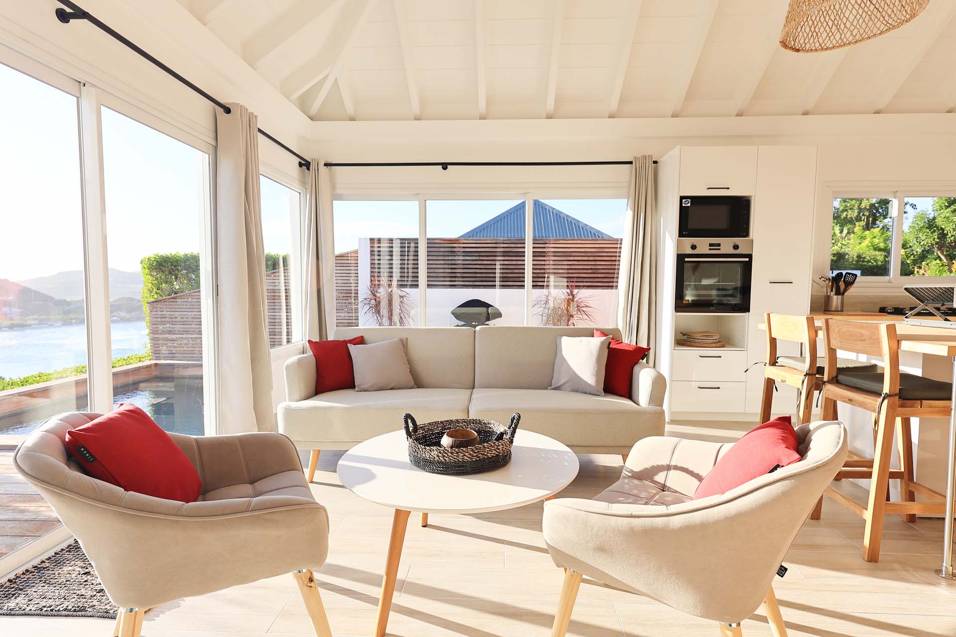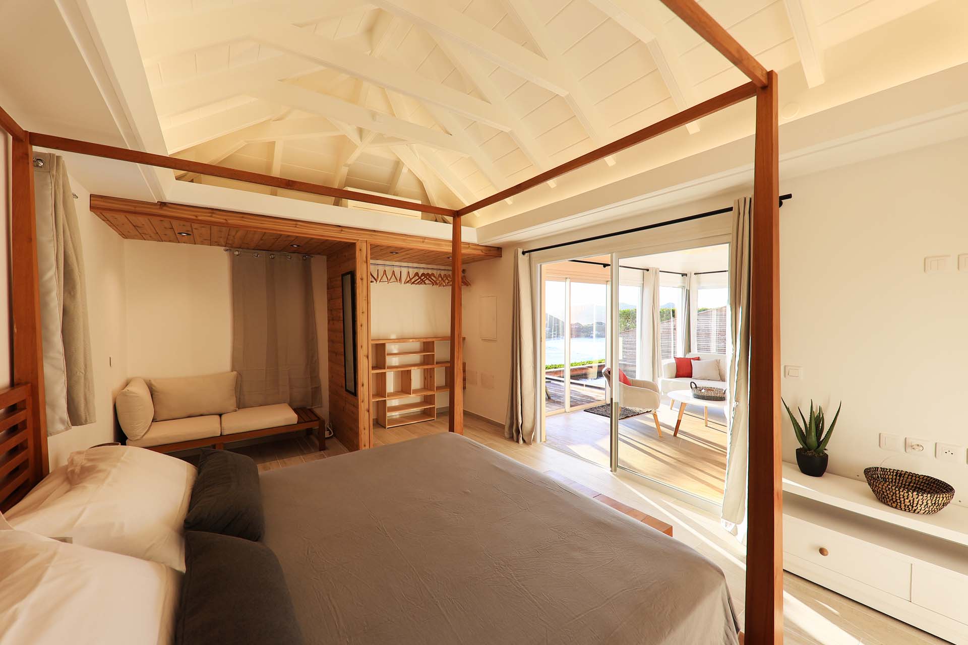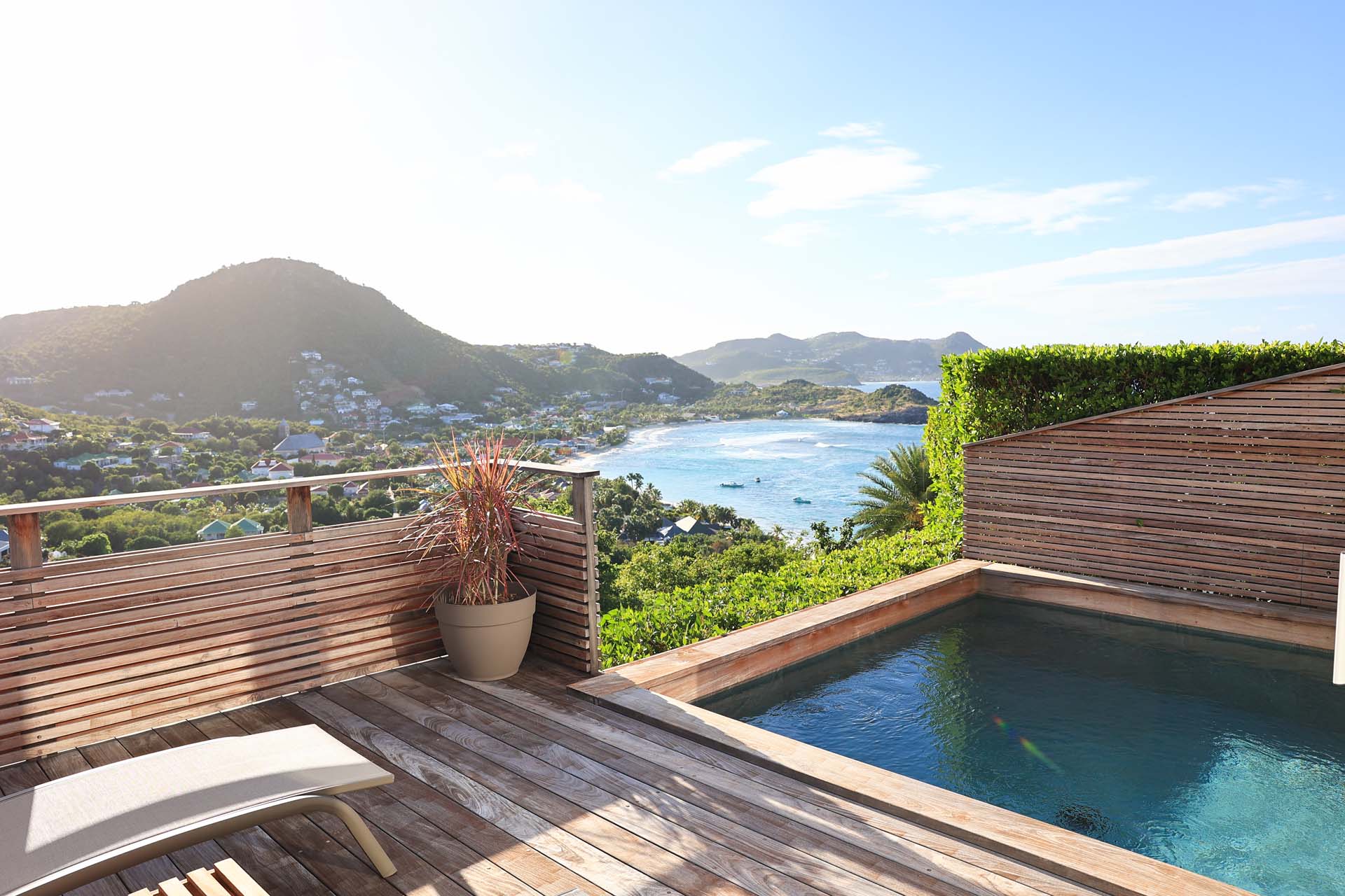 Villa Nérina, (villa code: WV NEI) is a newly-built petite 1-bedroom overlooking Lorient Beach, offering privacy and an amazing view of its brilliant blue waters. Fully air-conditioned throughout, with a compact well-equipped kitchen and a breakfast bar that is adjacent to a relaxing living room. Glass sliders open to the pool deck. A four-poster king bed adds a touch of romance that honeymooners would adore, and the chic ensuite bath has a double vanity. * Note - There is a laundry service available, please ask the housekeeper and she will explain how it works.Please fill out the form to begin your inquiry and we will connect you with a seasoned villa rental specialist.